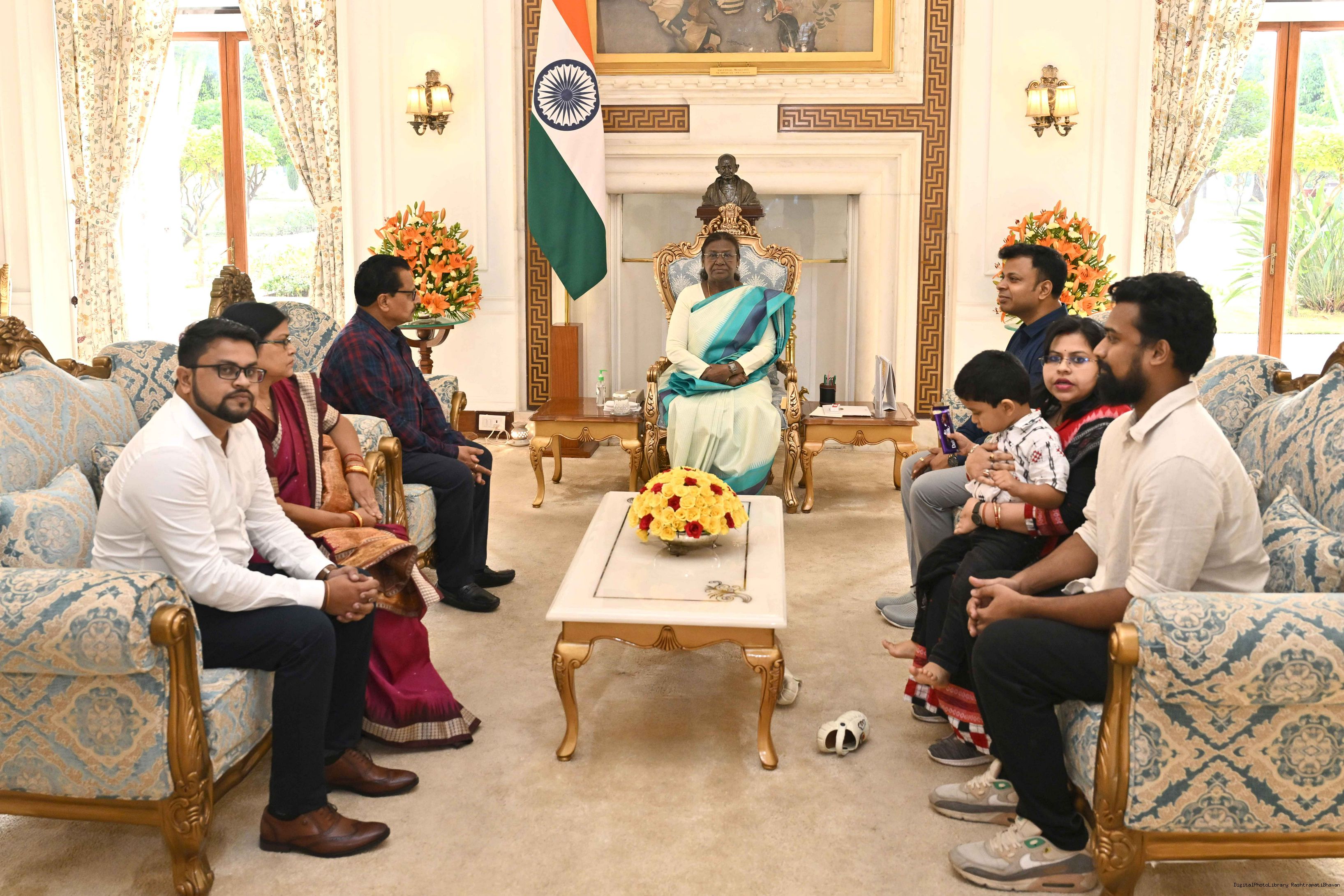 | Caption: | Shri Sanjib Ku. Lenka from Rairangpur along with others meeting with the President of India, Smt. Droupadi Murmu at Rashtrapati Bhavan on May 22, 2025. |