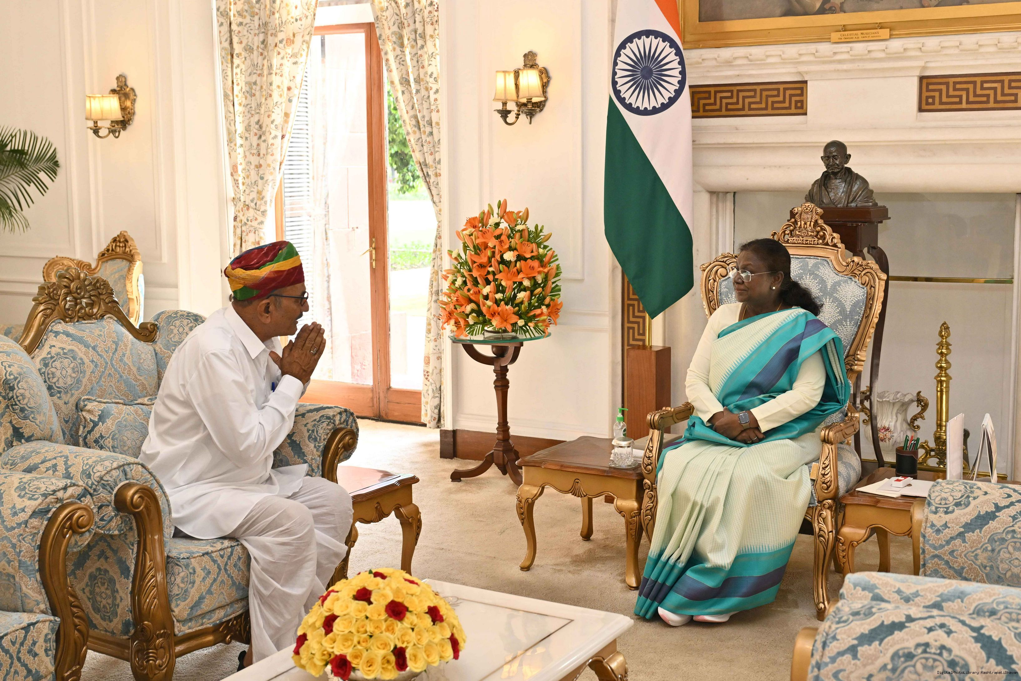 Shri Himataram Bhambhu, Padma Shri Awardee meeting with the President of India, Smt. Droupadi Murmu at Rashtrapati Bhavan on May 22, 2025.