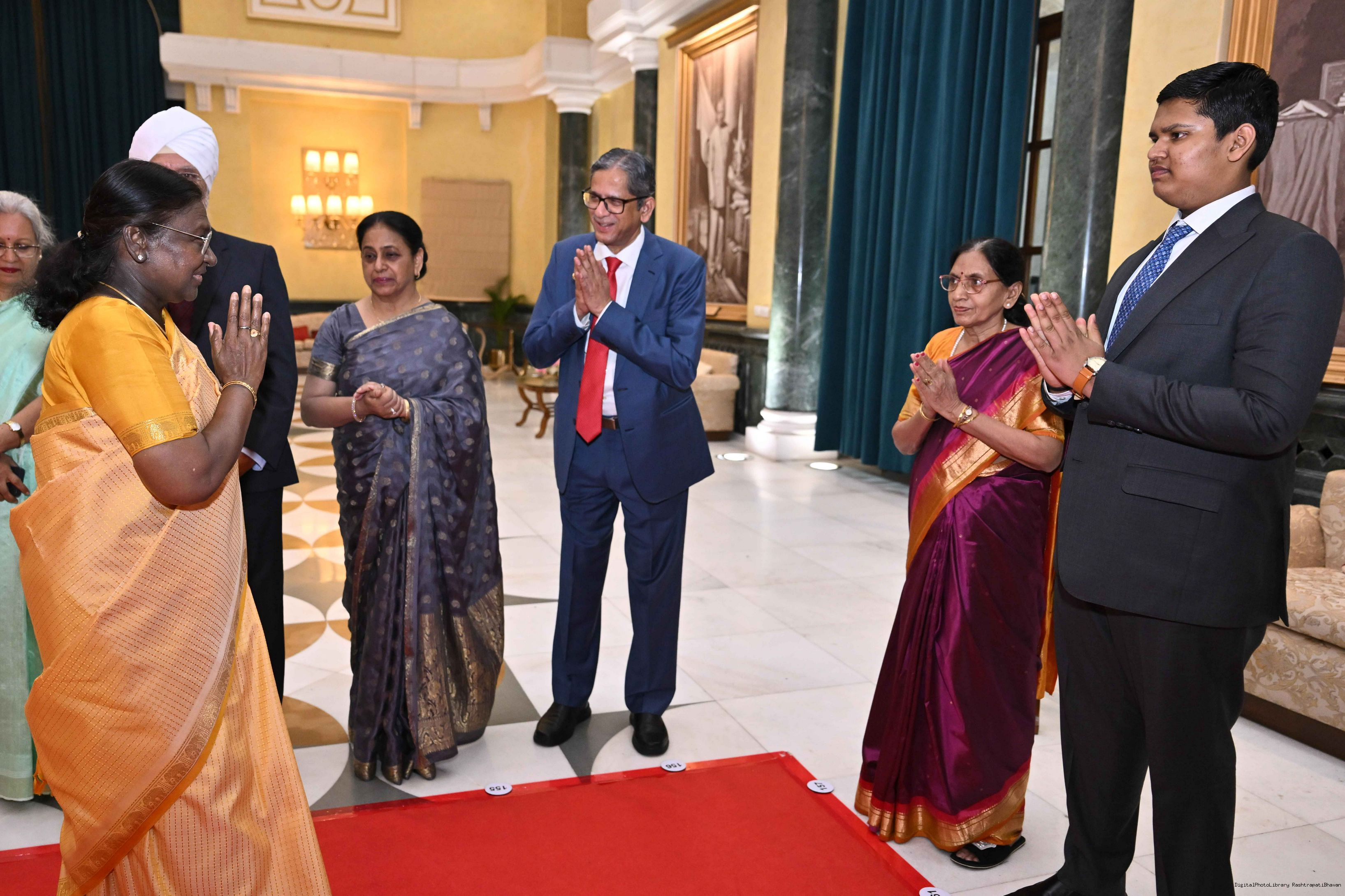 Caption: President Droupadi Murmu hosted a dinner at Rashtrapati Bhavan Cultural Centre to welcome the newly sworn-in Chief Justice of India, Shri Justice Bhushan Ramkrishna Gavai on May 26, 2025.
