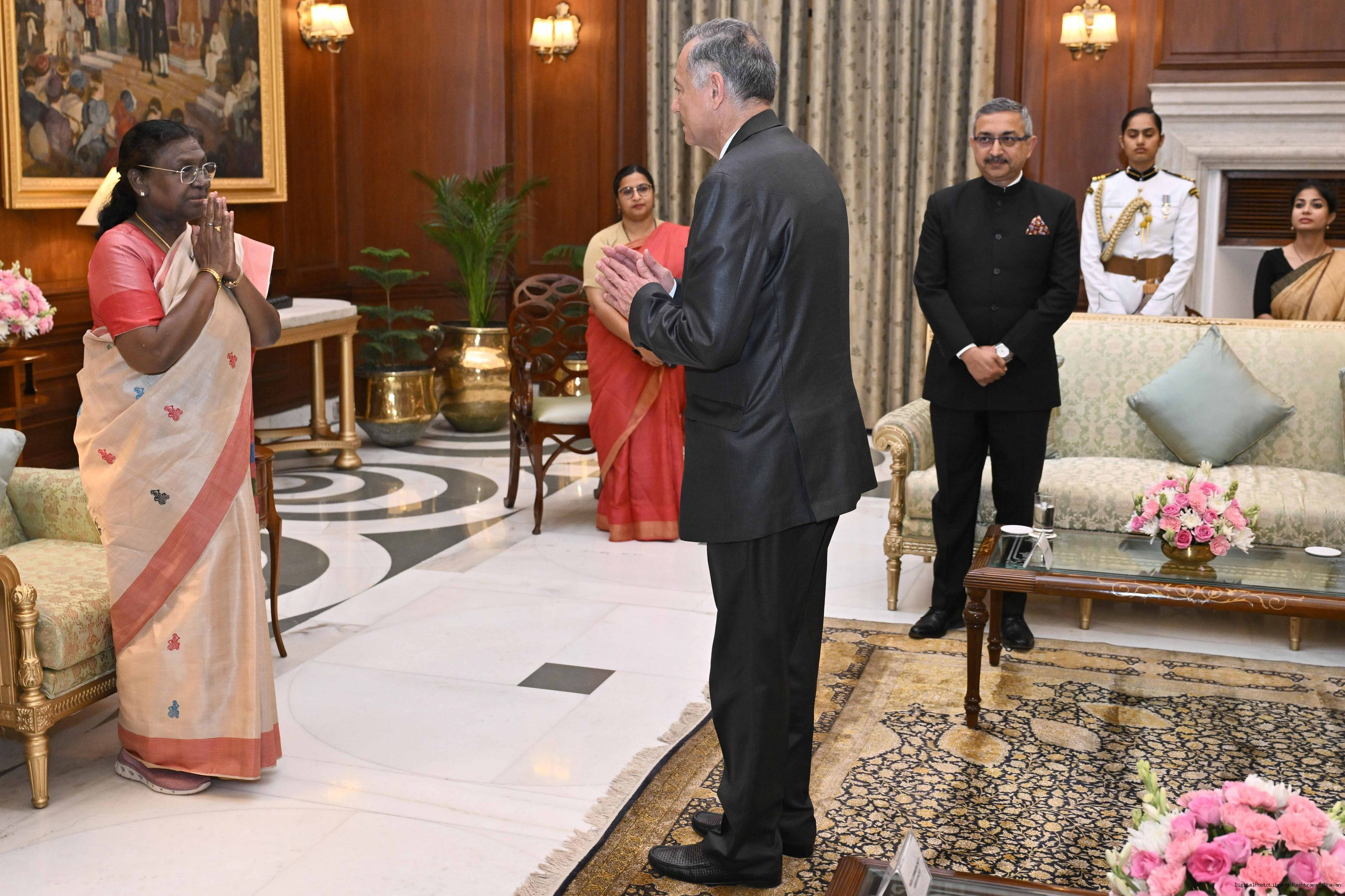 | Caption: | The Ambassador-designate of the Republic of Costa Rica, H.E. Mr. Nestor Gabriel Baltodano Vargas presenting his credentials to the President of India, Smt Droupadi Murmu at Ashok Hall of Rashtrapati Bhavan in New Delhi on May 29, 2025. |