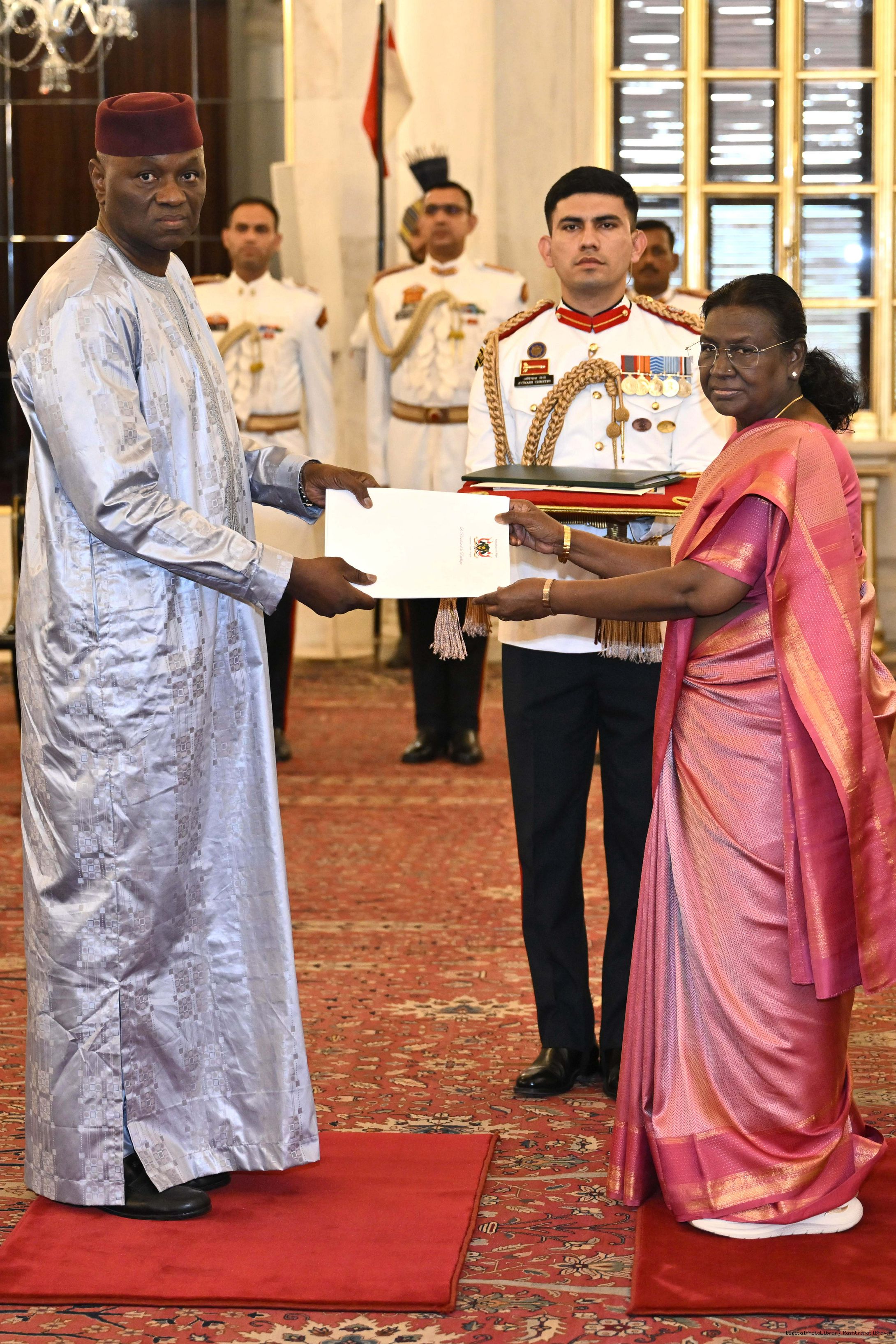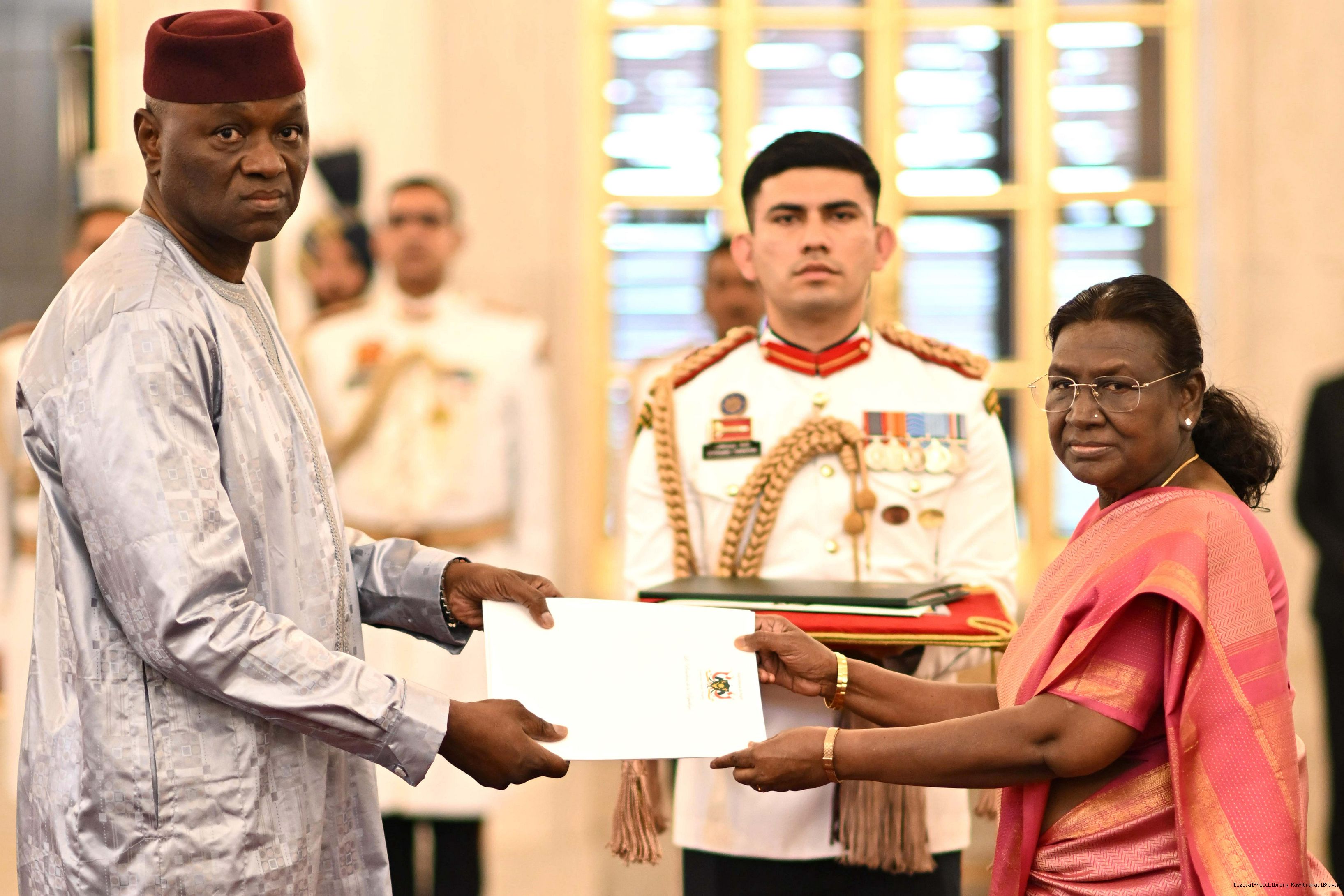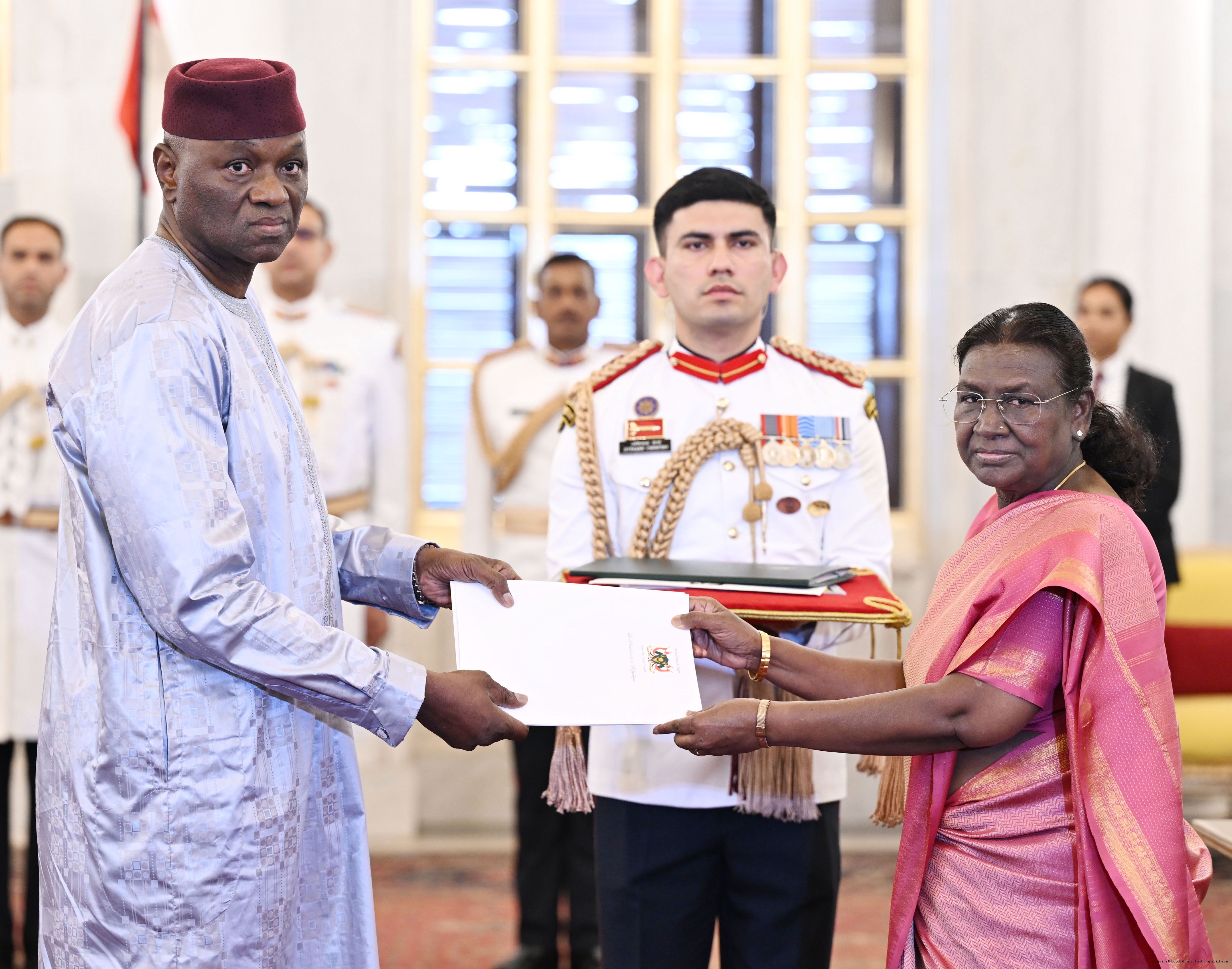 | Caption: | H.E. Mr Zada Seidou, Ambassador of the Republic of Niger presenting credentials to the President of India, Smt Droupadi Murmu at a ceremony held at Rashtrapati Bhavan on May 30, 2025. |