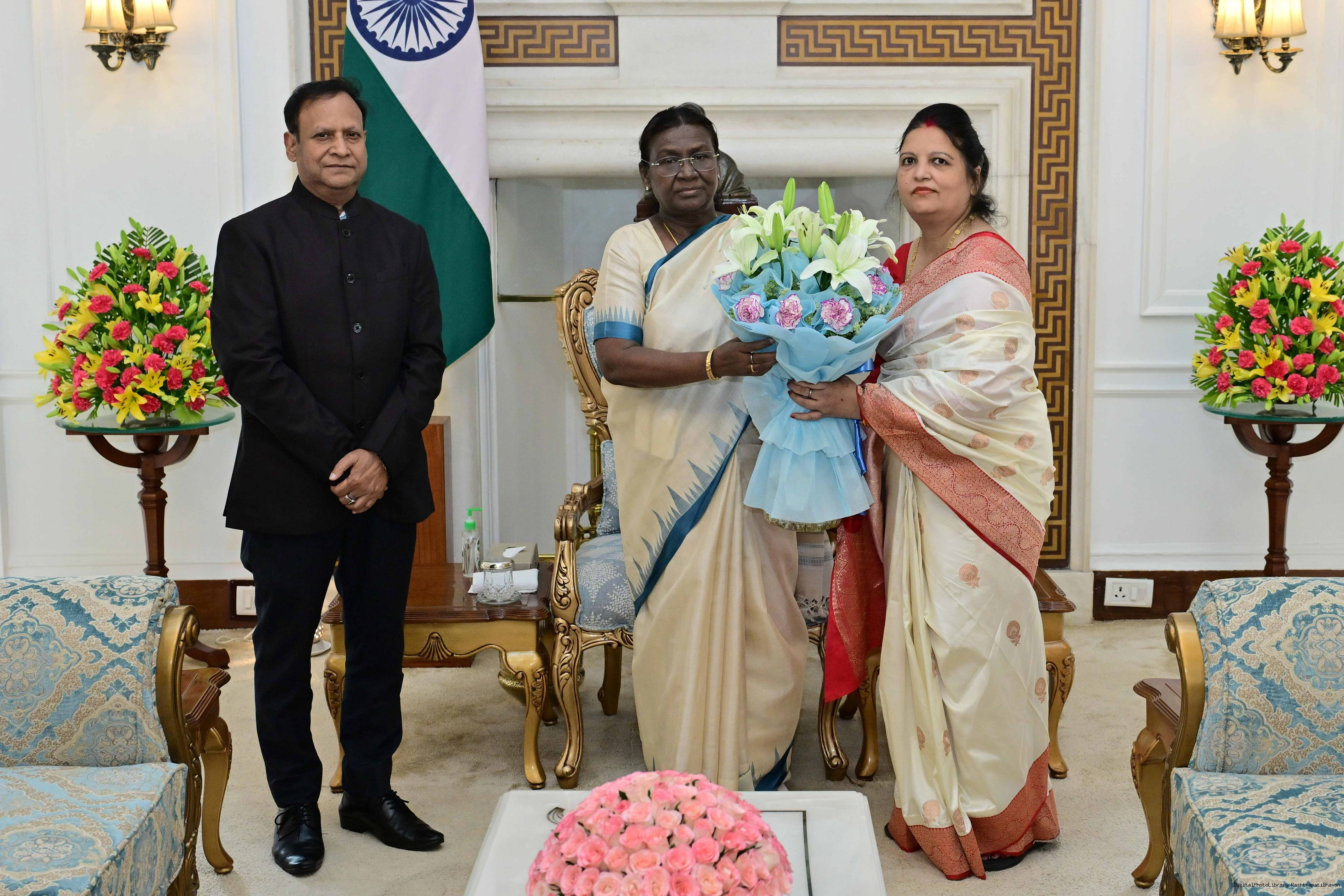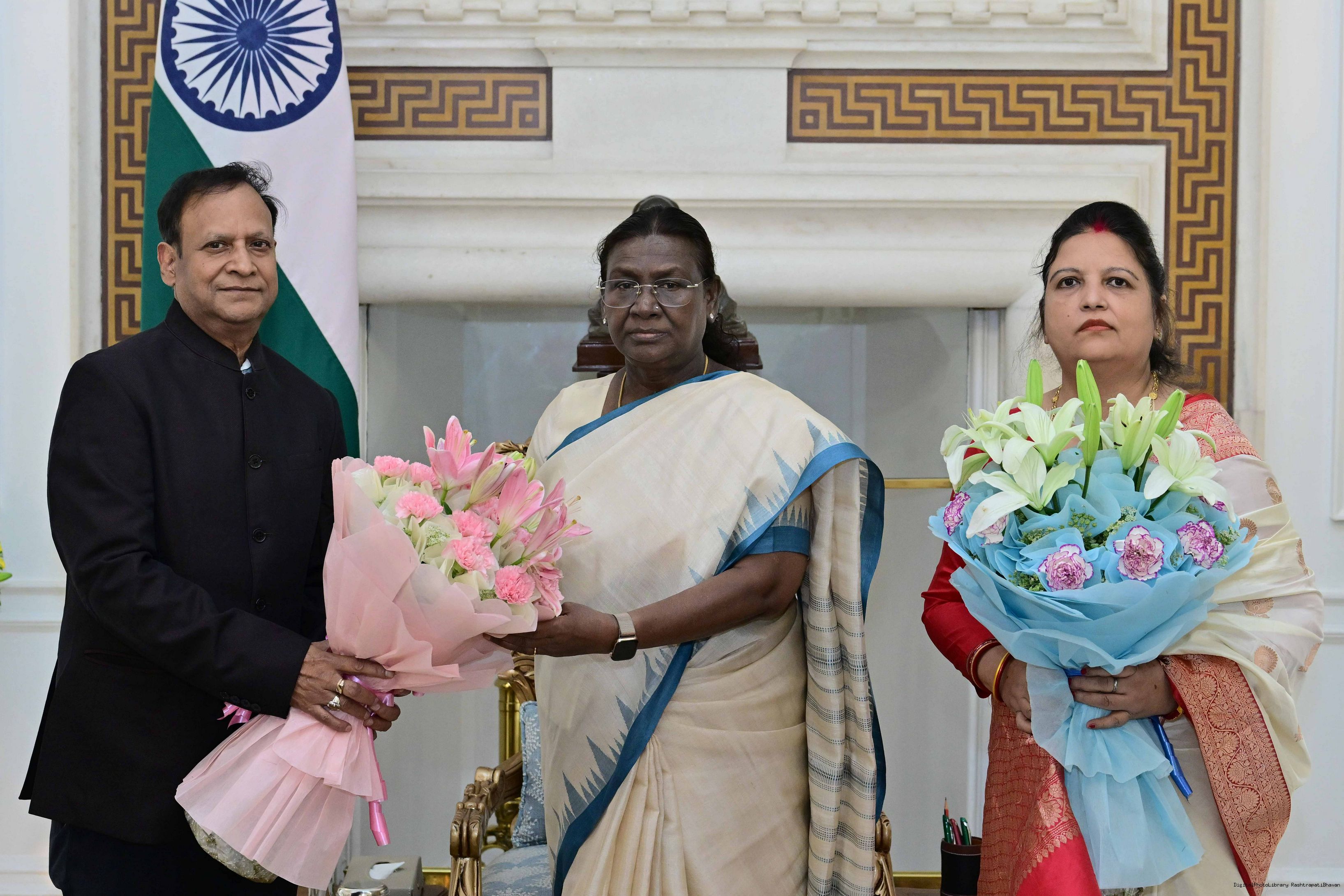 | Caption: | Shri Shashi Nandkeolyar, IFS (Retd.), Ex Principal Chief Conservator of Forests, Governor of Jharkhand along with his wife meeting with the President of India, Smt. Droupadi Murmu at Rashtrapati Bhavan on May 30, 2025. |