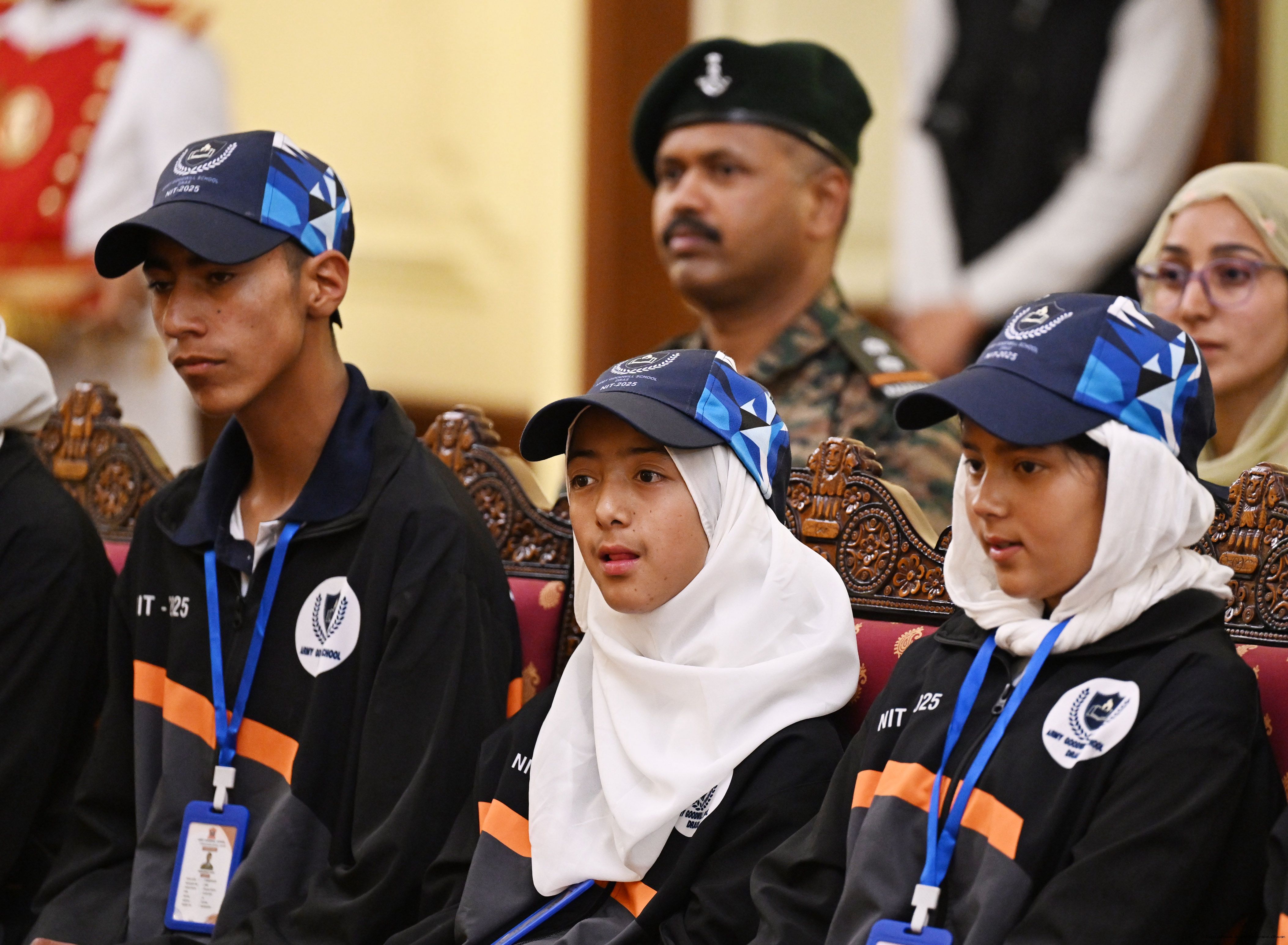 | Caption: | A group of students from Army Goodwill School, Dras, Ladakh called on the President of India, Smt. Droupadi Murmu at Rashtrapati Bhavan June 3, 2025. The group visited Rashtrapati Bhavan as part of the National Integration Tour. |