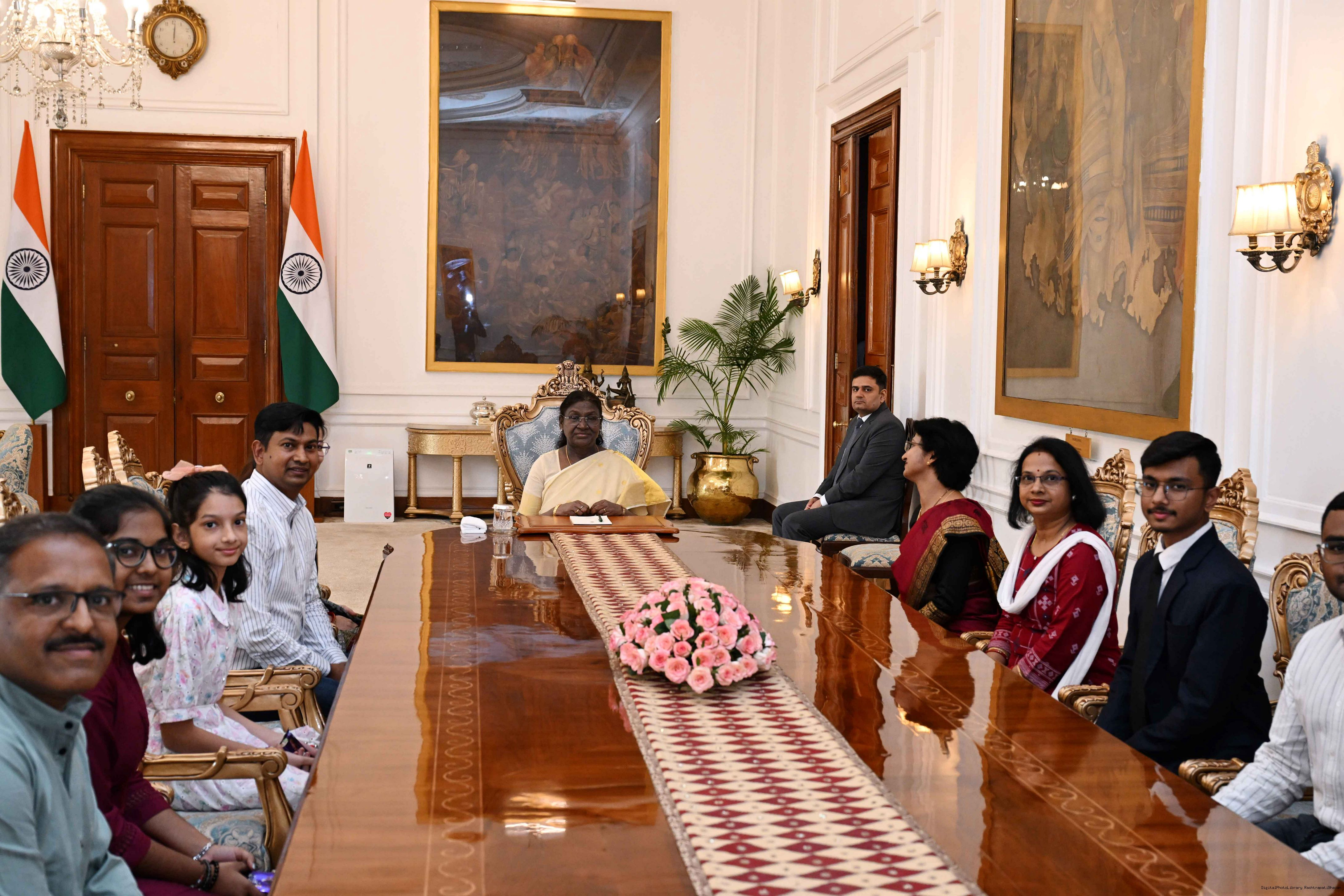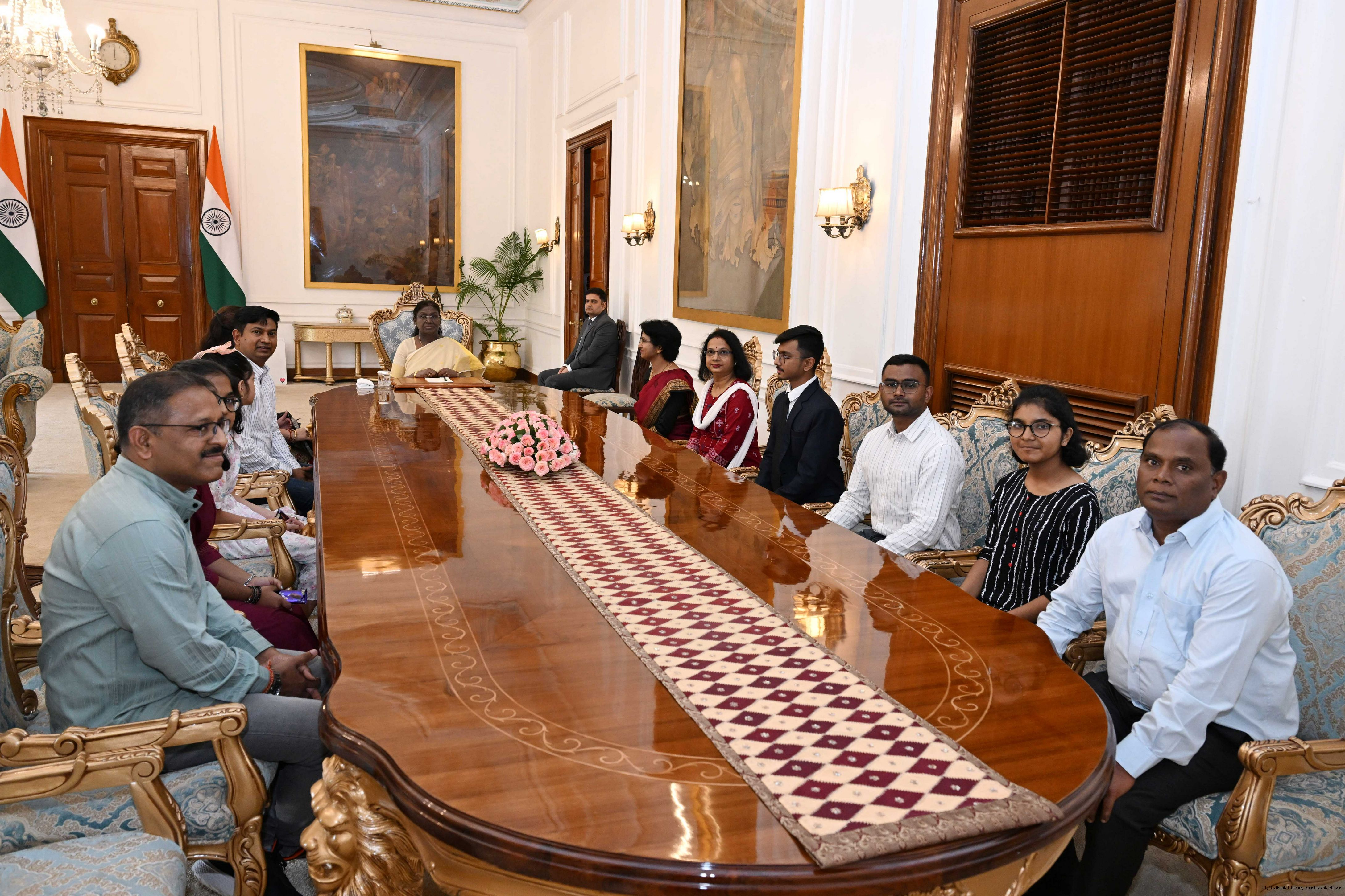 | Caption: | Ms. Truptimayee Nayak along with Shri Manoj Das and others meeting with the President of India, Smt. Droupadi Murmu at Rashtrapati Bhavan on June 16, 2025. |