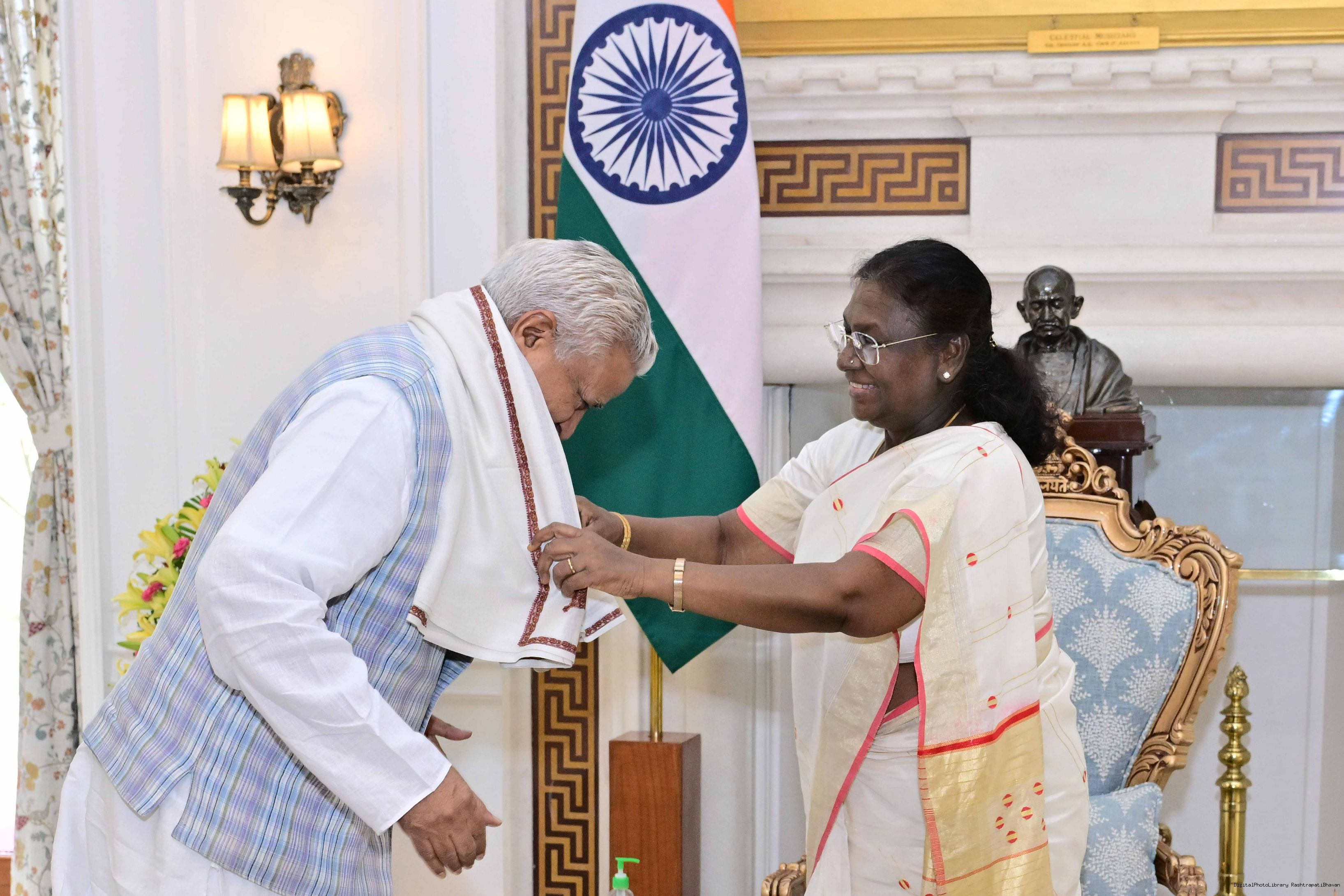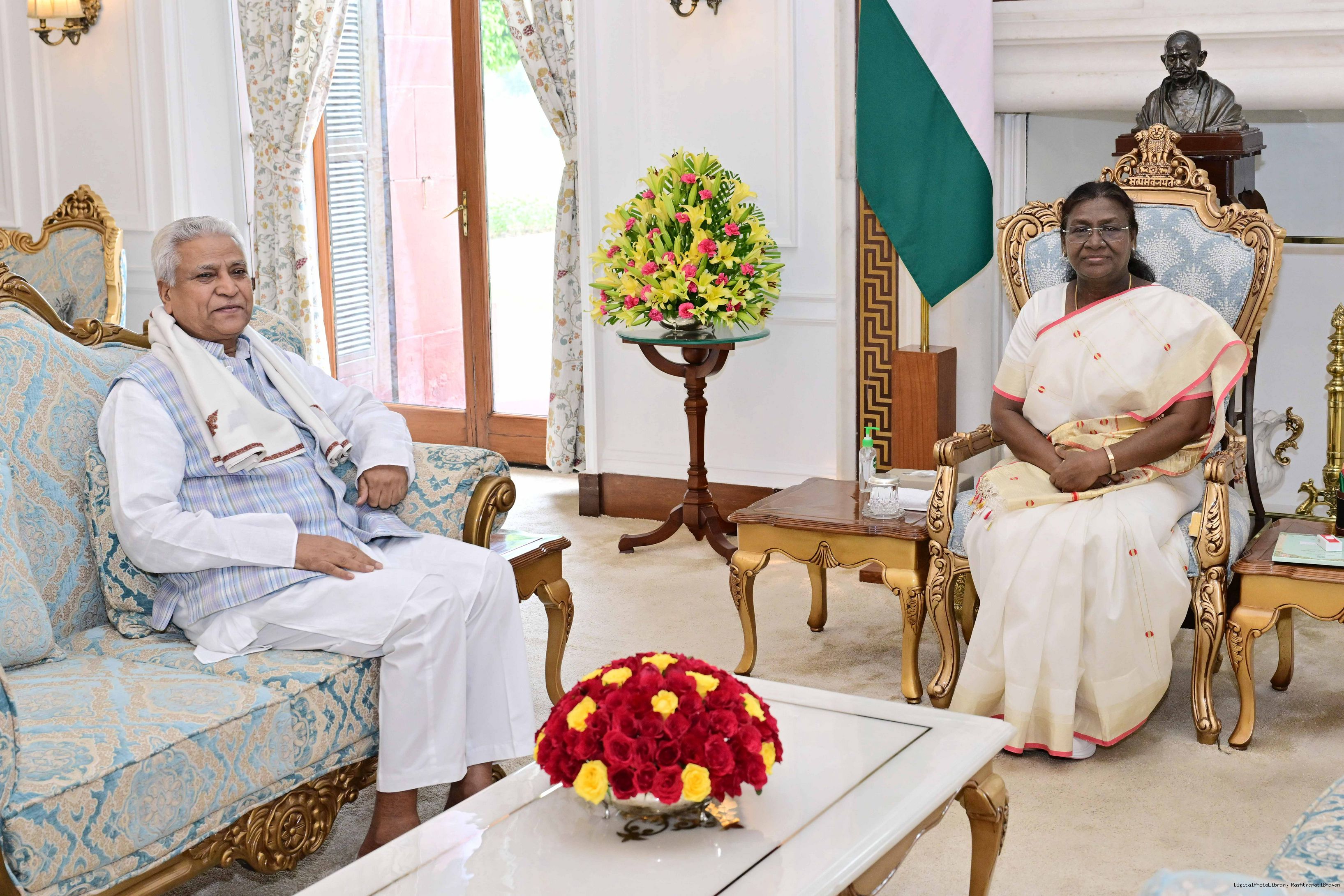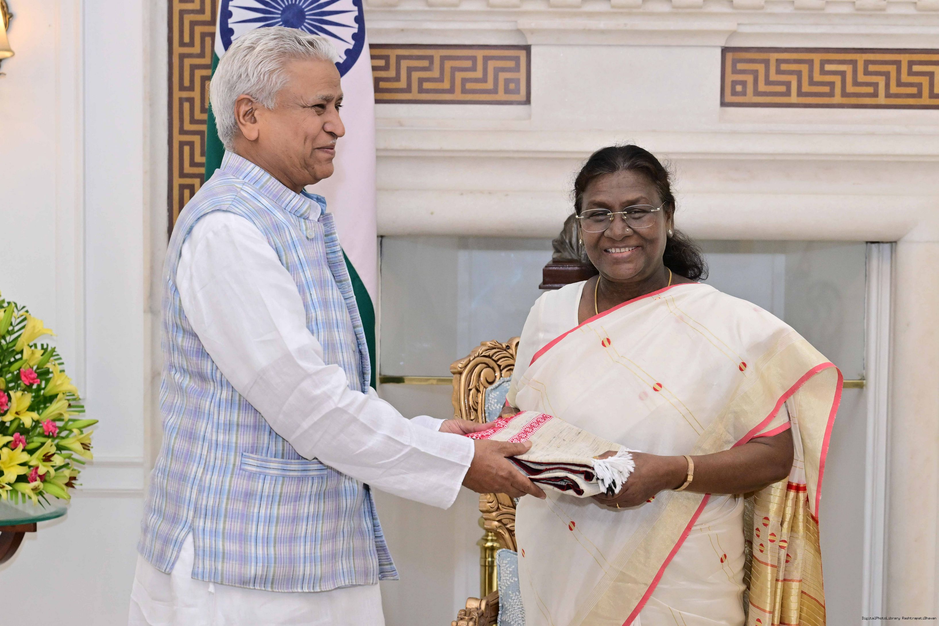 Shri Ramlal meeting with the President of India, Smt. Droupadi Murmu at Rashtrapati Bhavan on June 17, 2025.