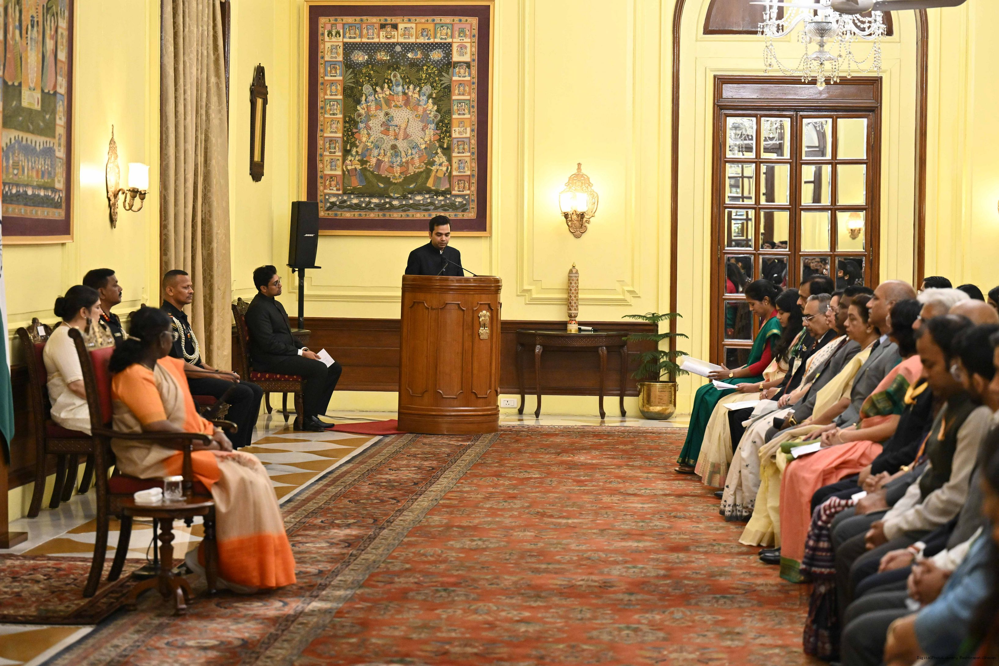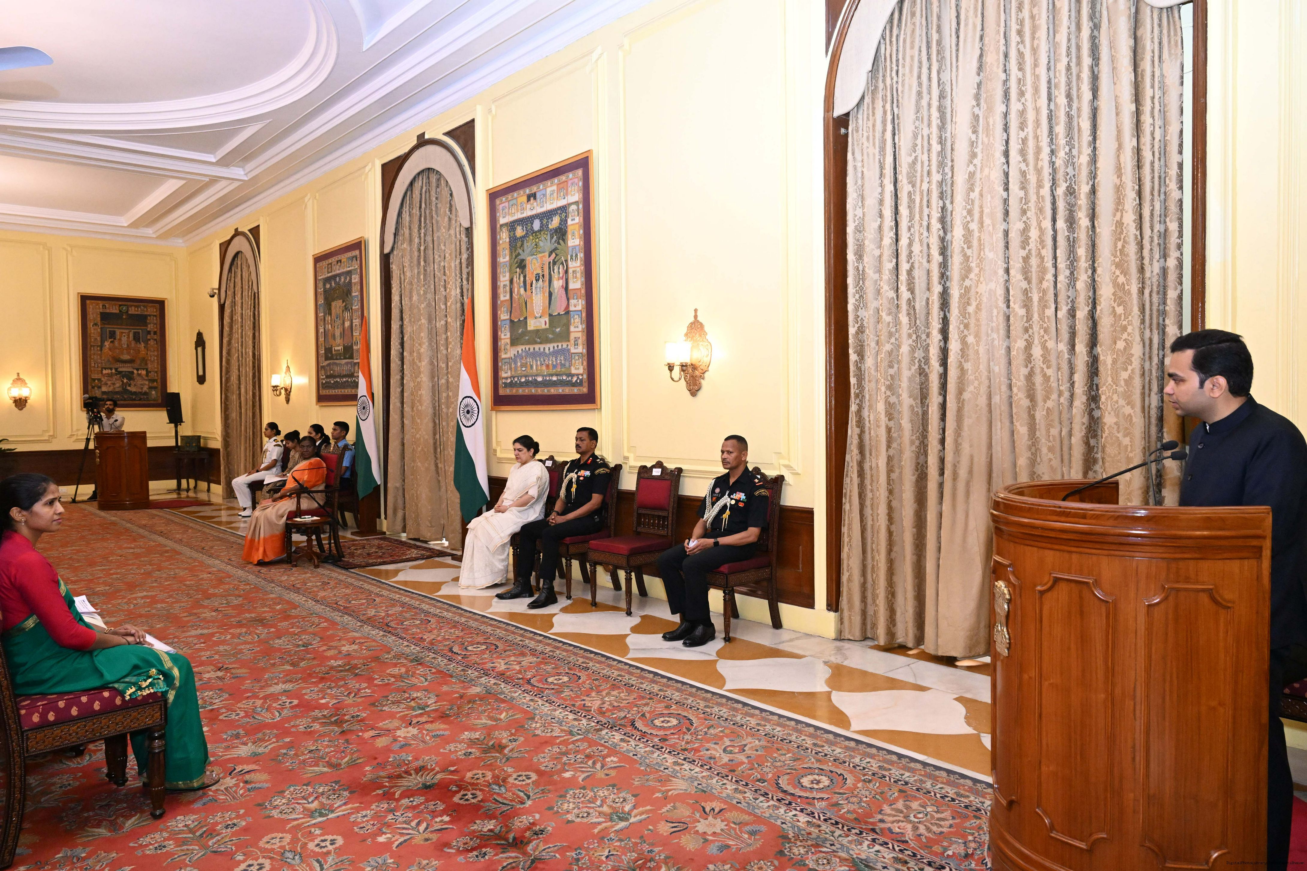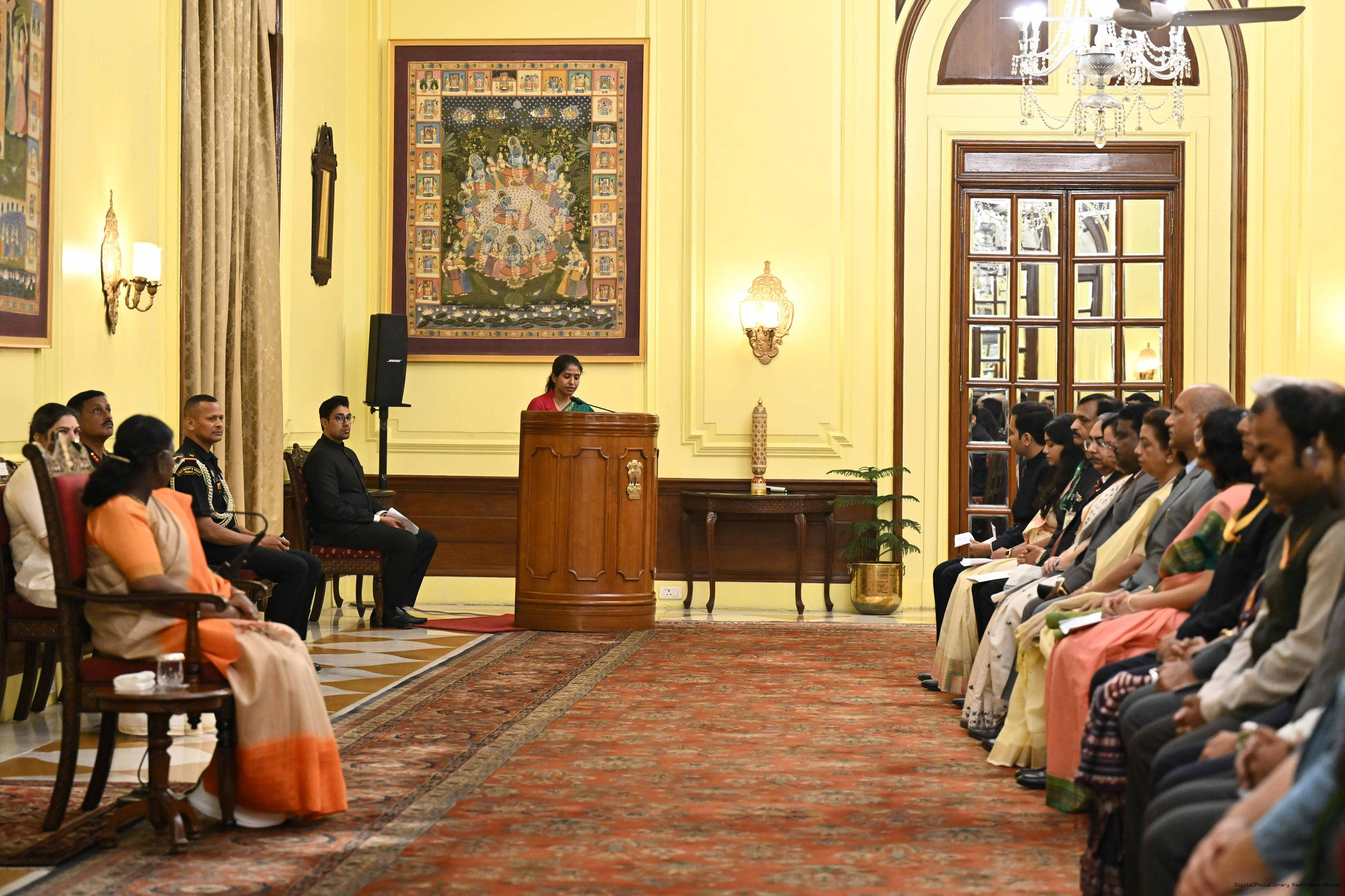 | Caption: | The probationers of the Indian Corporate Law Service, the Defence Aeronautical Quality Assurance Service and the Central Labour Service called on the President of India, Smt Droupadi Murmu at Rashtrapati Bhavan on June 18, 2025. |