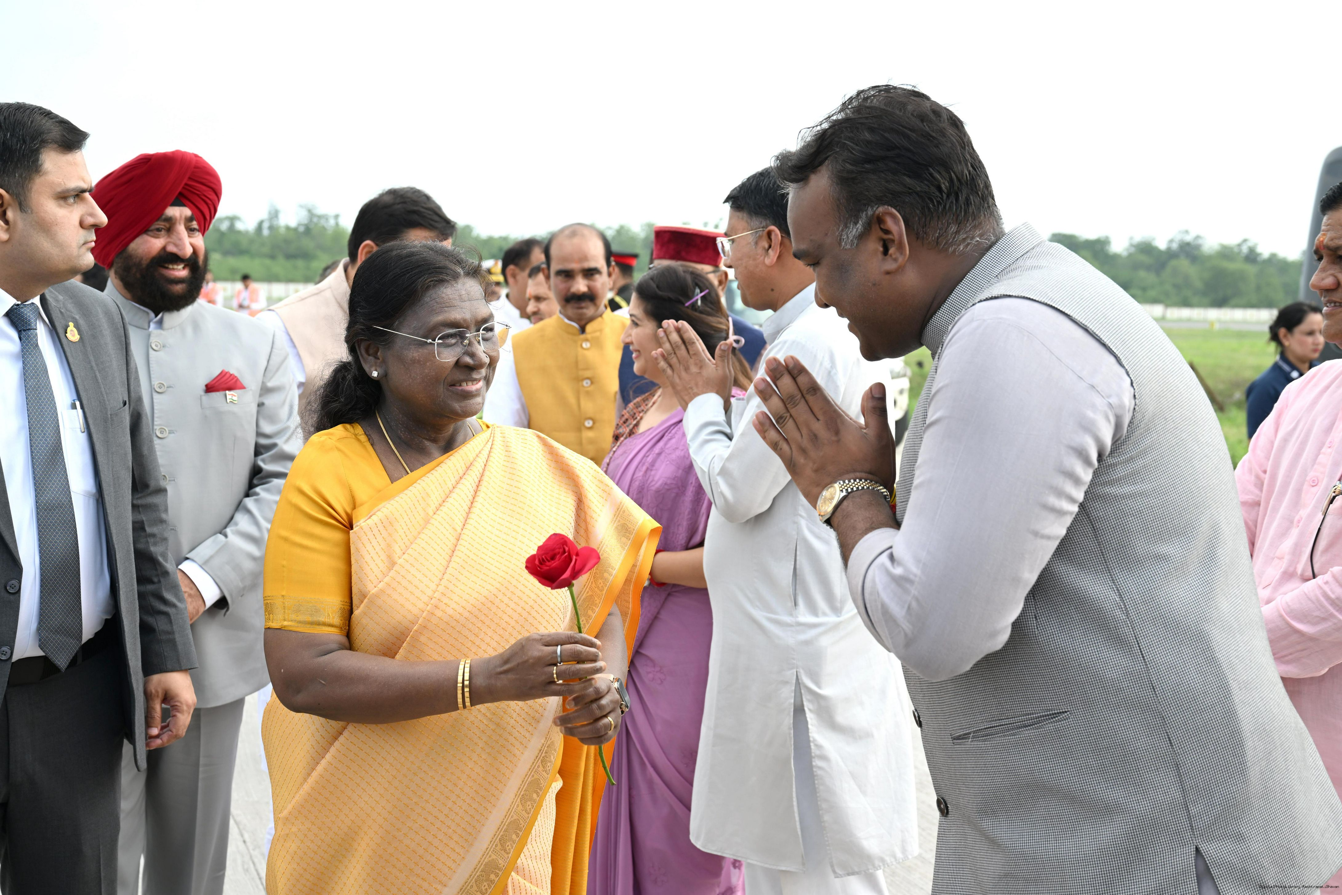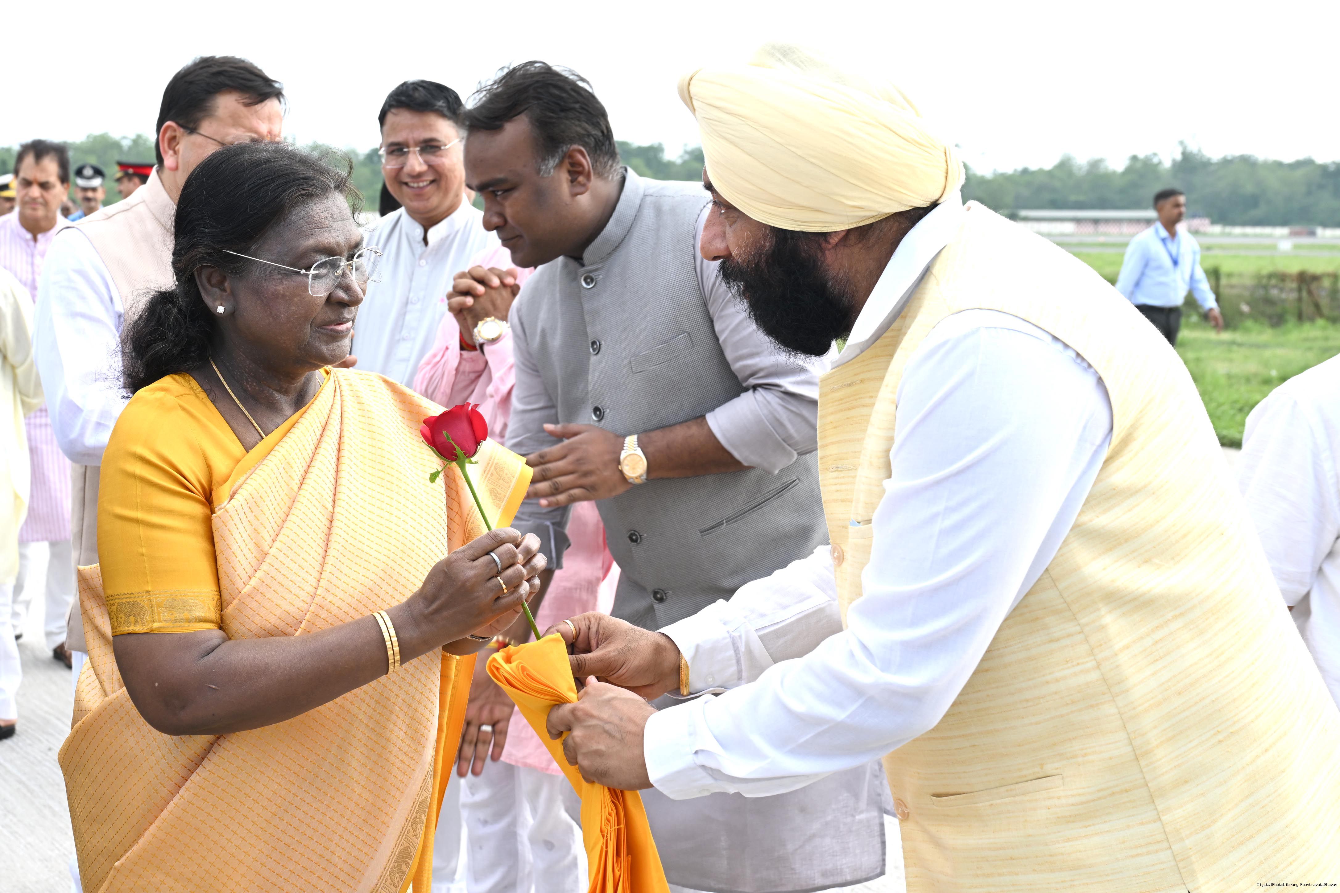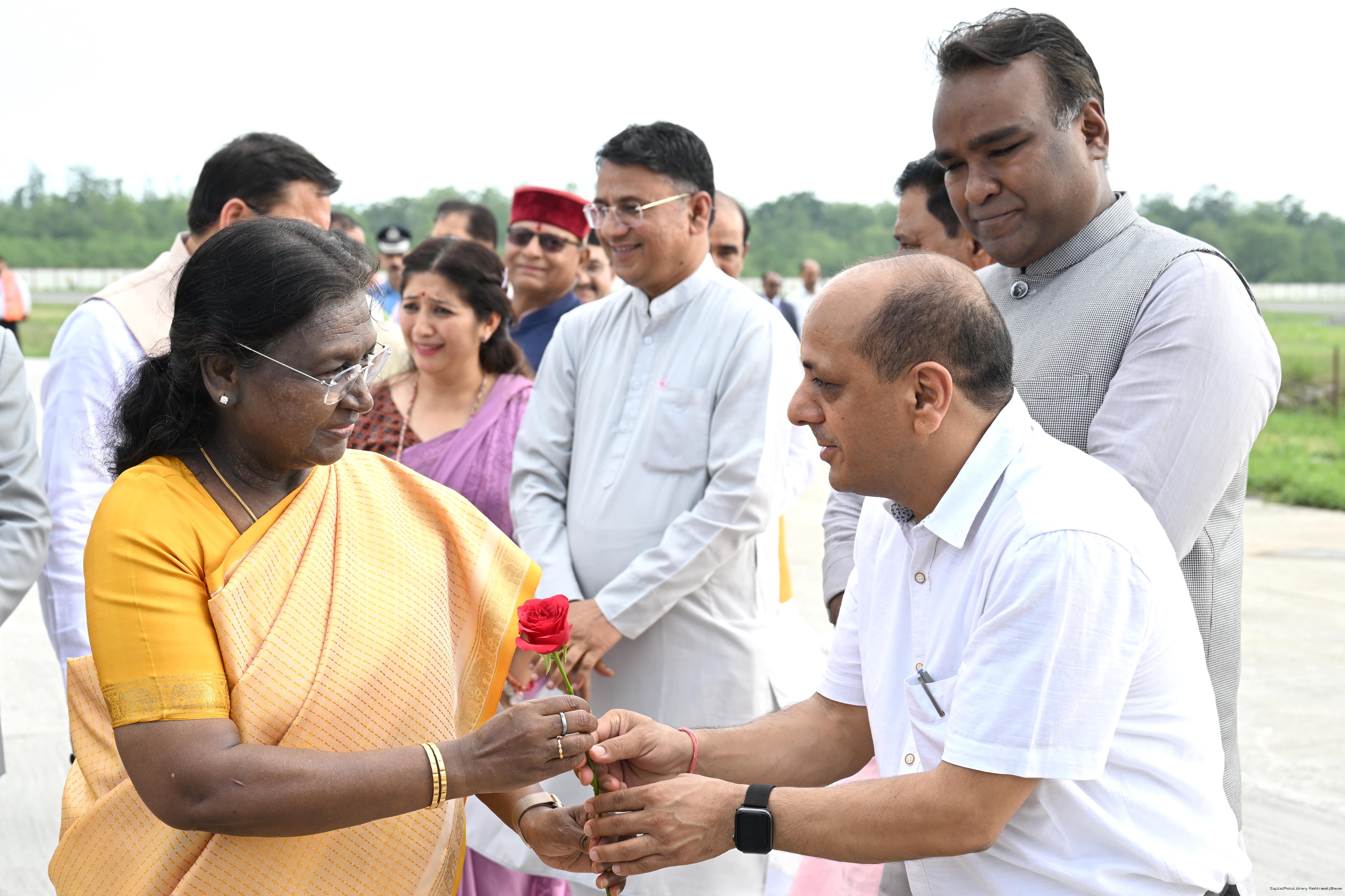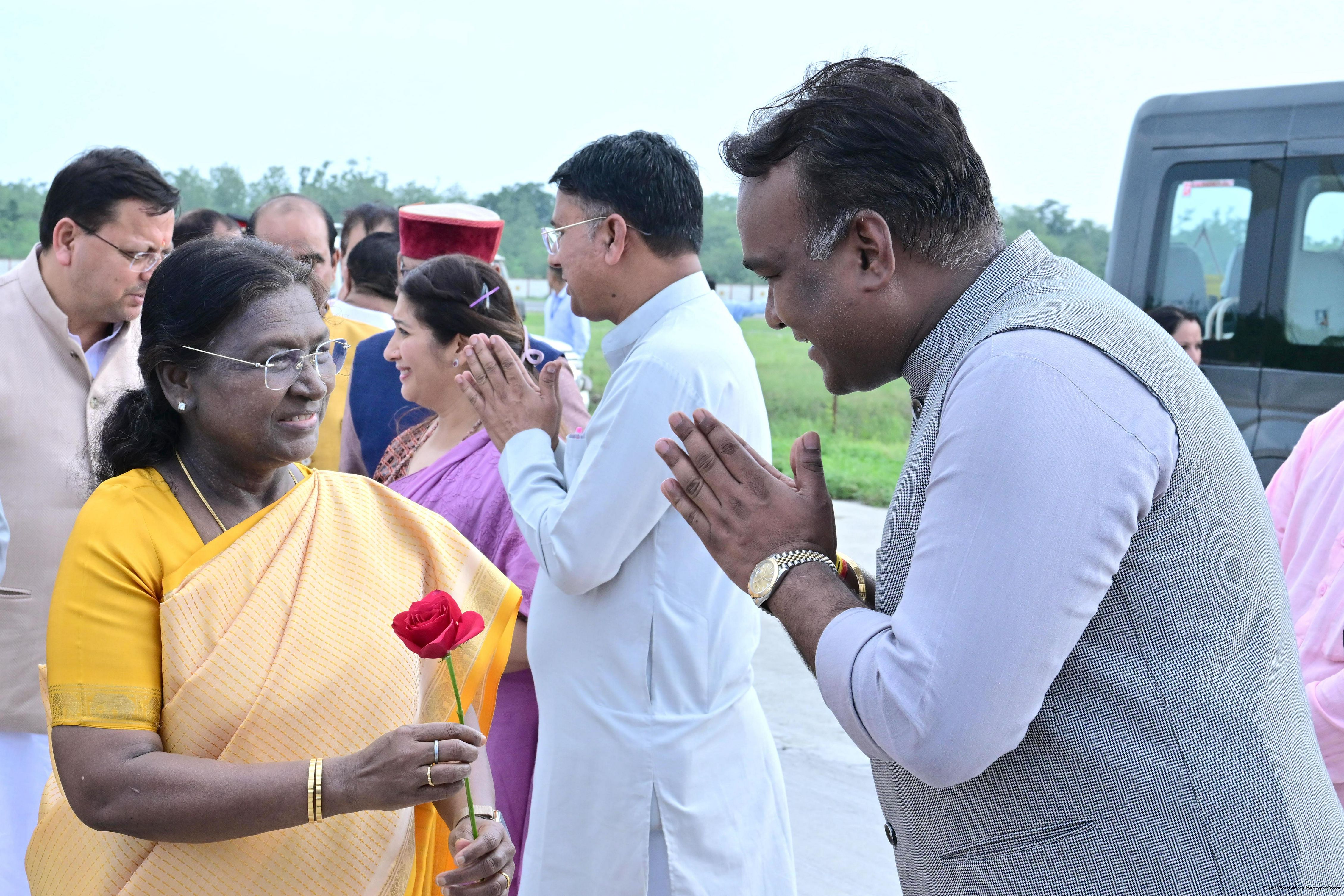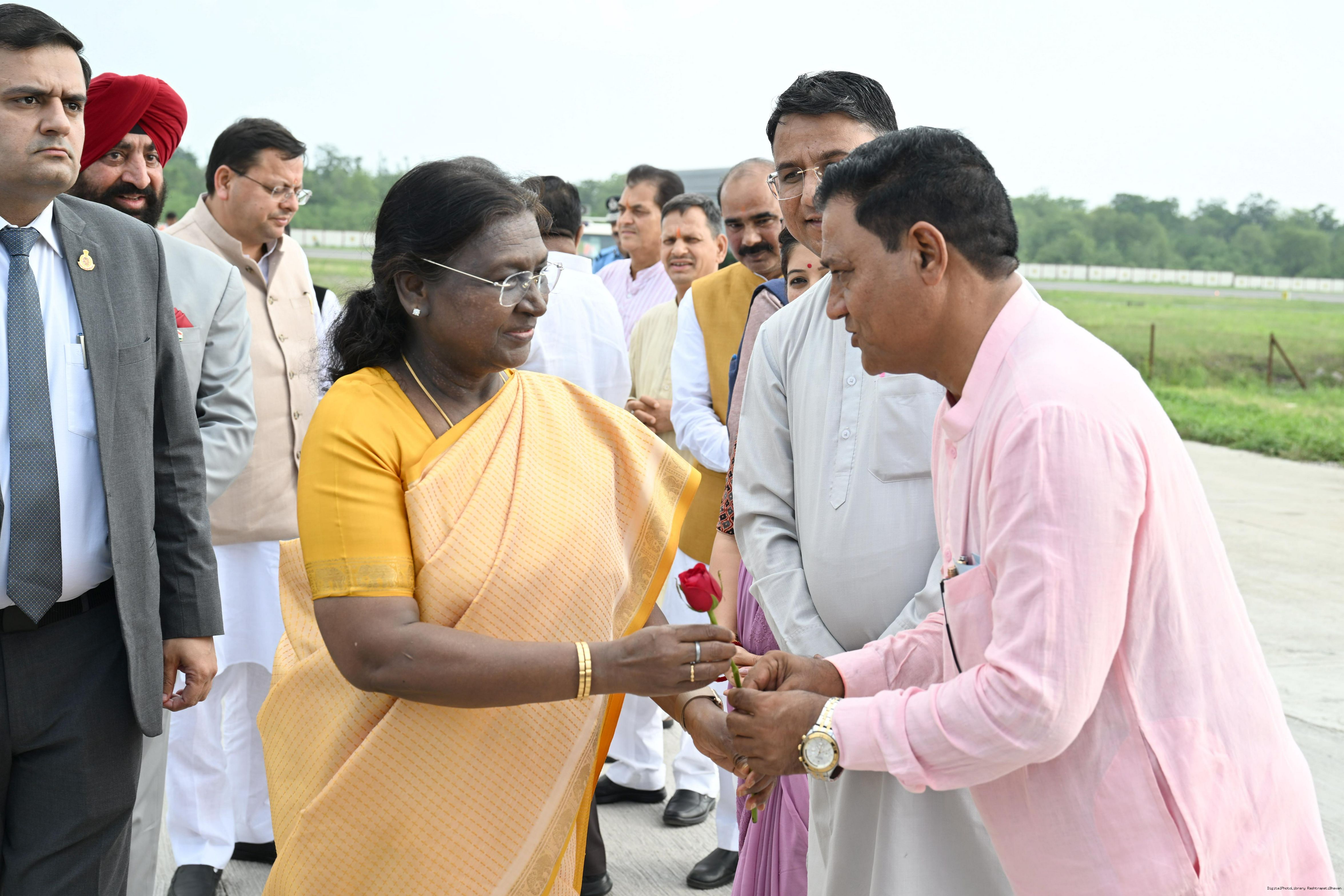 | Caption: | The Governor of Uttarakhand, Lt Gen Gurmit Singh (Retd.) and Chief Minister, Shri Pushkar Singh Dhami received the President of India, Smt Droupadi Murmu on her arrival at Dehradun on June 19, 2025. |