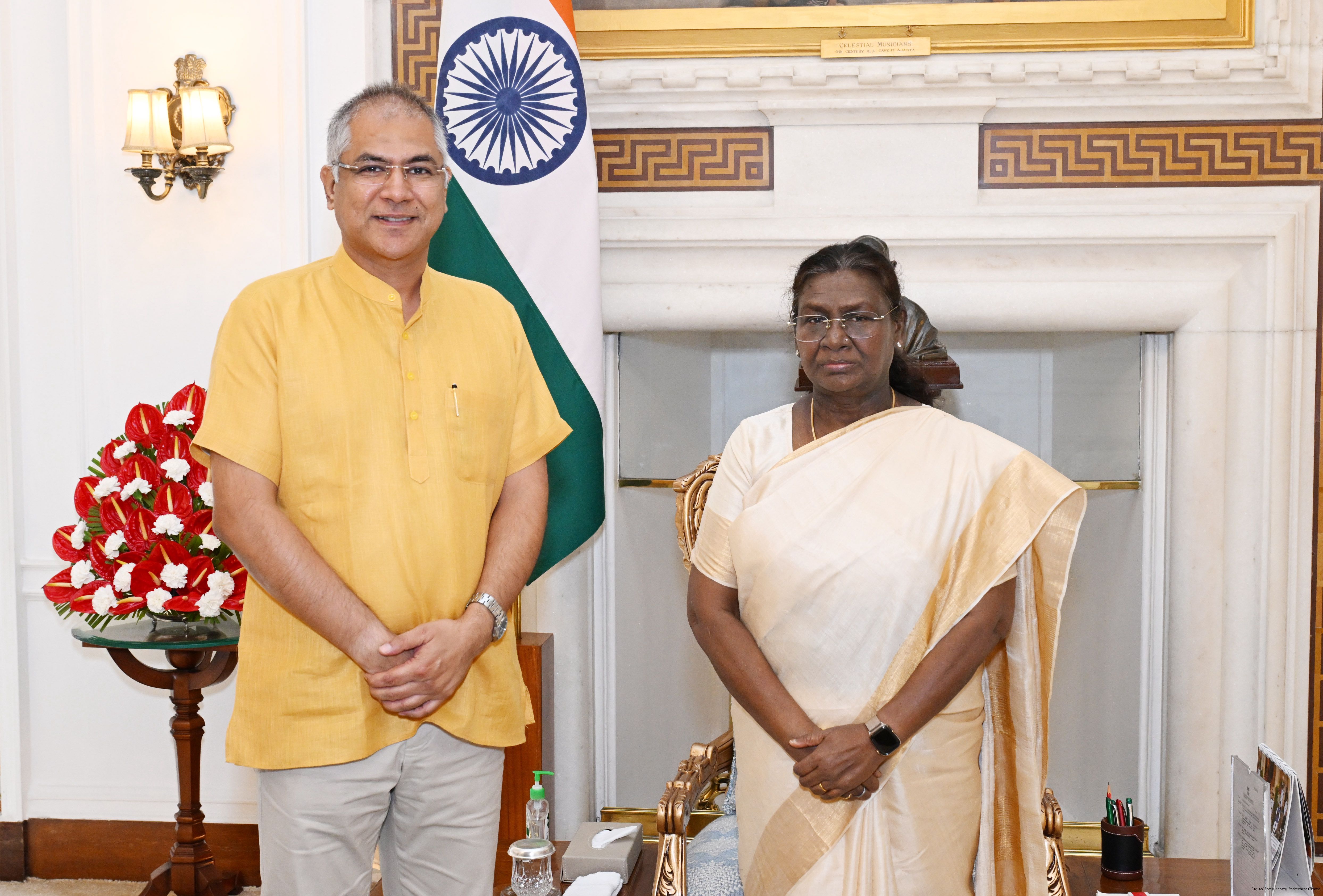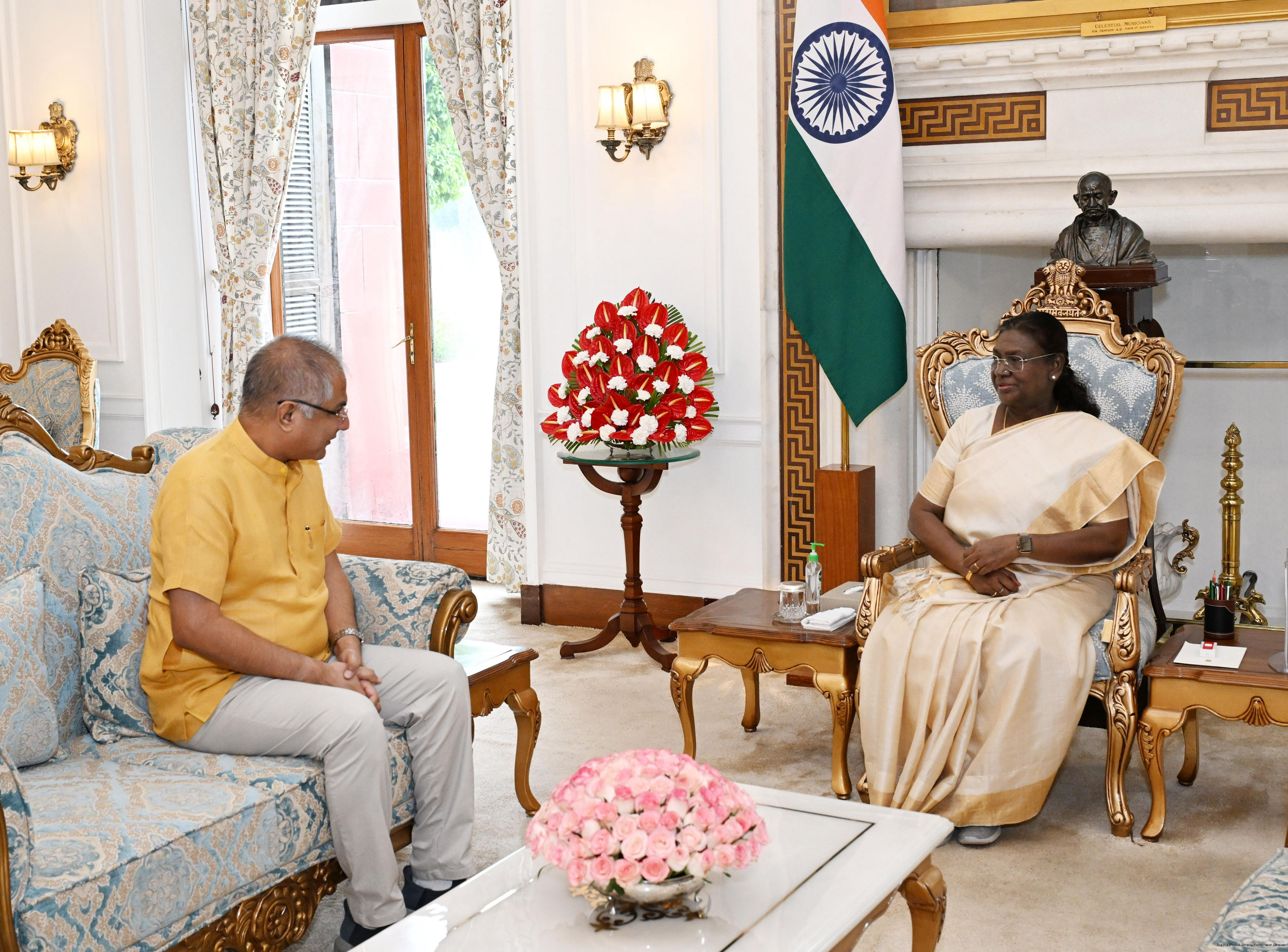 | Caption: | Shri Subodh Tiwari, Chief Executive Officer, Kaivalyadhama, Lonavala, Pune meeting with the President of India, Smt. Droupadi Murmu at Rashtrapati Bhavan on June 25, 2025. |