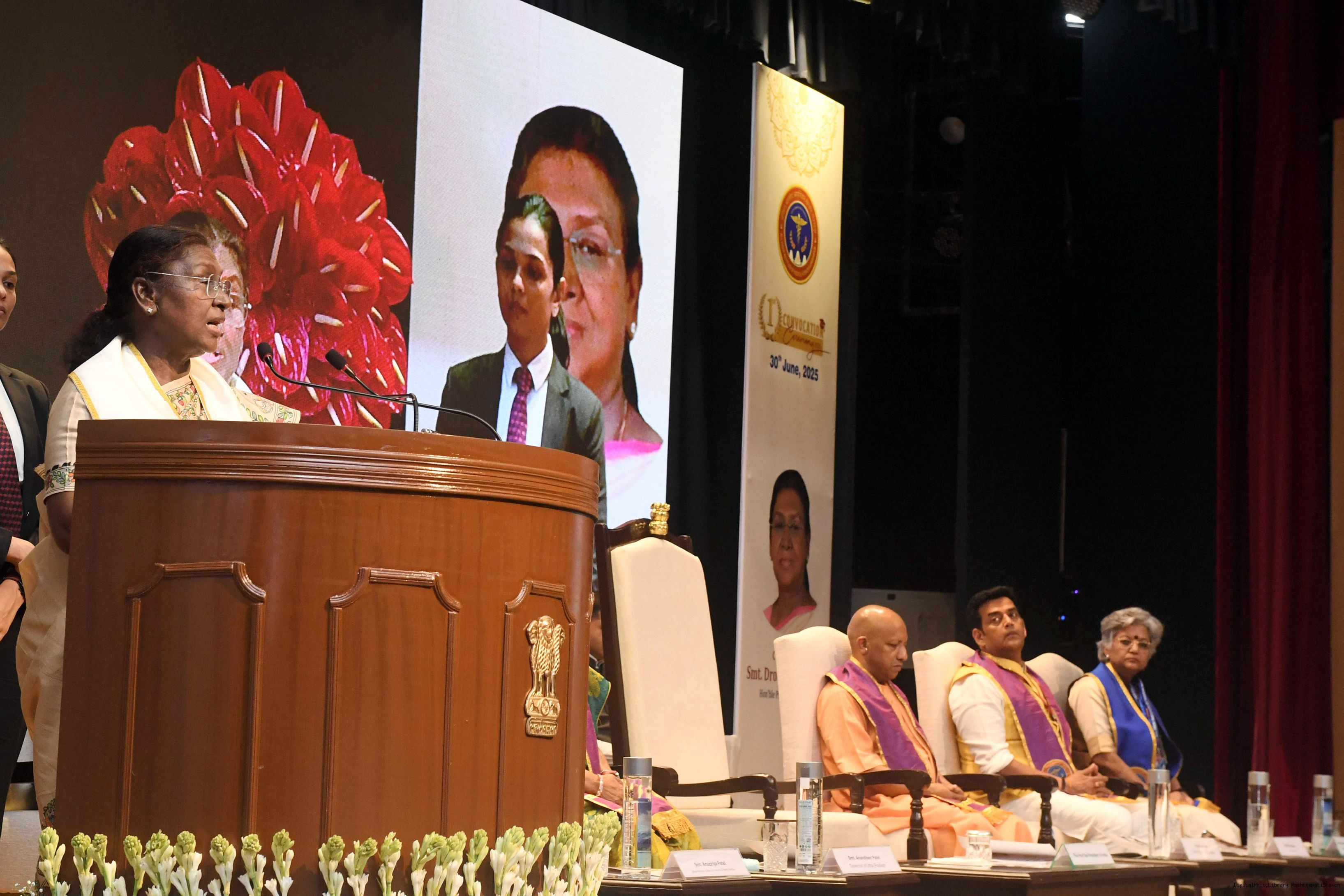 Caption: The President of India, Smt Droupadi Murmu graced the first convocation ceremony of AIIMS Gorakhpur at Gorakhpur, Uttar Pradesh on June 30, 2025.