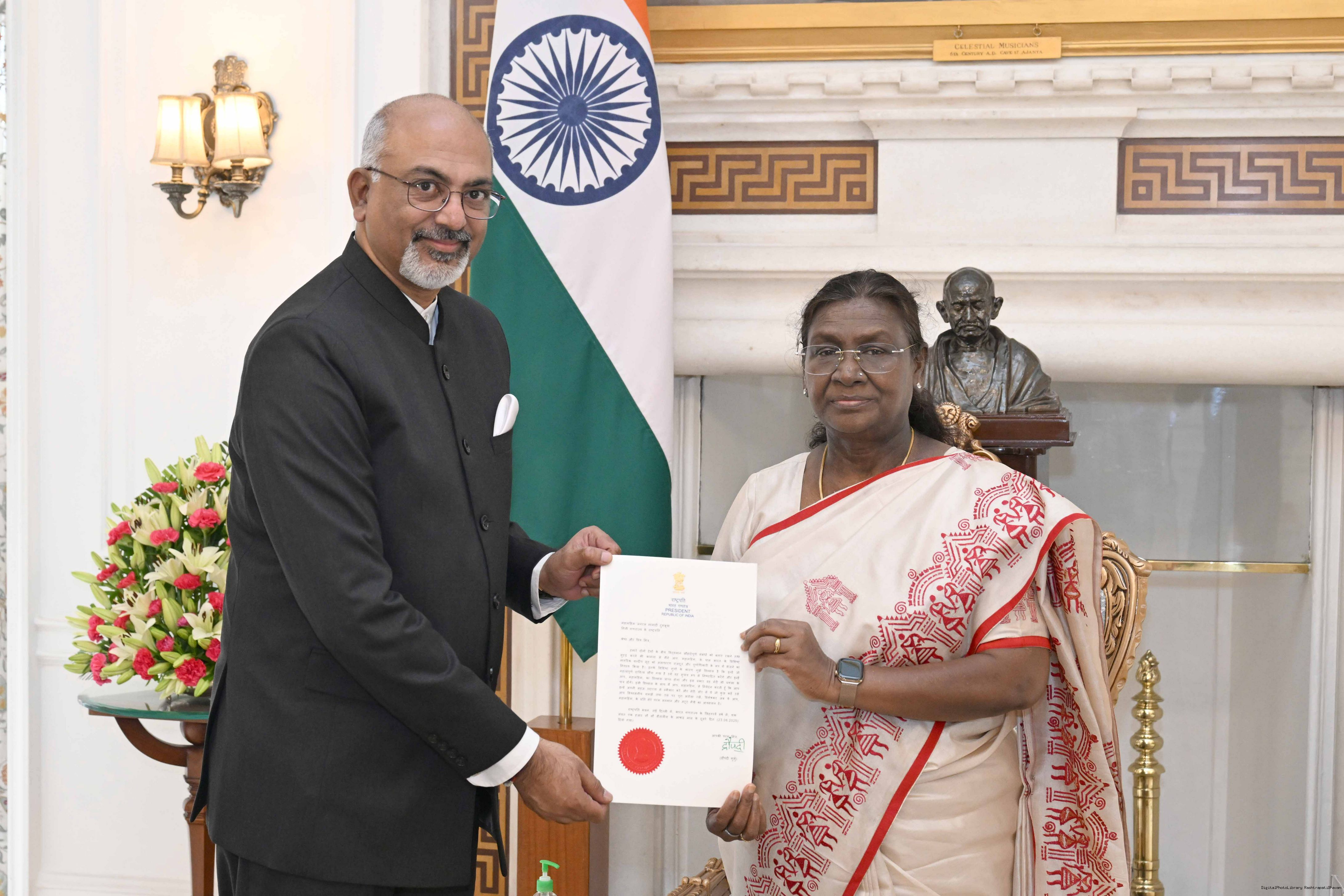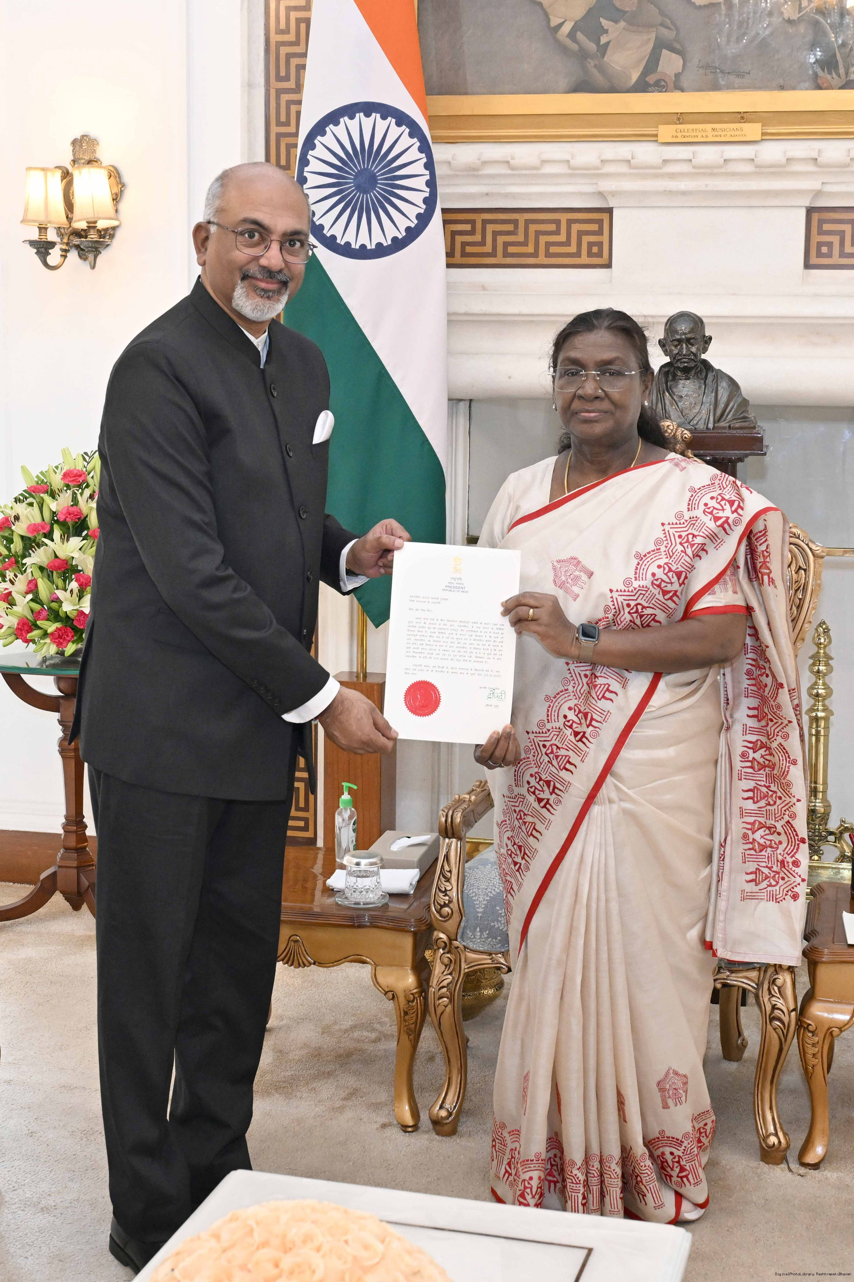 | Caption: | The Ambassador-designate of India to the Republic of Guinea, Shri Sandeep Sood meeting with the President of India, Smt Droupadi Murmu at Rashtrapati Bhavan on July 3, 2025. |