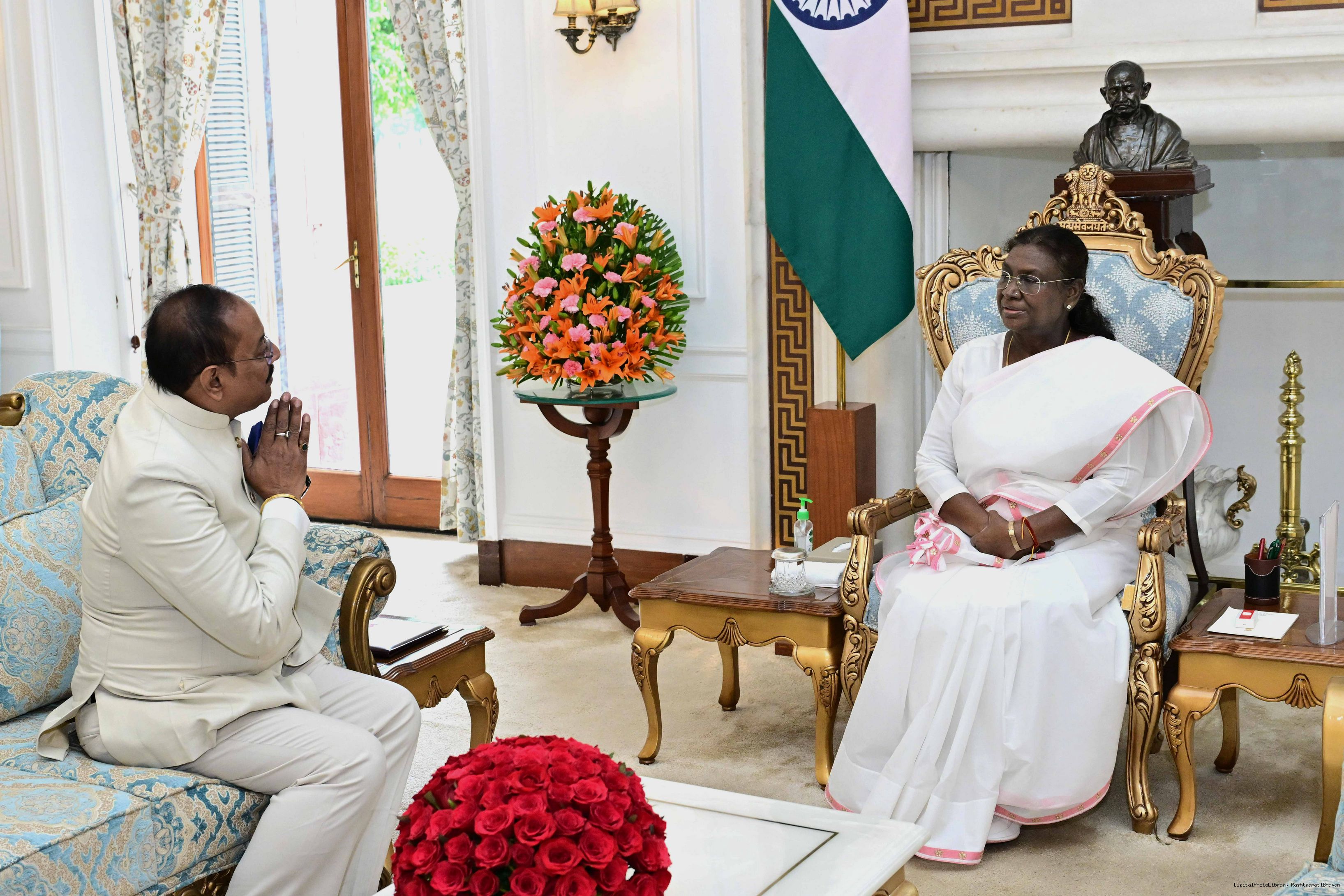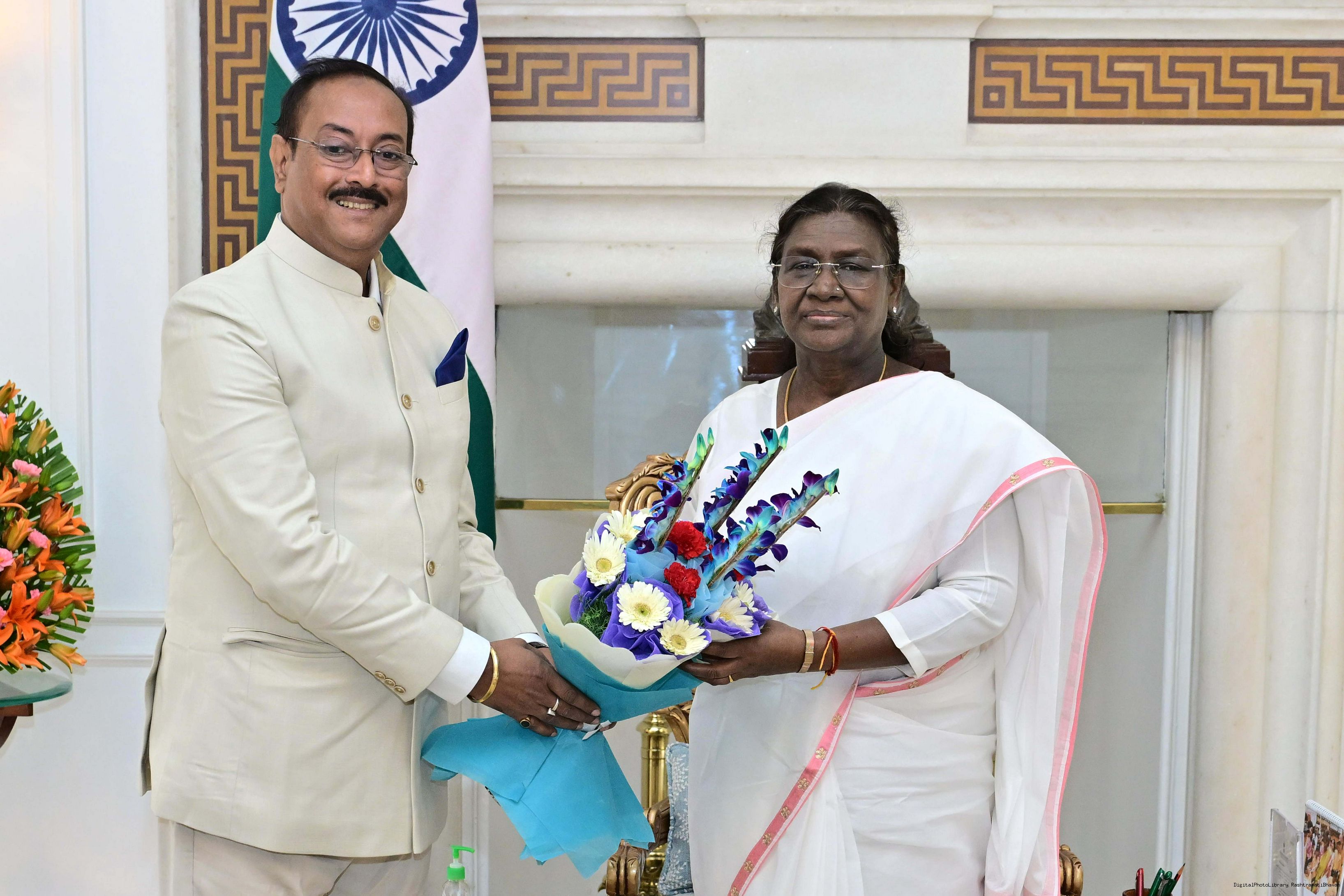 | Caption: | Prof. Abhijit Dutta, Vice-Chancellor, Sikkim University (Central University), Gangtok, Sikkim meeting with the President of India, Smt Droupadi Murmu at Rashtrapati Bhavan on July 7, 2025. |