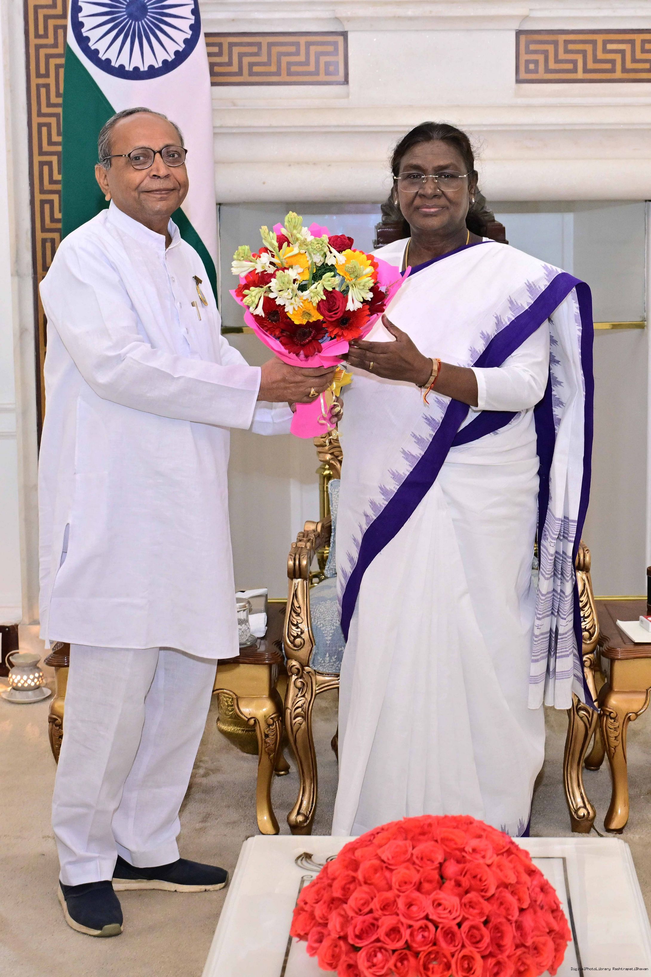 | Caption: | Rajyogi Dr. BK Nathmal, National Co-ordinator, Brahma Kumaris, Cuttak, Odisha meeting with the President of India, Smt Droupadi Murmu at Rashtrapati Bhavan on July 8, 2025. |