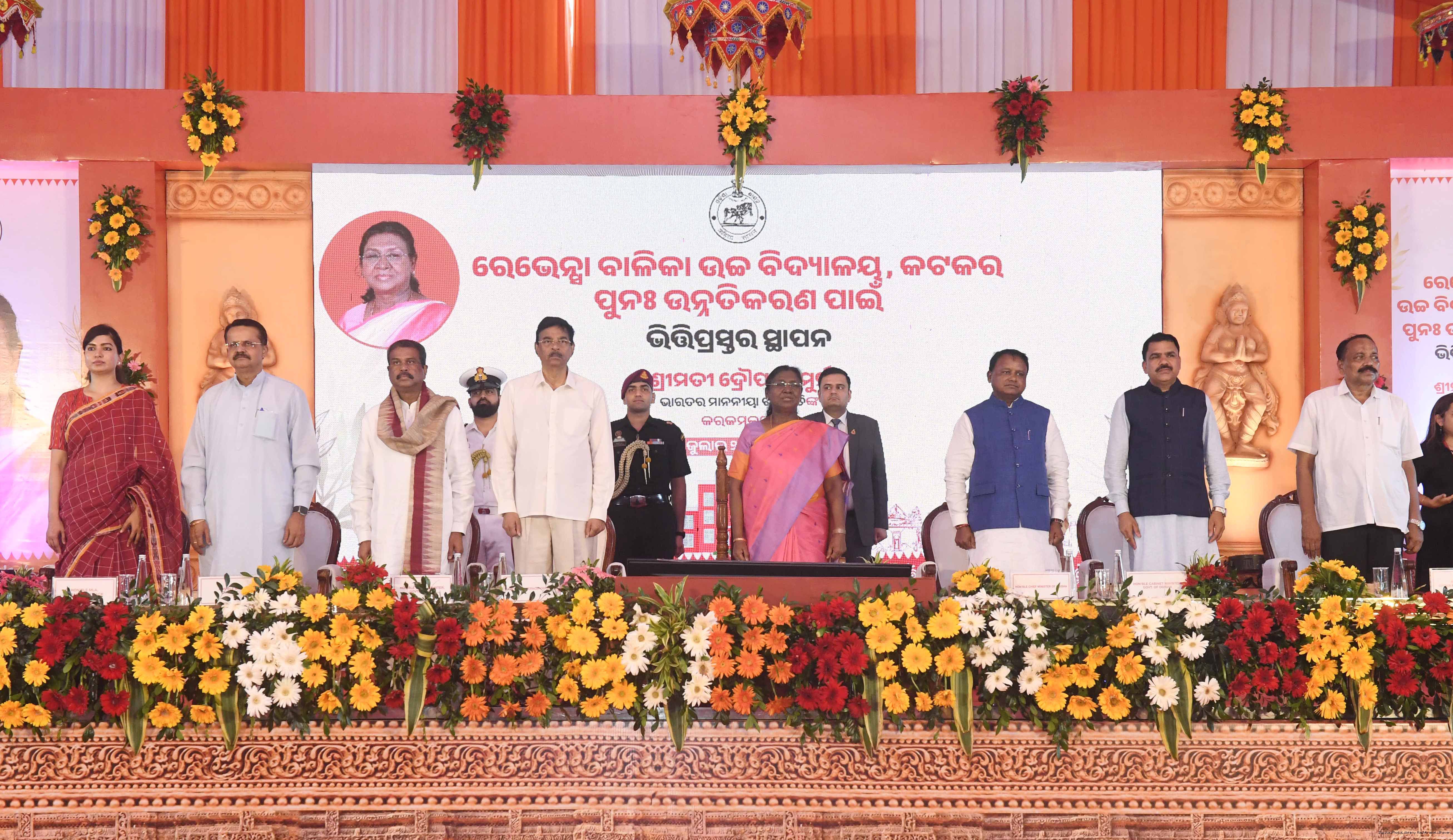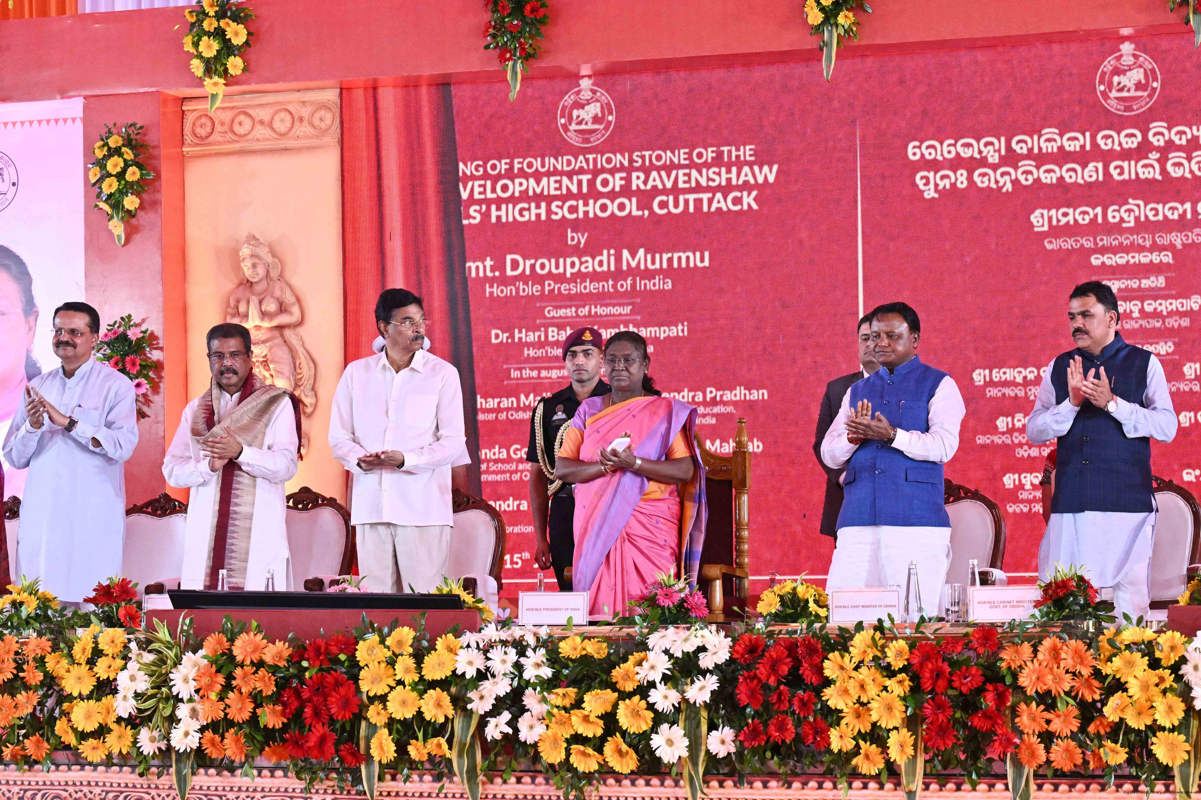 | Caption: | The President of India, Smt Droupadi Murmu laid the foundation stone for the redevelopment of three buildings of Ravenshaw Girls’ High School at Cuttack Odisha on July 15, 2025. |