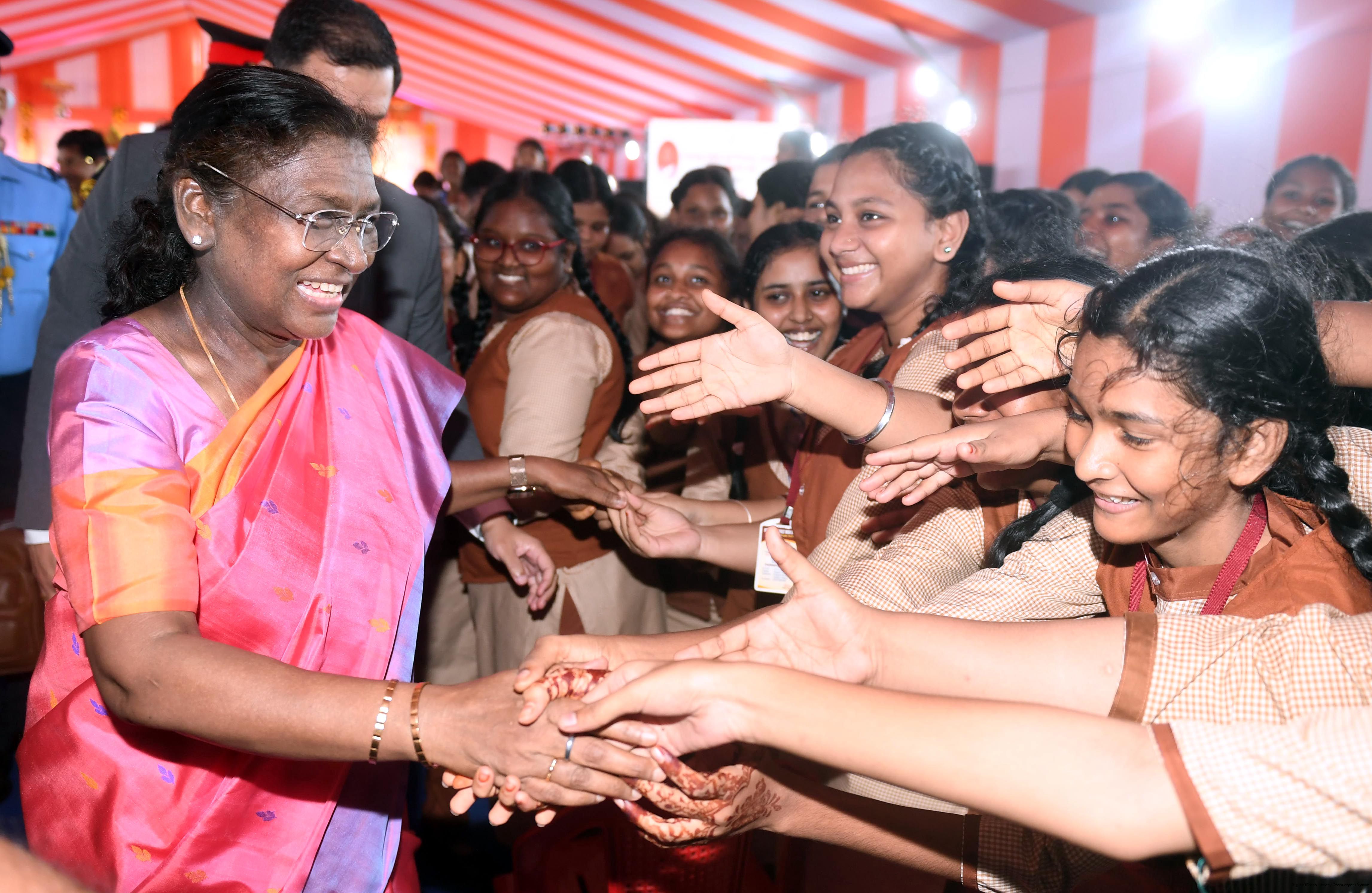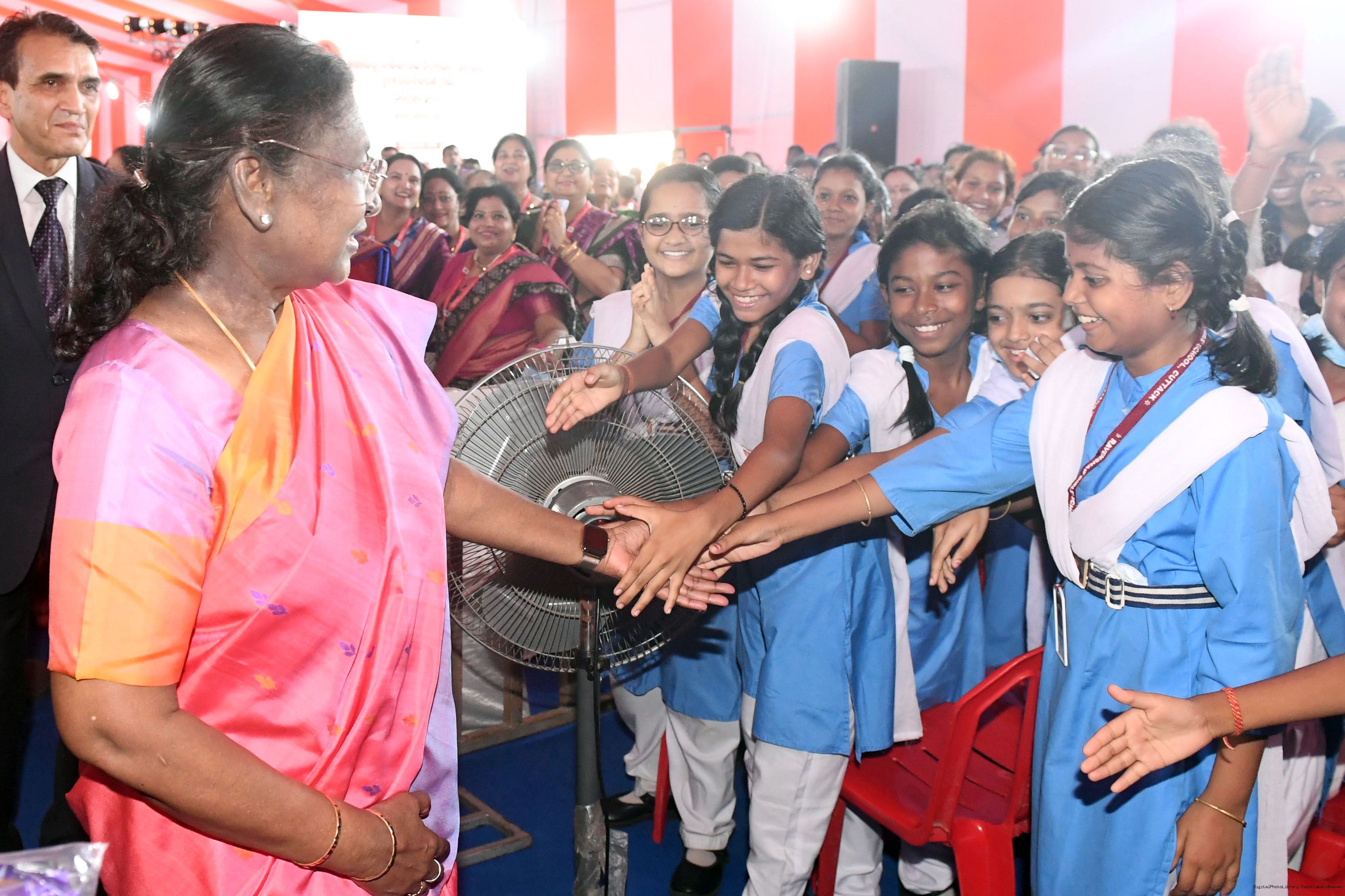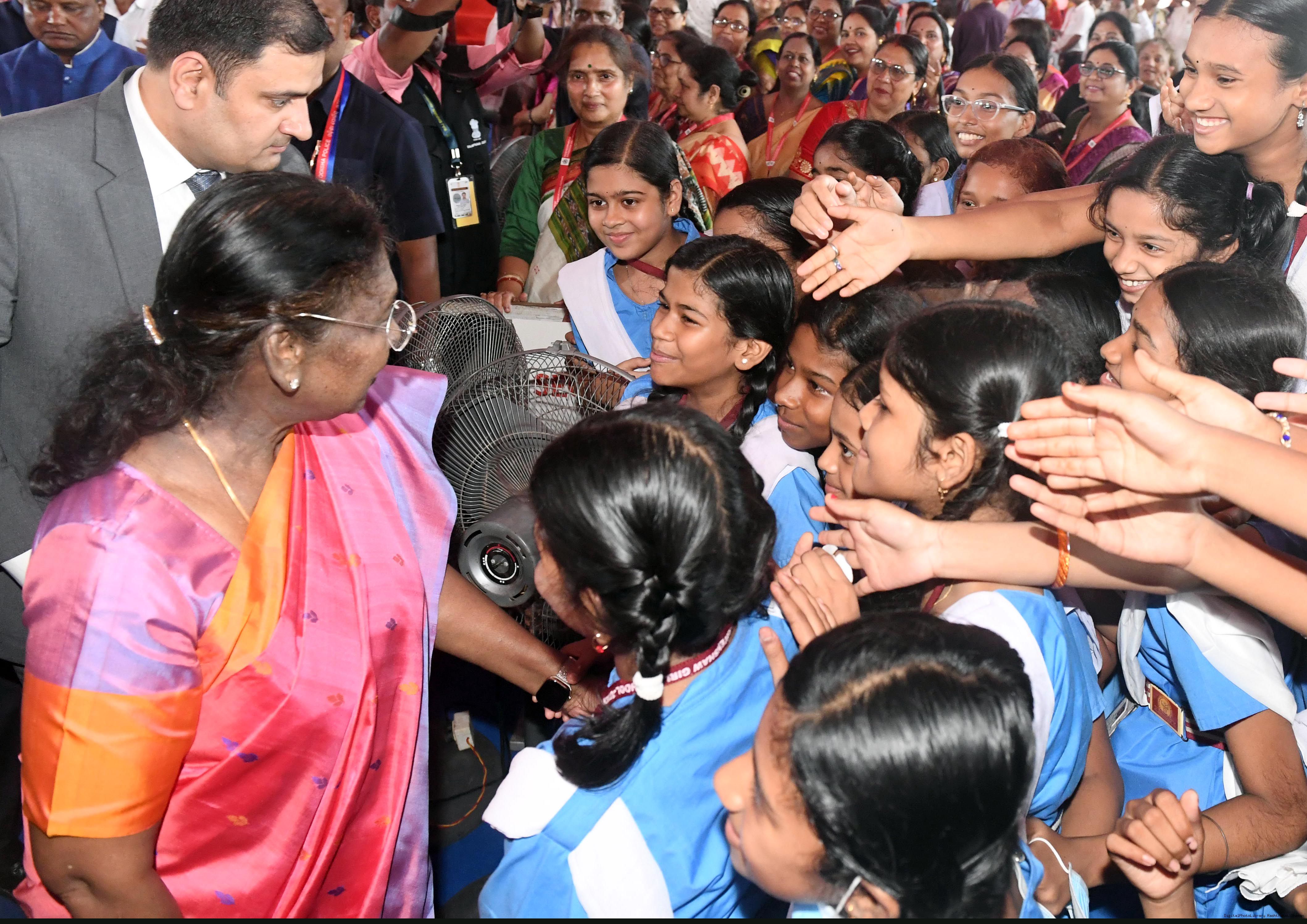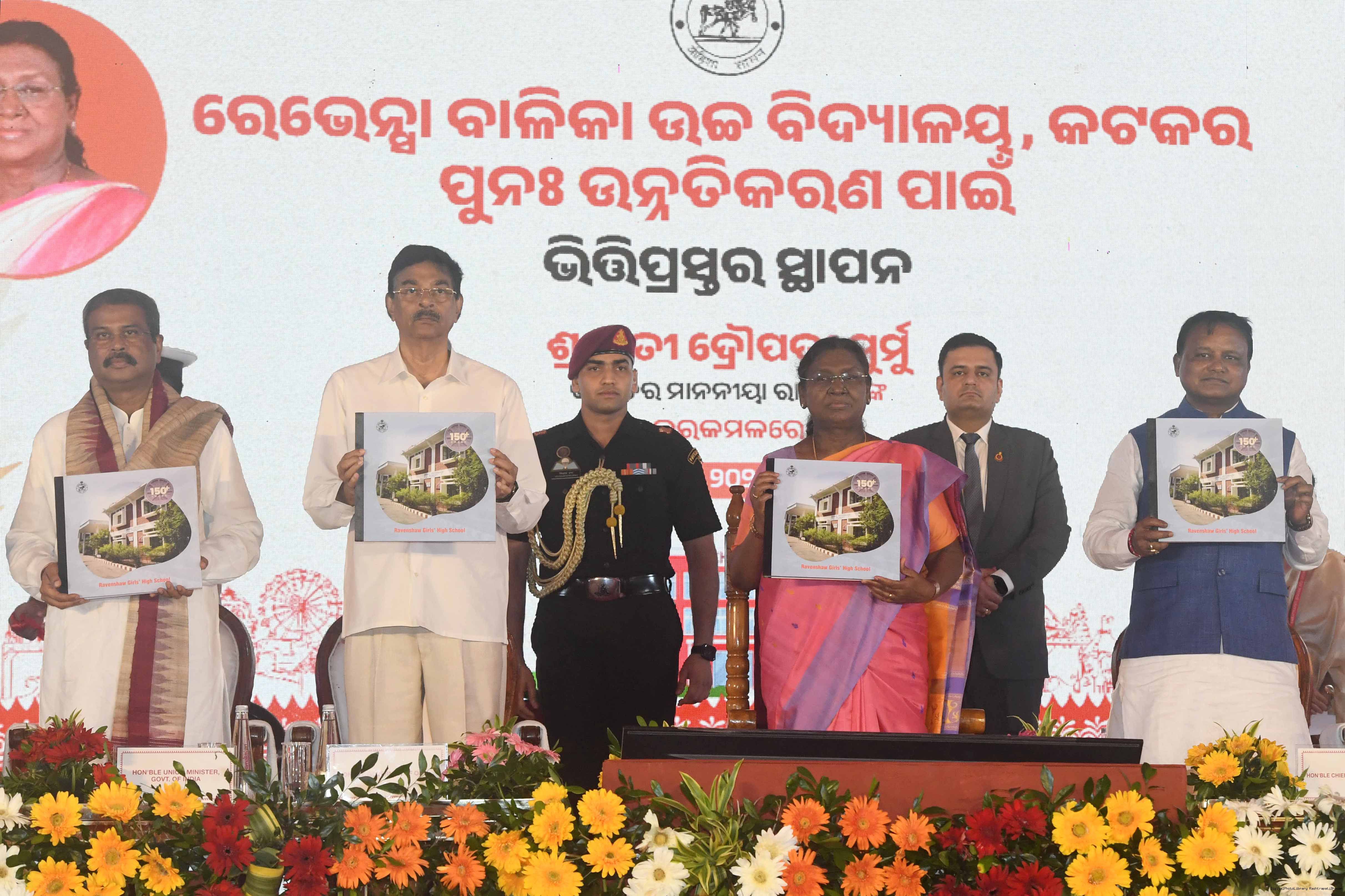 | Caption: | The President of India, Smt Droupadi Murmu laid the foundation stone for the redevelopment of three buildings of Ravenshaw Girls’ High School at Cuttack Odisha on July 15, 2025. |