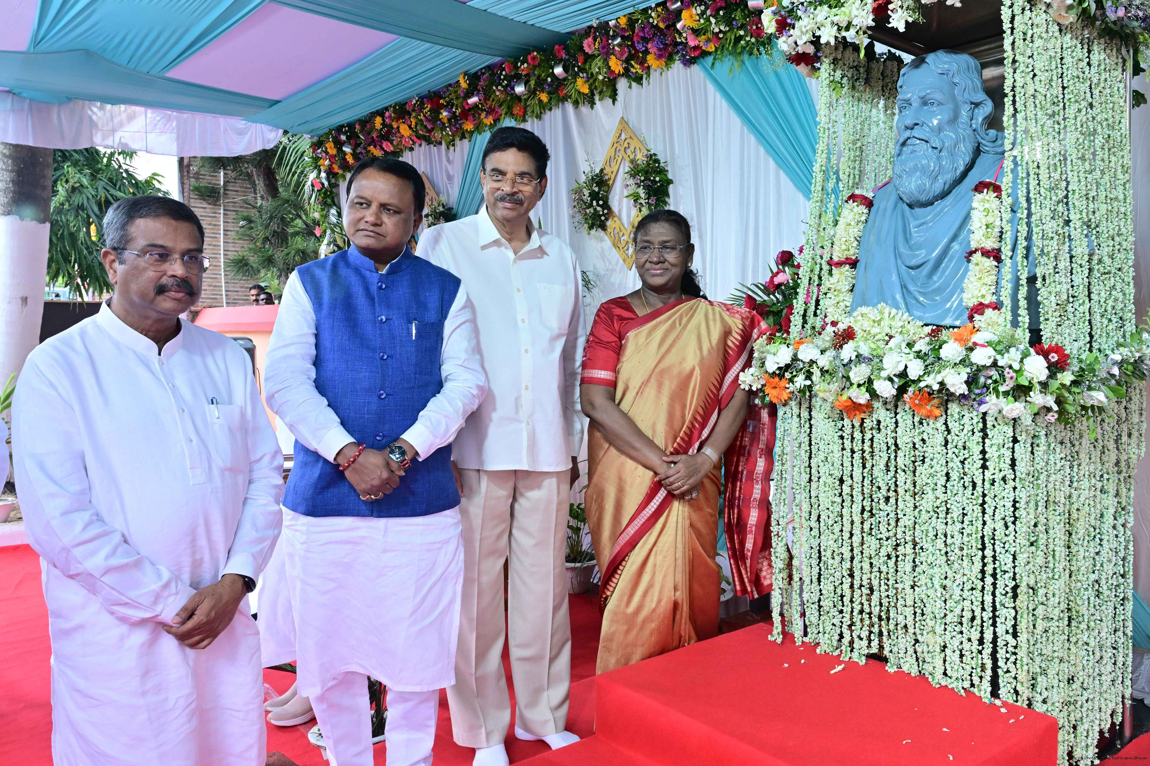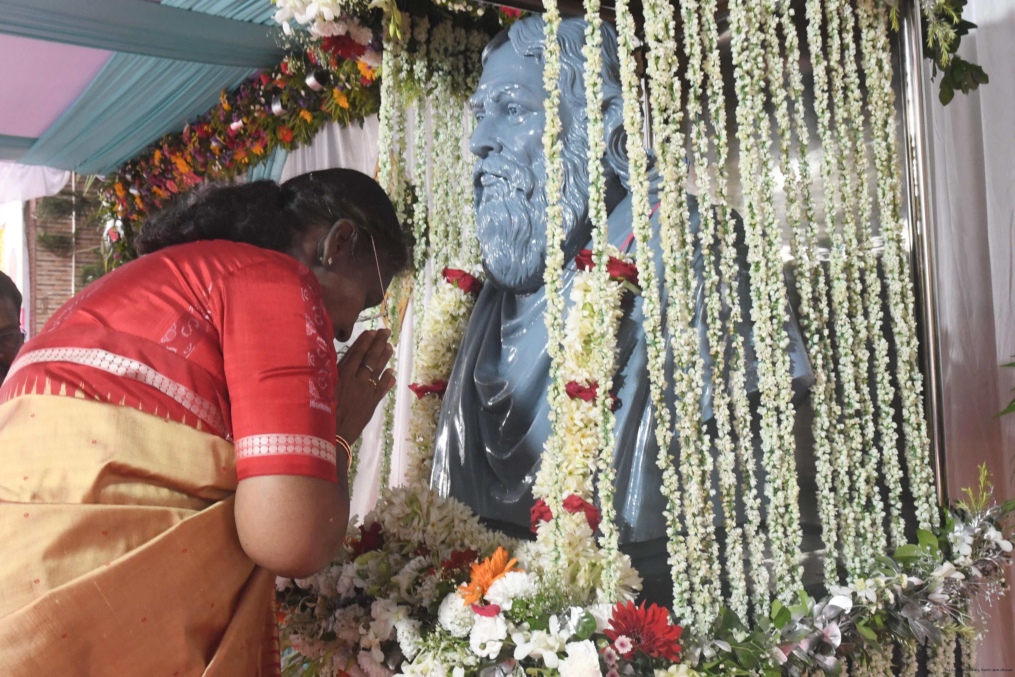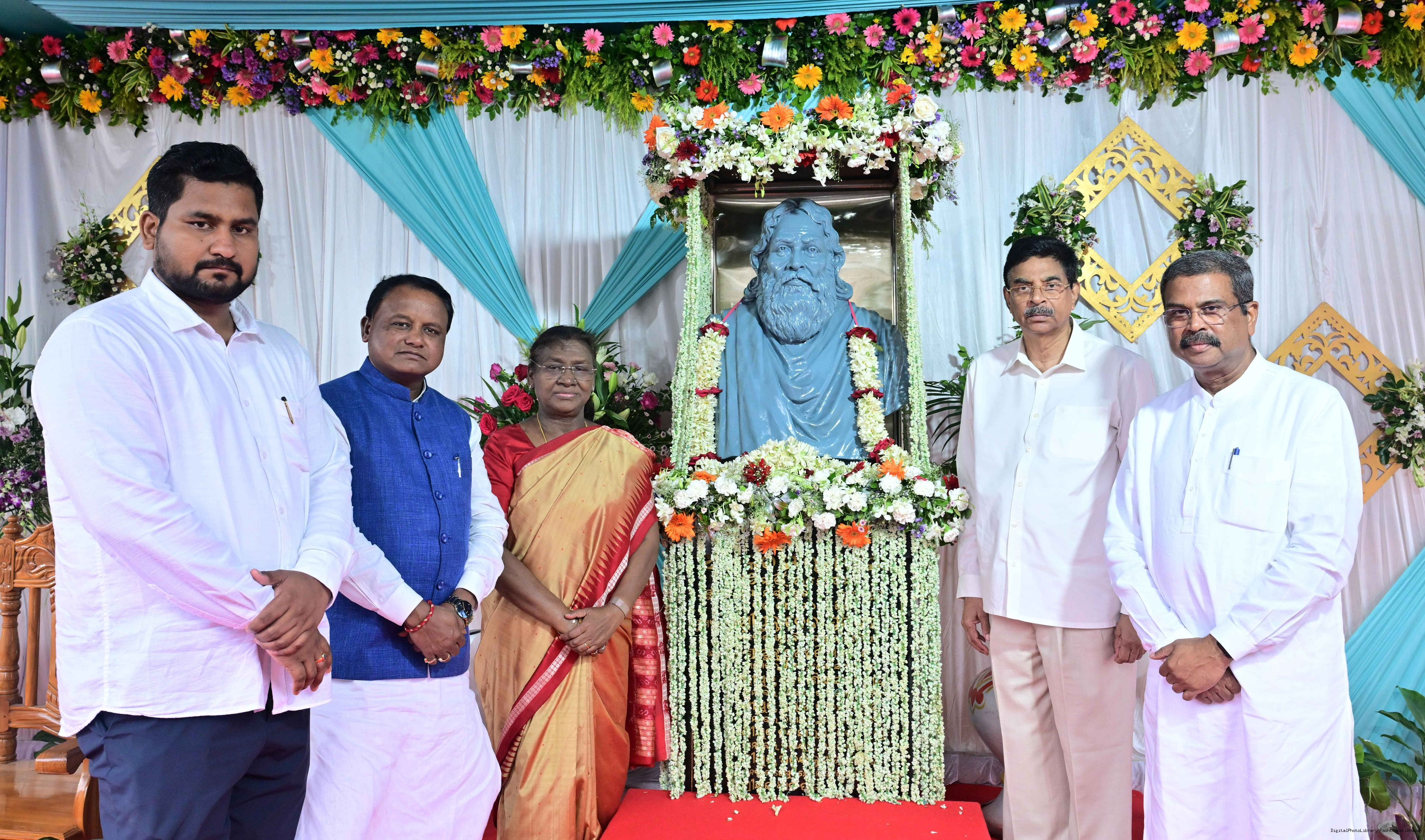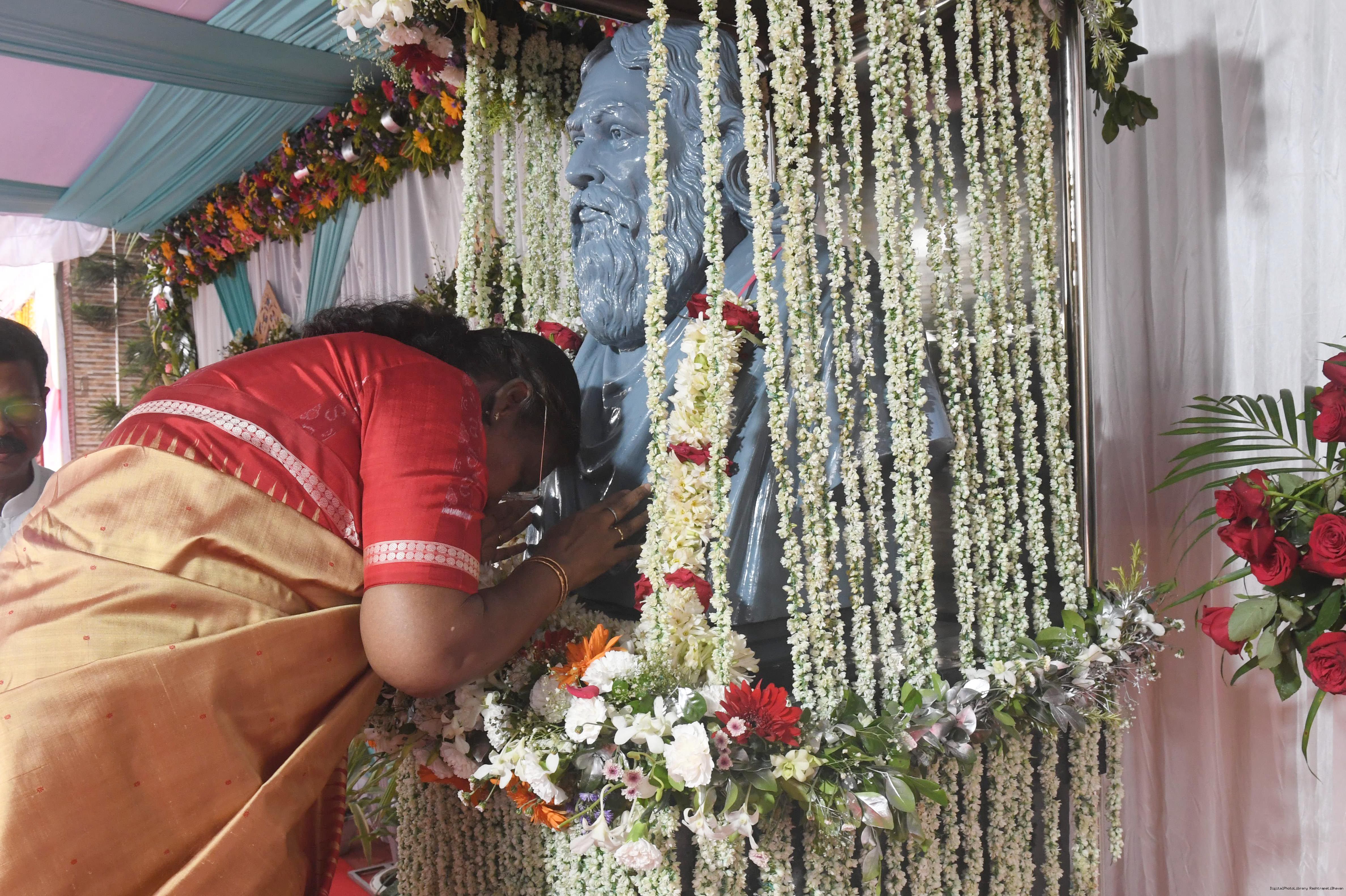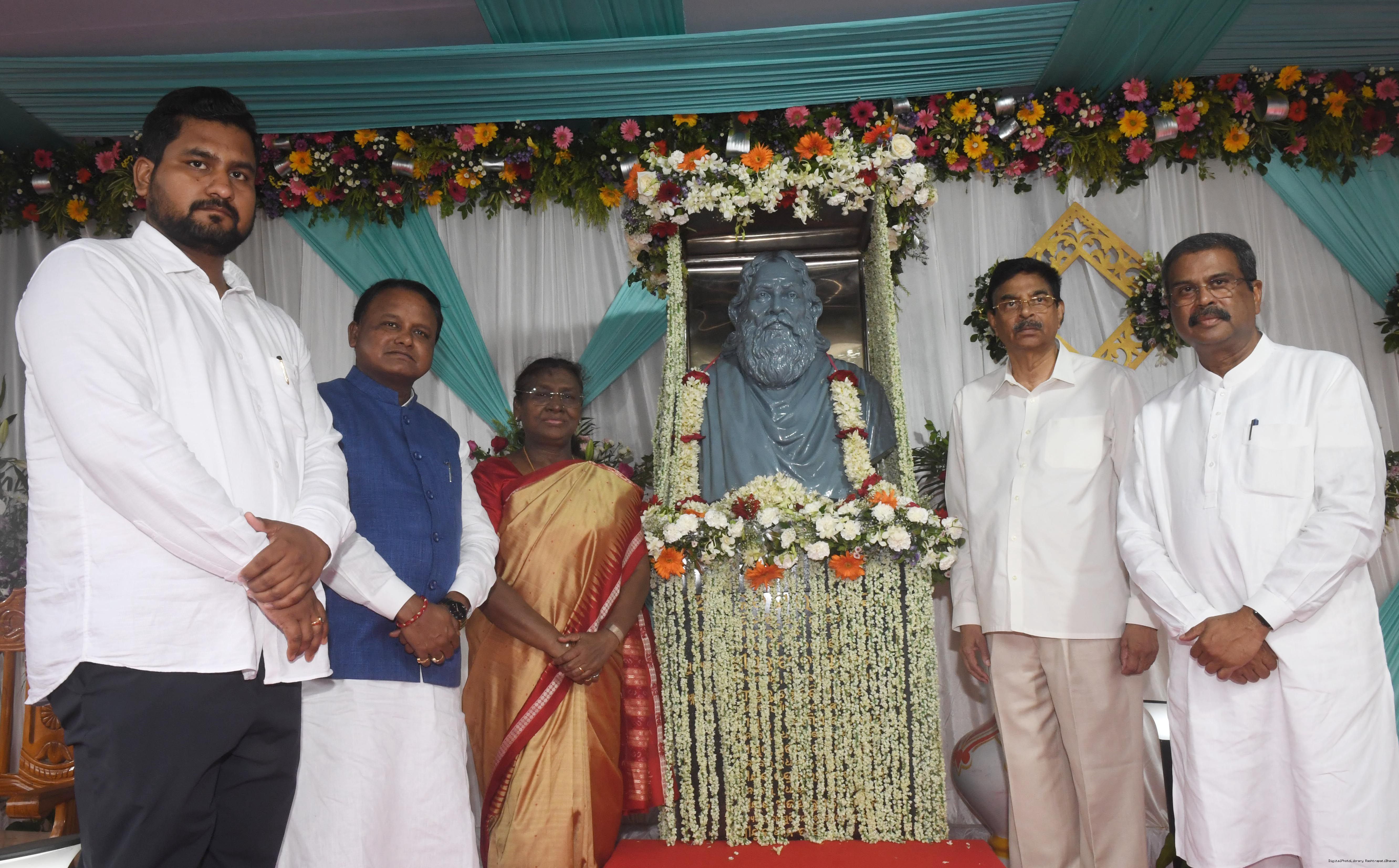 | Caption: | The President of India, Smt Droupadi Murmu paid floral Tribute to the statue of Adikabi Sarala Das at Cuttack, Odisha, on July 15, 2025. |