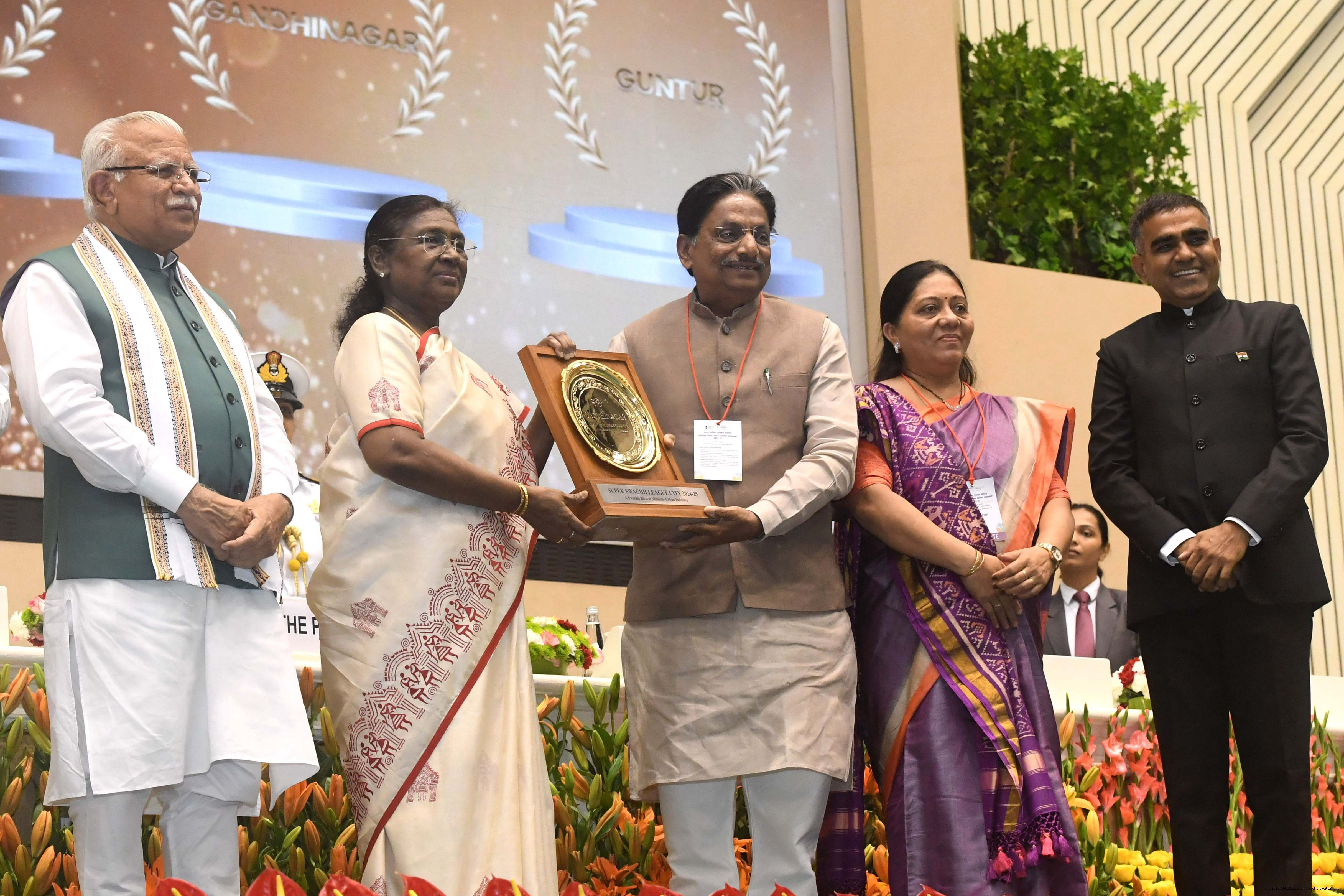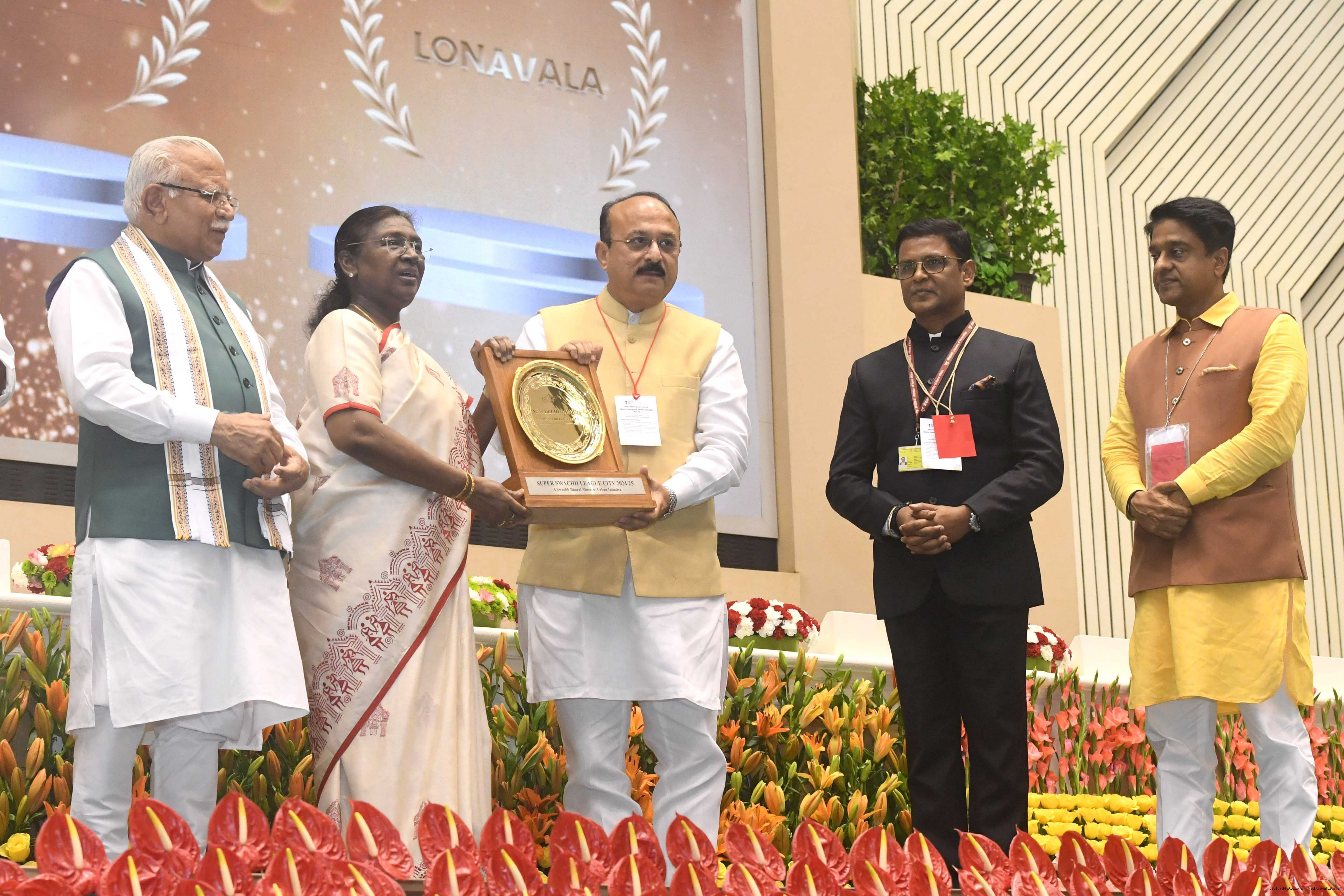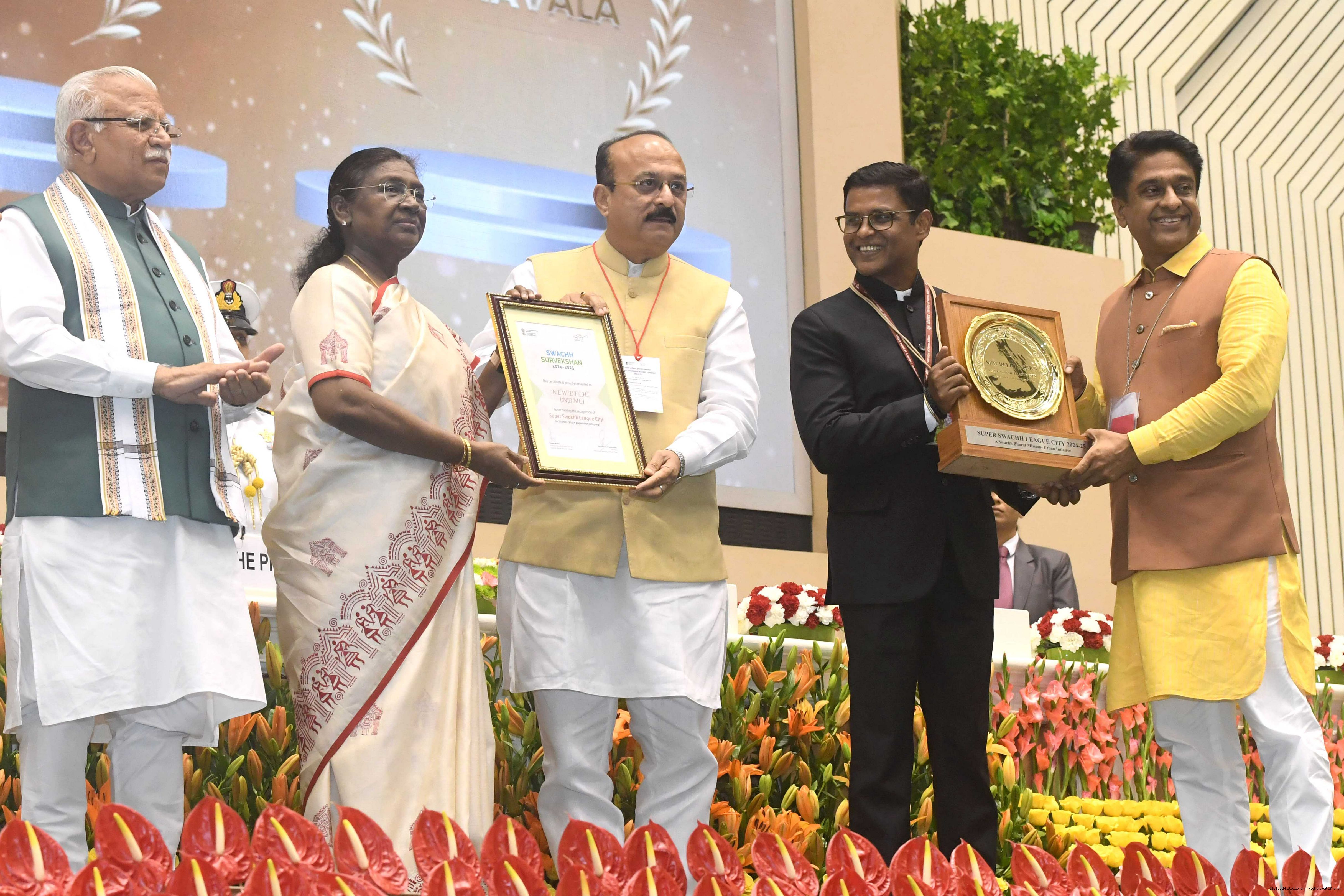 | Caption: | The President of India, Smt Droupadi Murmu, presented Swachh Survekshan awards at a function organized by the Ministry of Housing and Urban Affairs in New Delhi on July 17, 2025. |