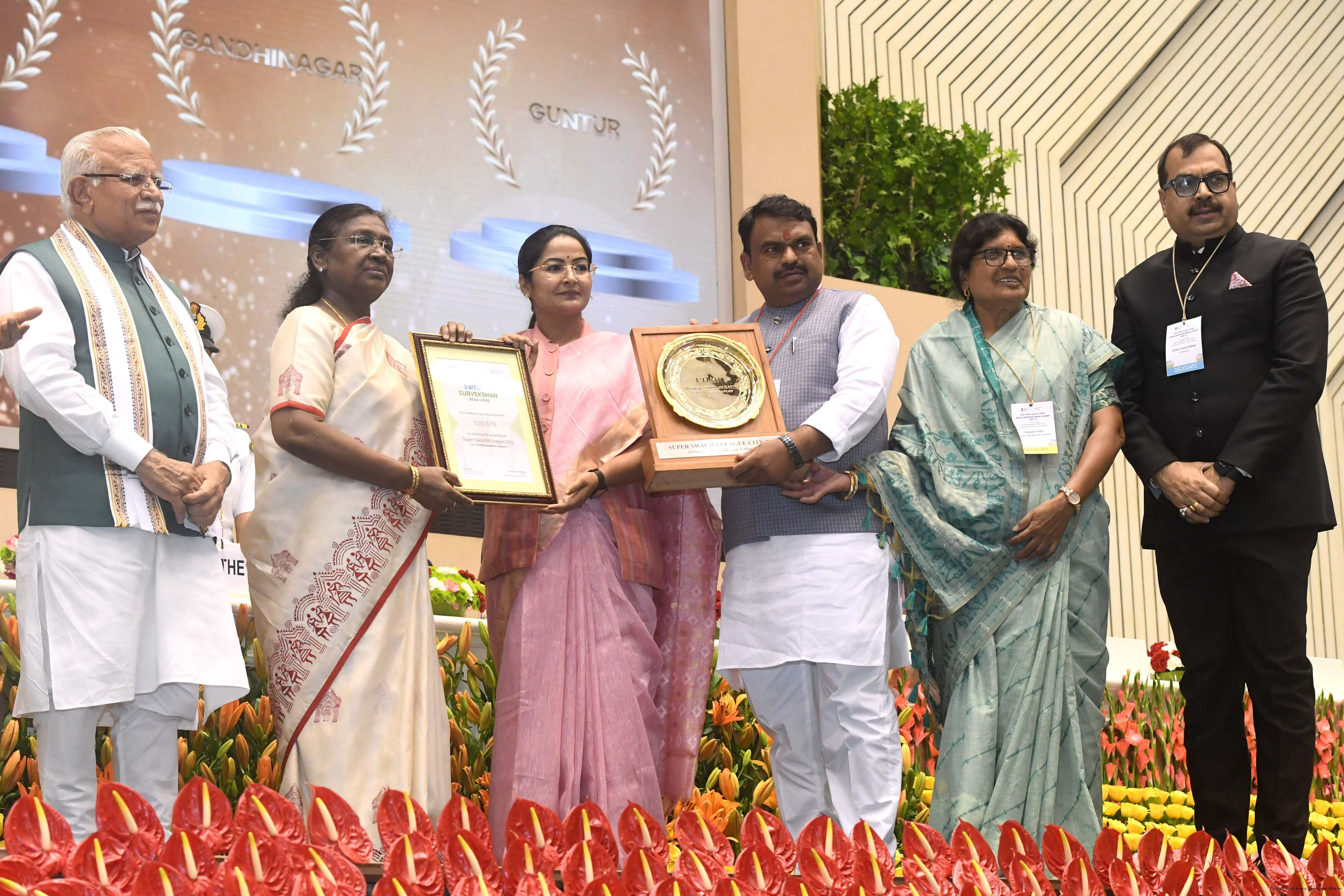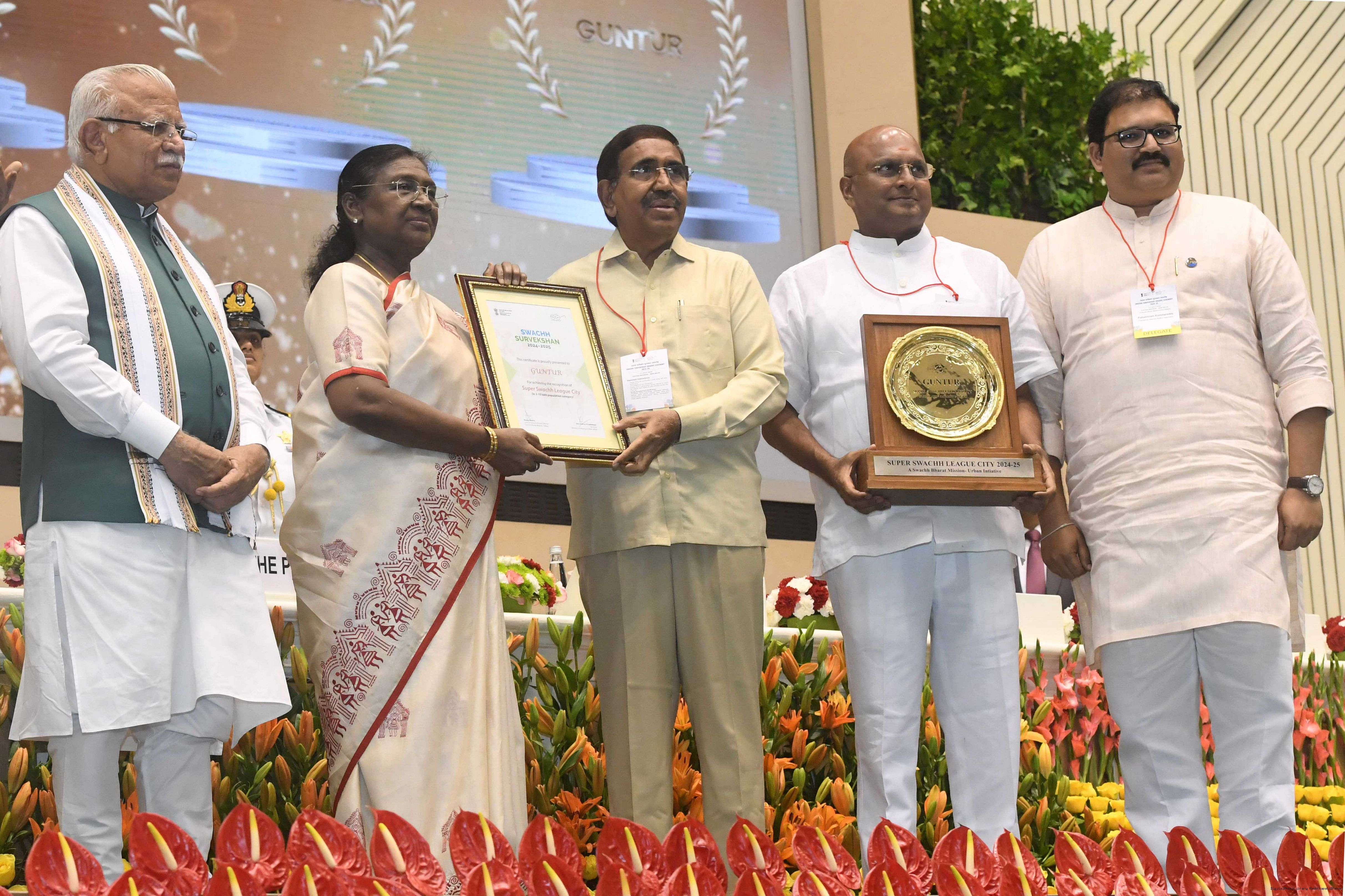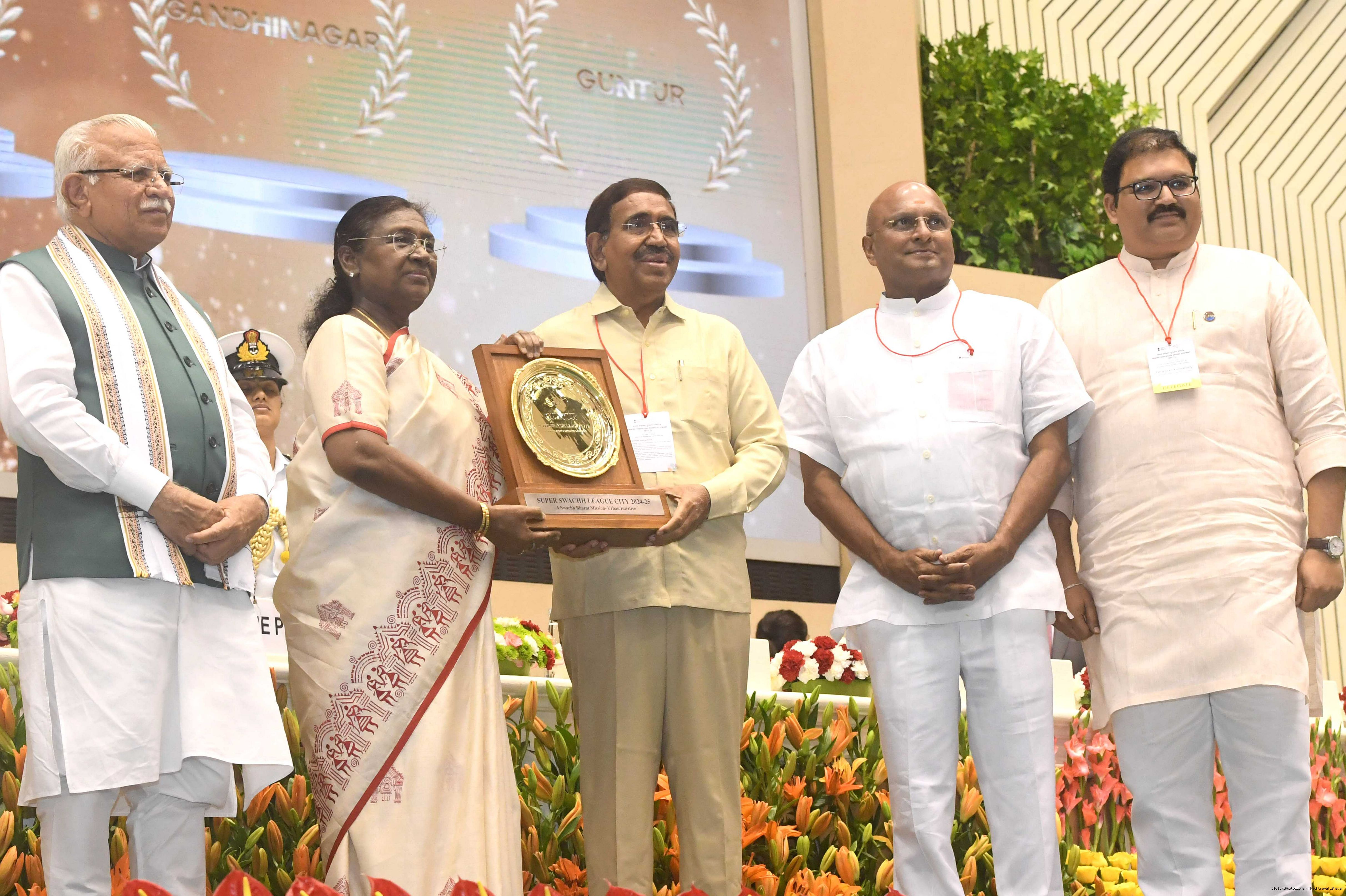 | Caption: | The President of India, Smt Droupadi Murmu, presented Swachh Survekshan awards at a function organized by the Ministry of Housing and Urban Affairs in New Delhi on July 17, 2025. |