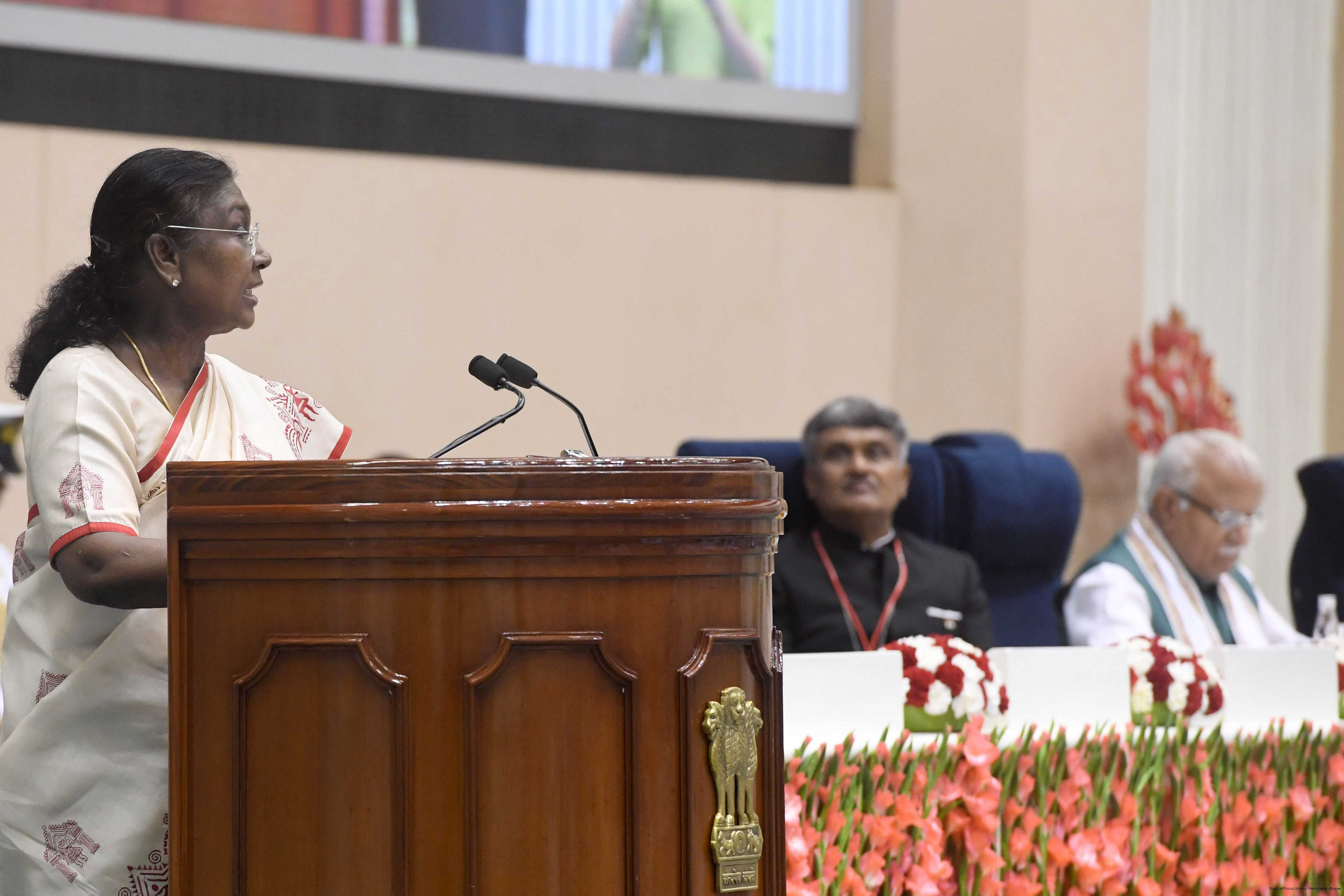 Caption: The President of India, Smt Droupadi Murmu, presented Swachh Survekshan awards at a function organized by the Ministry of Housing and Urban Affairs in New Delhi on July 17, 2025.