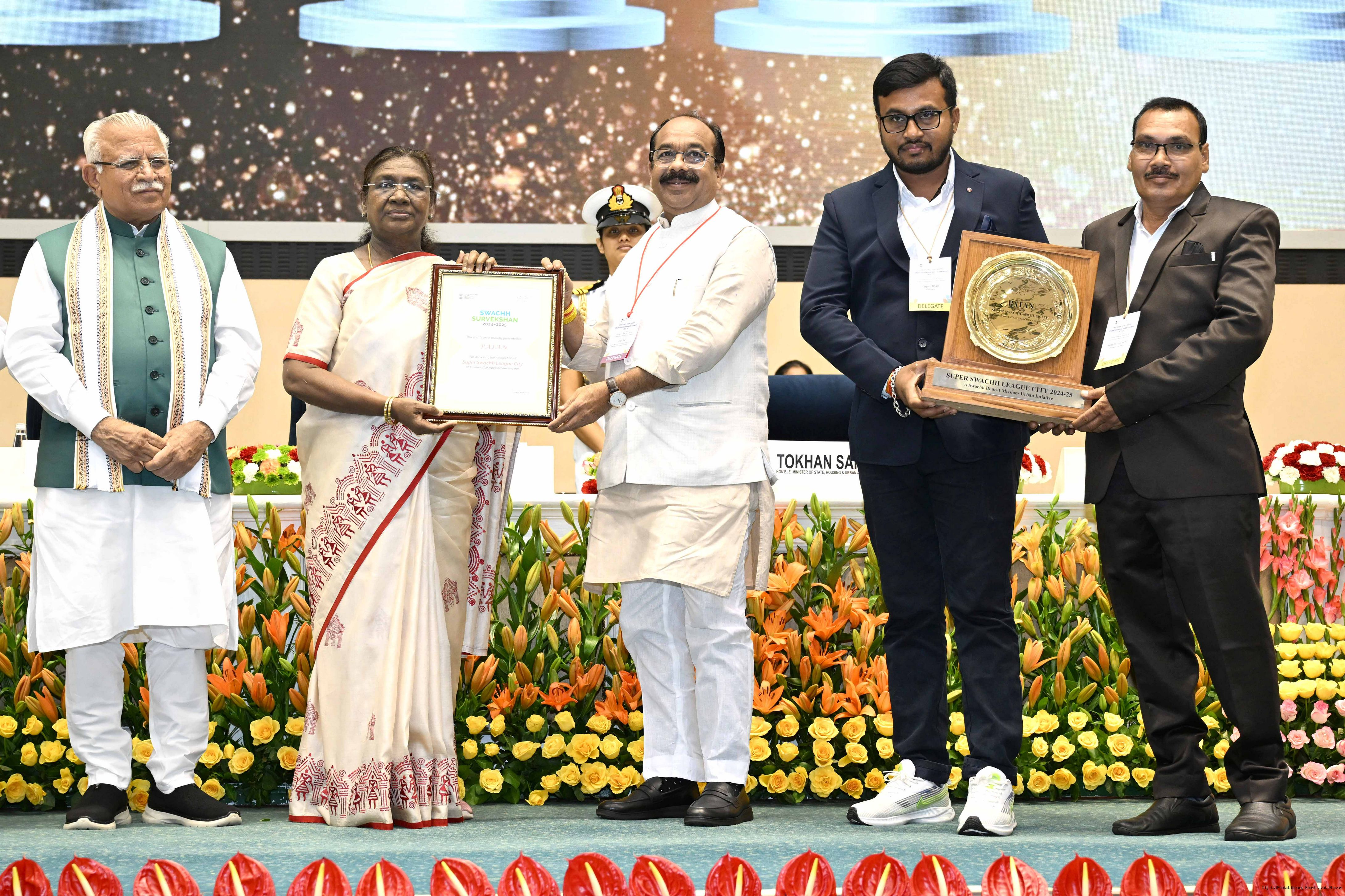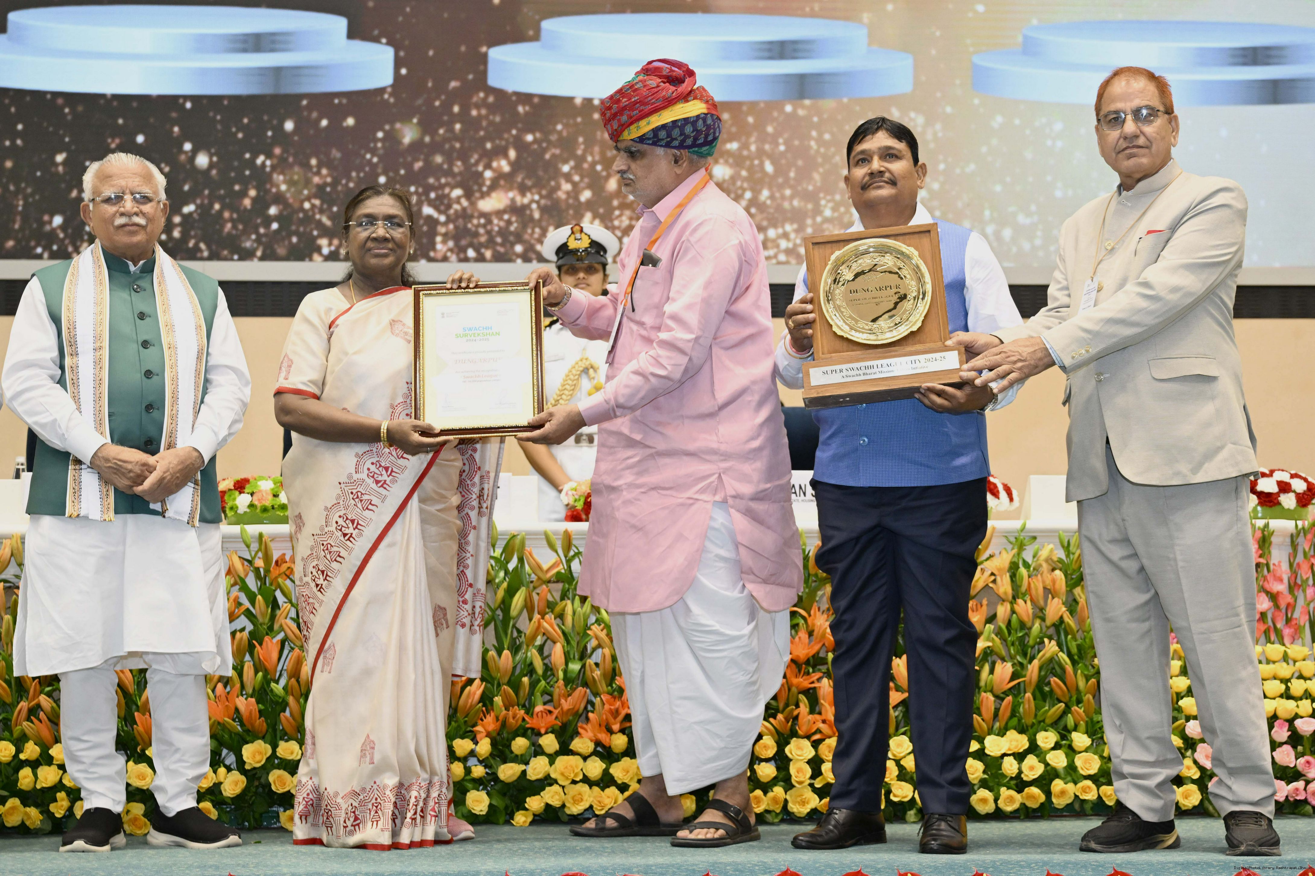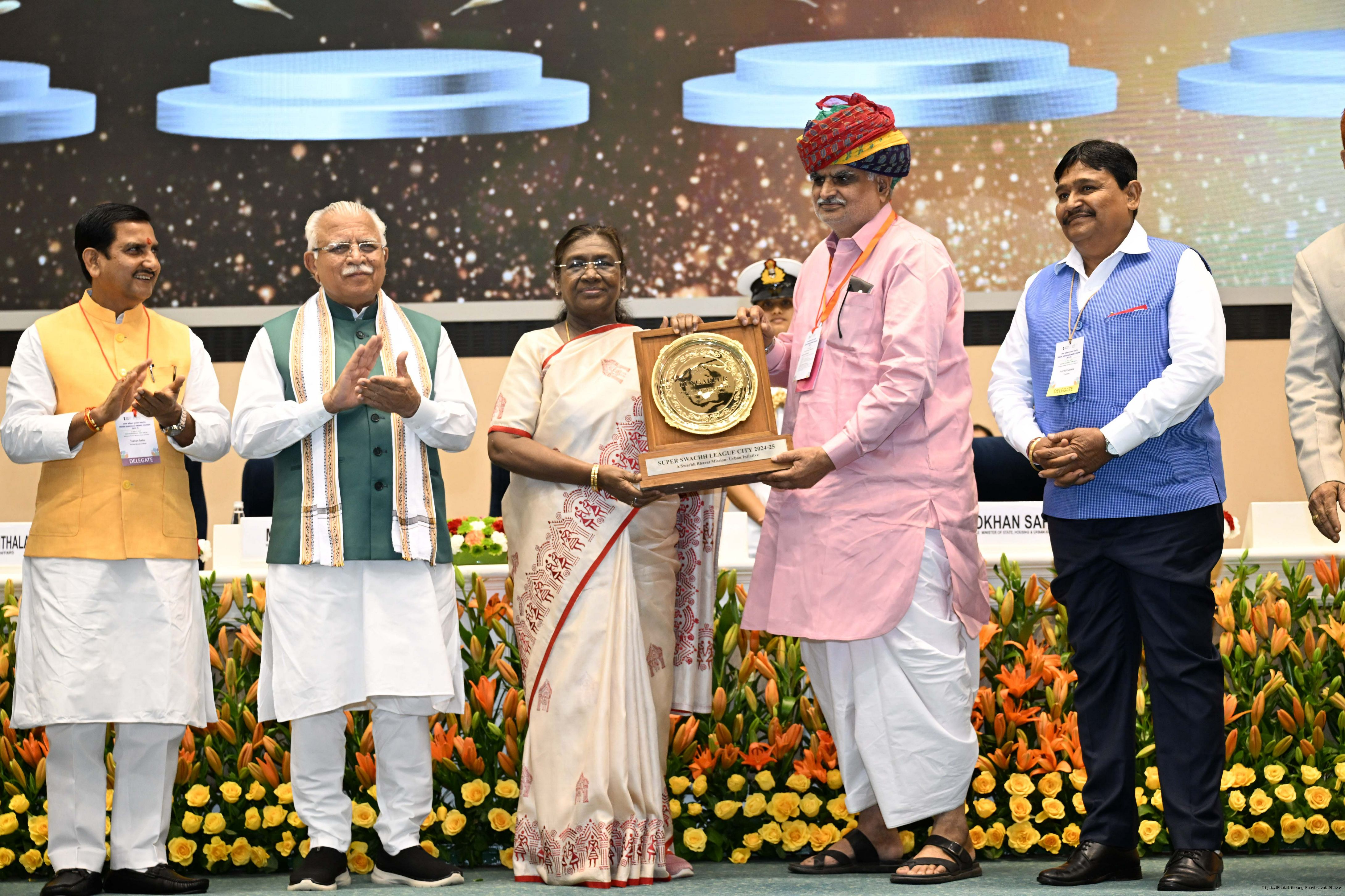 | Caption: | The President of India, Smt Droupadi Murmu, presented Swachh Survekshan awards at a function organized by the Ministry of Housing and Urban Affairs in New Delhi on July 17, 2025. |
