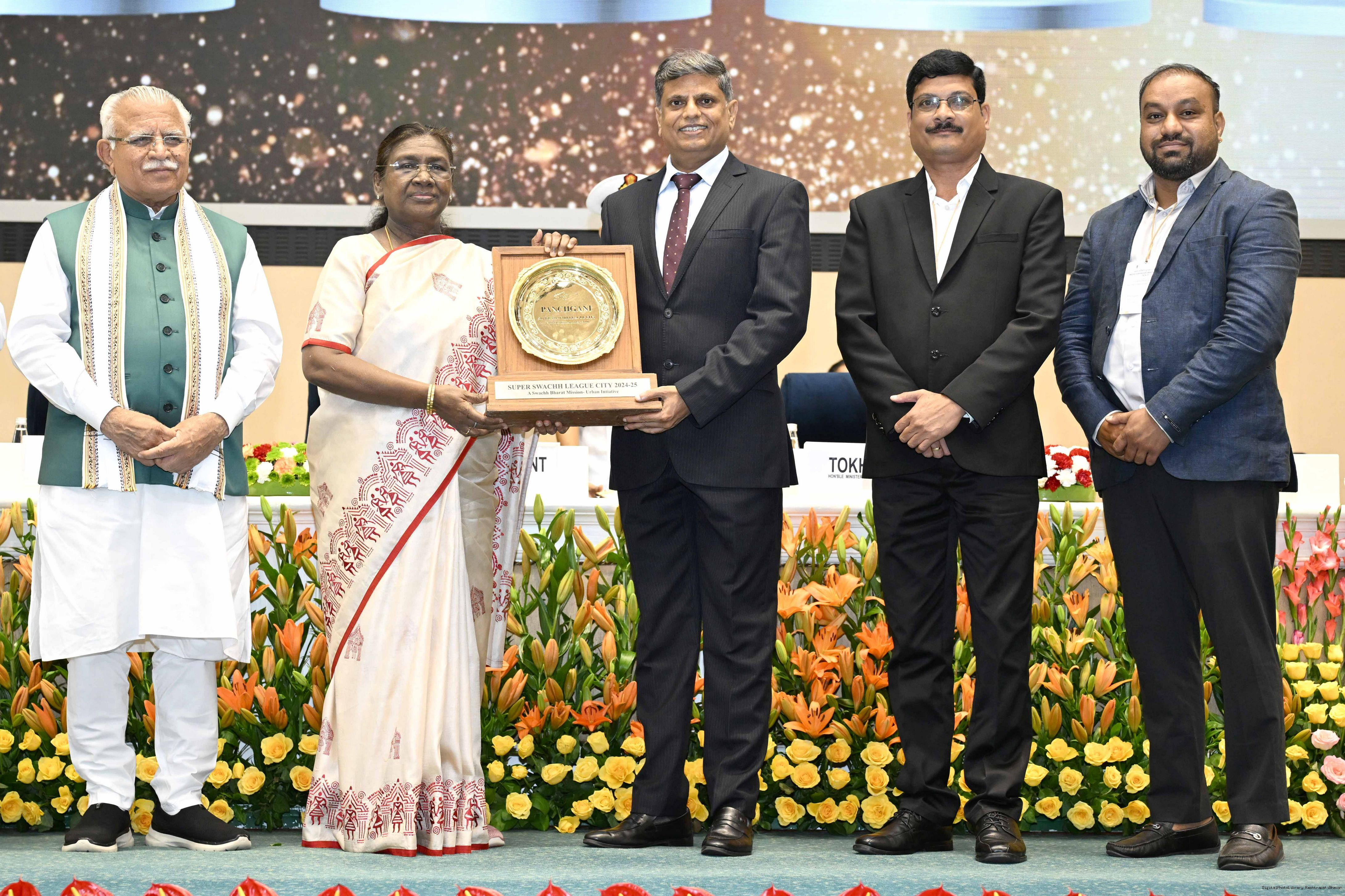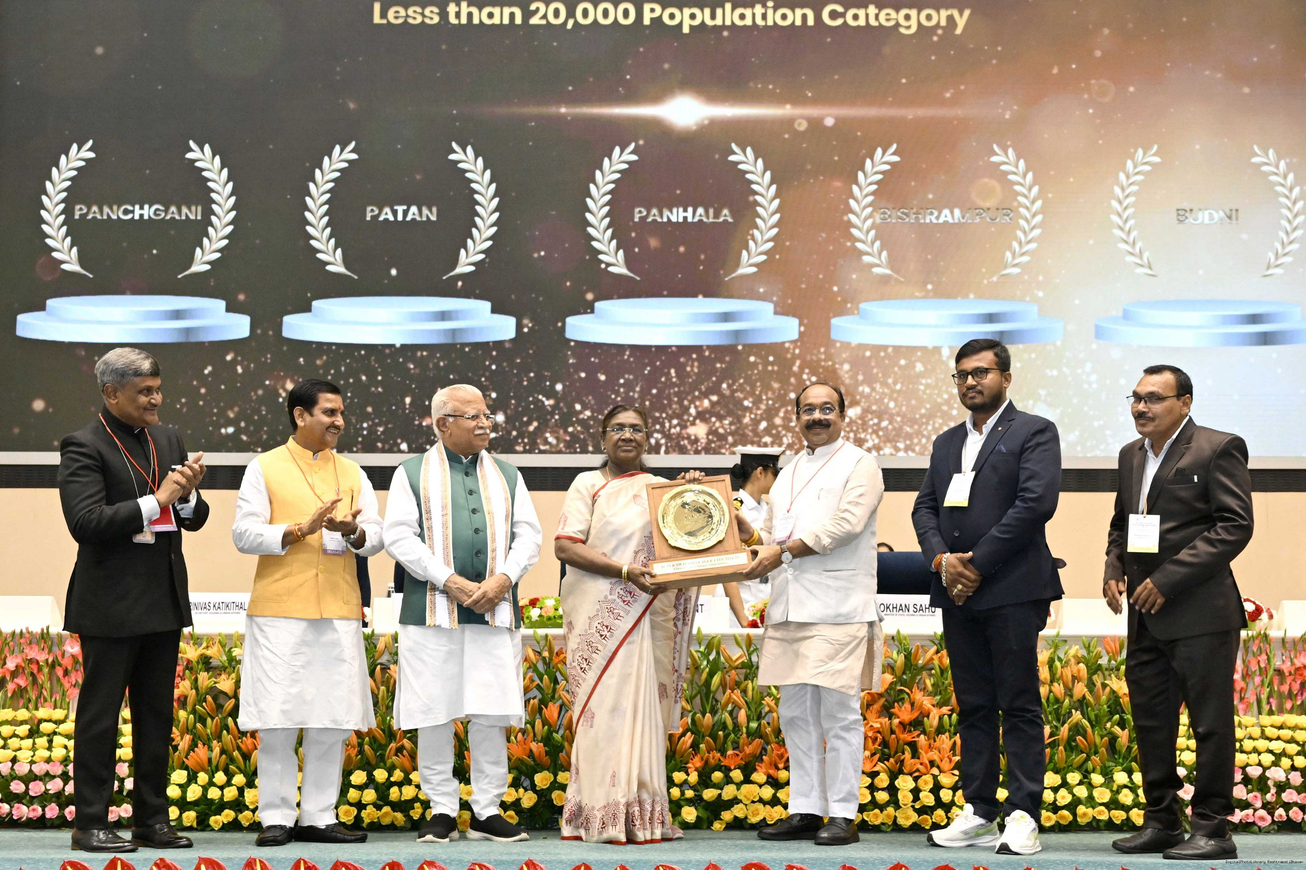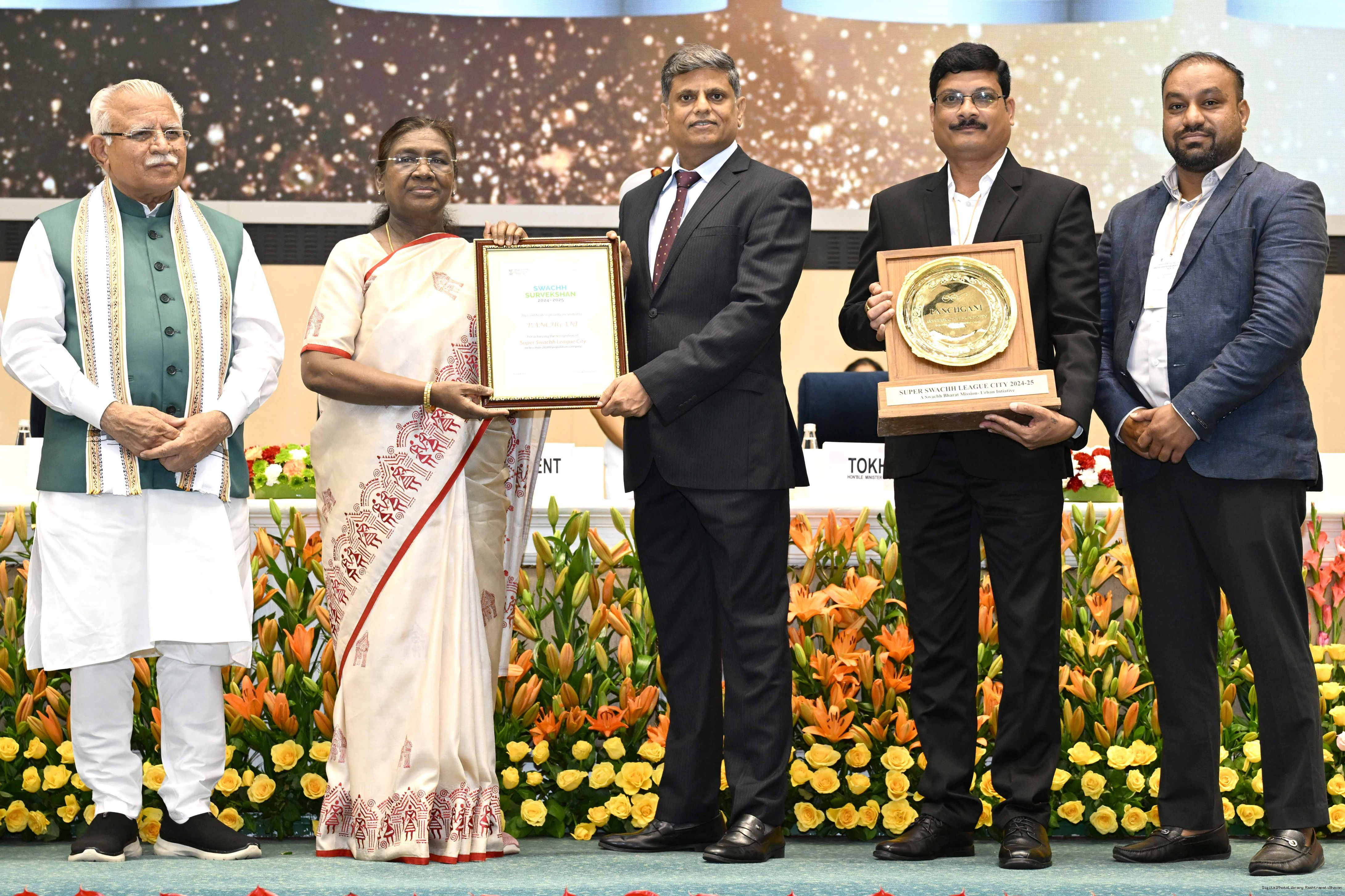 | Caption: | The President of India, Smt Droupadi Murmu, presented Swachh Survekshan awards at a function organized by the Ministry of Housing and Urban Affairs in New Delhi on July 17, 2025. |