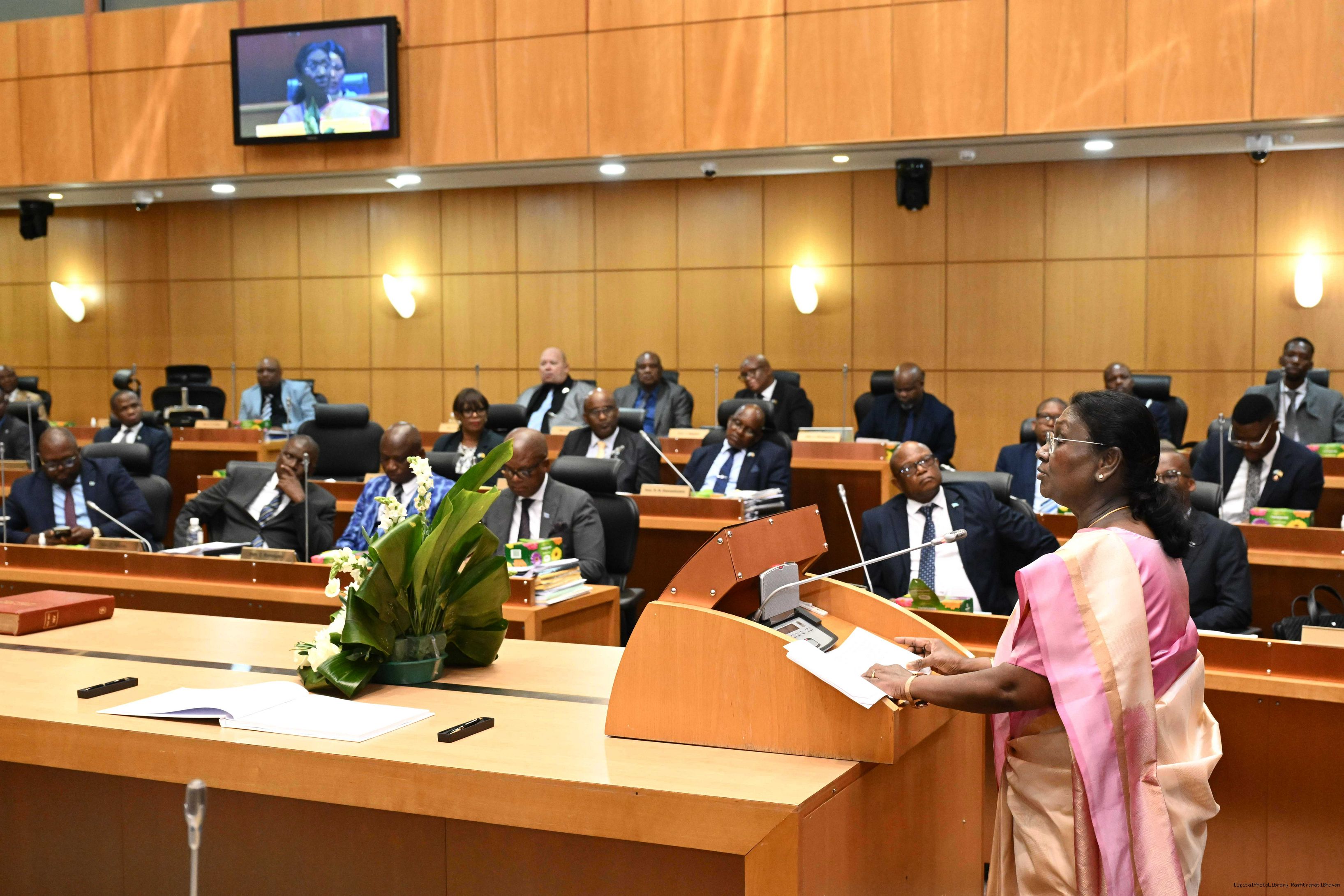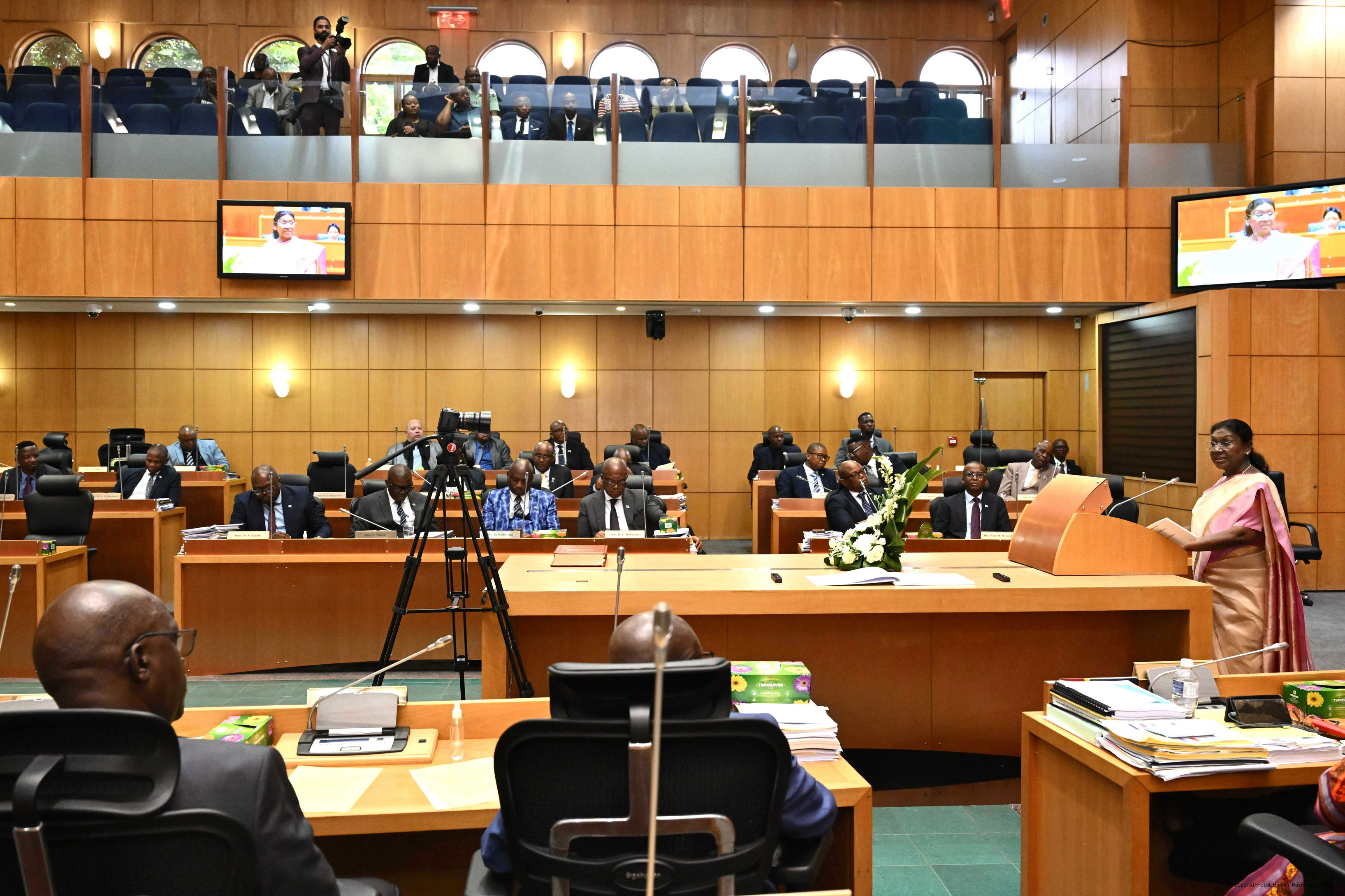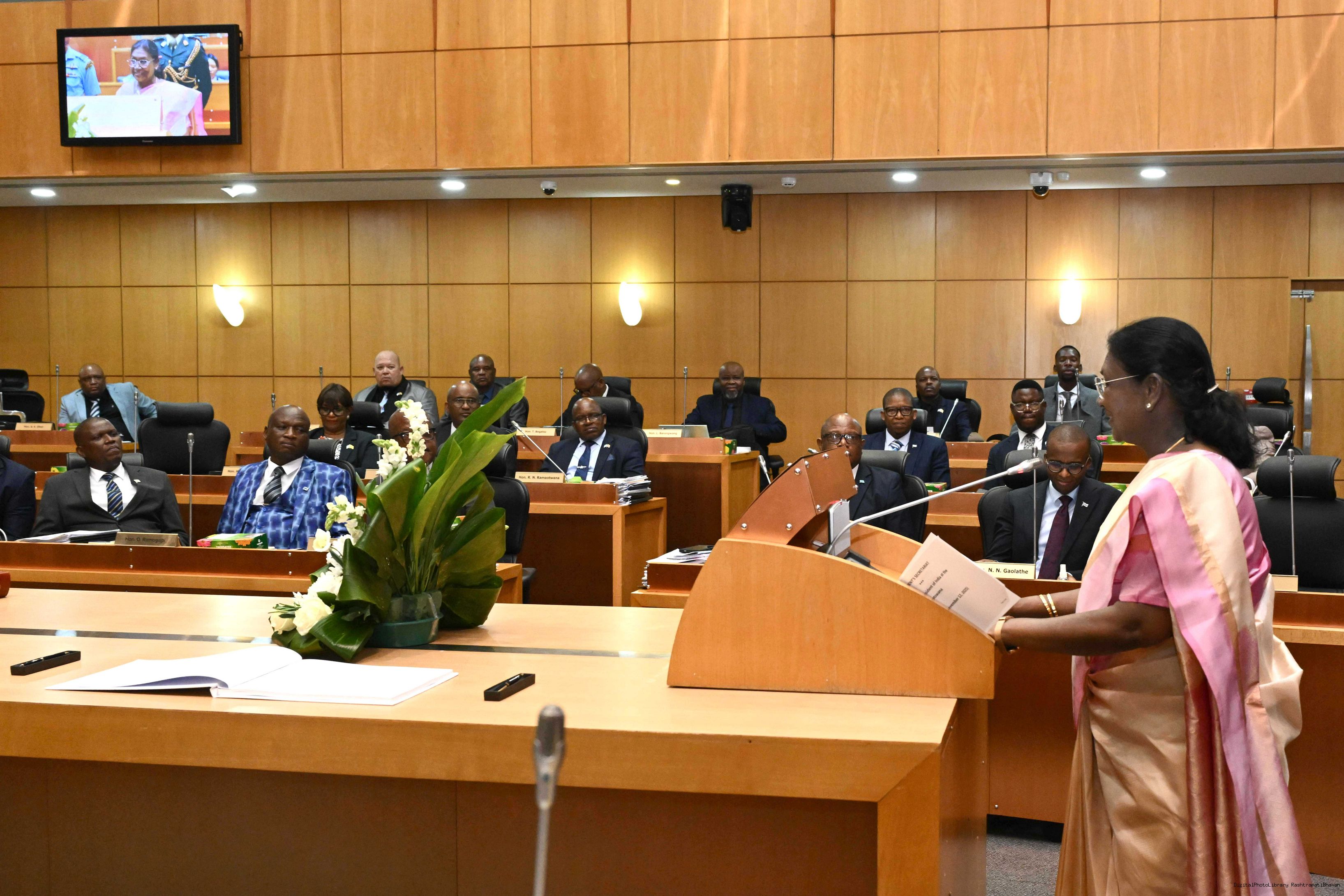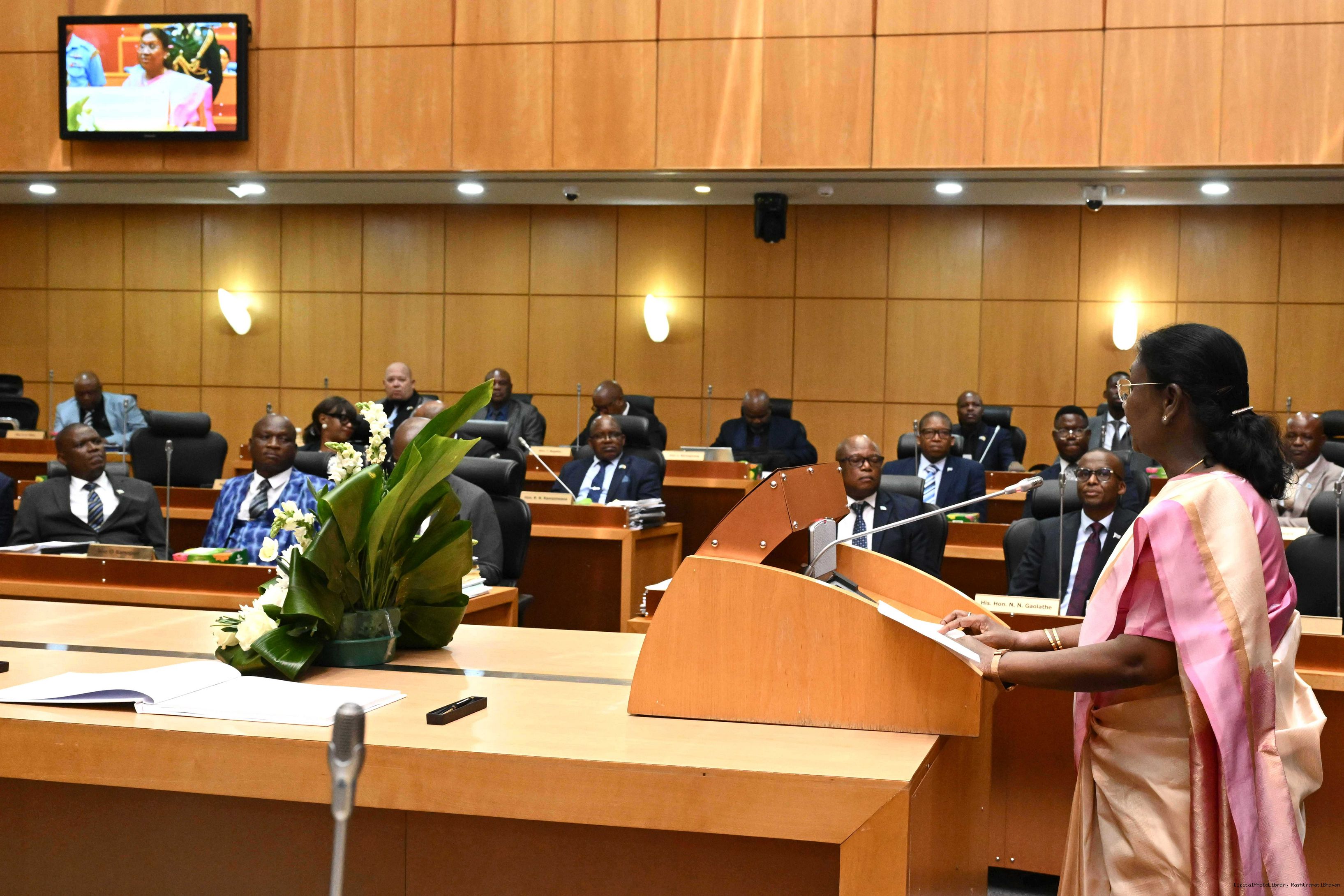 Caption: The President of India, Smt Droupadi Murmu addressed the National Assembly of Botswana at Gaborone on November 12, 2025.