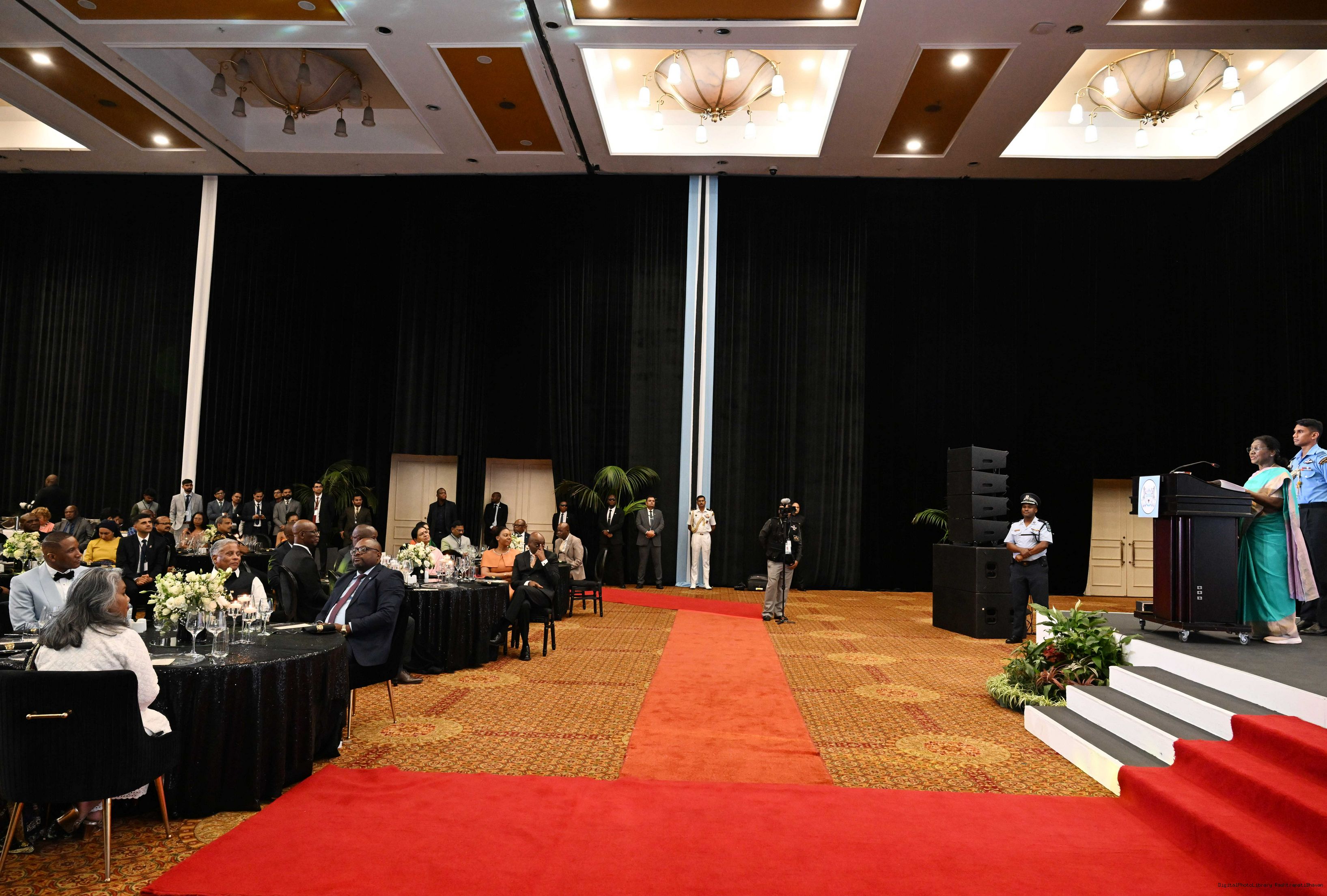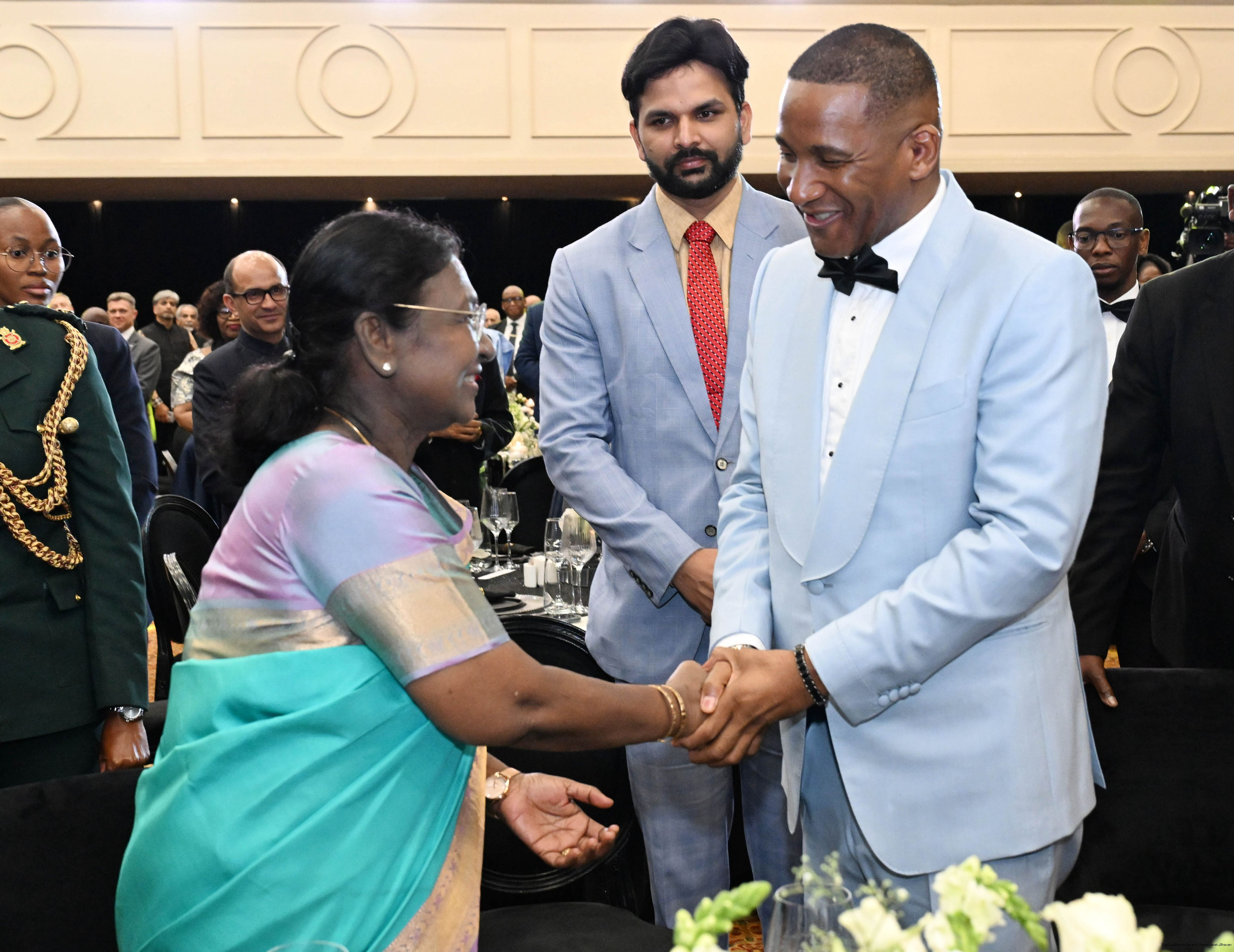 Caption: The President of India, Smt. Droupadi Murmu banquet dinner hosted by H.E. Advocate Duma Gideon Boko, President of the Republic of Botswana at Hotel Grand Palm at Gaborone, Botswana on November 12, 2025.
