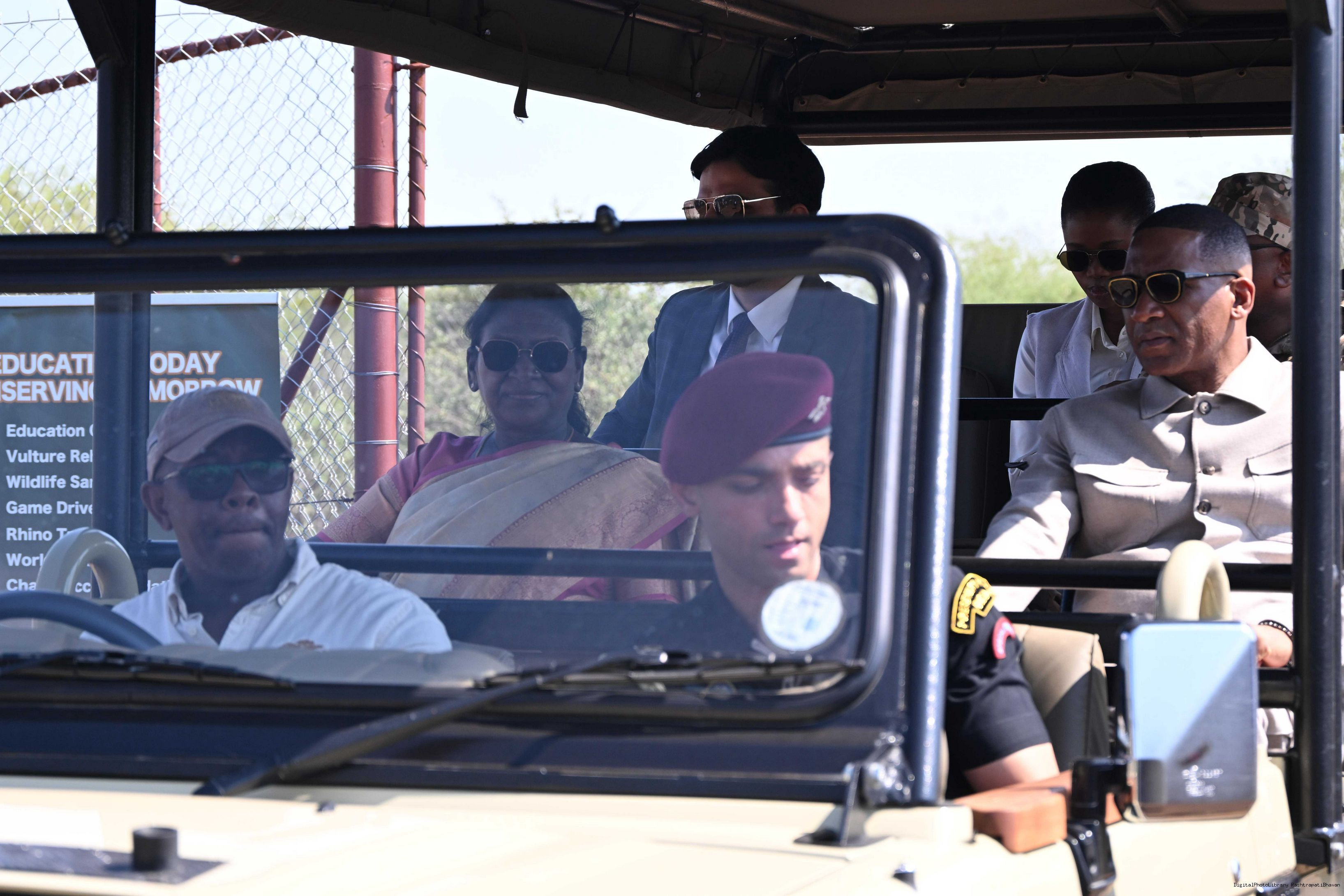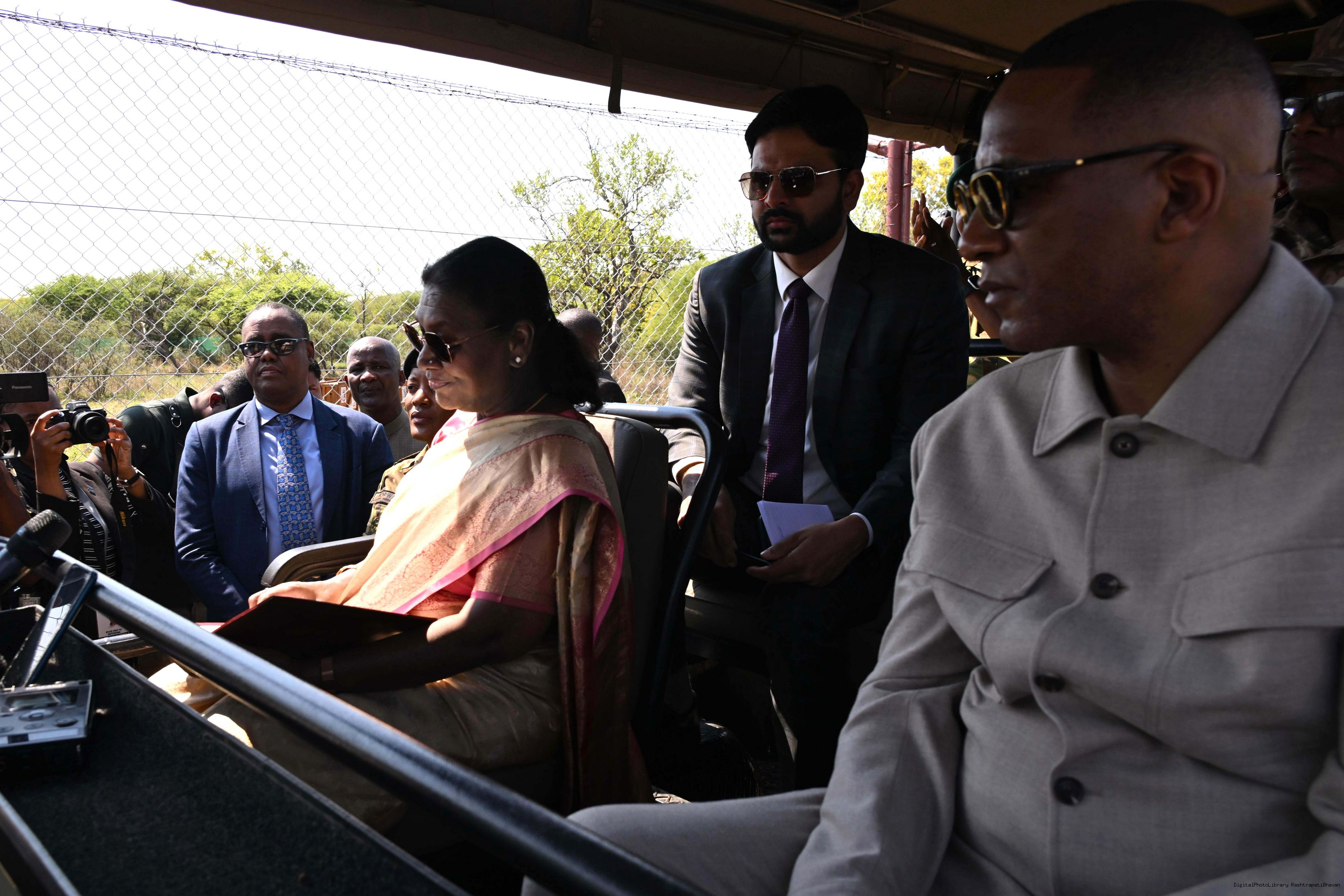 | Caption: | The President of India, Smt Droupadi Murmu and President Duma Gideon Boko witnessed the release of captured cheetahs originating from Botswana's Ghanzi region into the quarantine facility by experts from India and Botswana on November 12, 2025. |