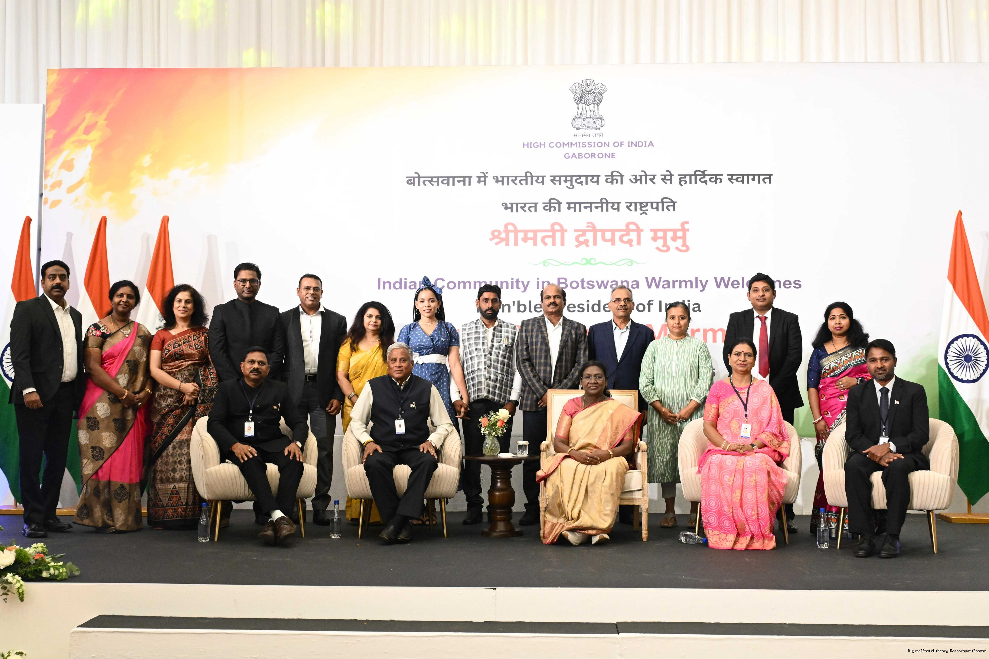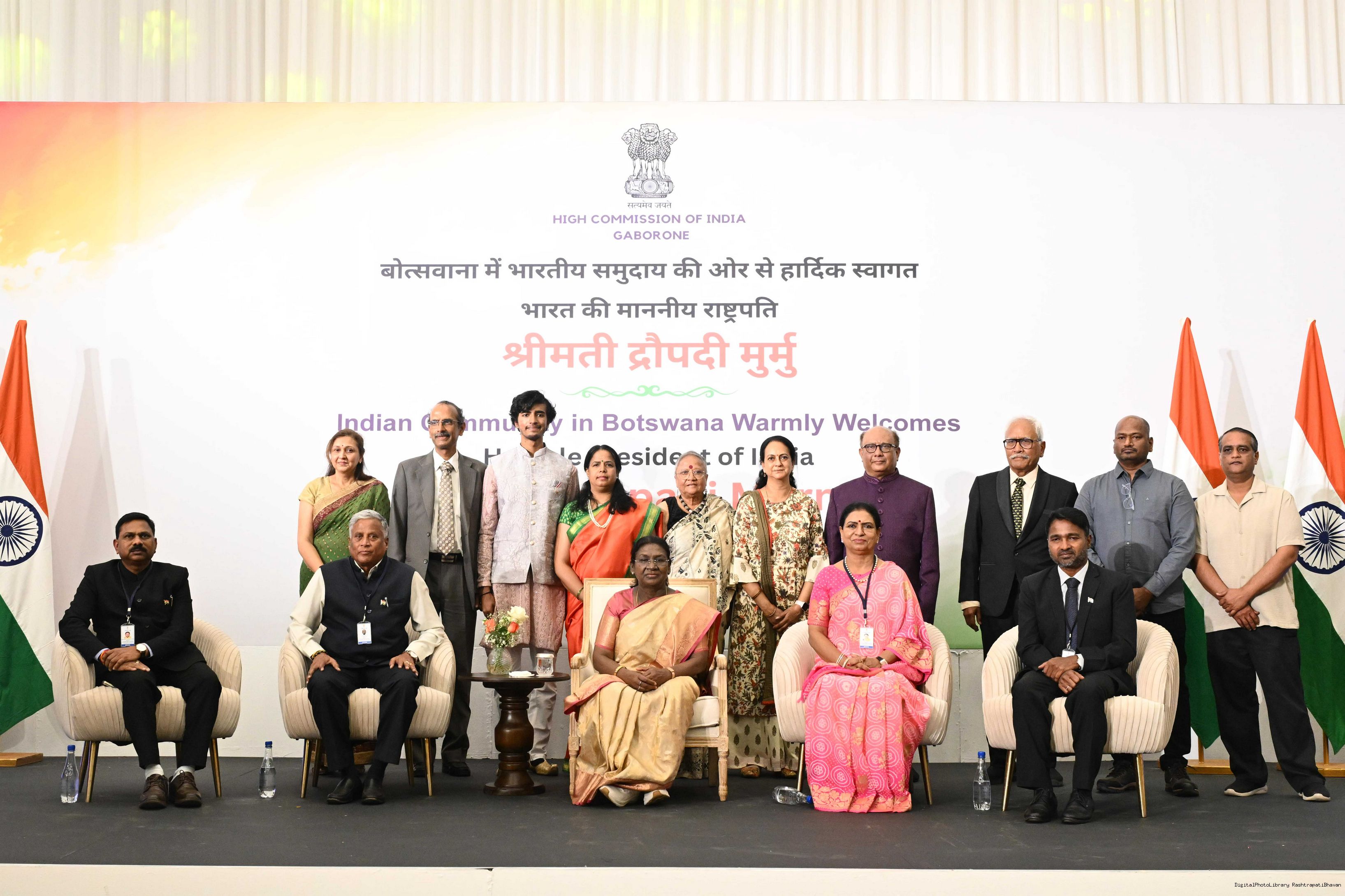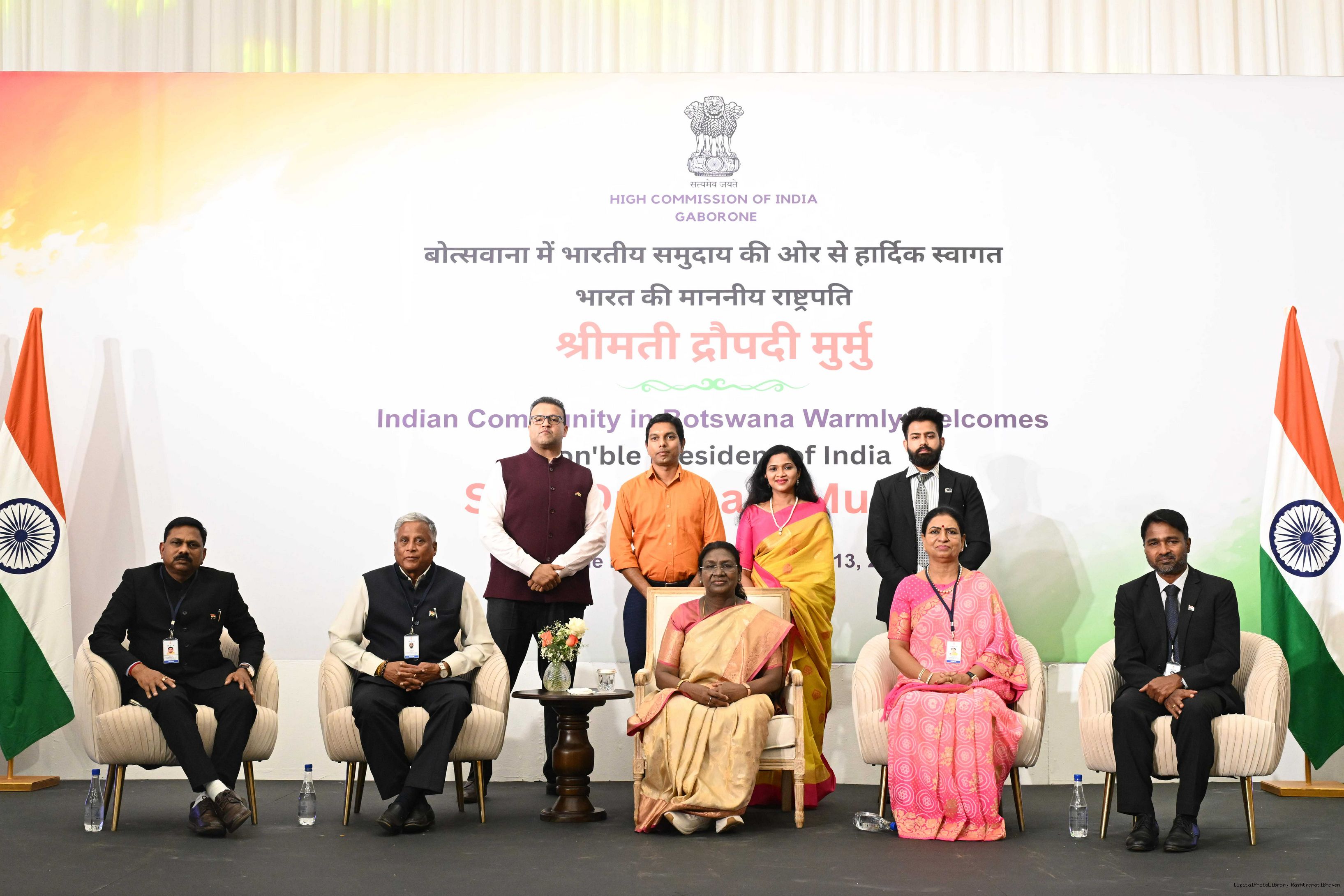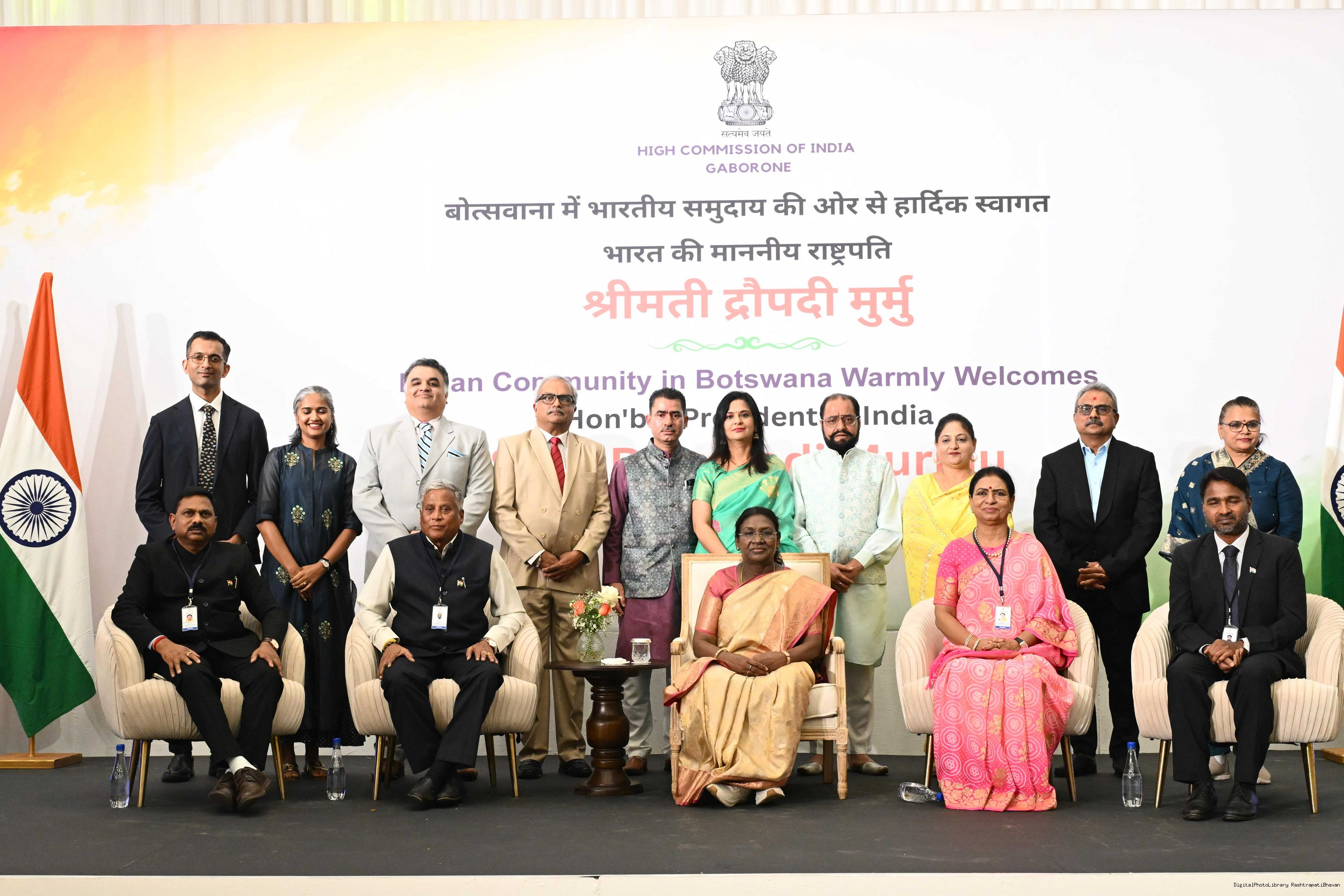 | Caption: | The President of India, Smt Droupadi Murmu addressed the members of Indian Community at a Reception hosted by the High Commissioner of India to Botswana at Gaborone on November 13, 2025. |