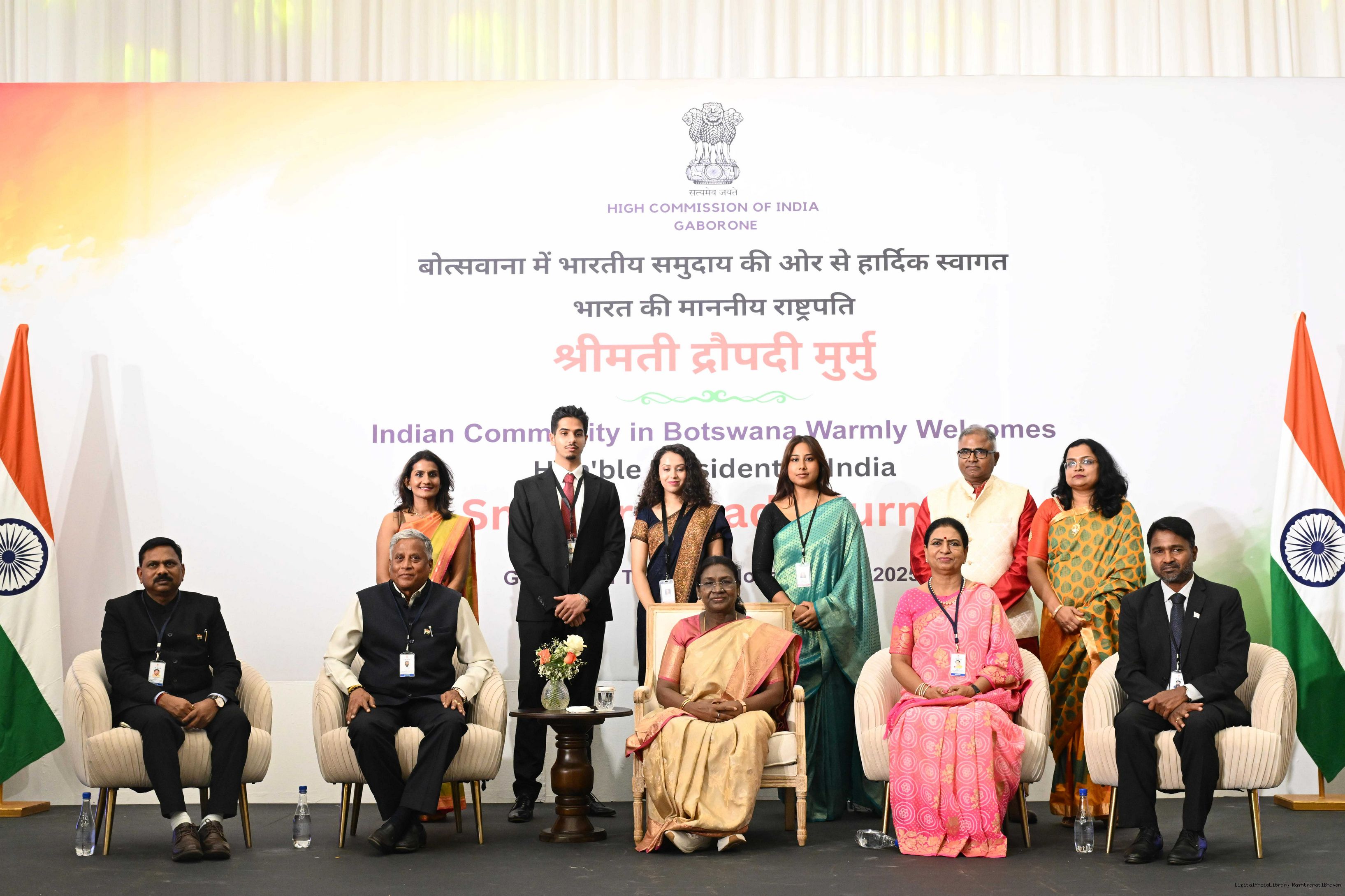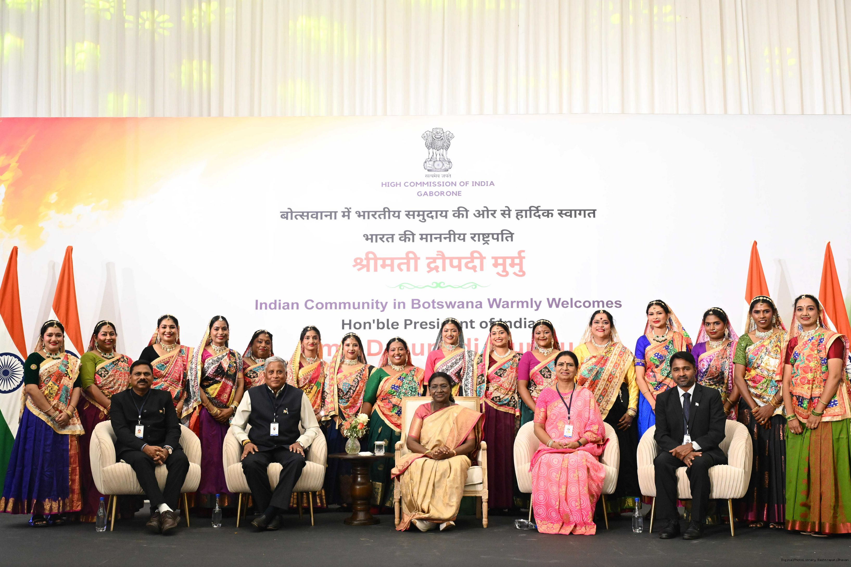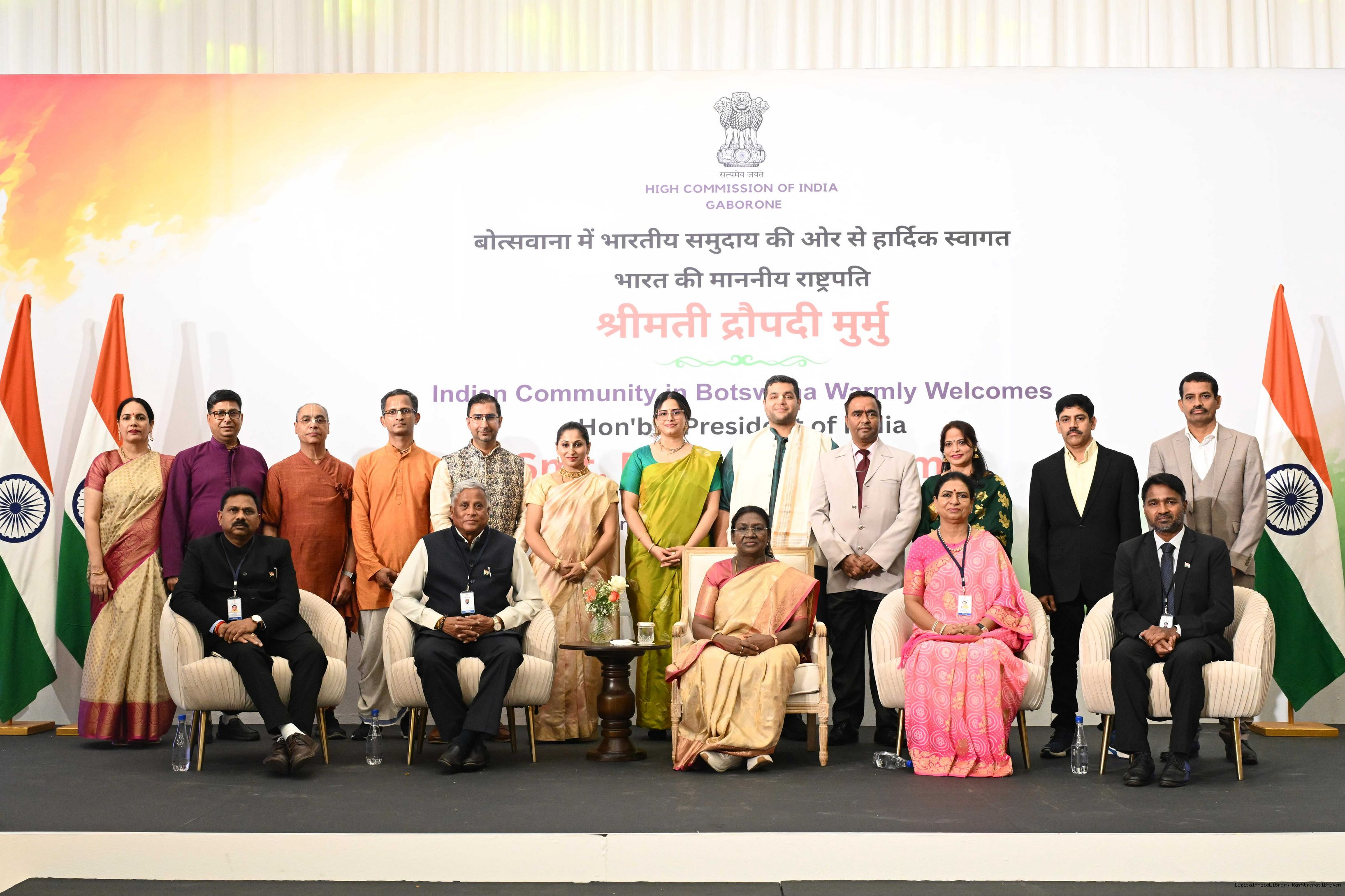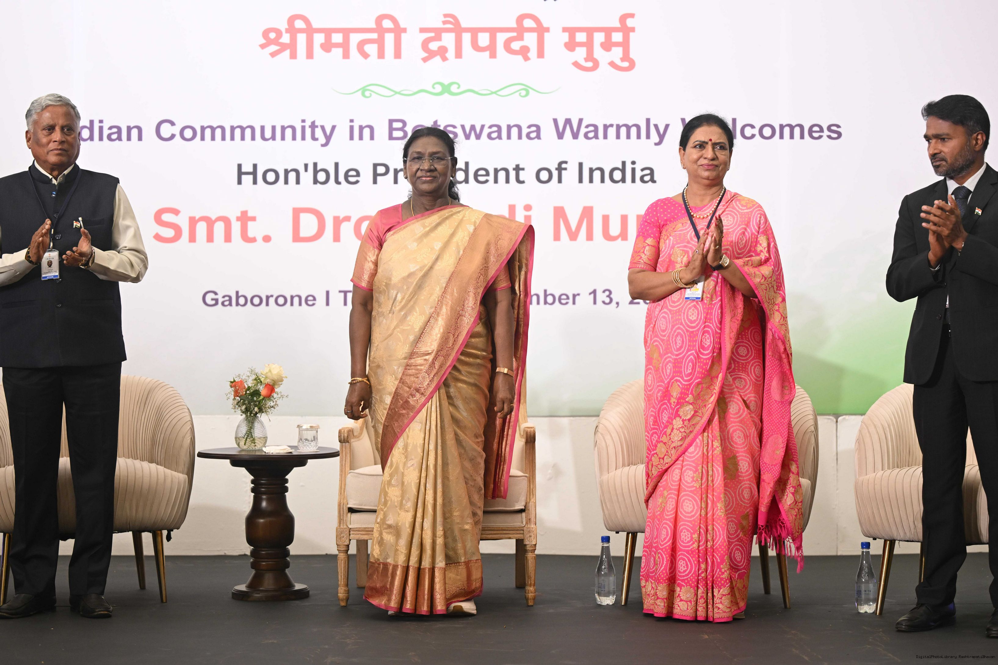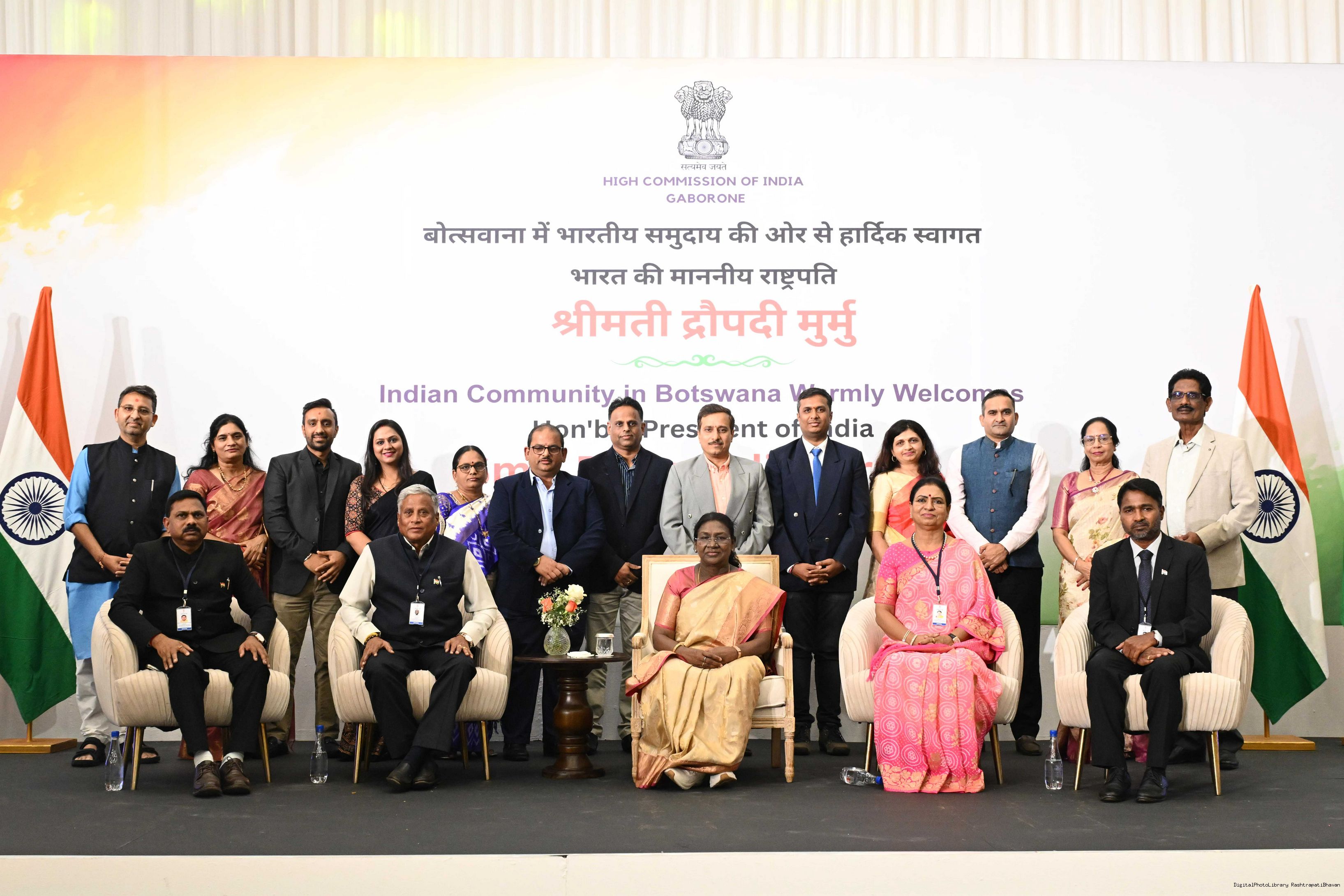 | Caption: | The President of India, Smt Droupadi Murmu addressed the members of Indian Community at a Reception hosted by the High Commissioner of India to Botswana at Gaborone on November 13, 2025. |