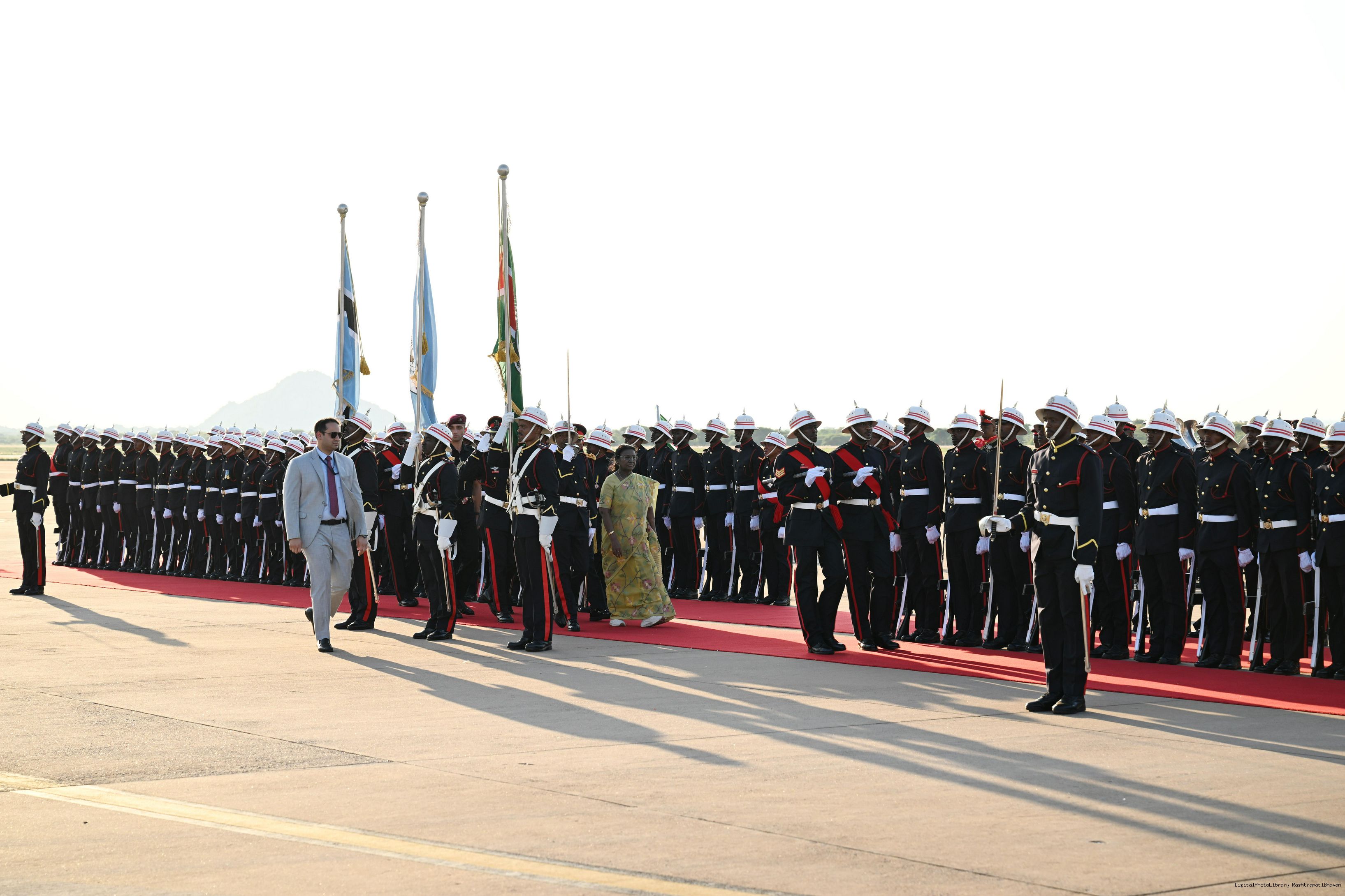 Caption: The President of India, Smt Droupadi Murmu departed From Sir Seretse Khama International Airport, Gaborone, Botswana on November 13, 2025.
