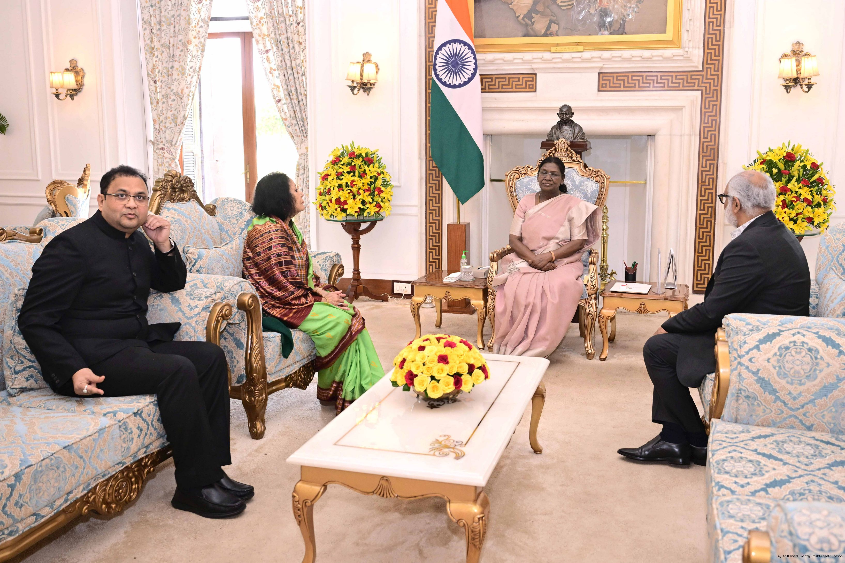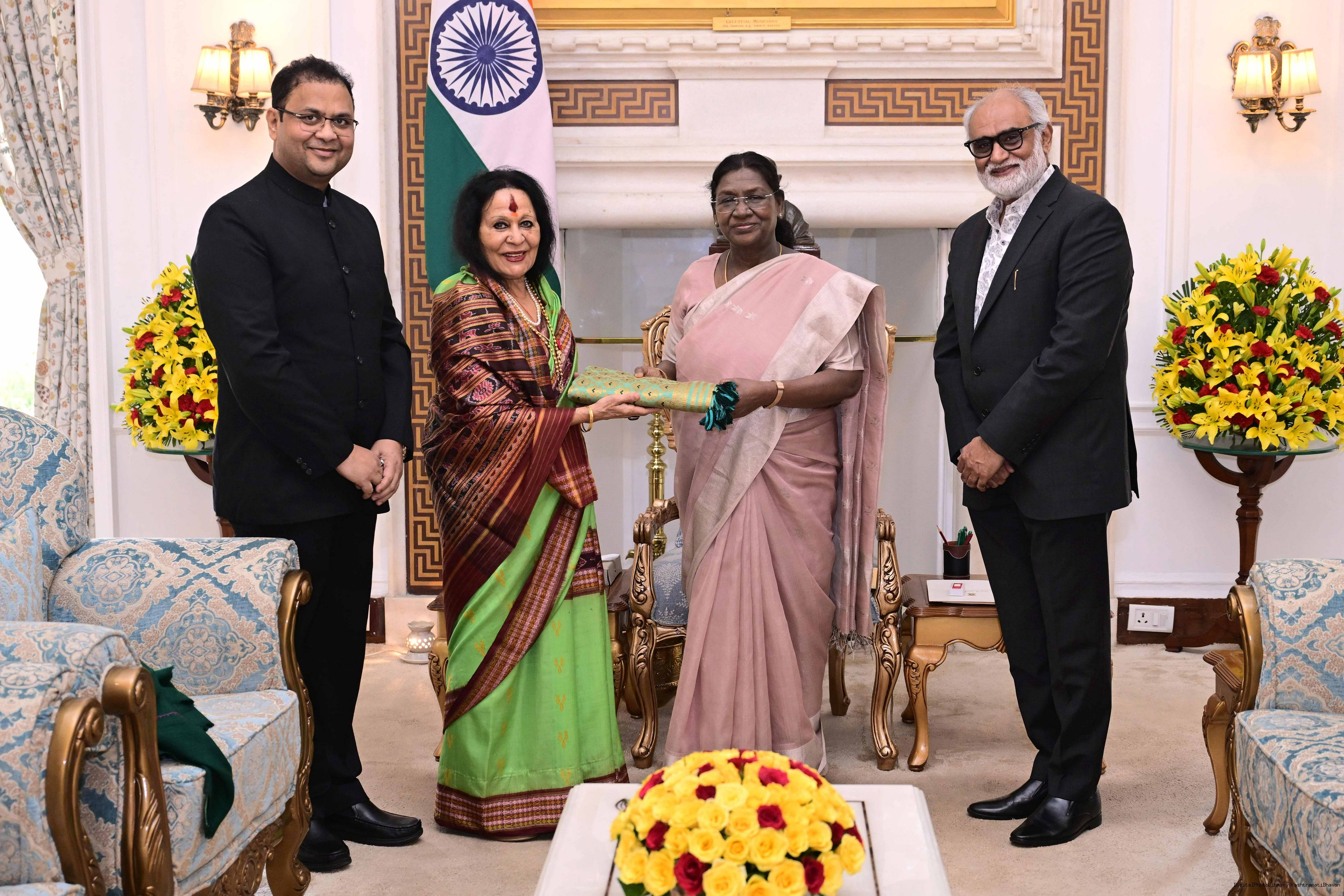 | Caption: | Dr. Sonal Mansingh, Padma Vibhushan Awardee and Chairperson along with Dr. Sachchidanand Joshi and Shri Ganga Kumar meeting with the President of India, Smt. Droupadi Murmu at Rashtrapati Bhavan on November 17, 2025. |