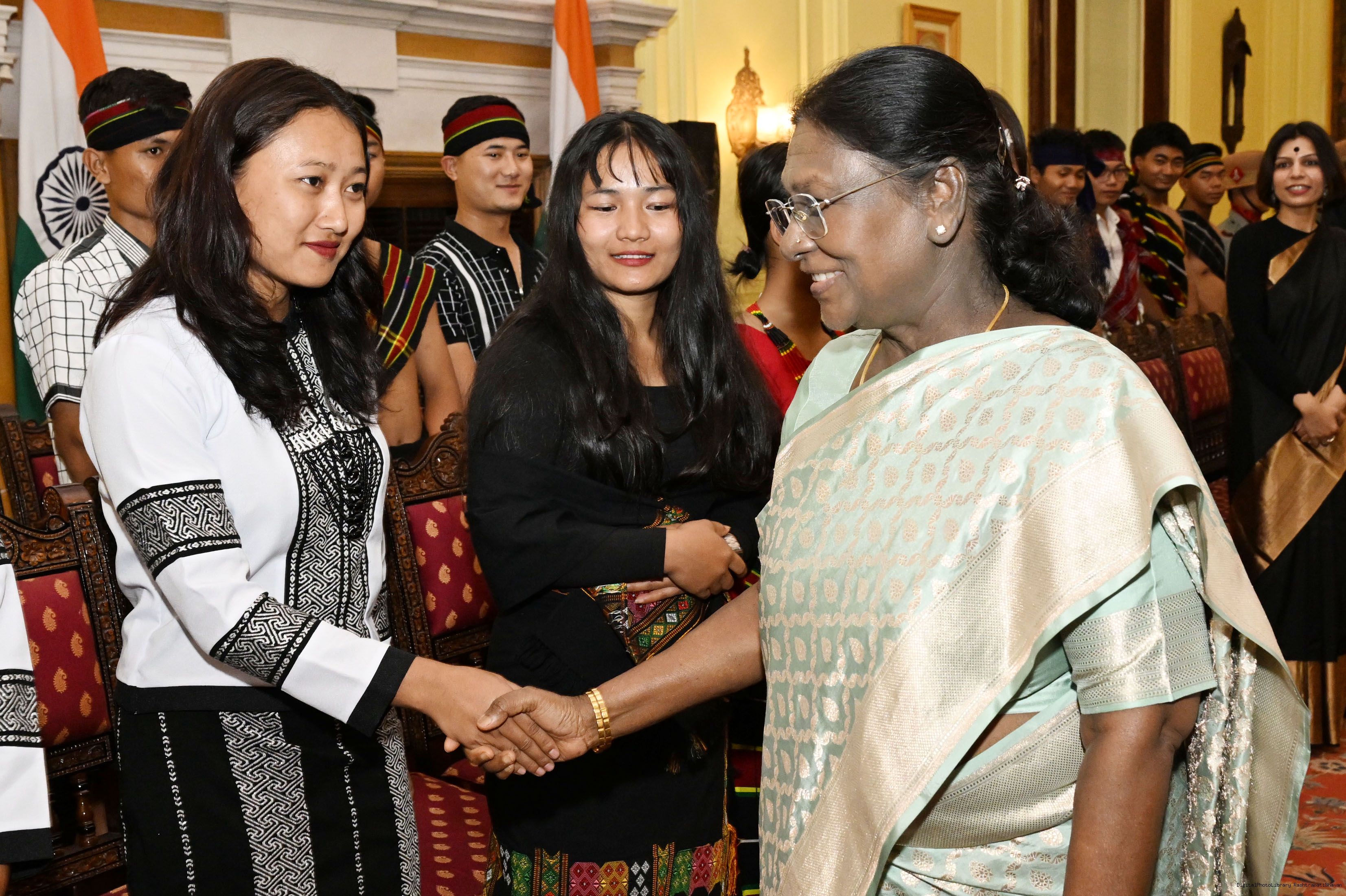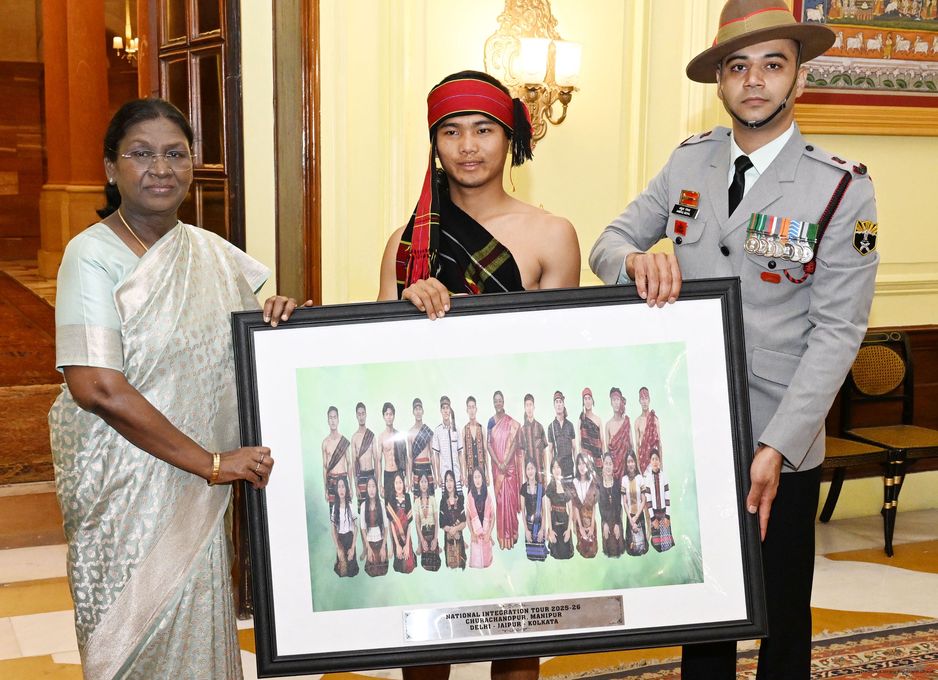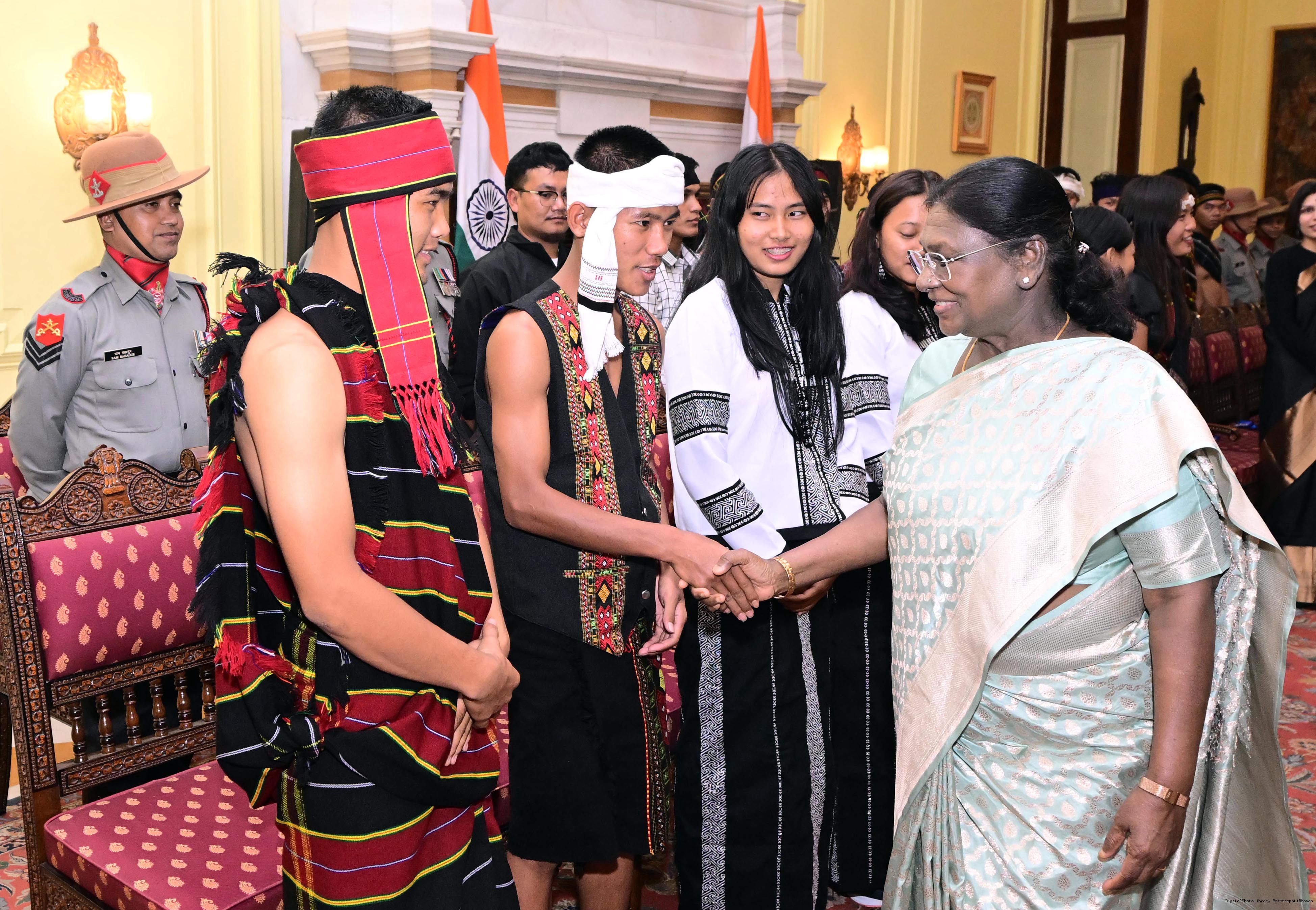 | Caption: | A group of students from Churachandpur, Manipur, called on the President of India, Smt. Droupadi Murmu at Rashtrapati Bhavan on November 19, 2025. They visited Rashtrapati Bhavan as part of the National Integration Tour (NIT). |