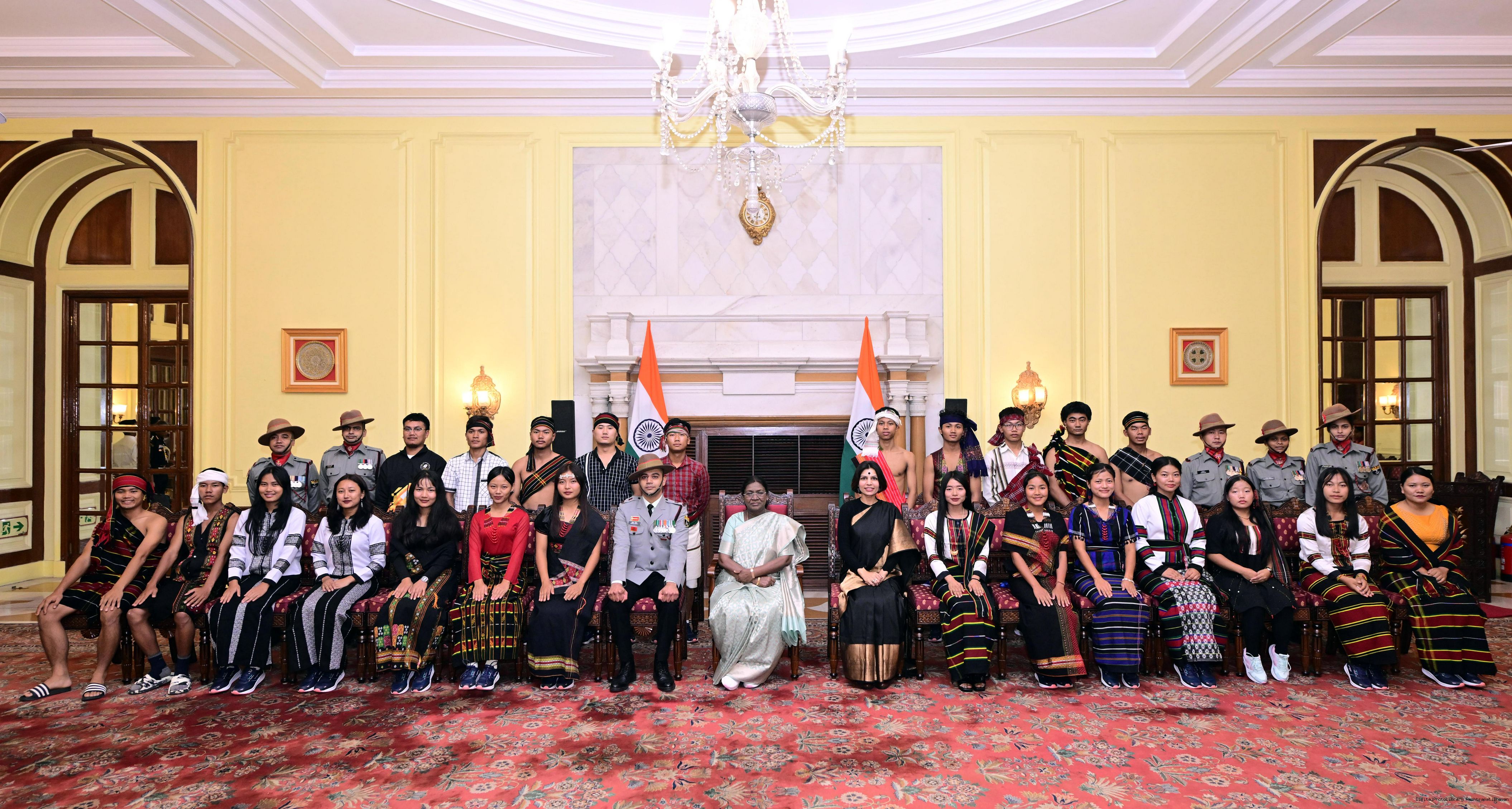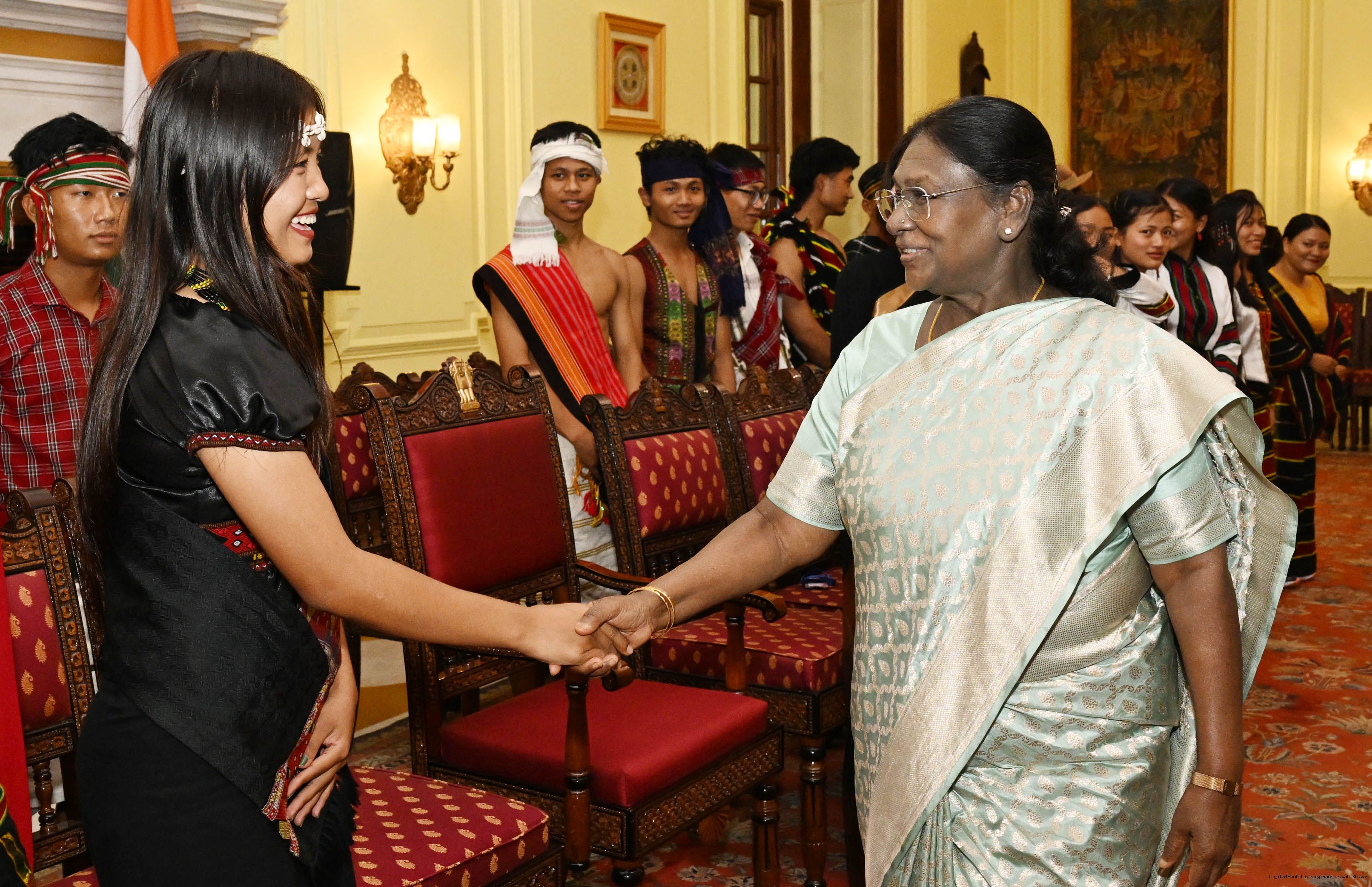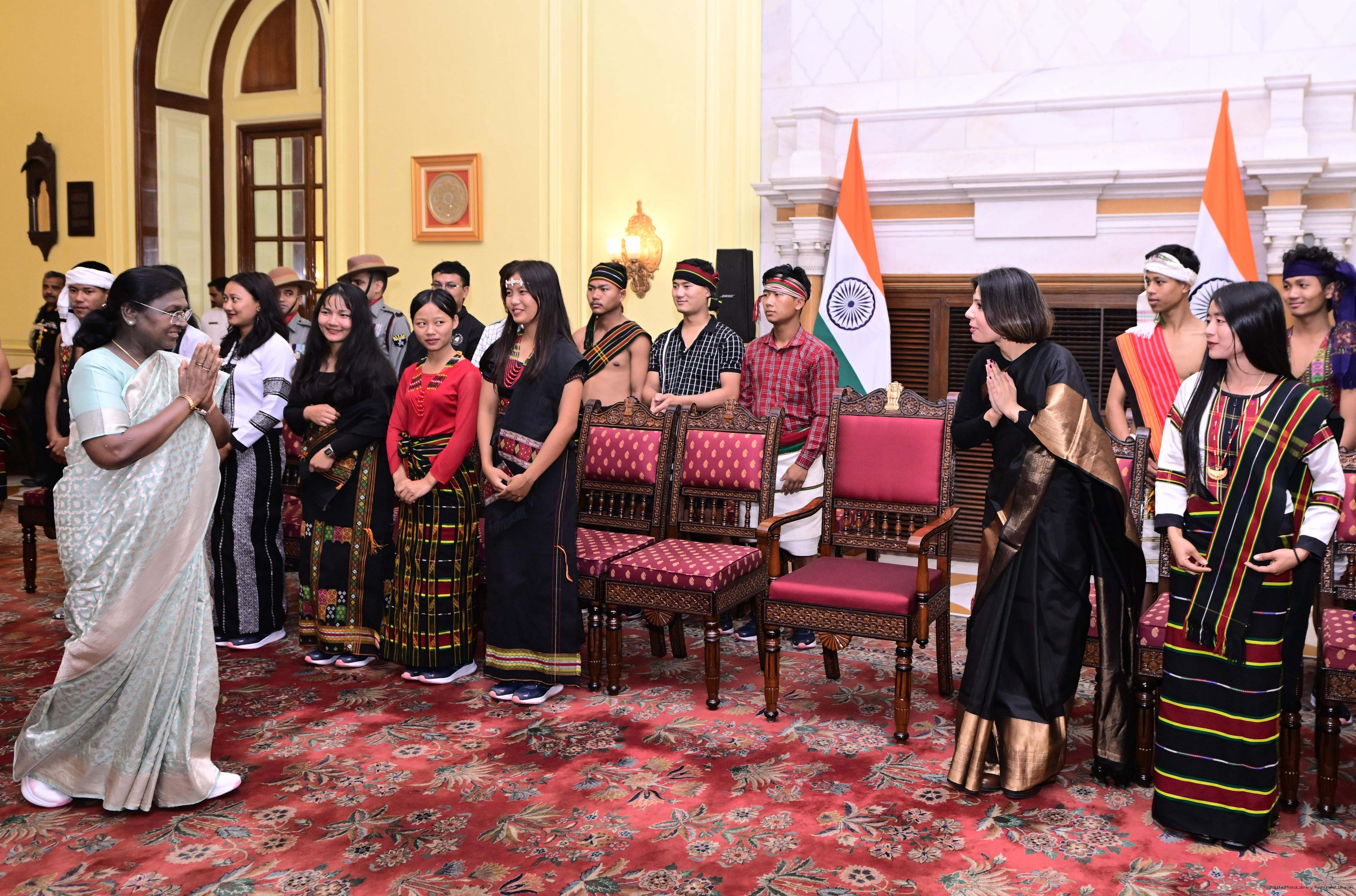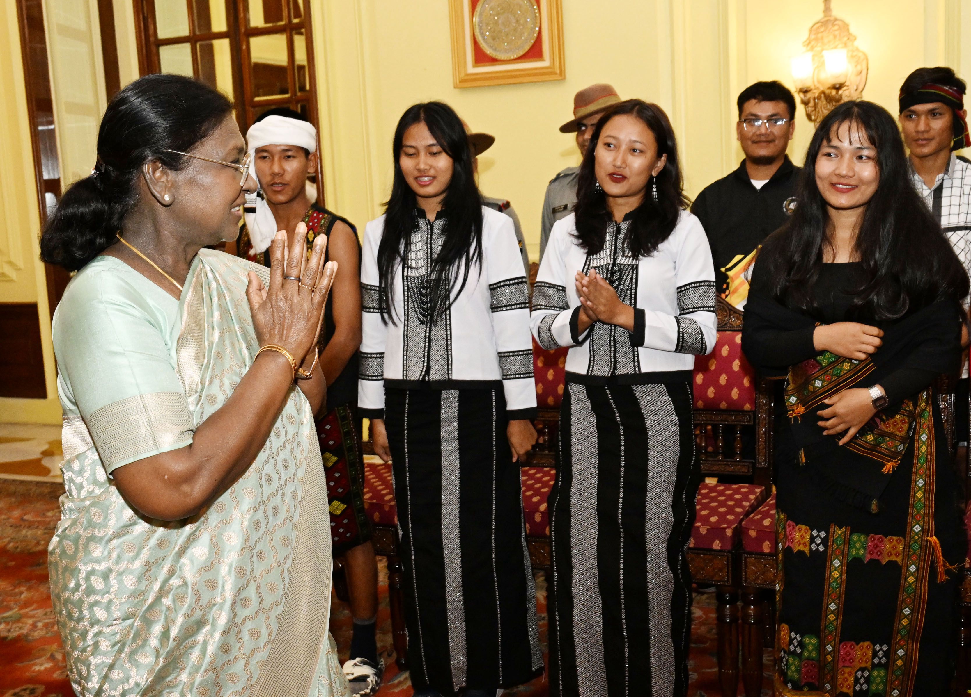 | Caption: | A group of students from Churachandpur, Manipur, called on the President of India, Smt. Droupadi Murmu at Rashtrapati Bhavan on November 19, 2025. They visited Rashtrapati Bhavan as part of the National Integration Tour (NIT). |