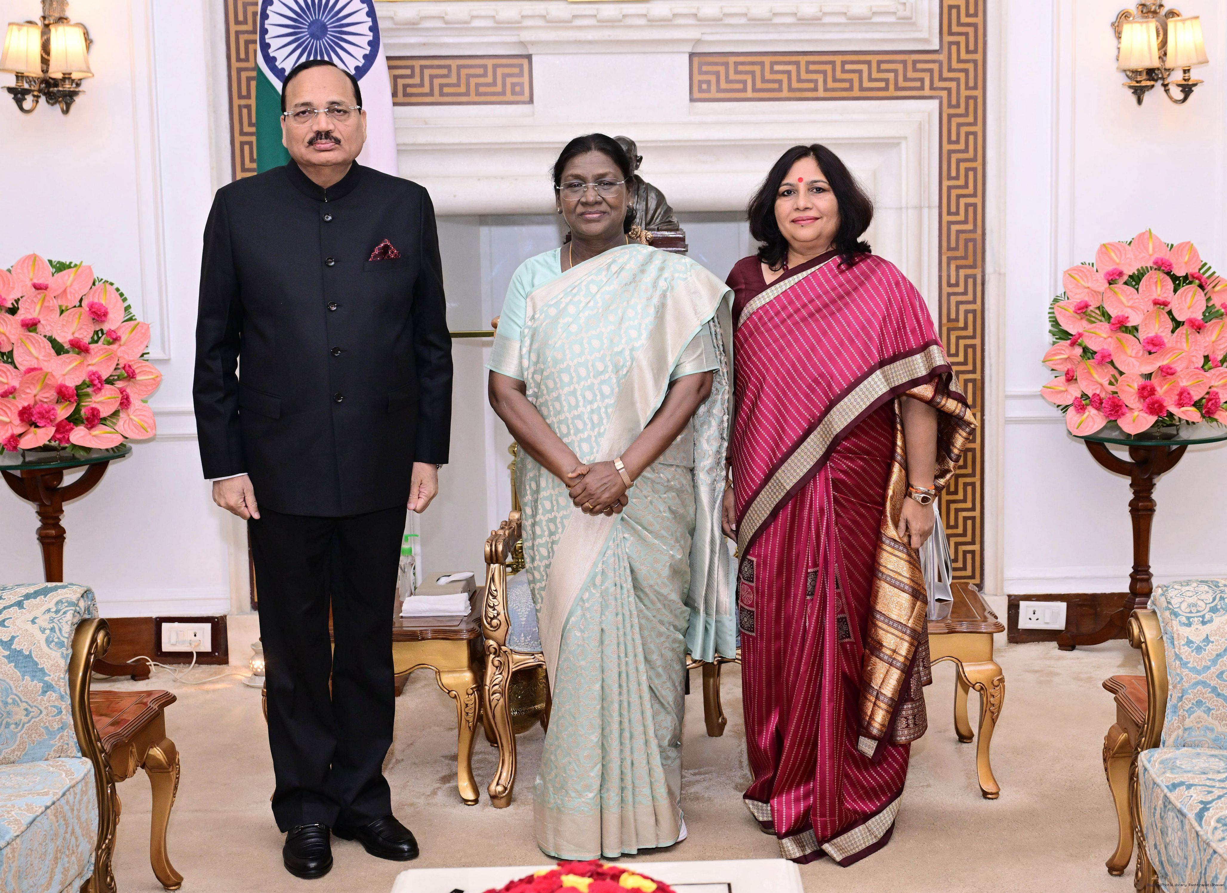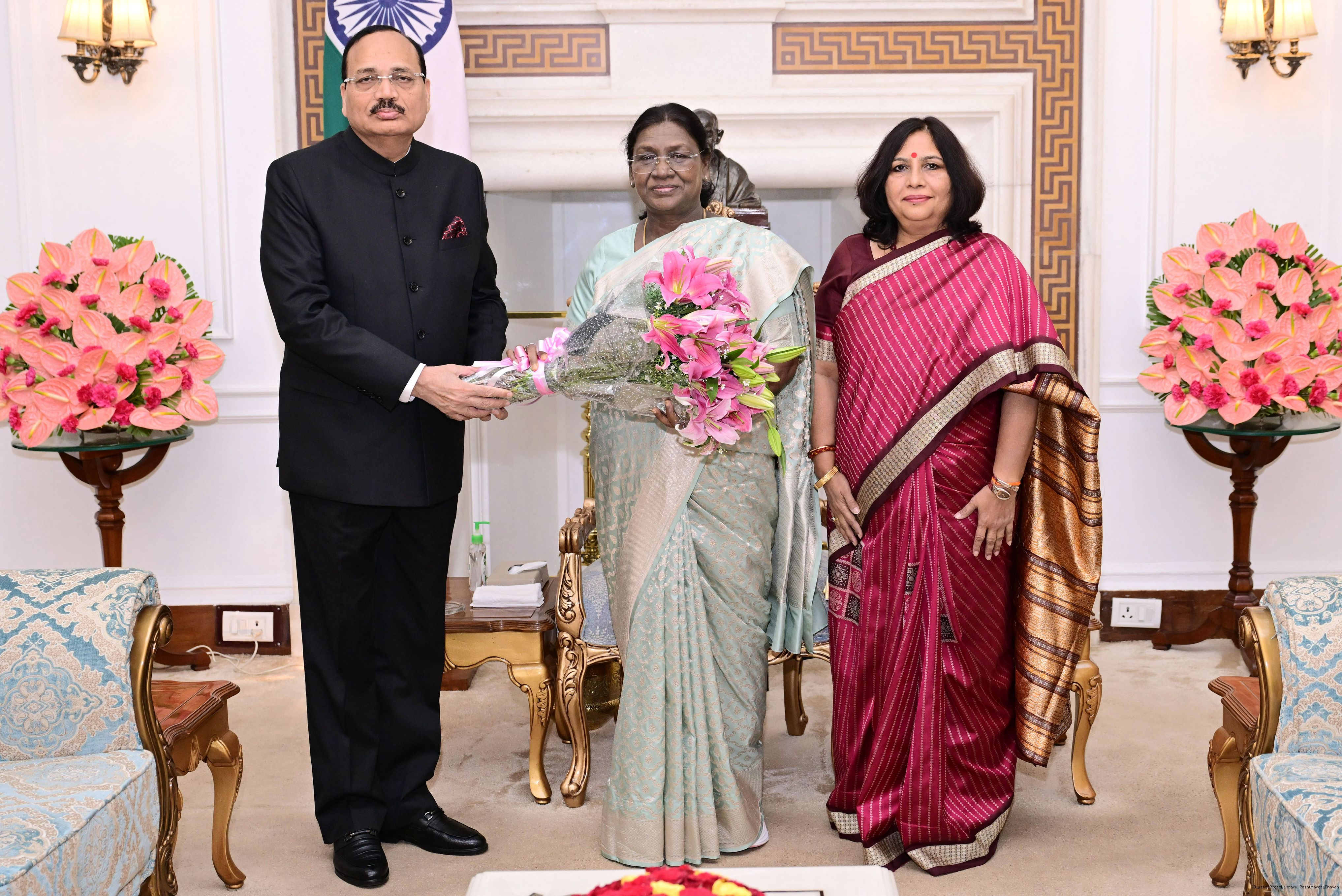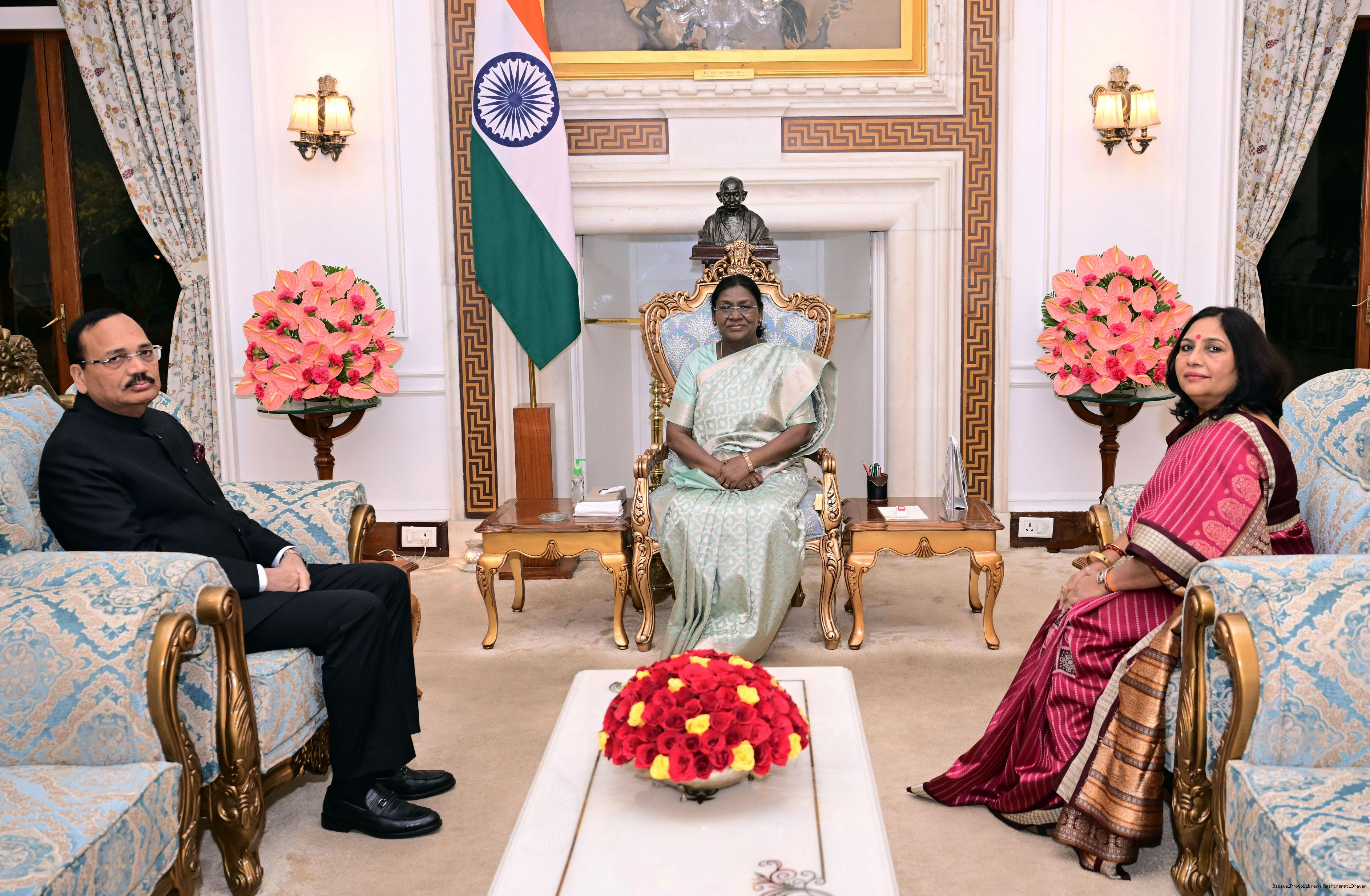 | Caption: | Shri Justice Surya Kant, CJI designate, Supreme Court of India along with Smt. Savita Vashisht called on the President of India, Smt. Droupadi Murmu at Rashtrapati Bhavan on November 19, 2025. |