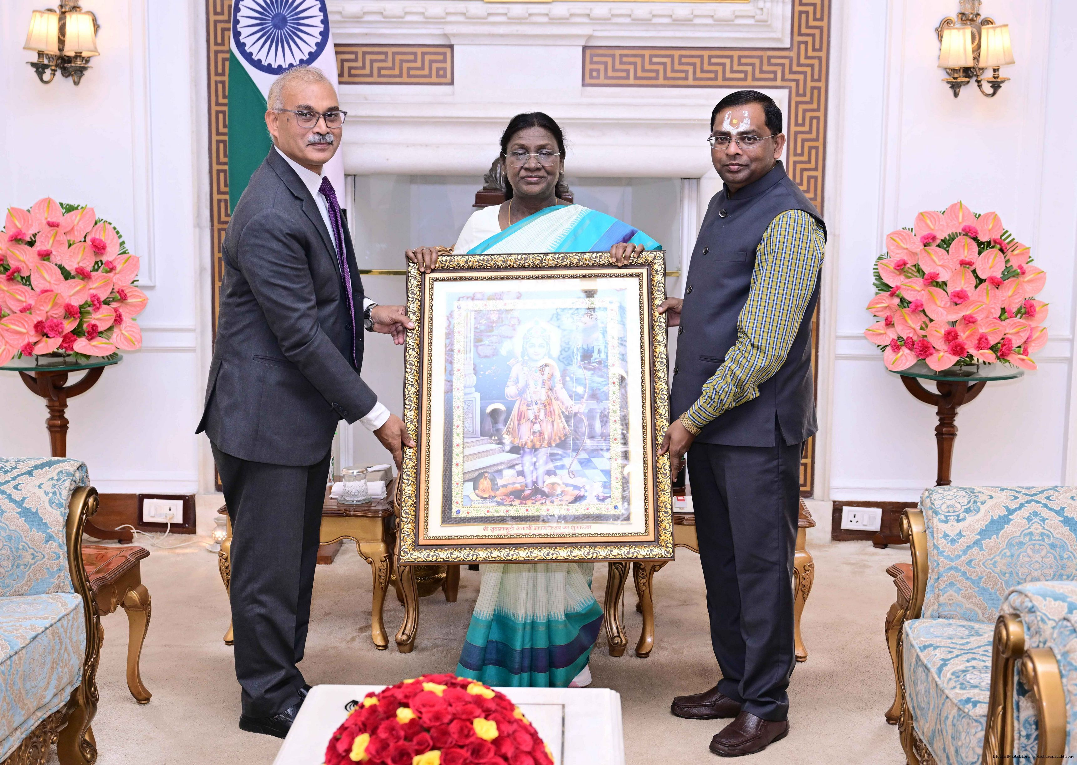 | Caption: | Prof. (Dr.) Vyasadeva Mahanta, Additional Professor, Dept Shalya Tantra, All India Institute of Ayurveda along with Director Prof. (Dr) P.K. Prajapati meeting with President of India, Smt. Droupadi Murmu at Rashtrapati Bhavan on November 19, 2025. |