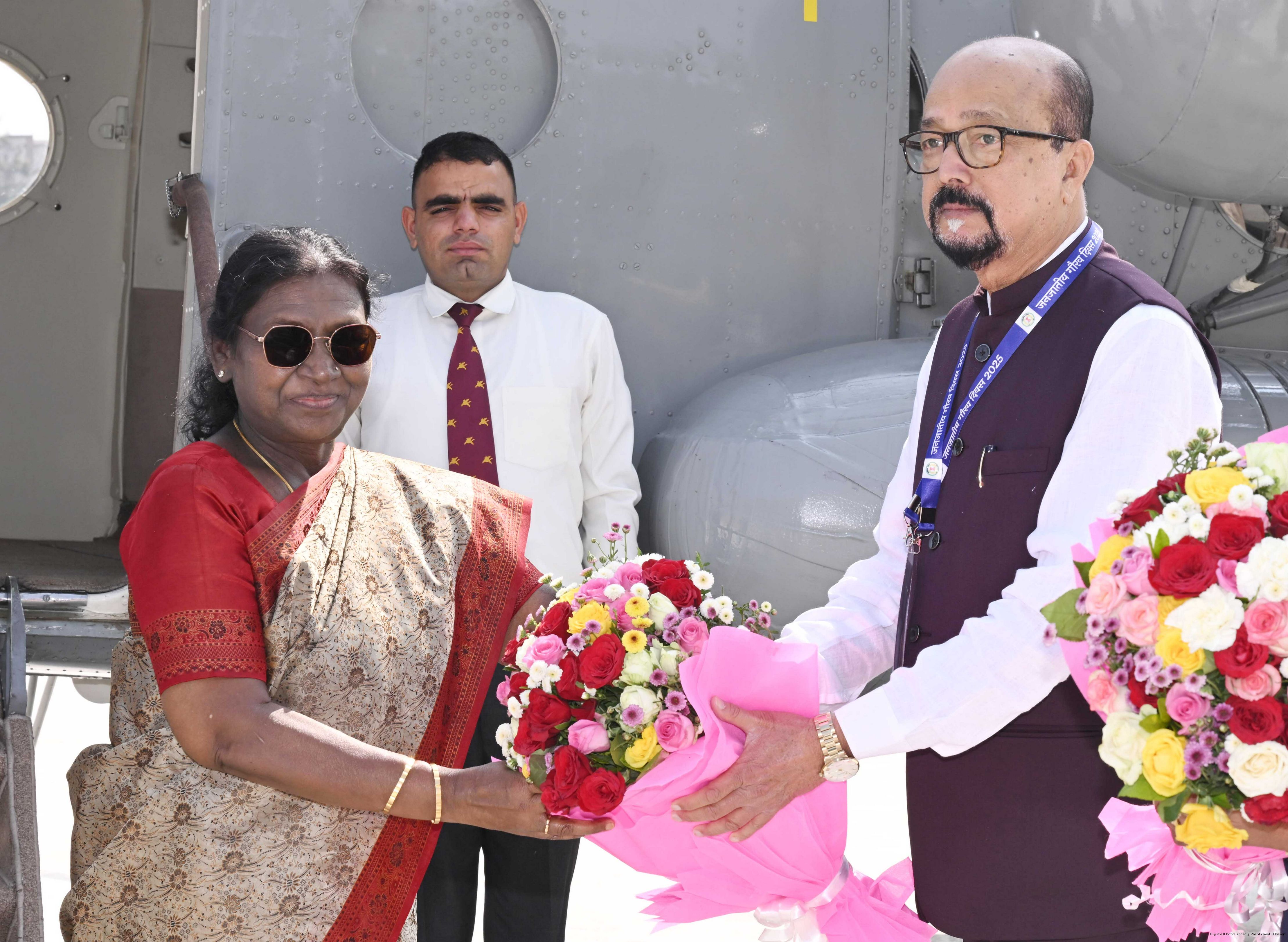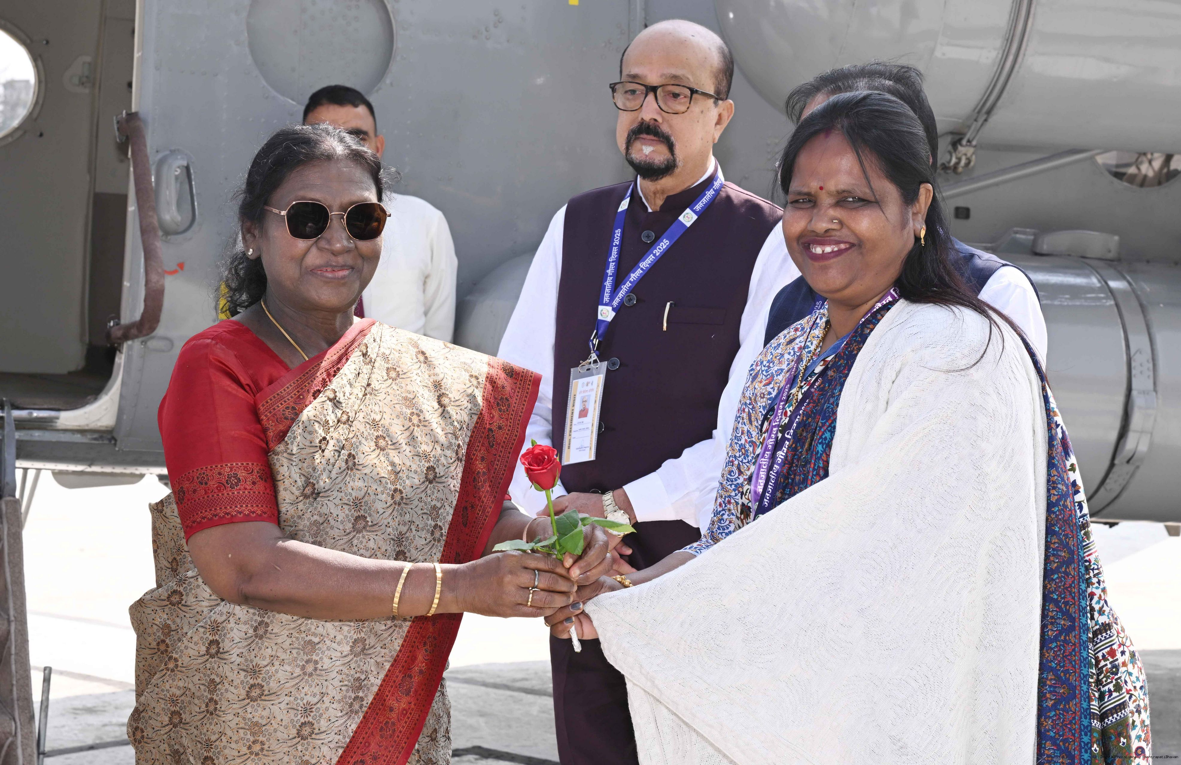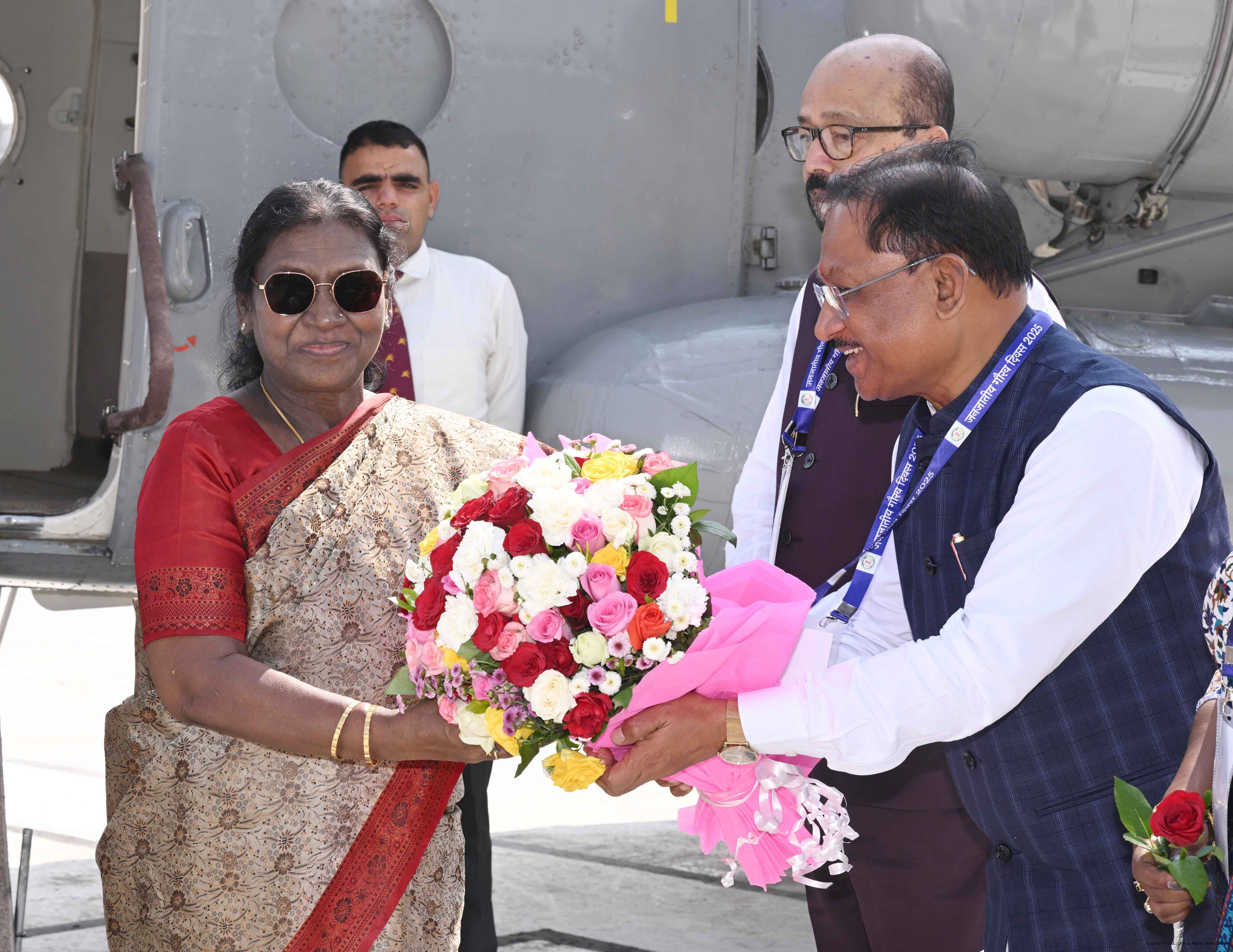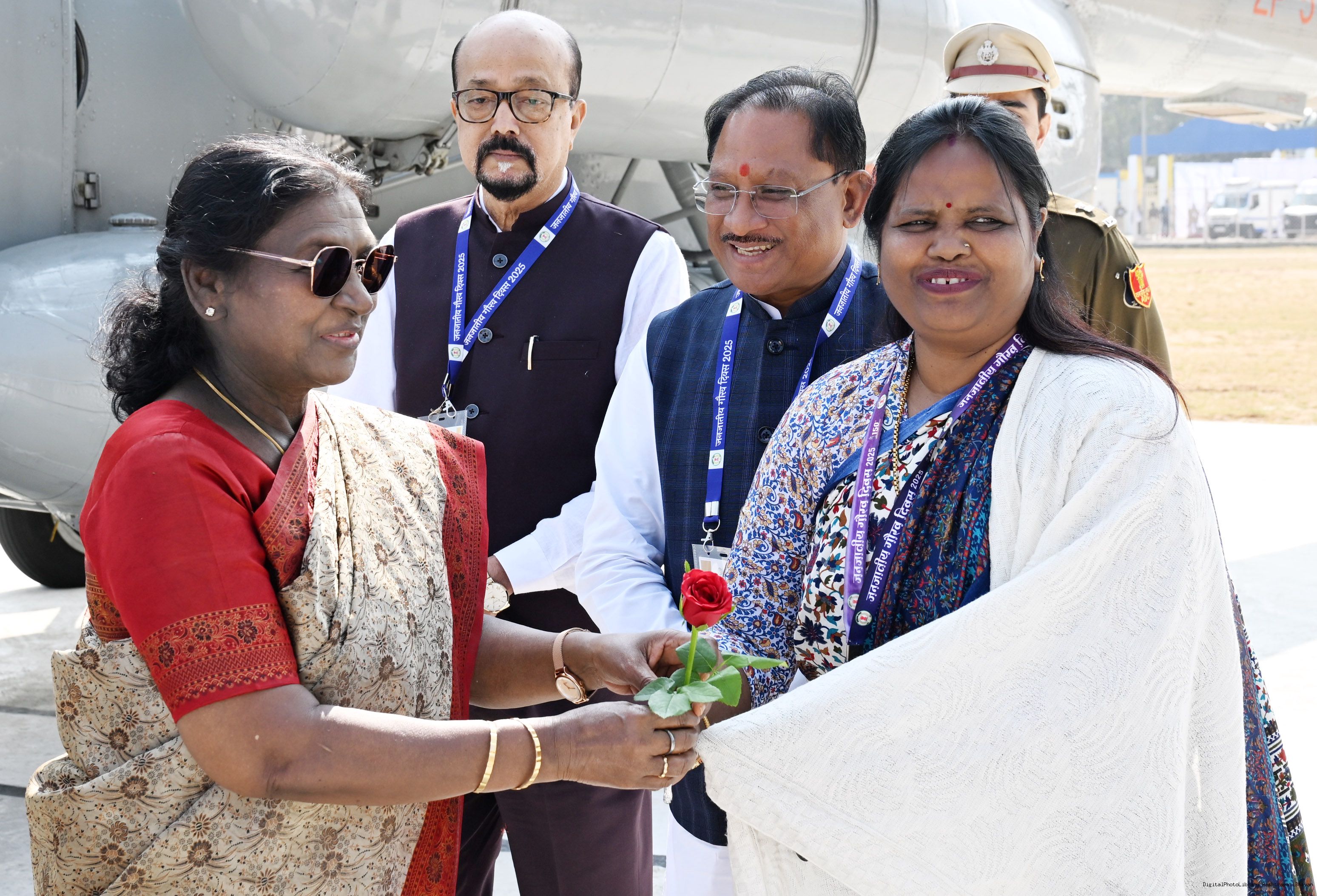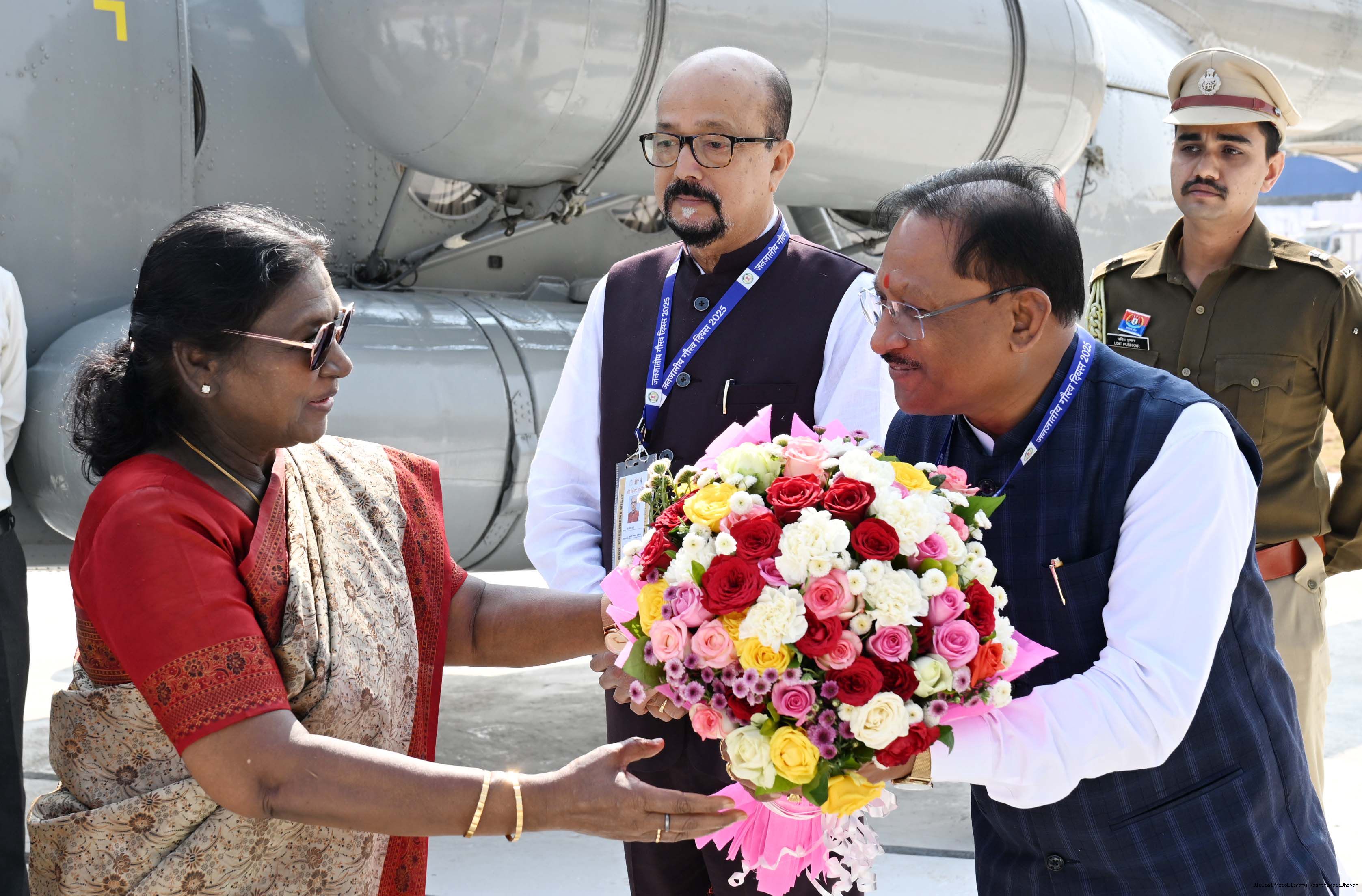 | Caption: | The Governor of Chhattisgarh, Shri Ramen Deka and Chief Minister, Shri Vishnu Deo Sai received the President of India, Smt. Droupadi Murmu on her arrival at Ambikapur, Chhattisgarh on November 20, 2025. |