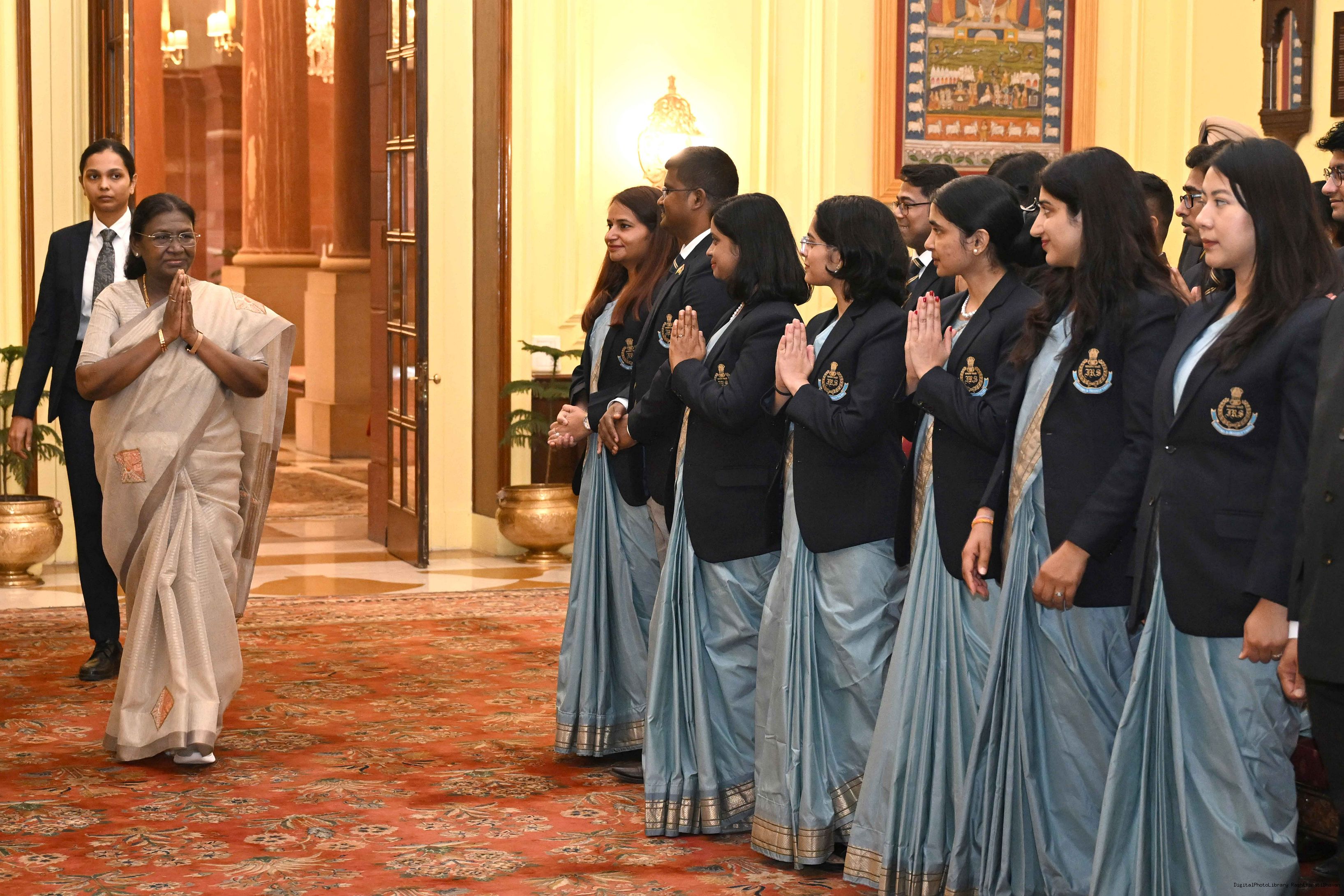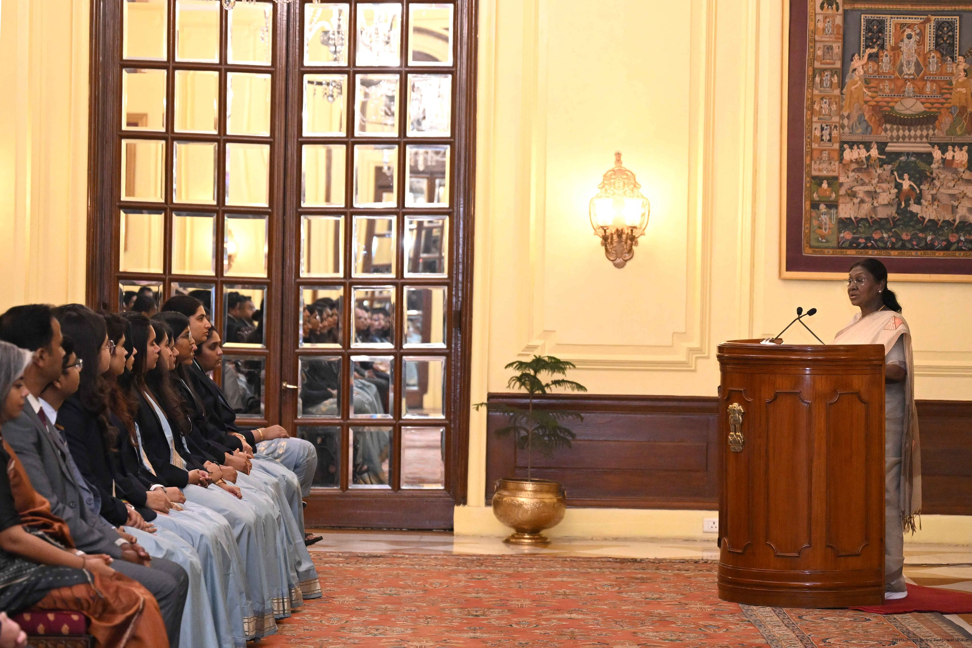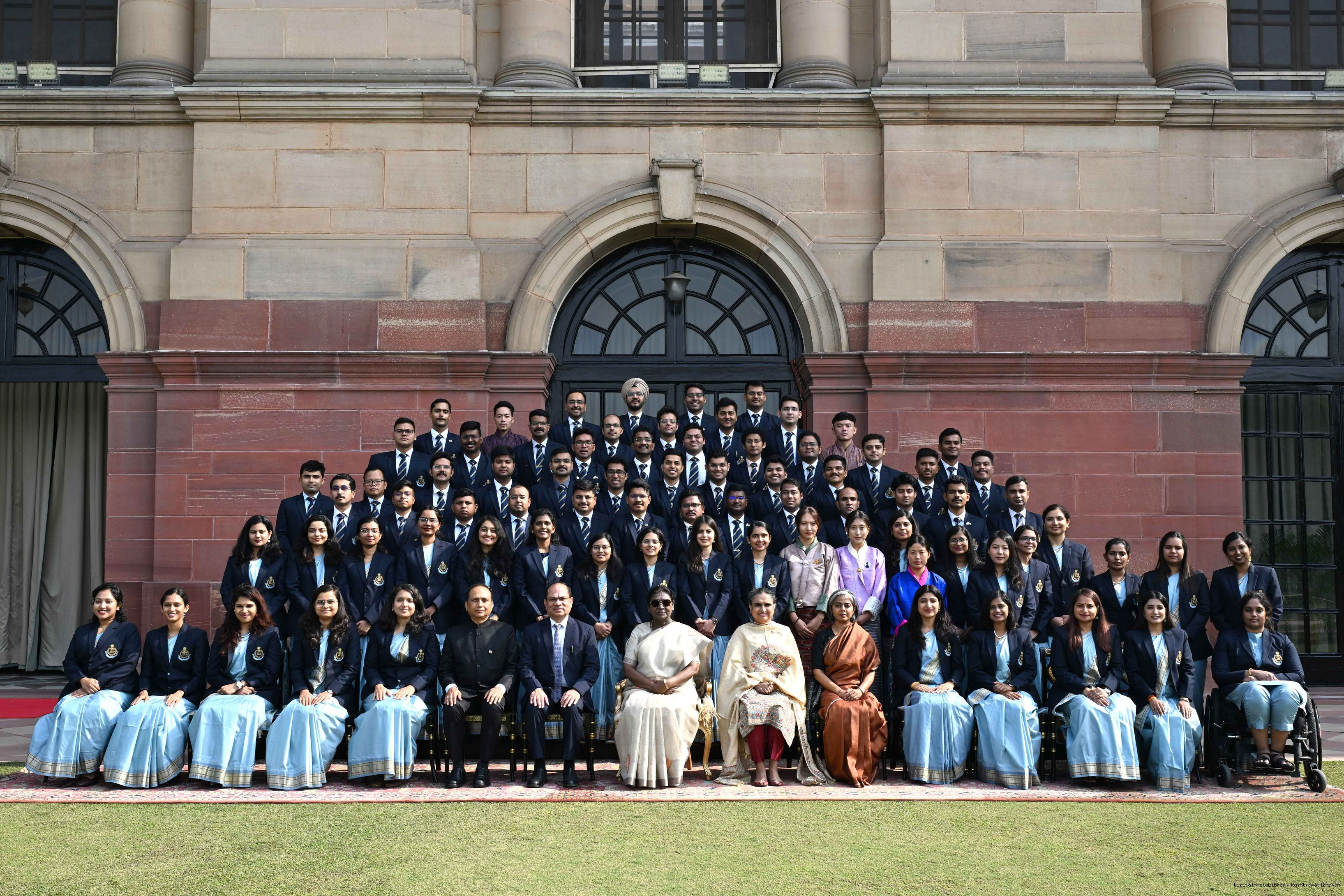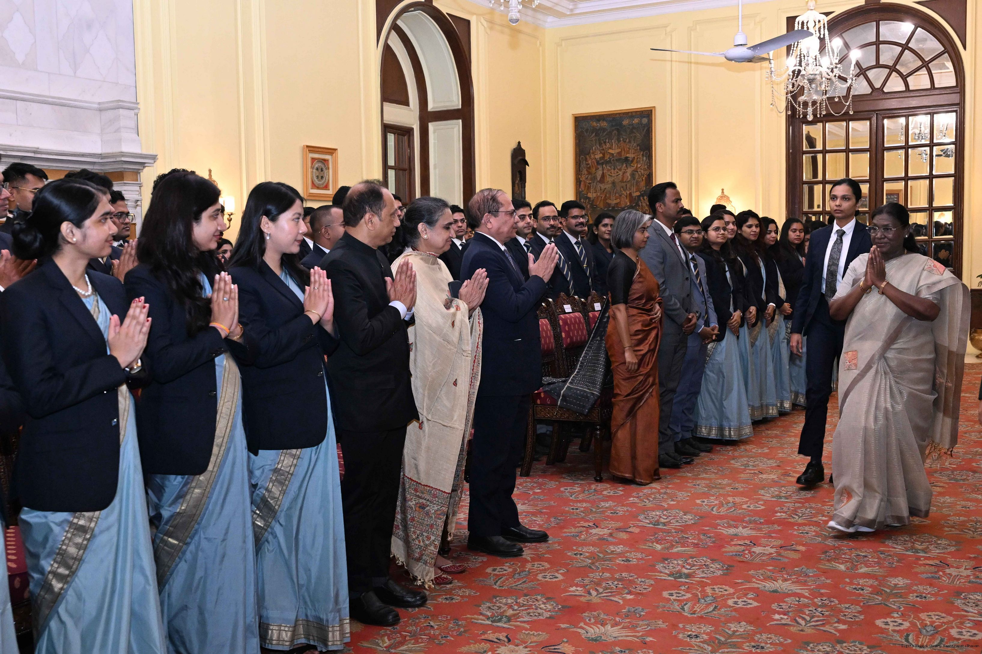 | Caption: | Officer Trainees of Indian Revenue Service (Customs and Indirect Taxes) (76th batch) called on the President of India, Smt. Droupadi Murmu at Rashtrapati Bhavan on November 25, 2025. |