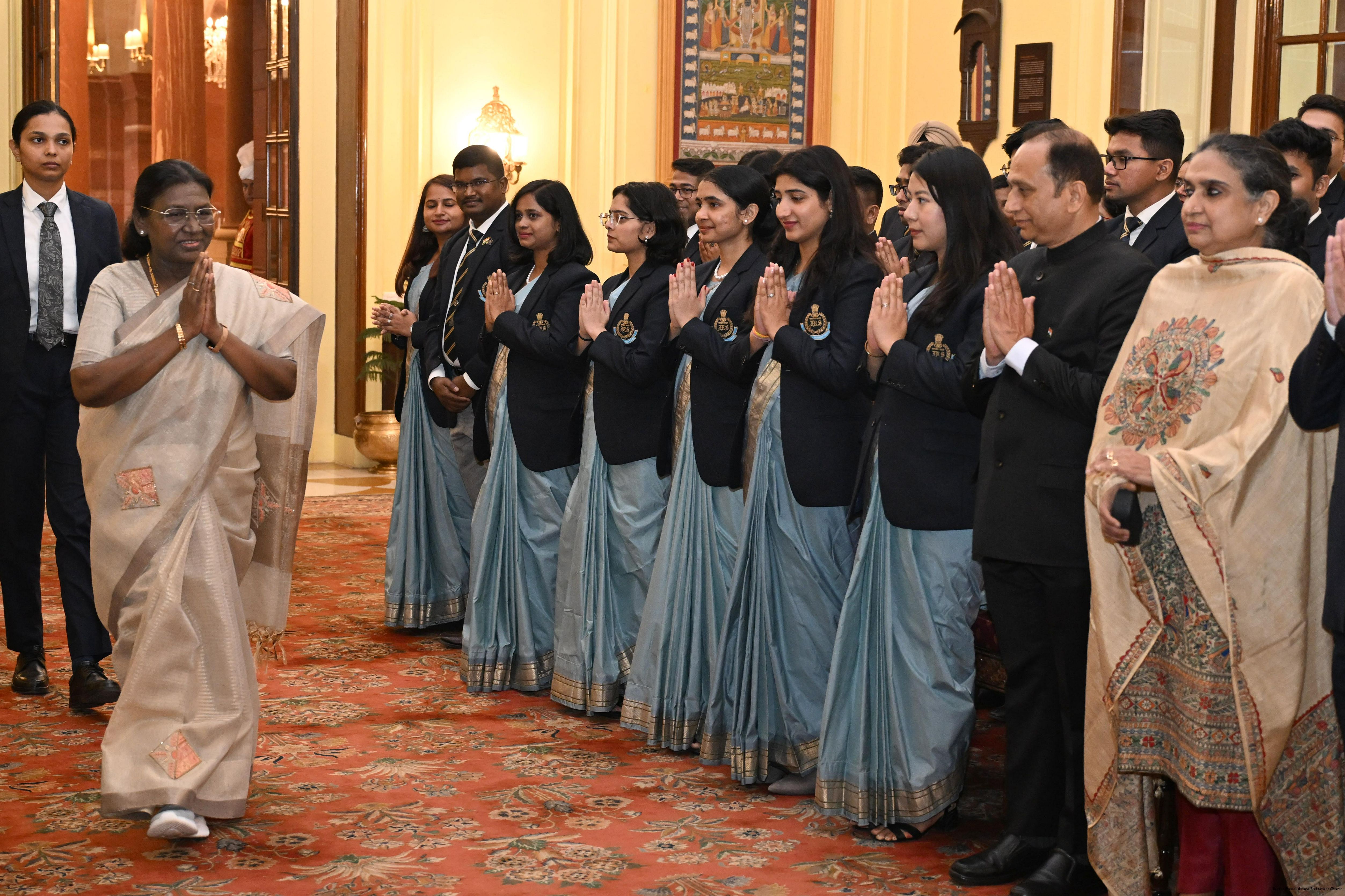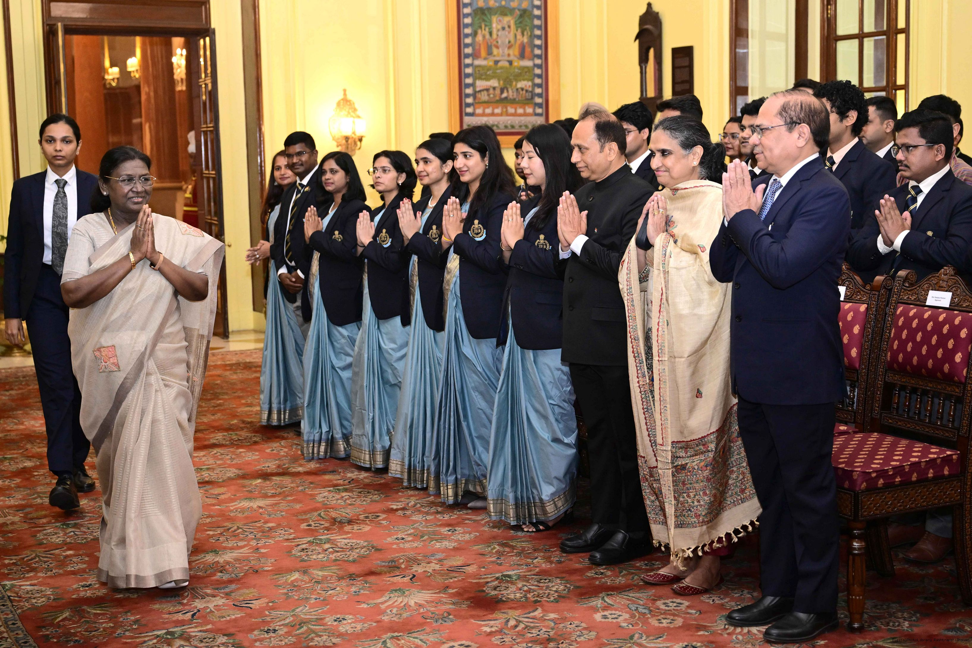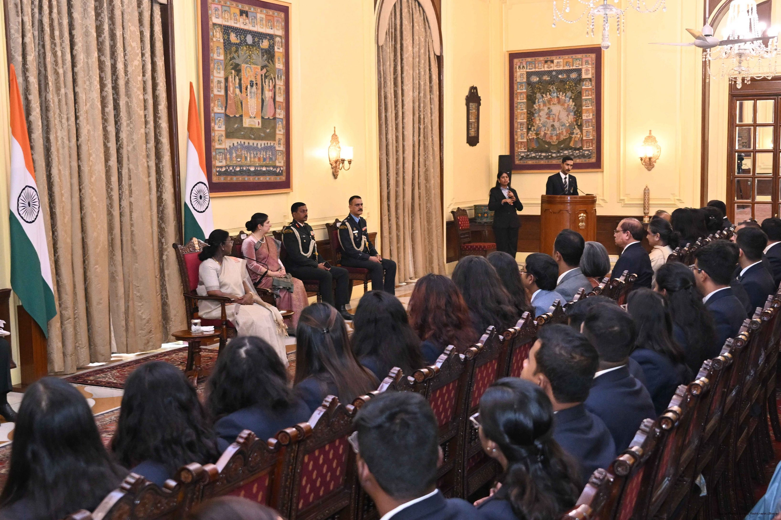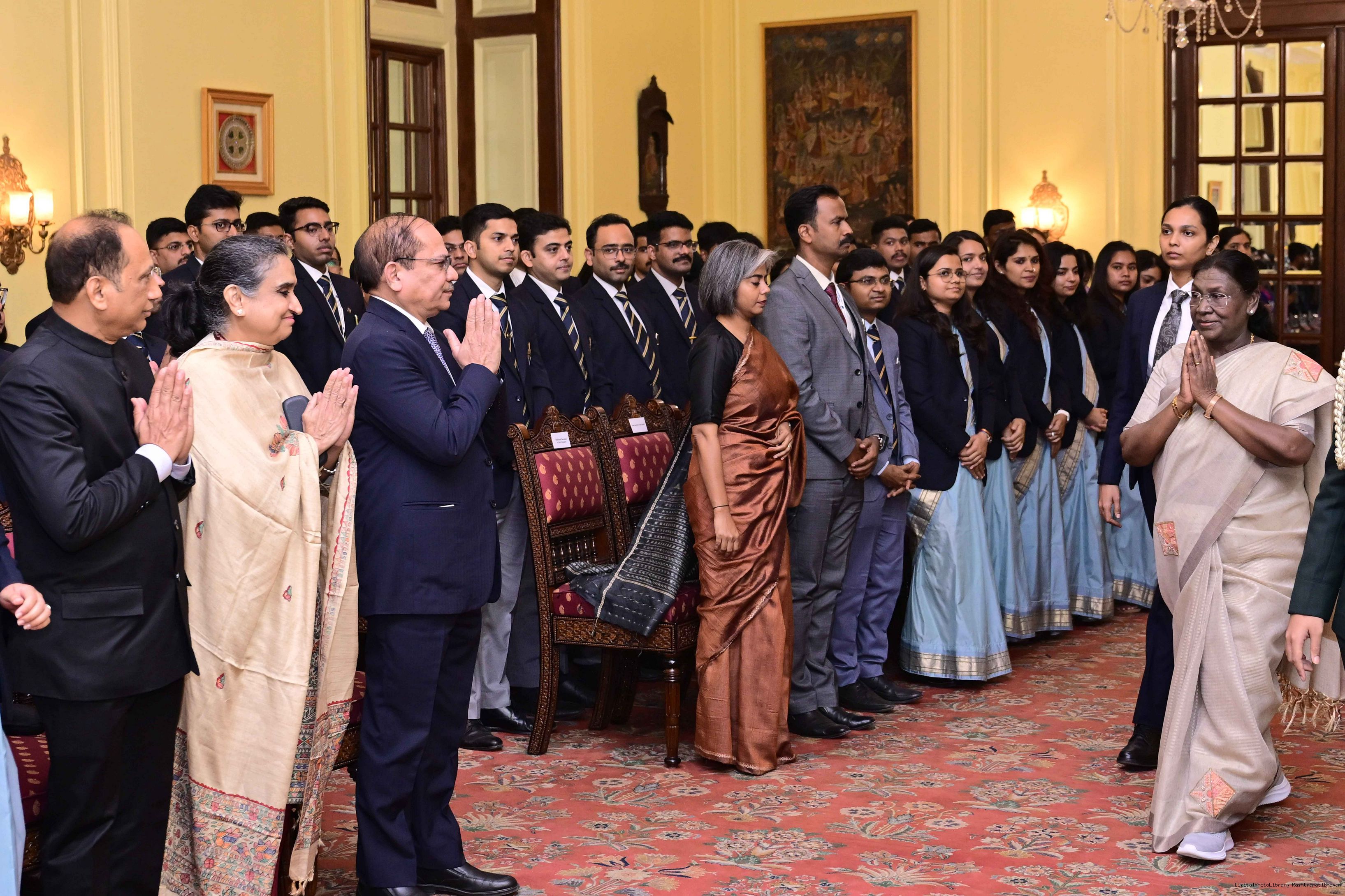 | Caption: | Officer Trainees of Indian Revenue Service (Customs and Indirect Taxes) (76th batch) called on the President of India, Smt. Droupadi Murmu at Rashtrapati Bhavan on November 25, 2025. |