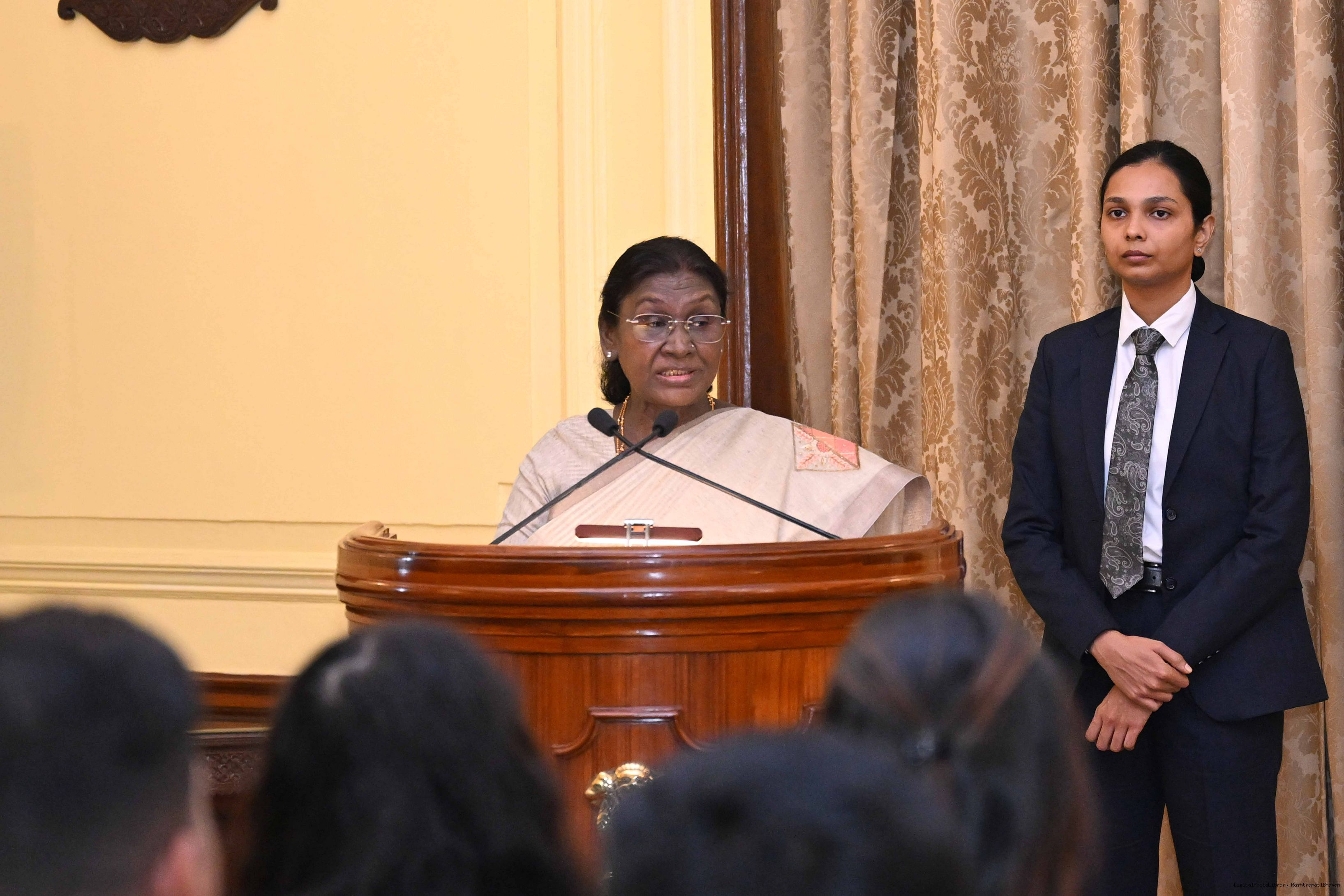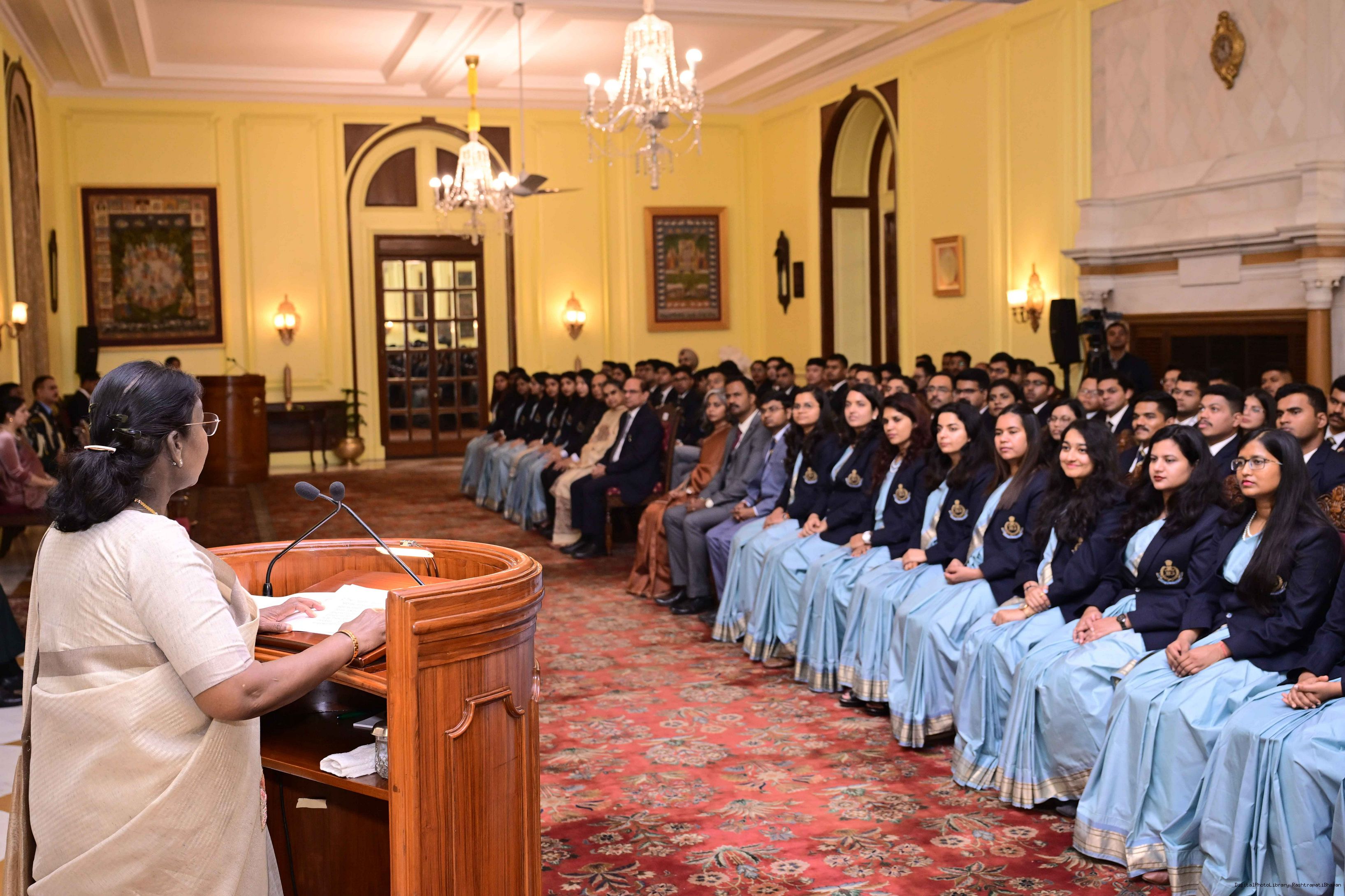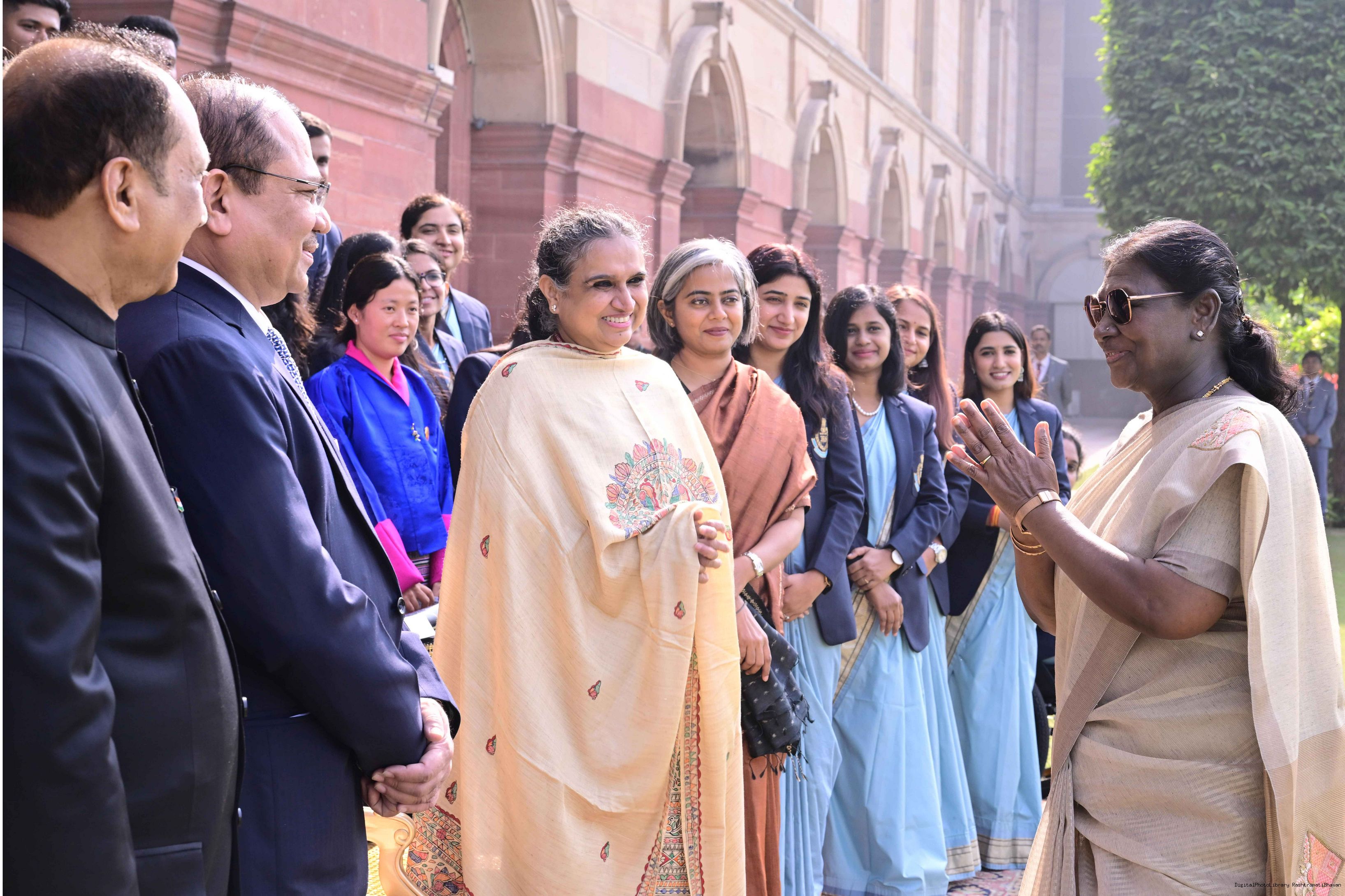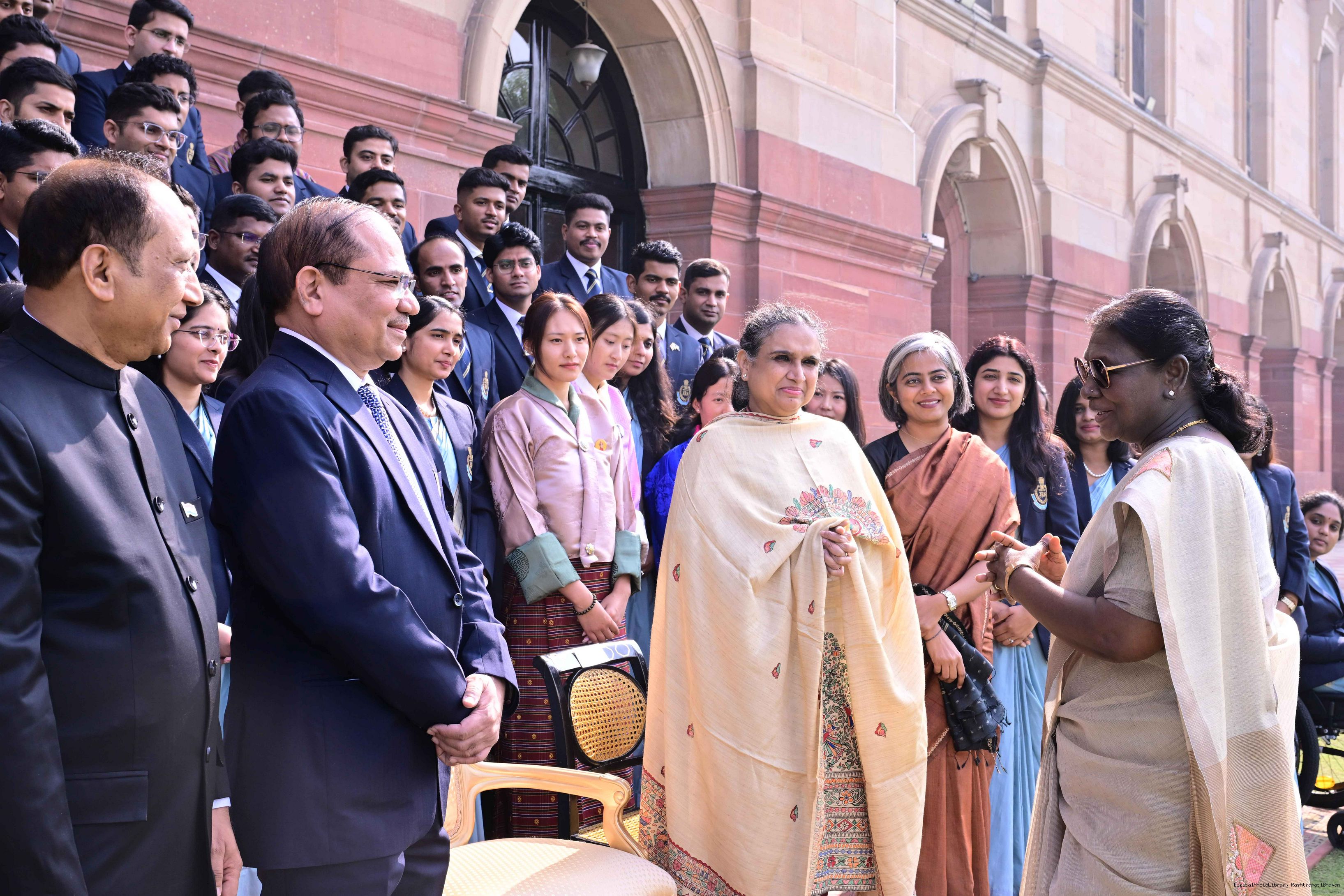 | Caption: | Officer Trainees of Indian Revenue Service (Customs and Indirect Taxes) (76th batch) called on the President of India, Smt. Droupadi Murmu at Rashtrapati Bhavan on November 25, 2025. |