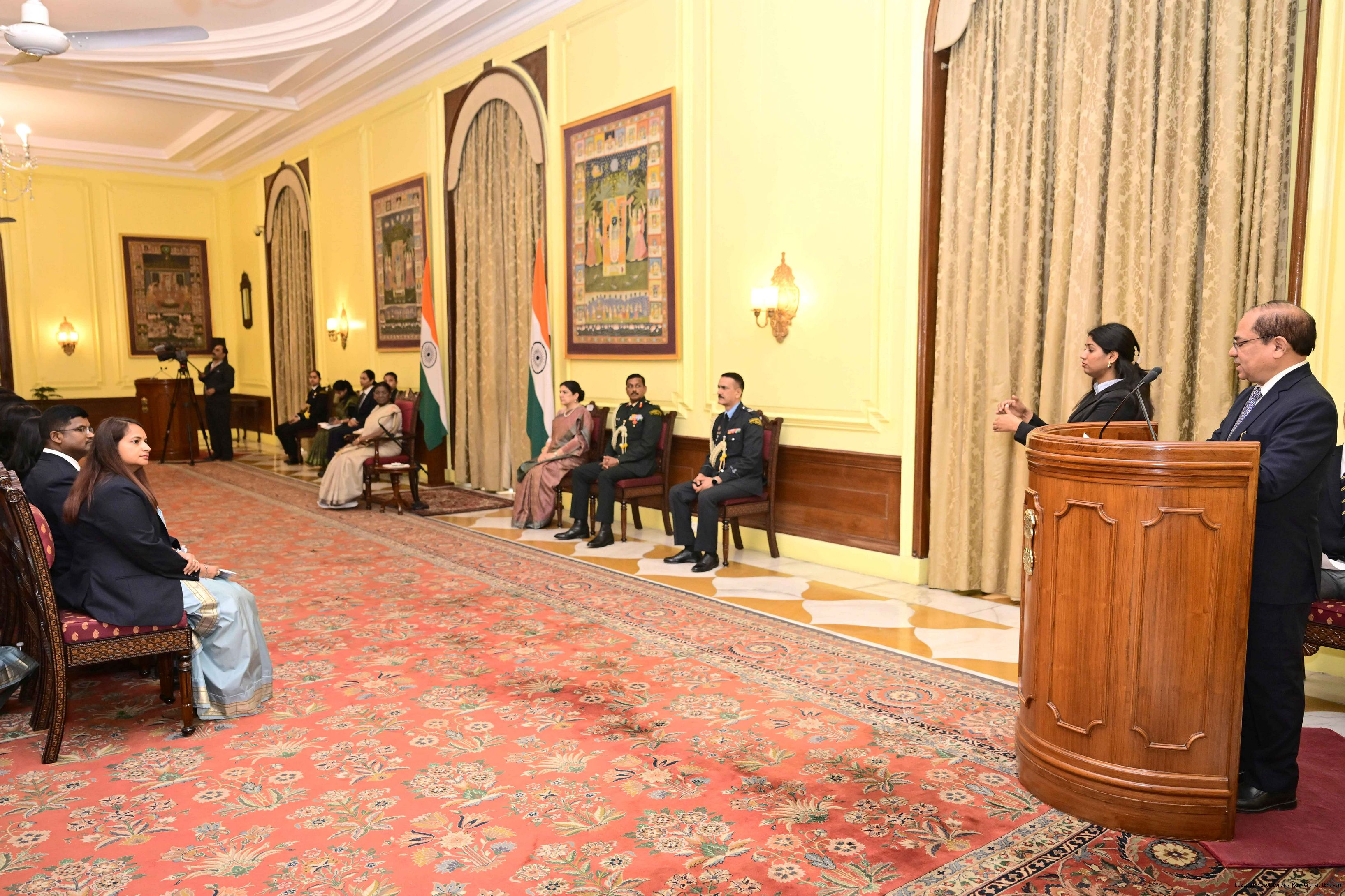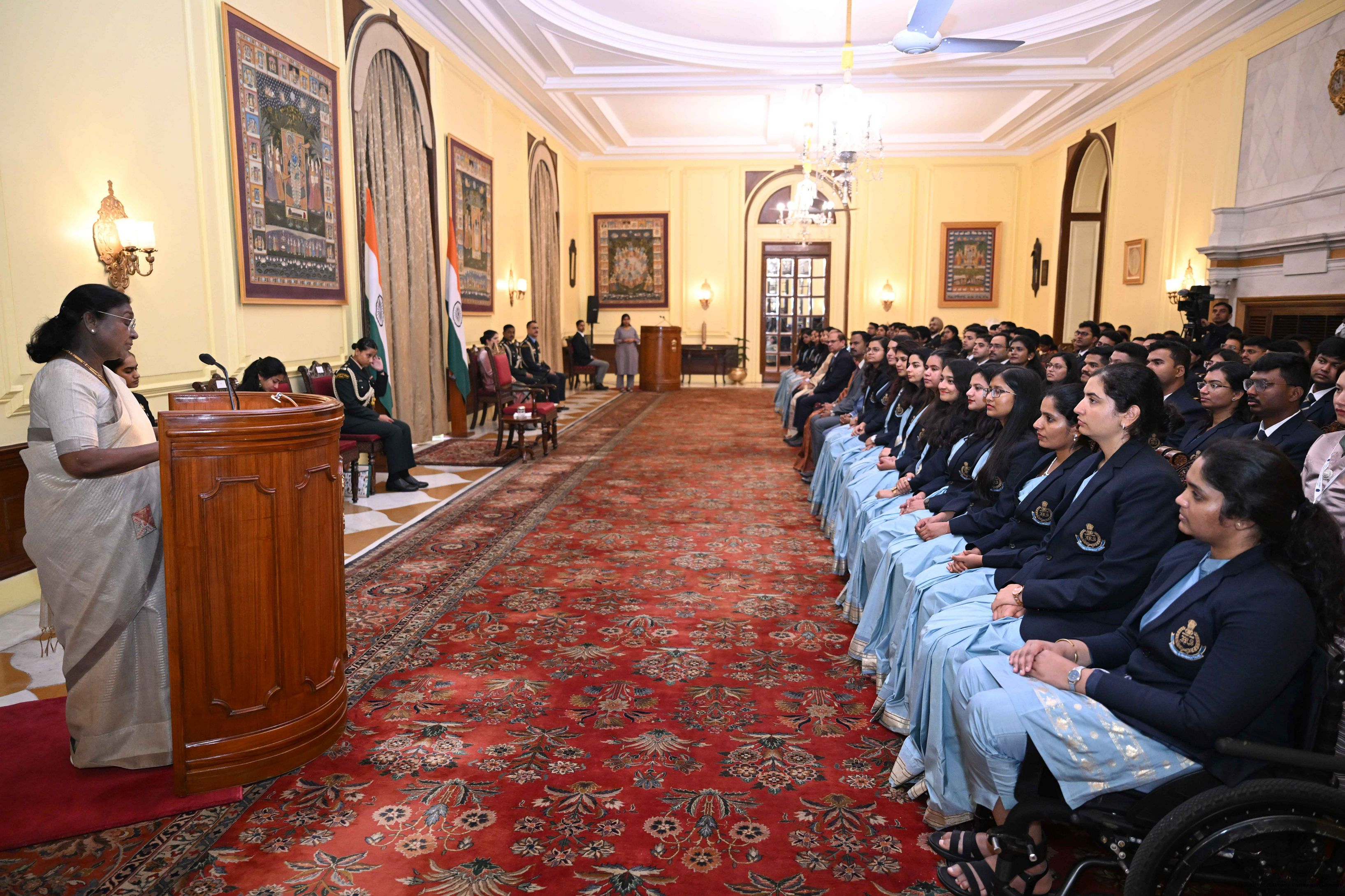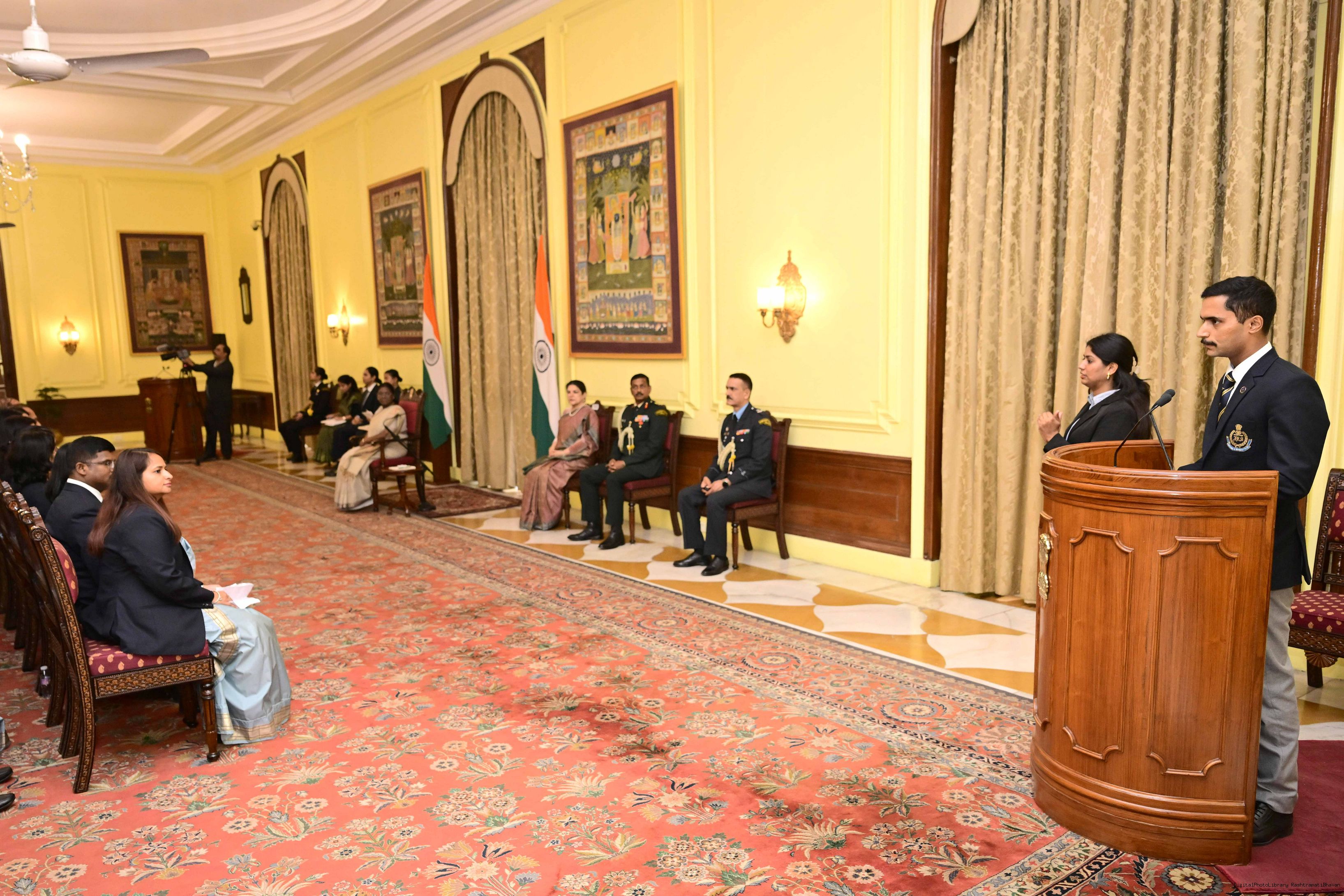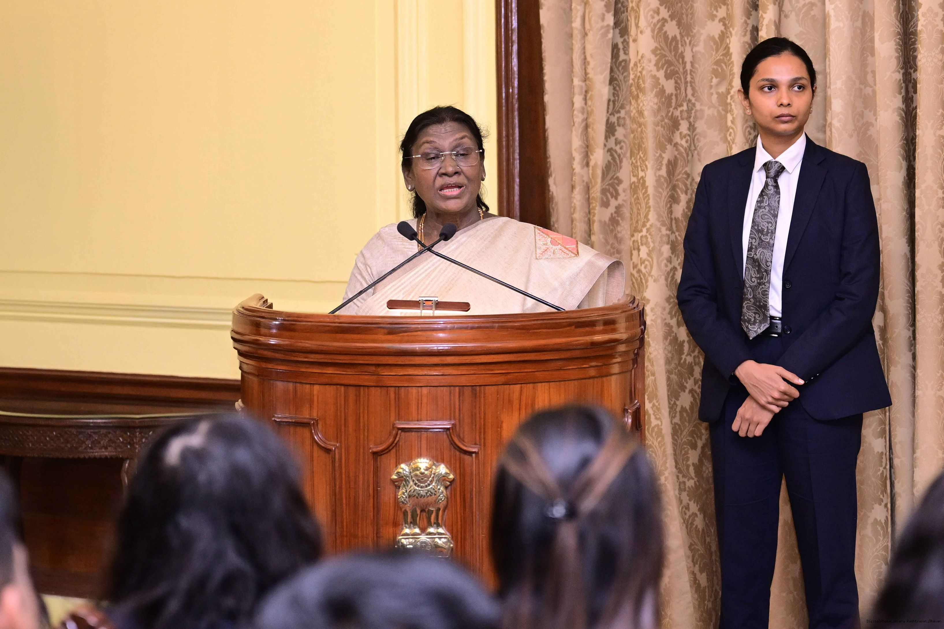 | Caption: | Officer Trainees of Indian Revenue Service (Customs and Indirect Taxes) (76th batch) called on the President of India, Smt. Droupadi Murmu at Rashtrapati Bhavan on November 25, 2025. |