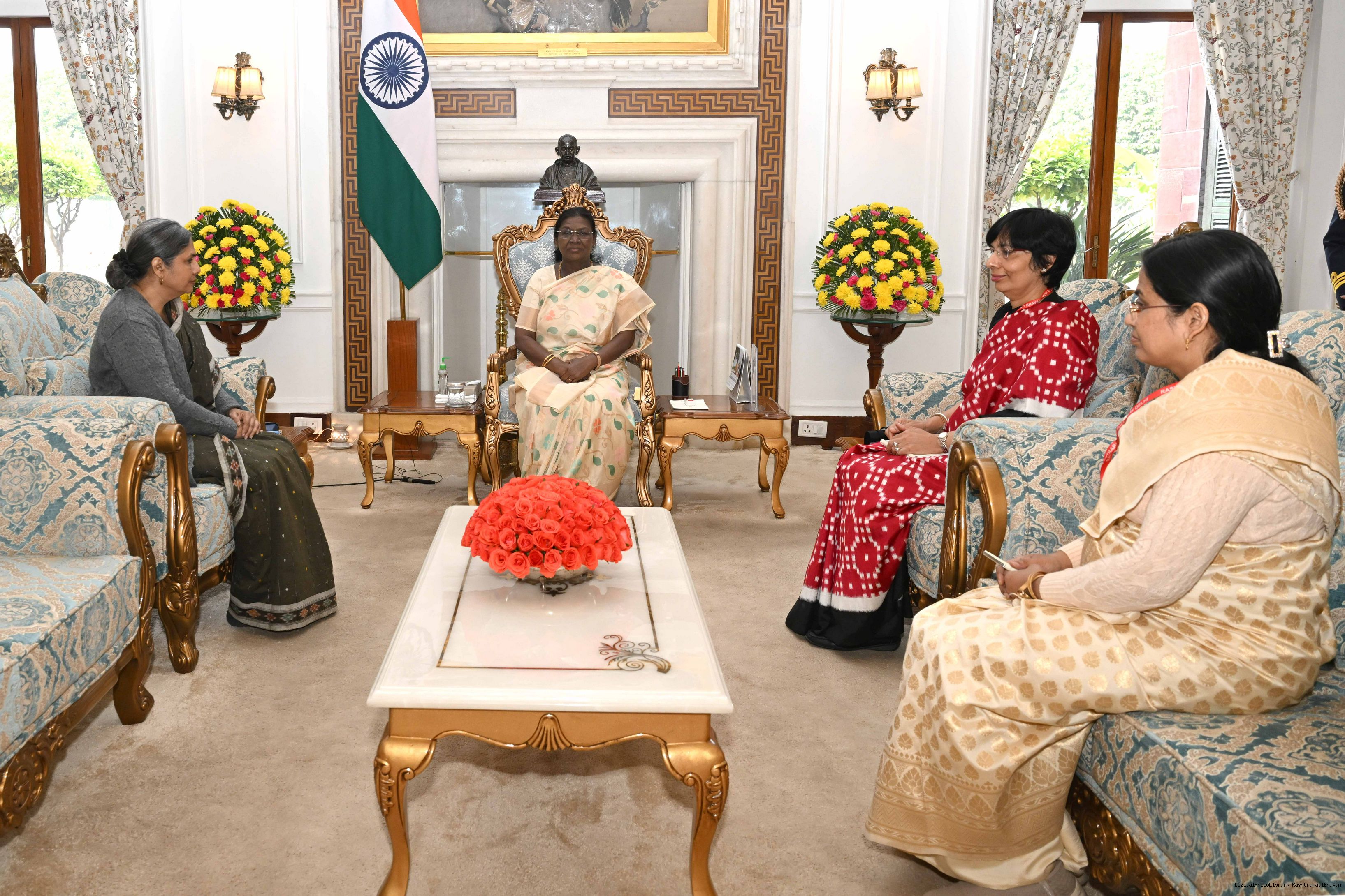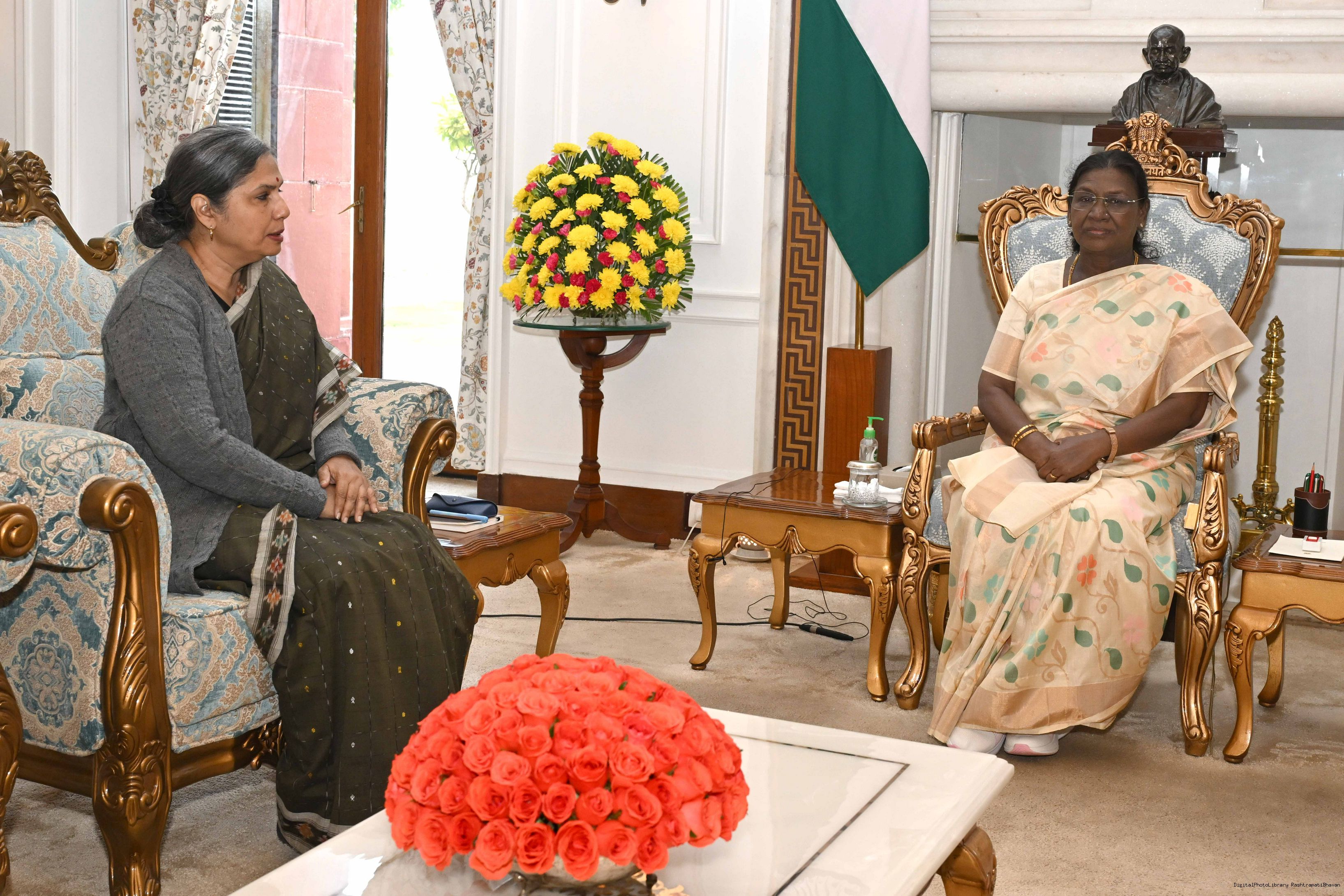 | Caption: | Ms. Svati Chakravarty Bhatkal, Director, Amir Khan Productions meeting with the President of India, Smt. Droupadi Murmu at Rashtrapati Bhavan on November 24, 2025. |