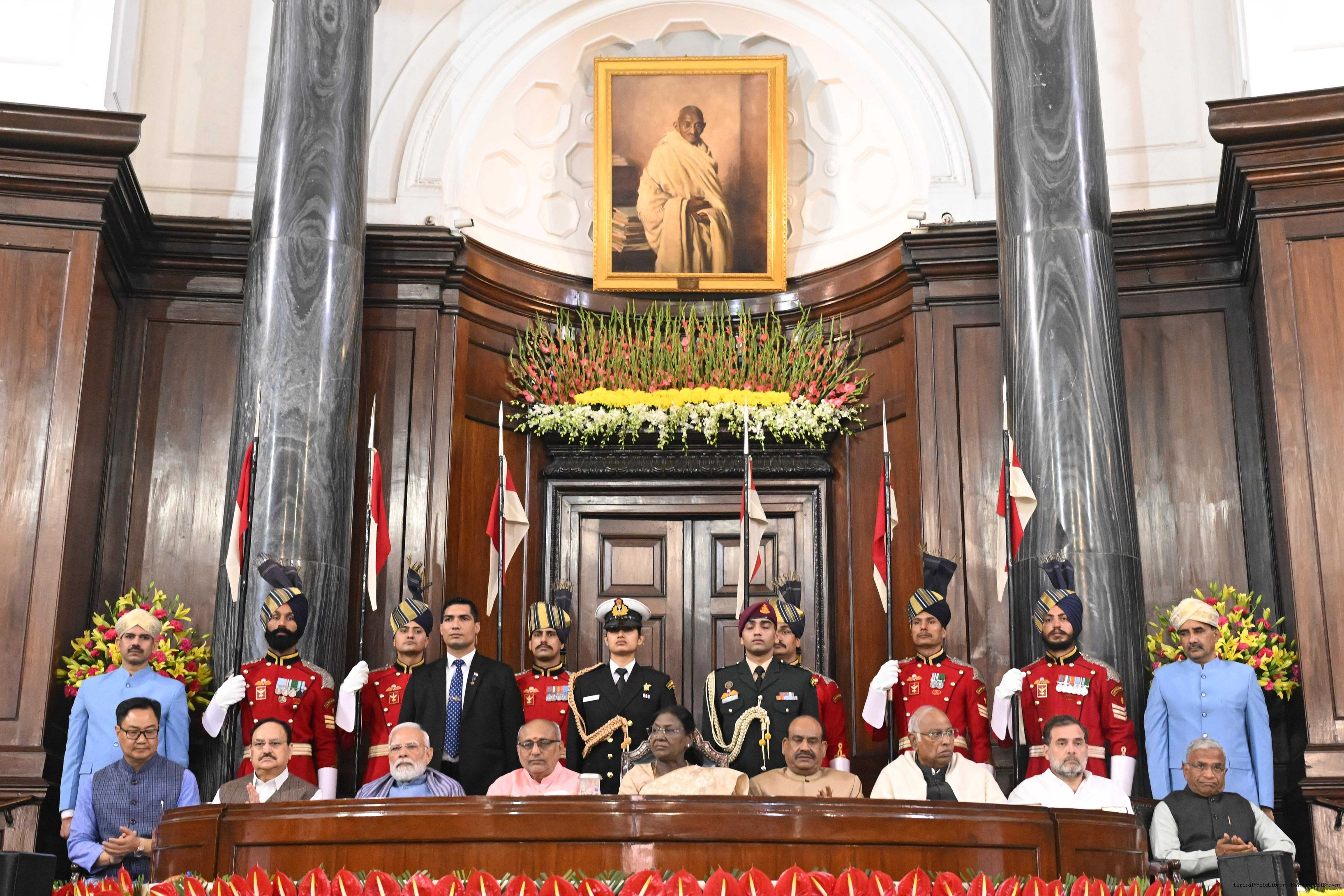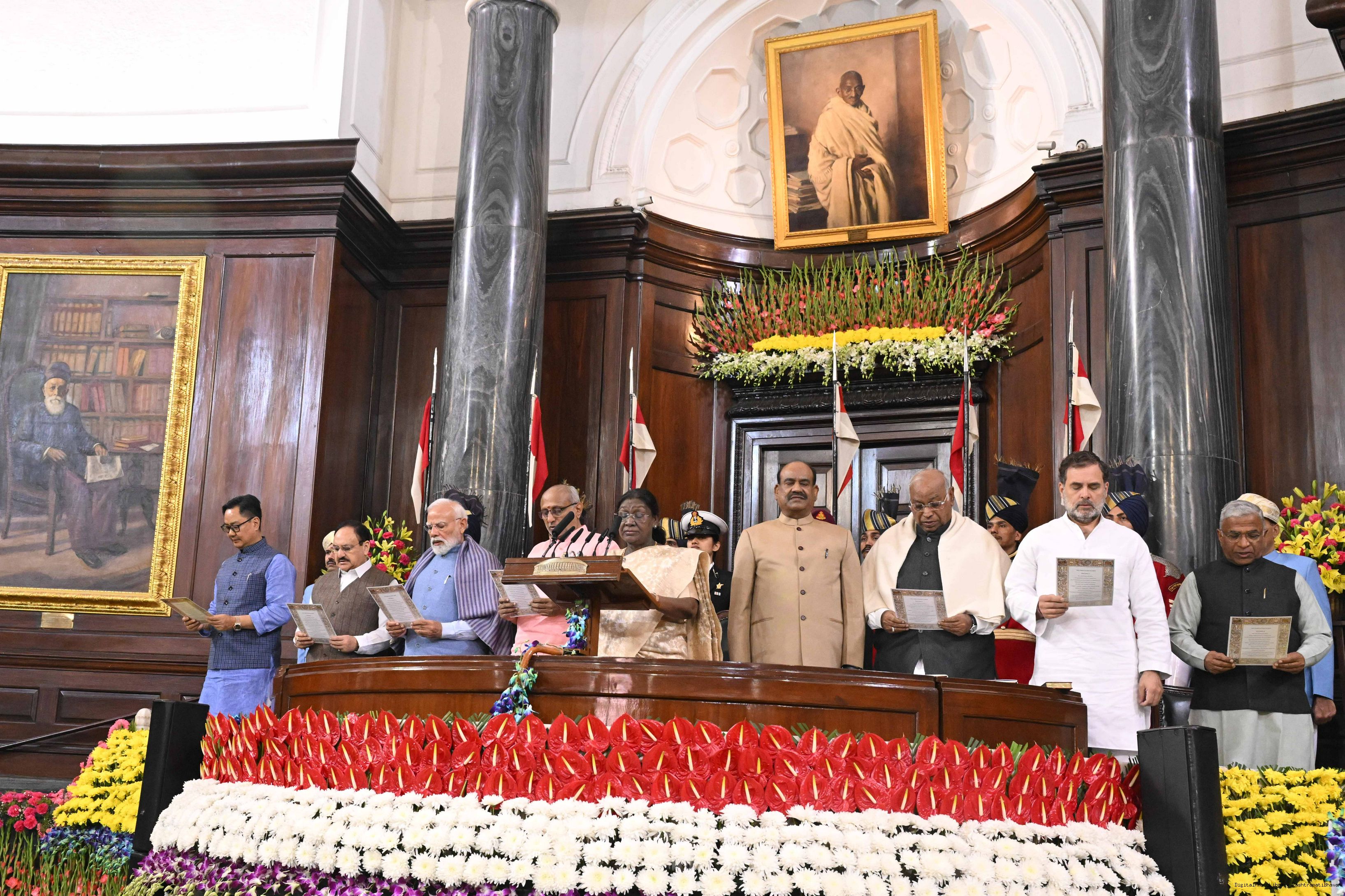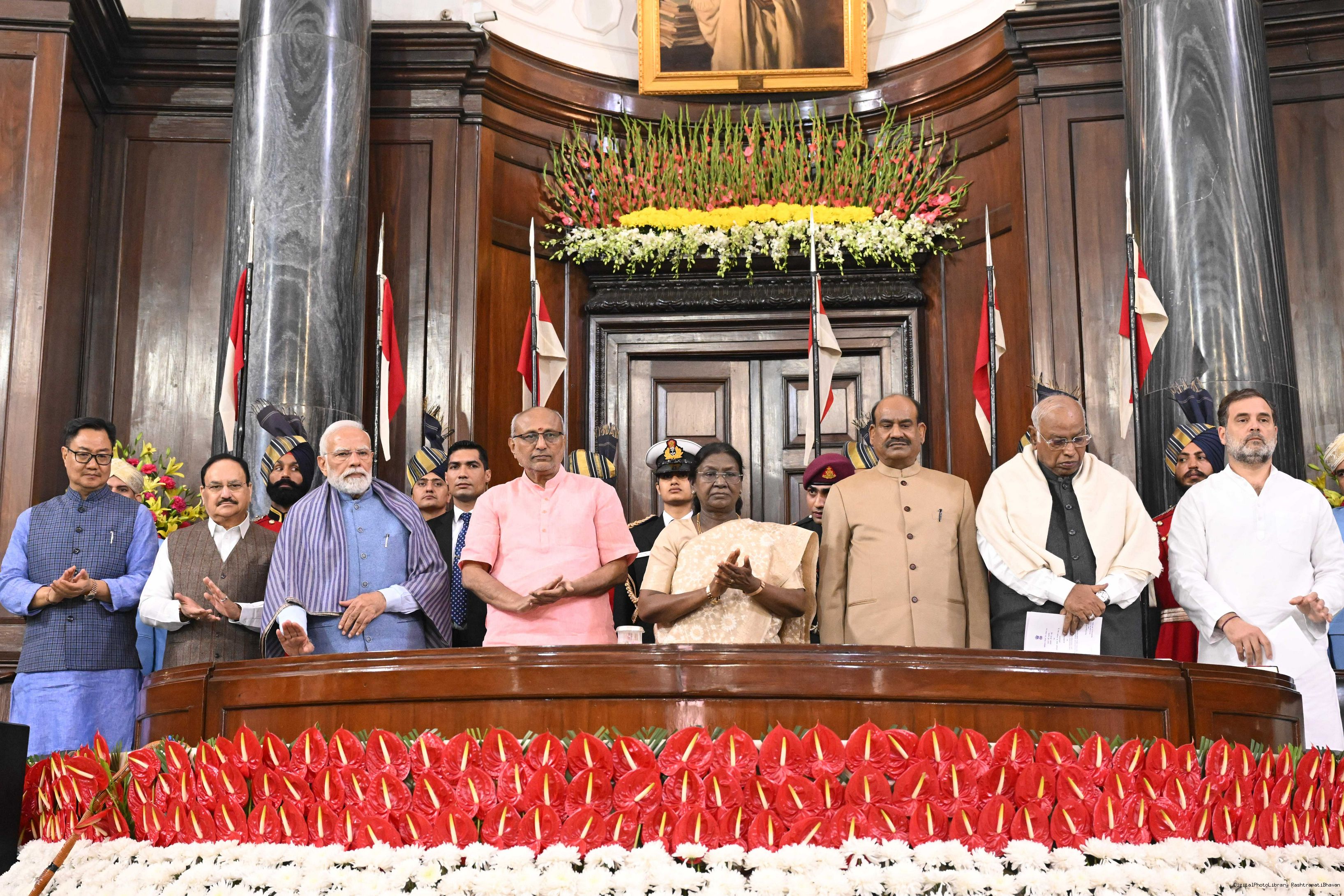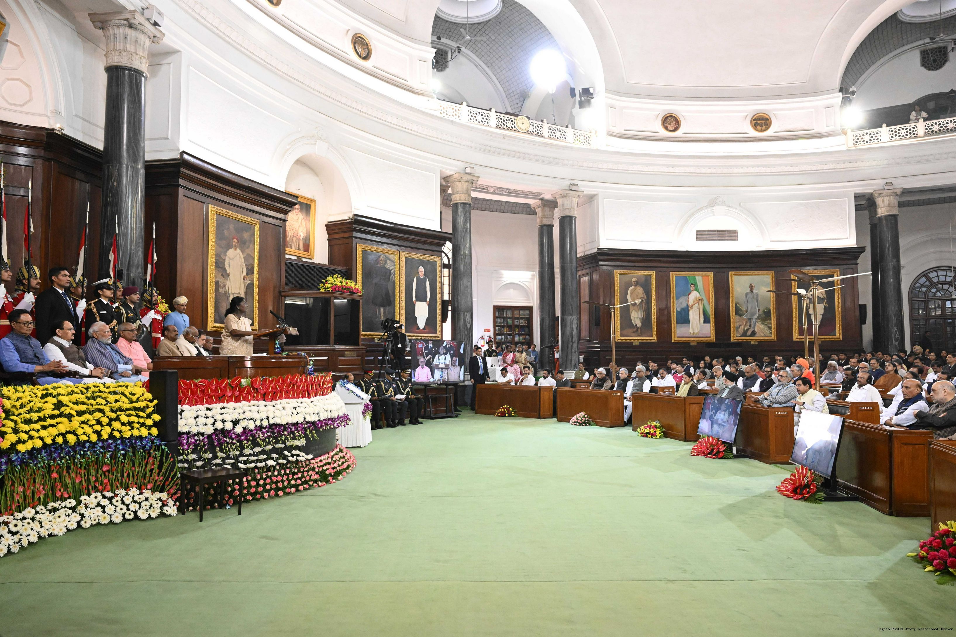 The President of India, Smt. Droupadi Murmu graced the Constitution Day Celebration at the Central Hall of Samvidhan Sadan in New Delhi on November 26, 2025.