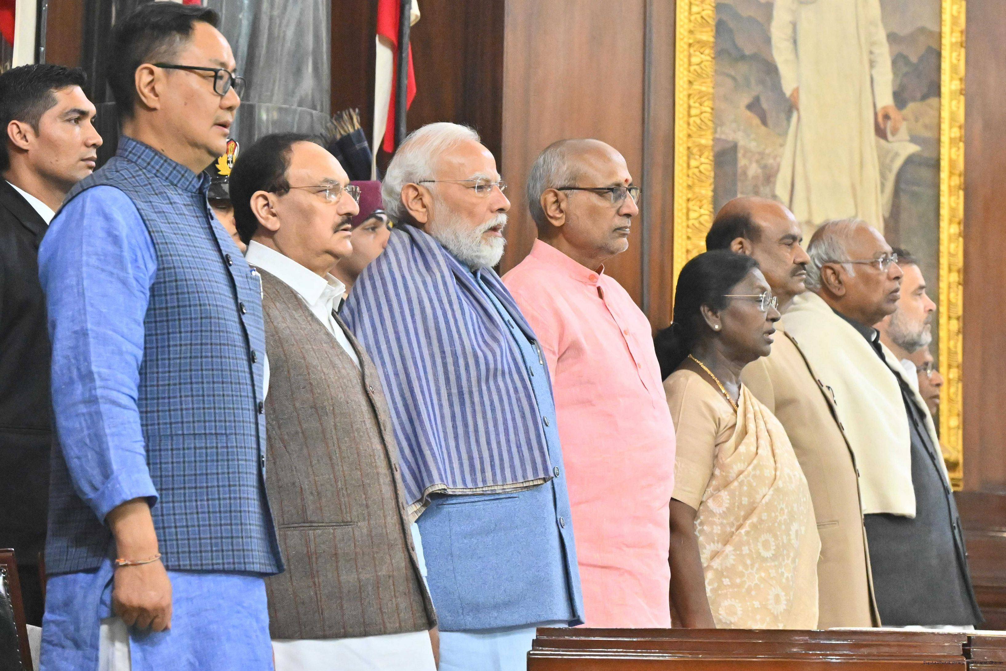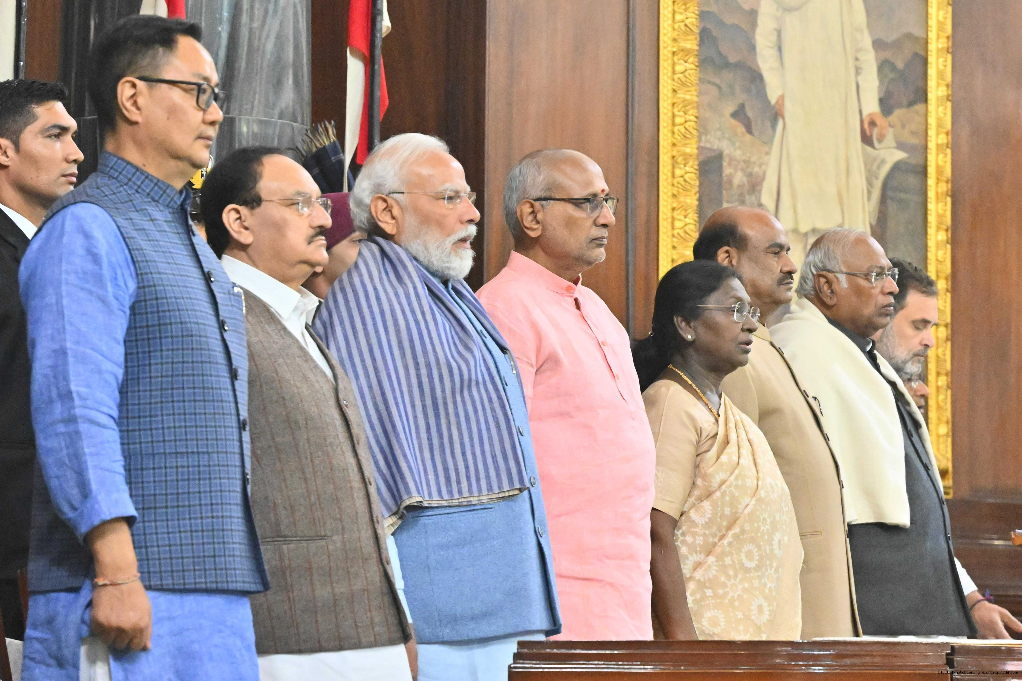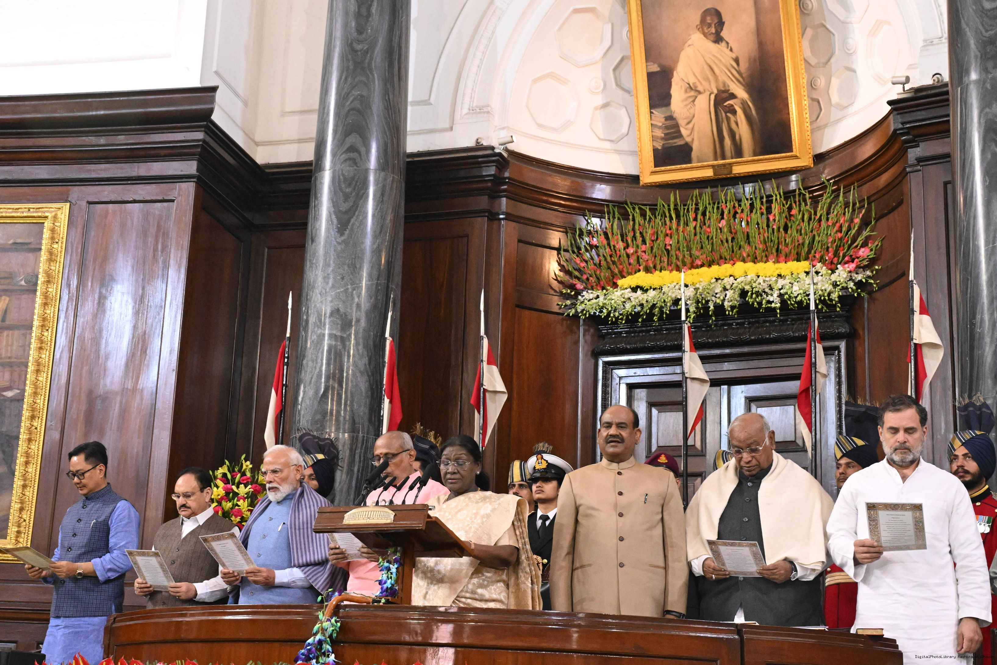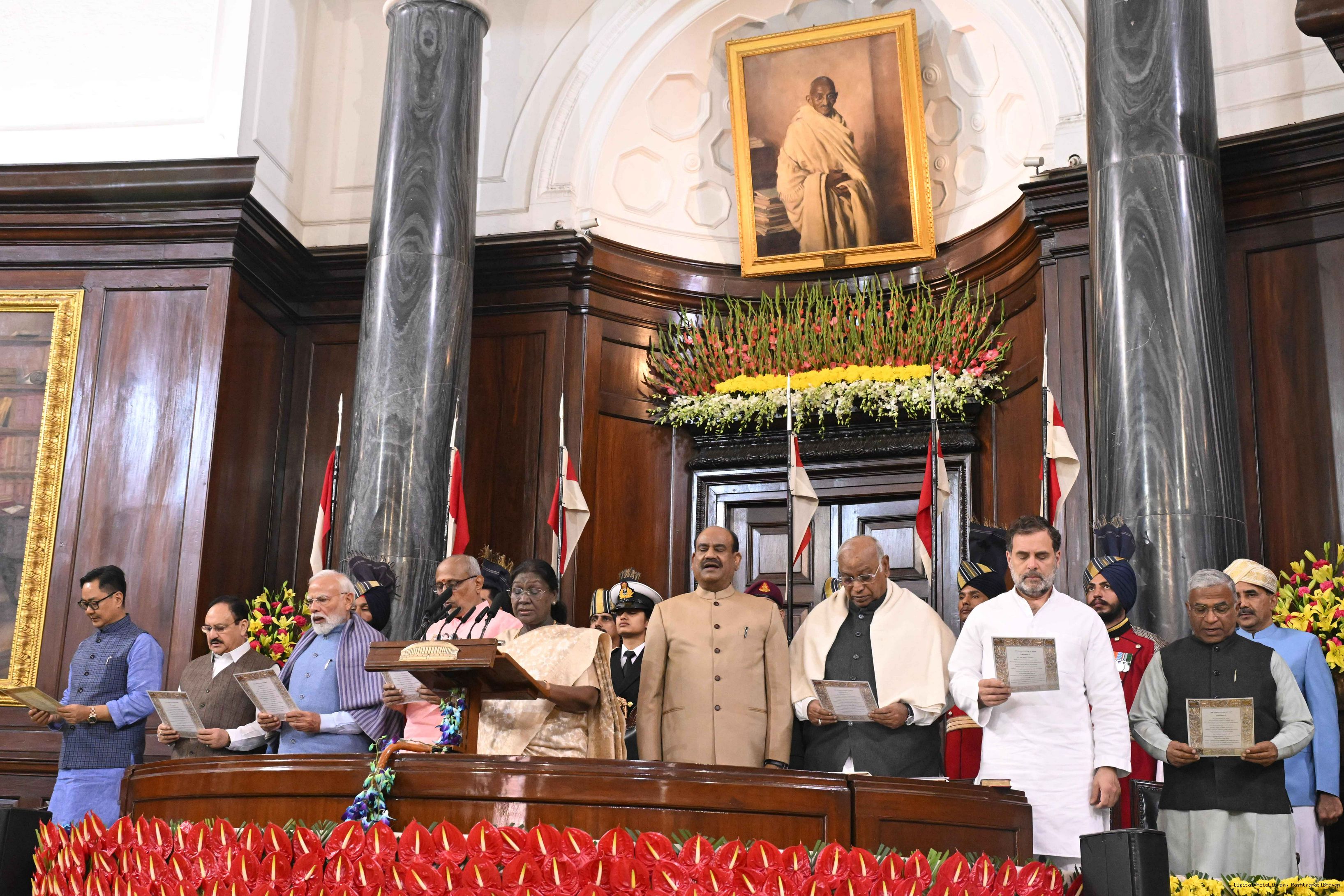 The President of India, Smt. Droupadi Murmu graced the Constitution Day Celebration at the Central Hall of Samvidhan Sadan in New Delhi on November 26, 2025.