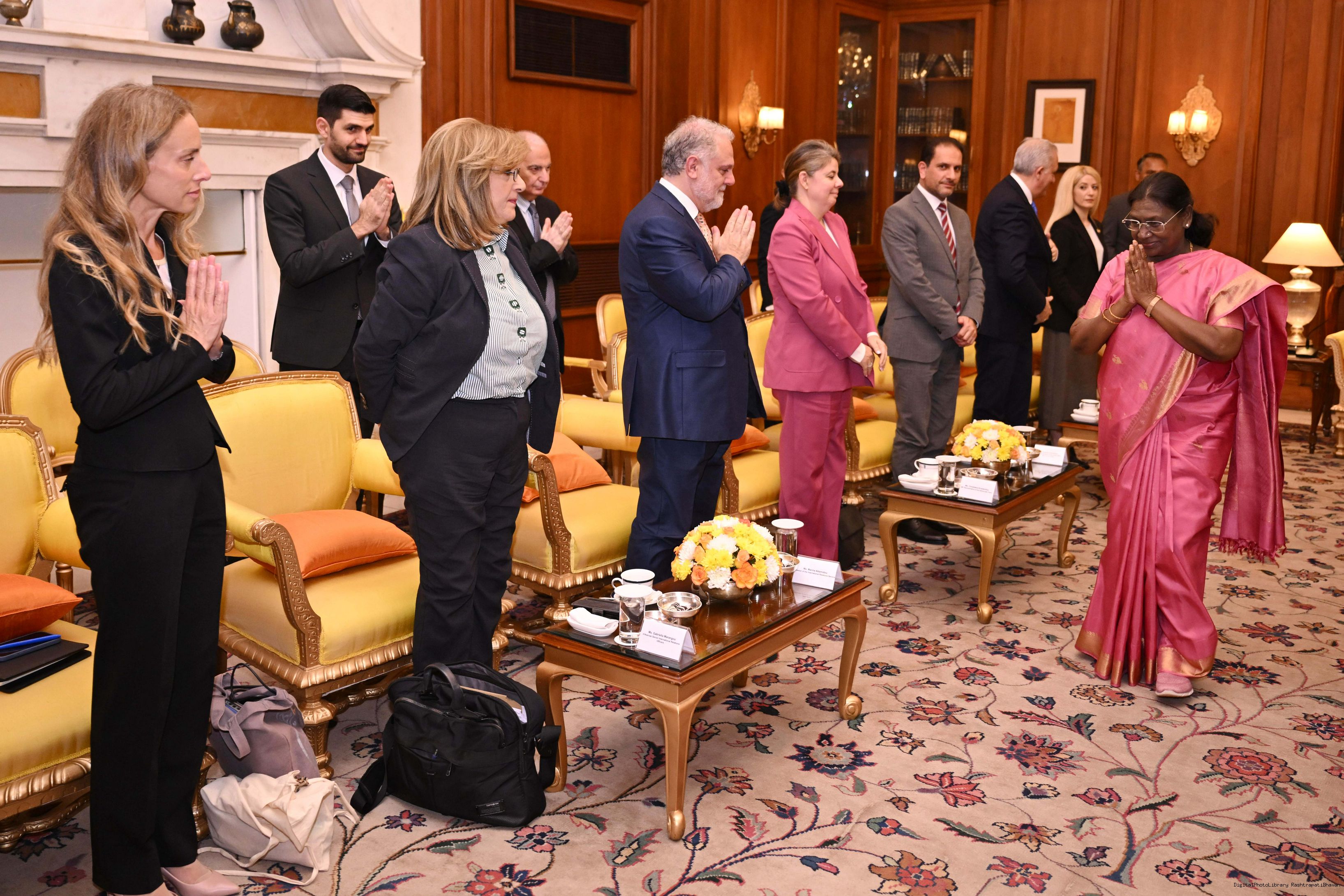 | Caption: | A parliamentary delegation from Cyprus, led by Ms Annita Demetriou, President of the House of Representatives of Cyprus, called on the President of India, Smt. Droupadi Murmu at Rashtrapati Bhavan on November 26, 2025. |