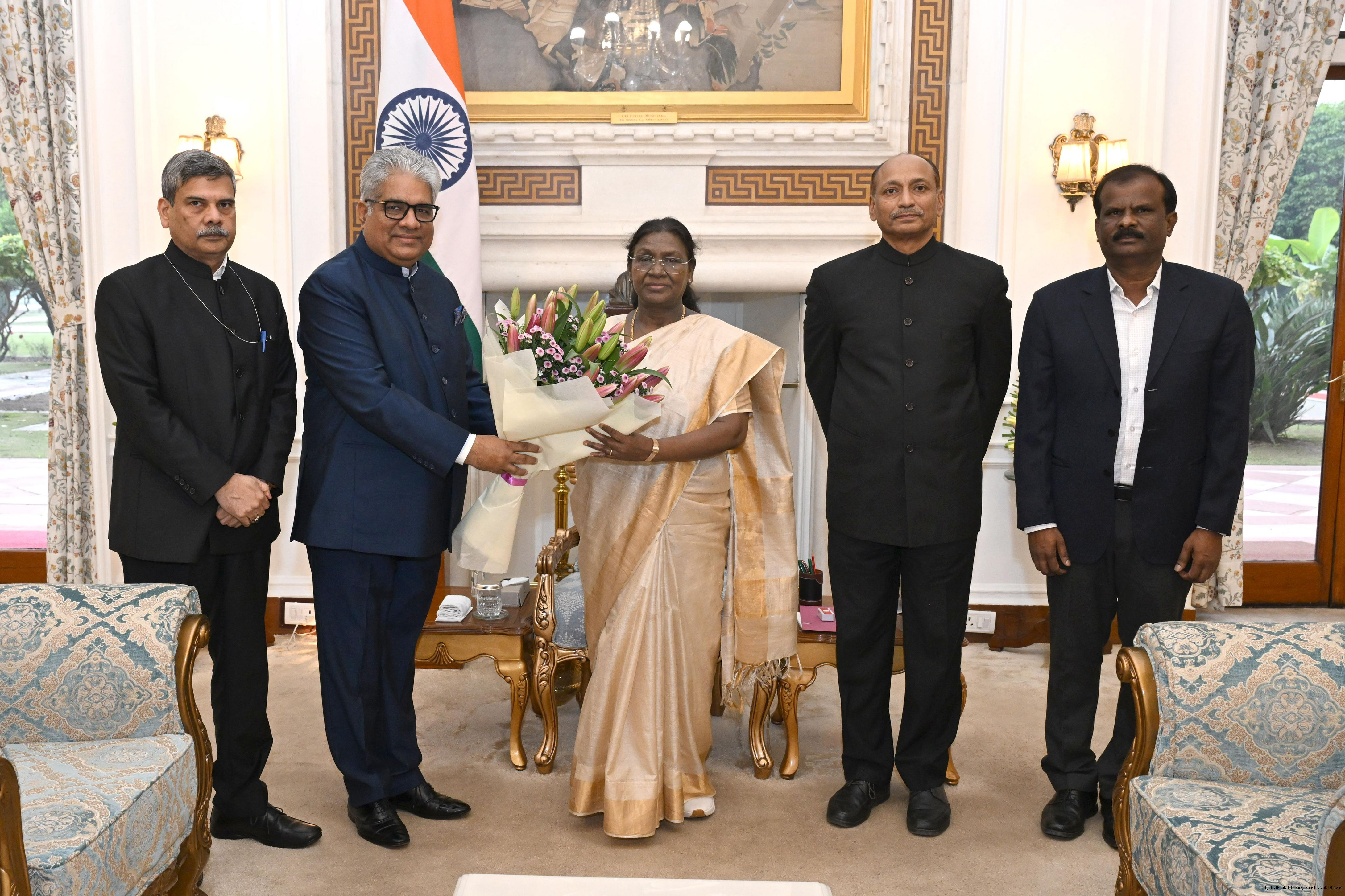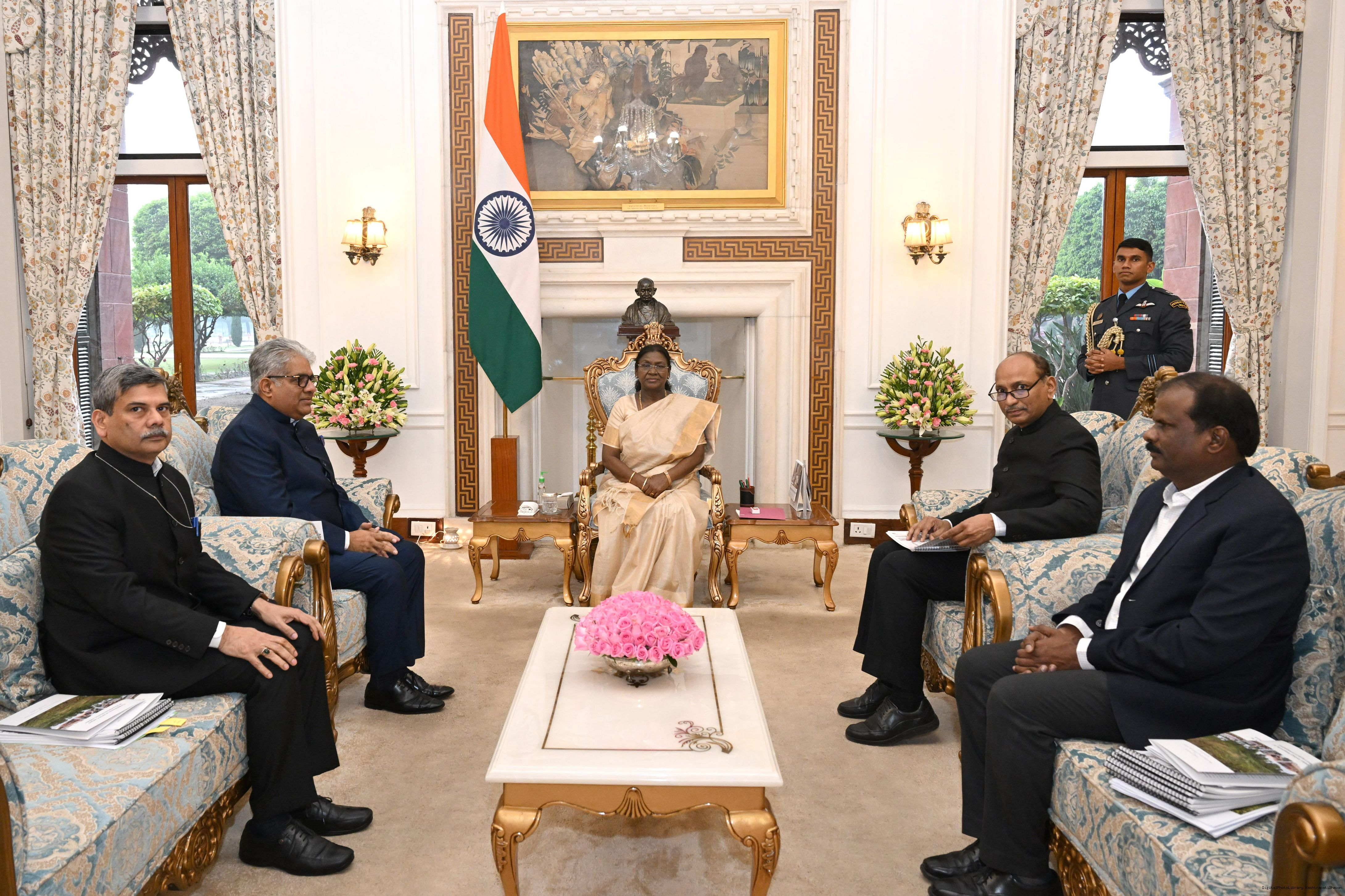 | Caption: | Shri Bhupender Yadav, Minister of Environment, Forest and Climate Change, GoI along with others called on the President of India, Smt. Droupadi Murmu at Rashtrapati Bhavan on December 2, 2025. |