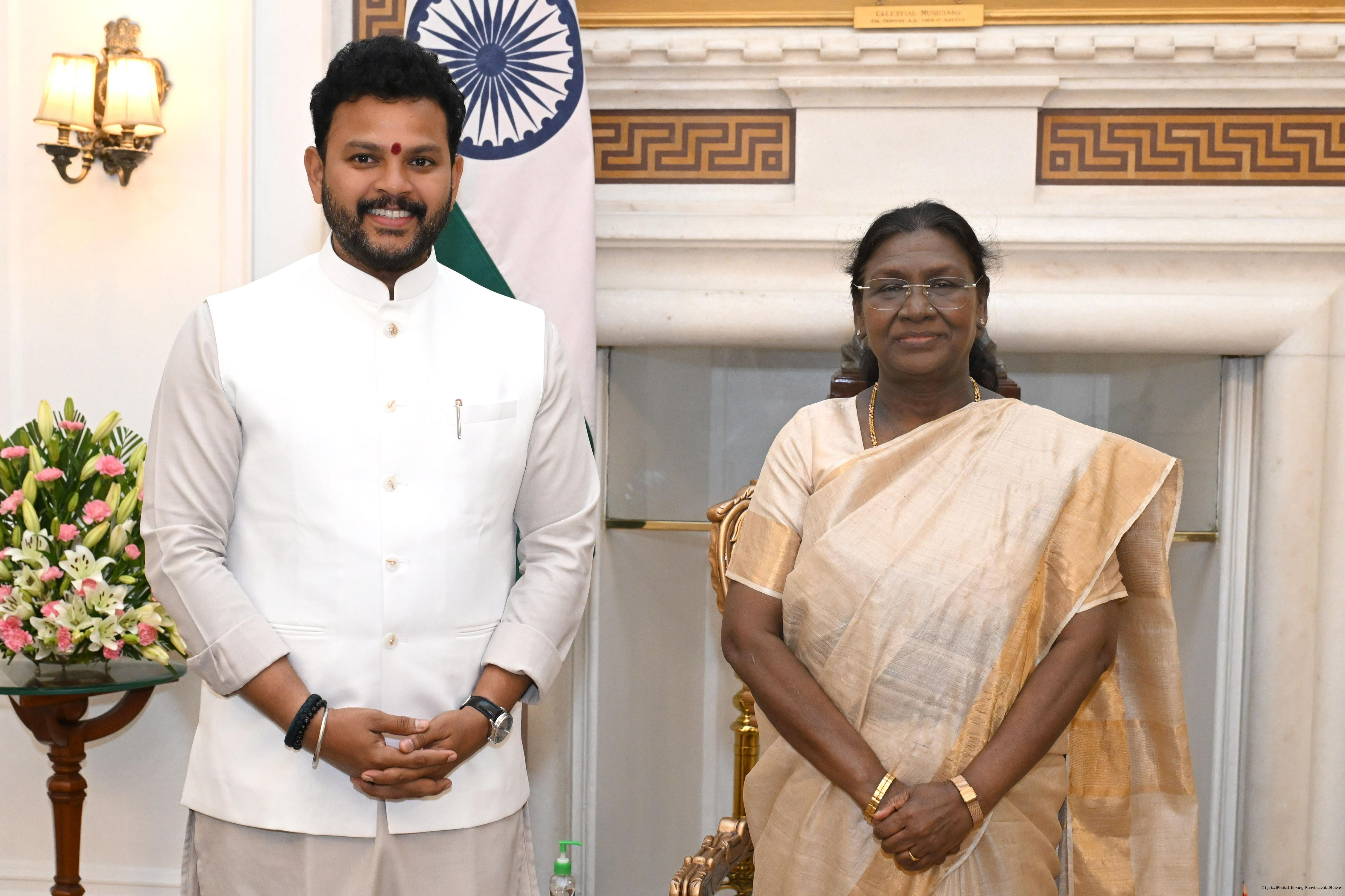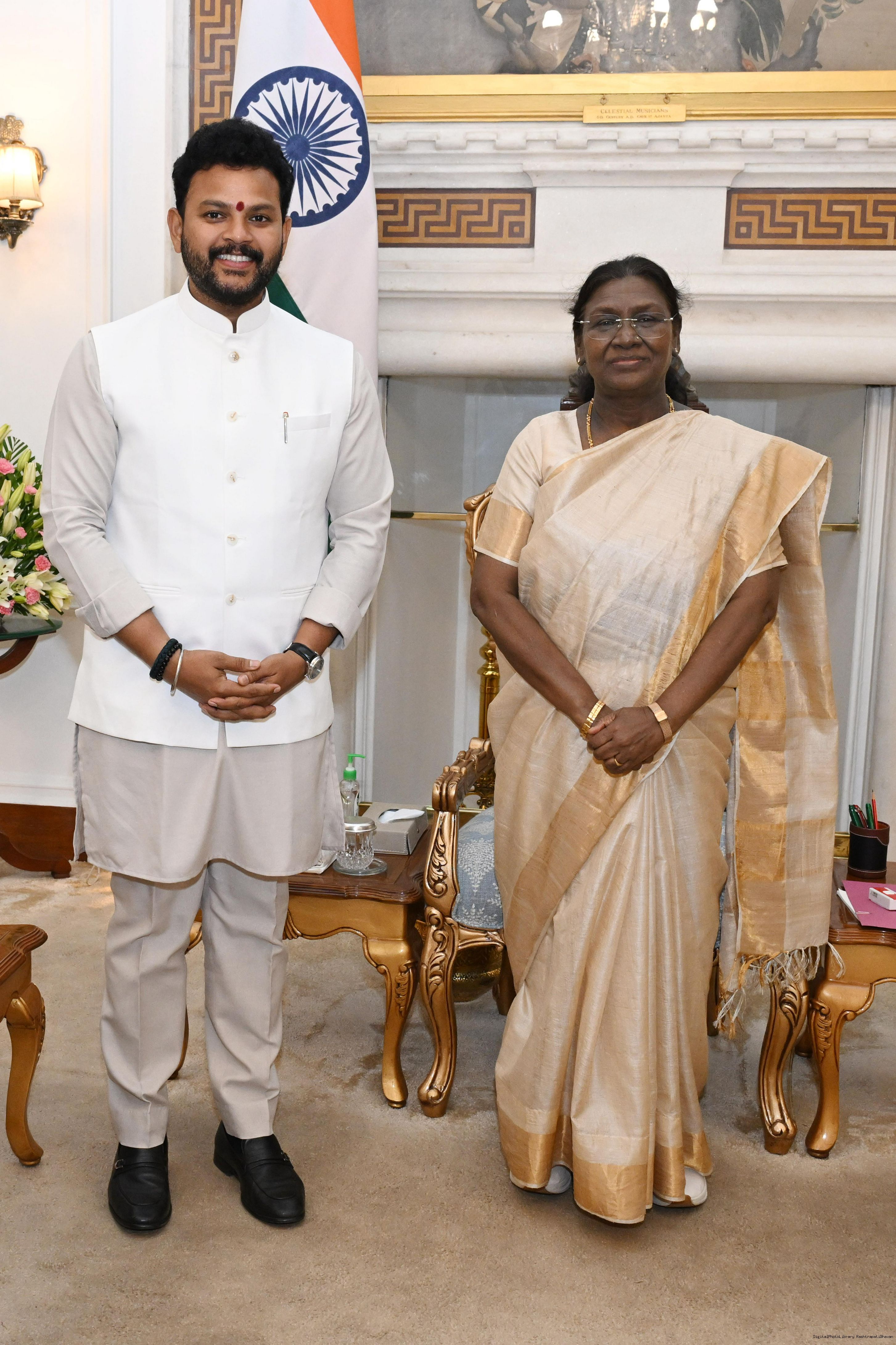 | Caption: | Shri Kinjarapu Rammohan Naidu, Minister of Civil Aviation, GoI meeting with the President of India, Smt. Droupadi Murmu at Rashtrapati Bhavan on December 2, 2025. |