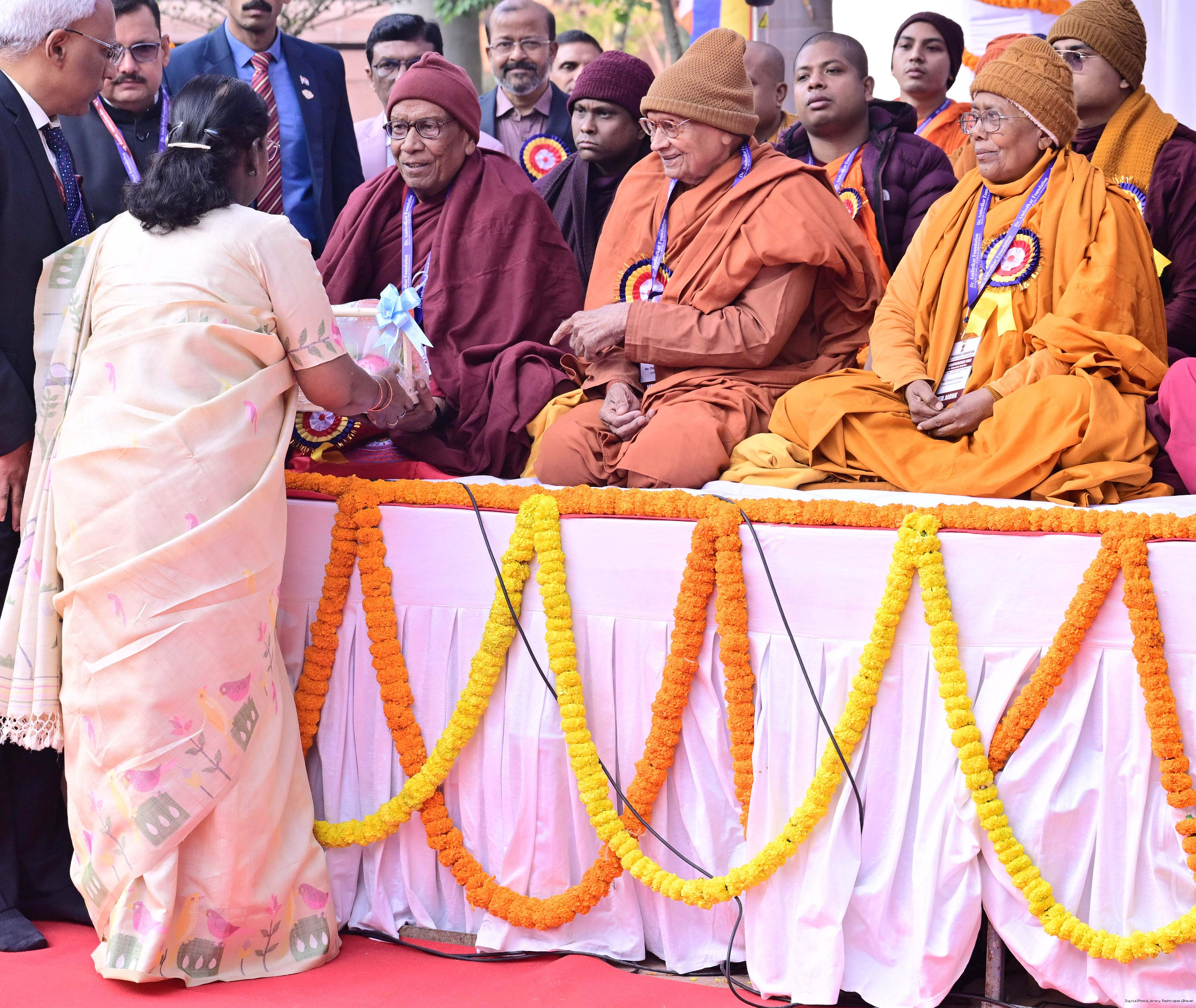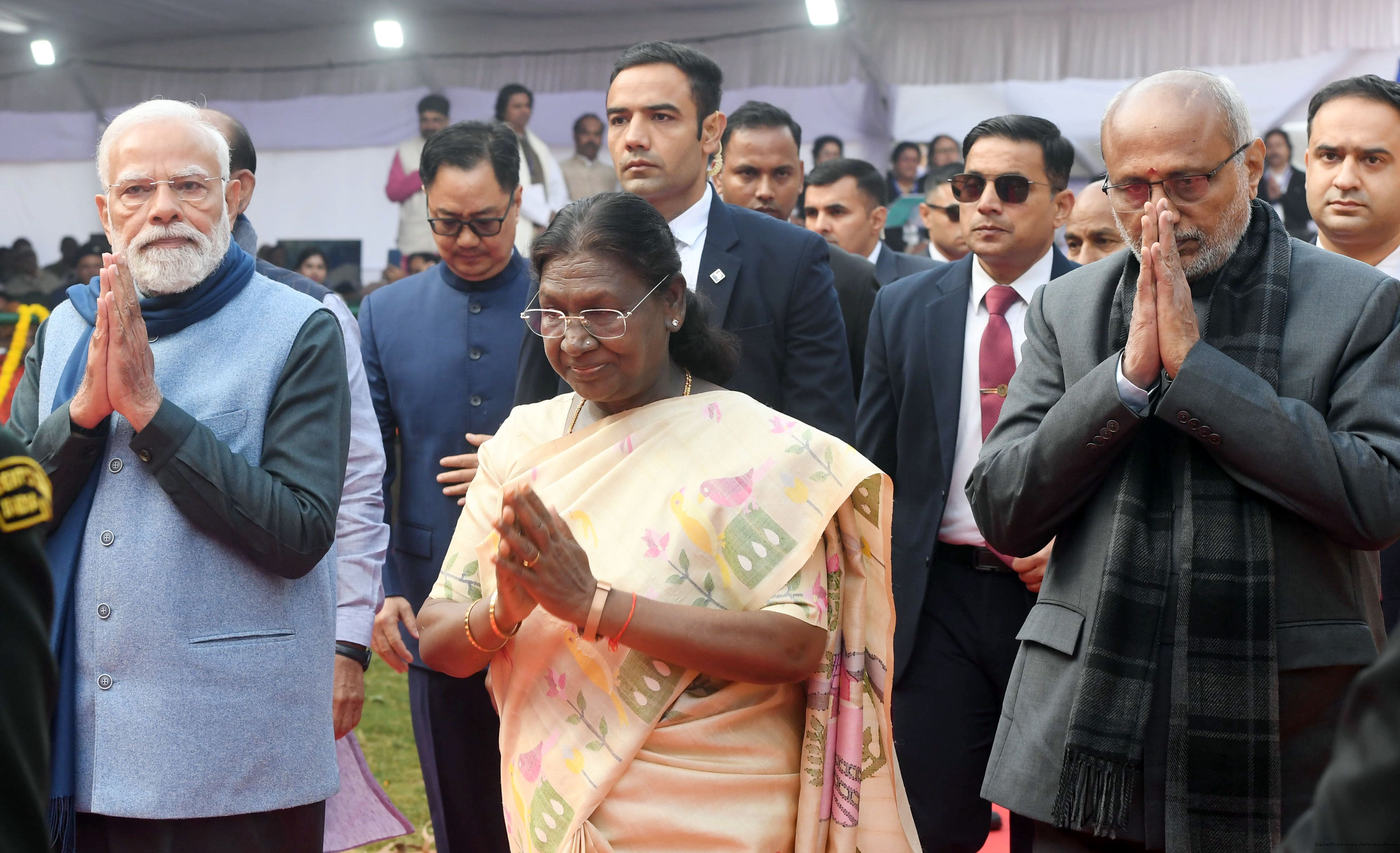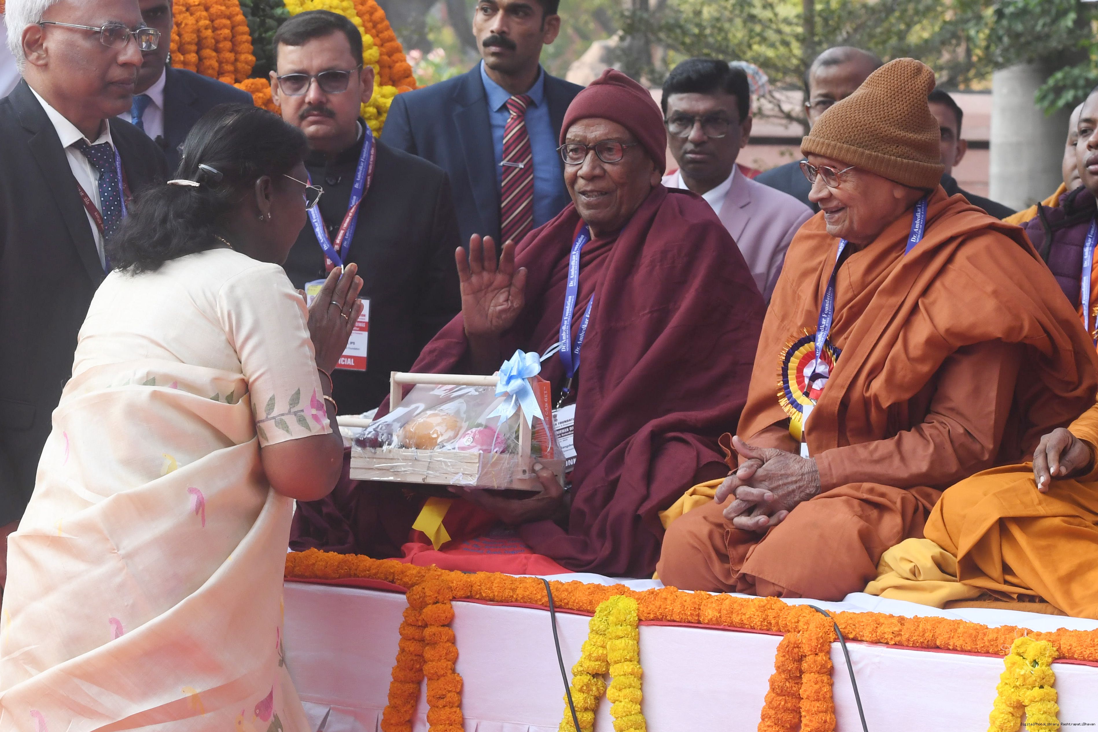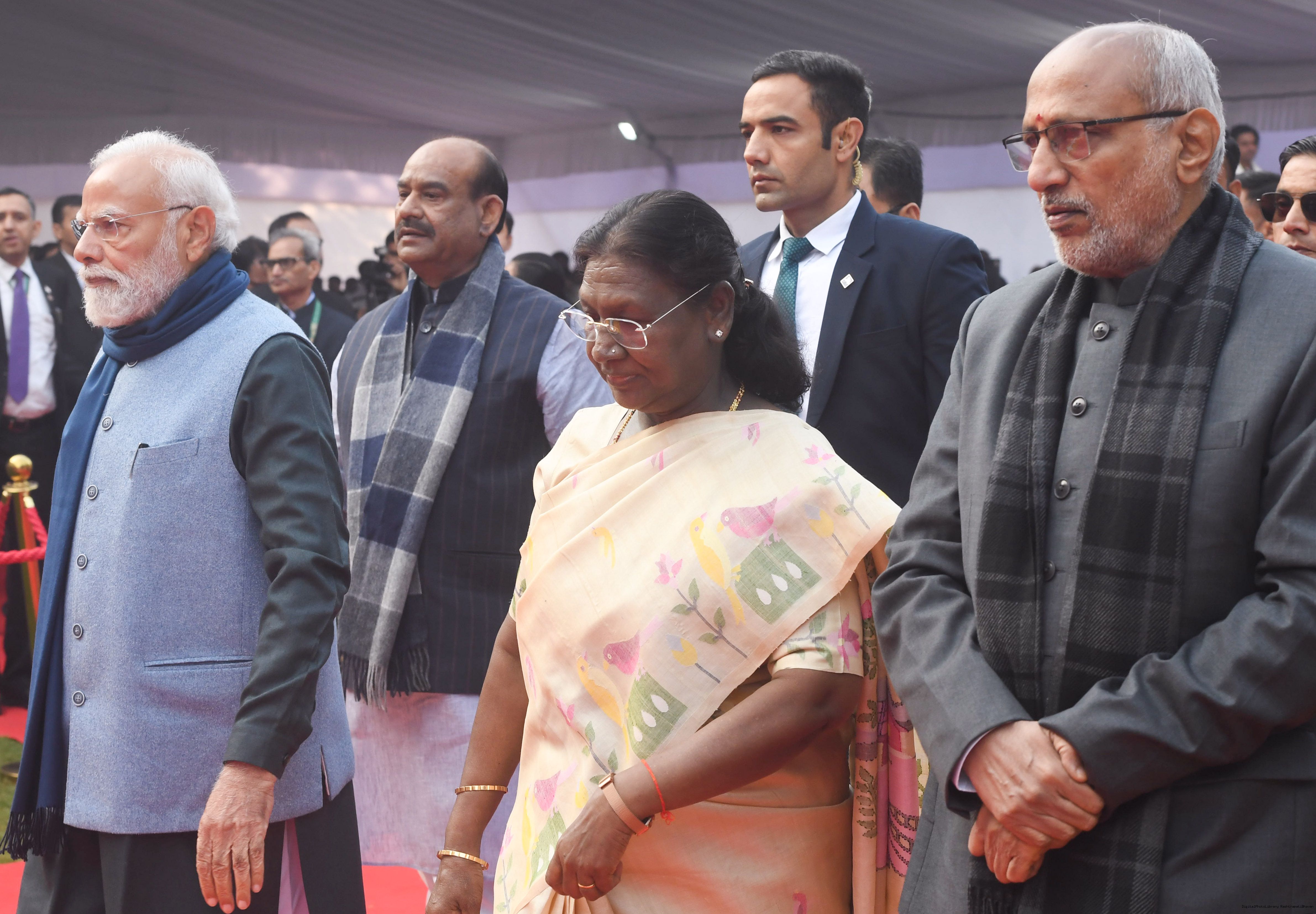 | Caption: | The President of India, Smt. Droupadi Murmu paid floral tributes to Babasaheb Dr B.R. Ambedkar on his Mahaparinirvan Diwas at Parliament House premises, New Delhi on December 06, 2025. |