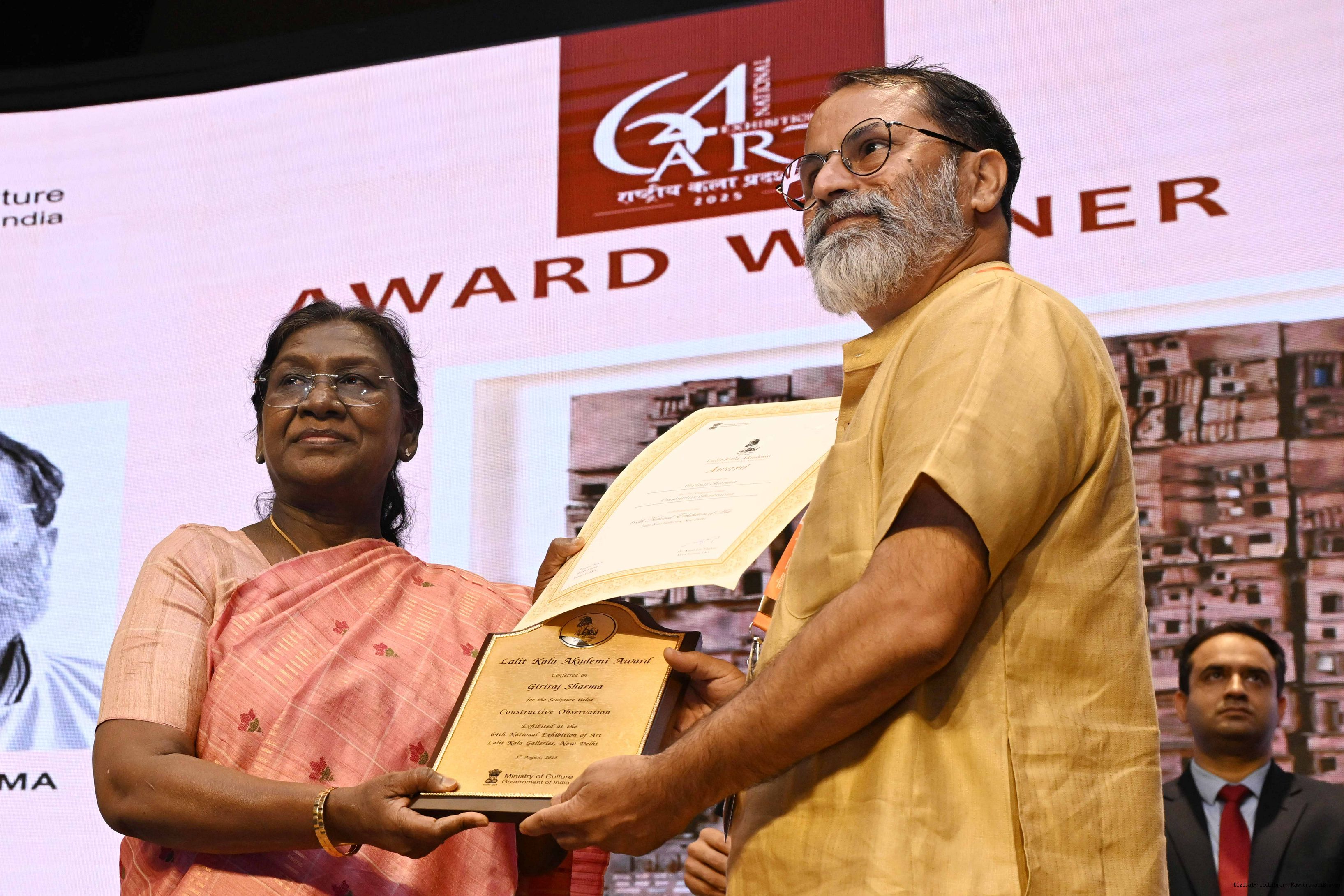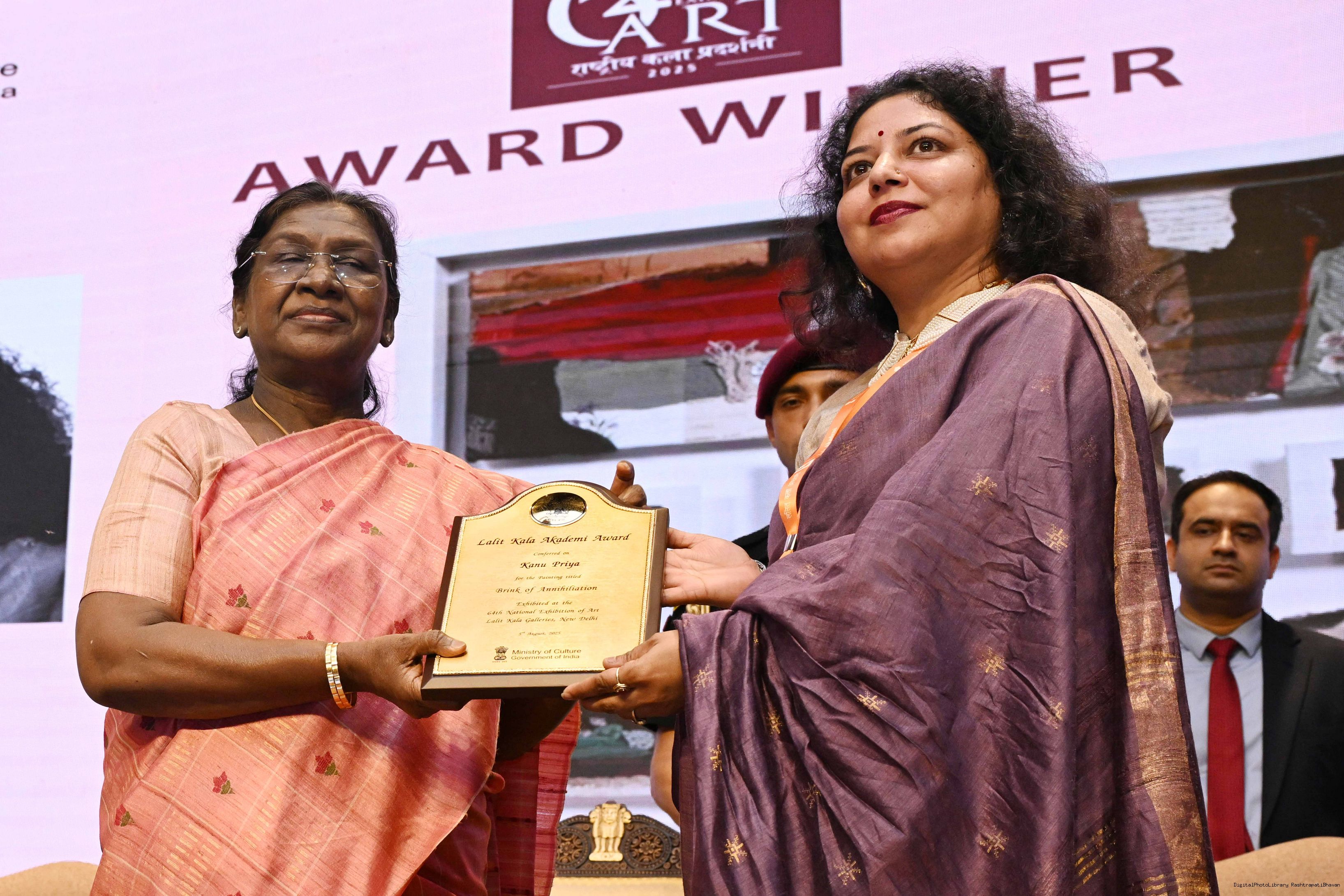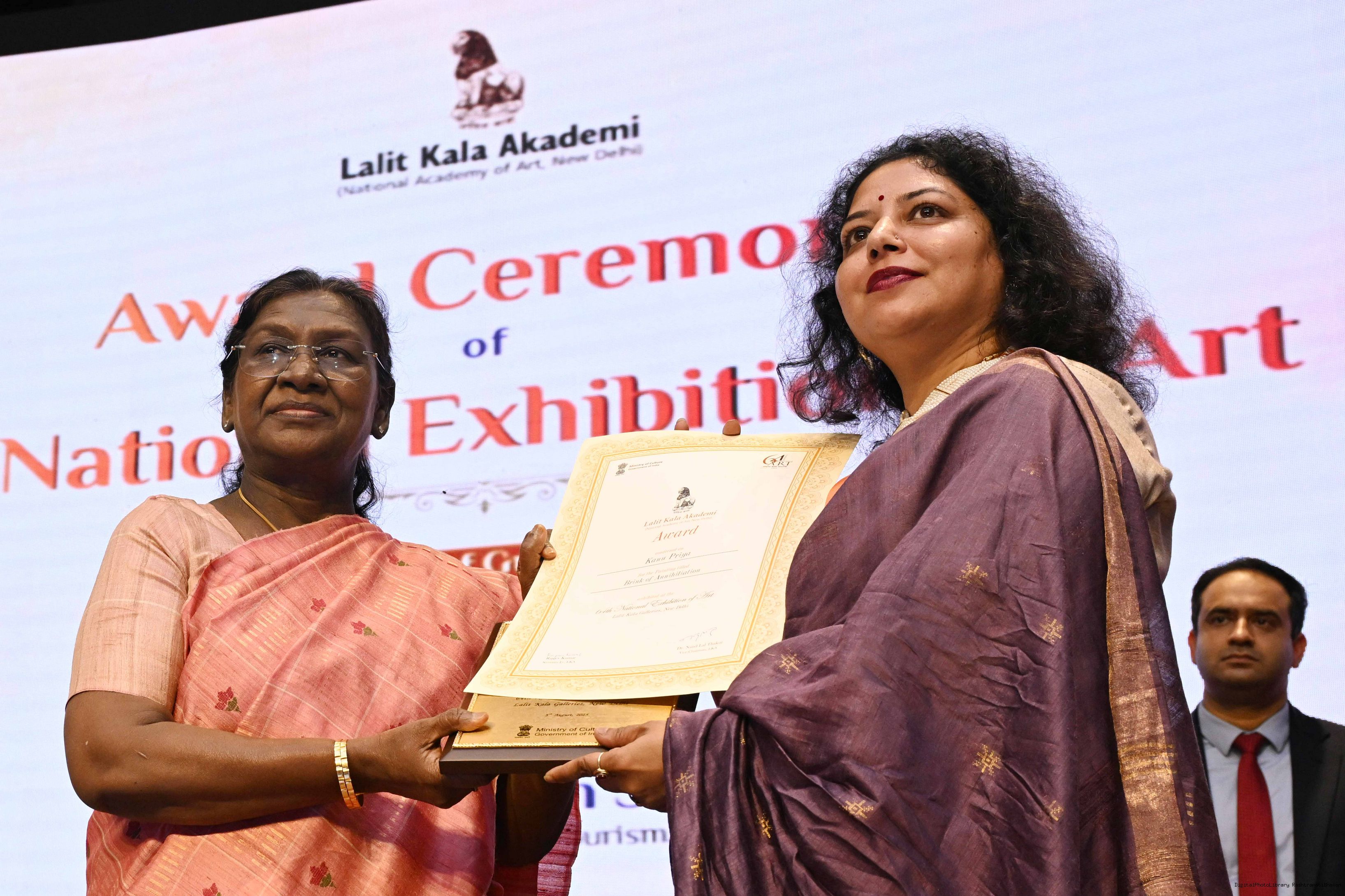 Caption: The President of India, Smt Droupadi Murmu, graced the award ceremony of the 64th National Exhibition of Art, organised by the Lalit Kala Akademi, in New Delhi on September 24, 2025.