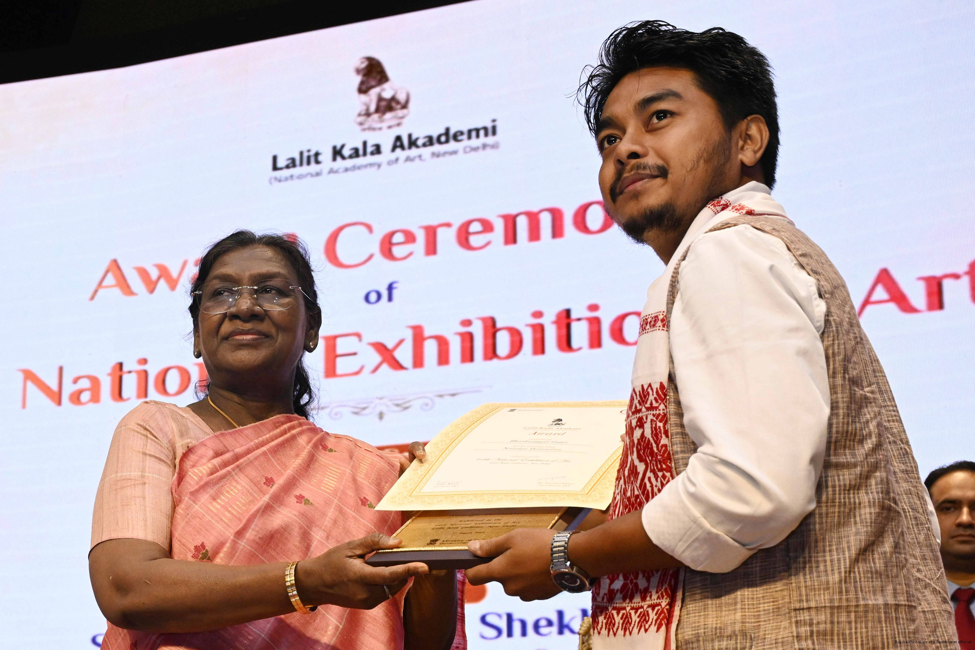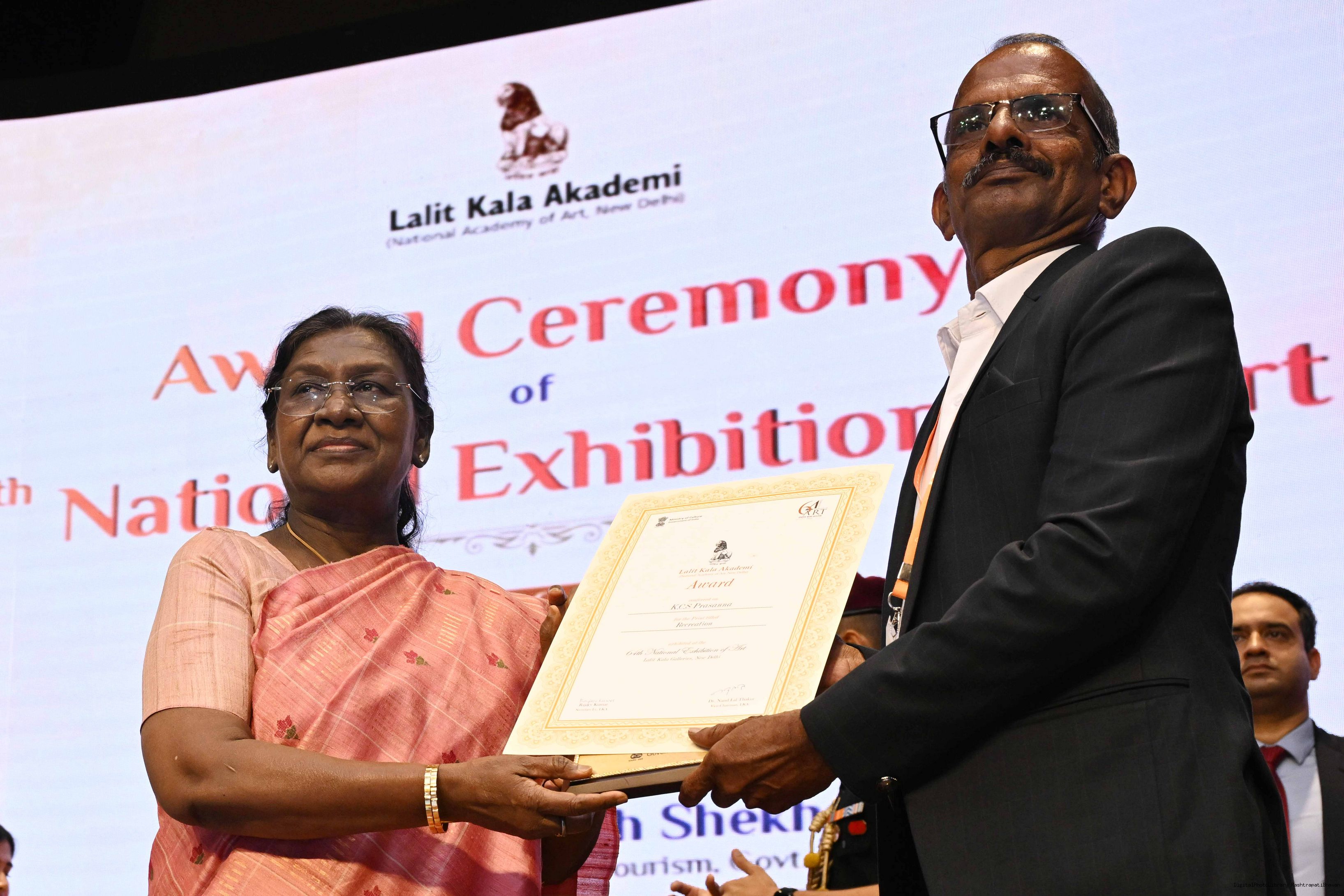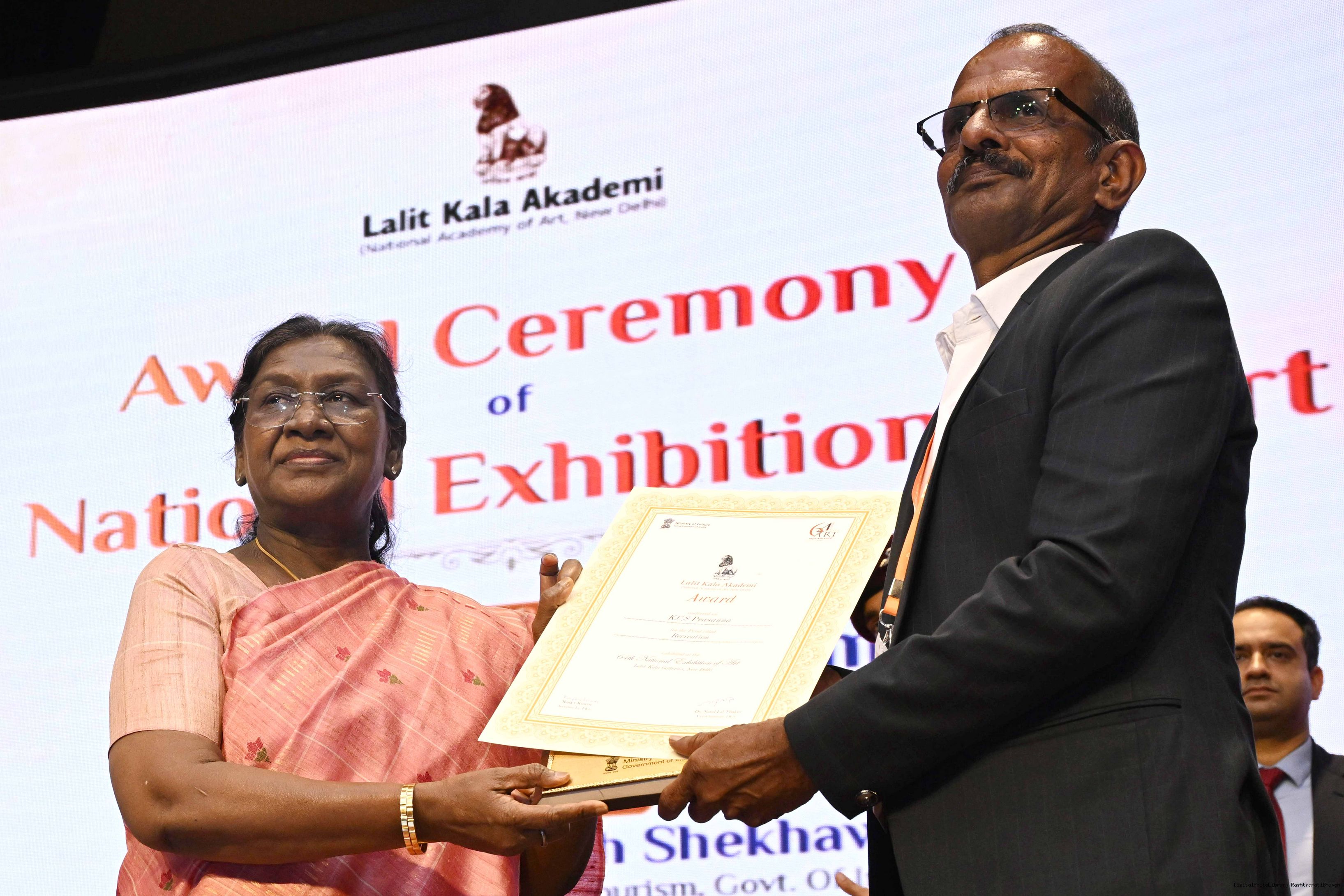Caption: The President of India, Smt Droupadi Murmu, graced the award ceremony of the 64th National Exhibition of Art, organised by the Lalit Kala Akademi, in New Delhi on September 24, 2025.