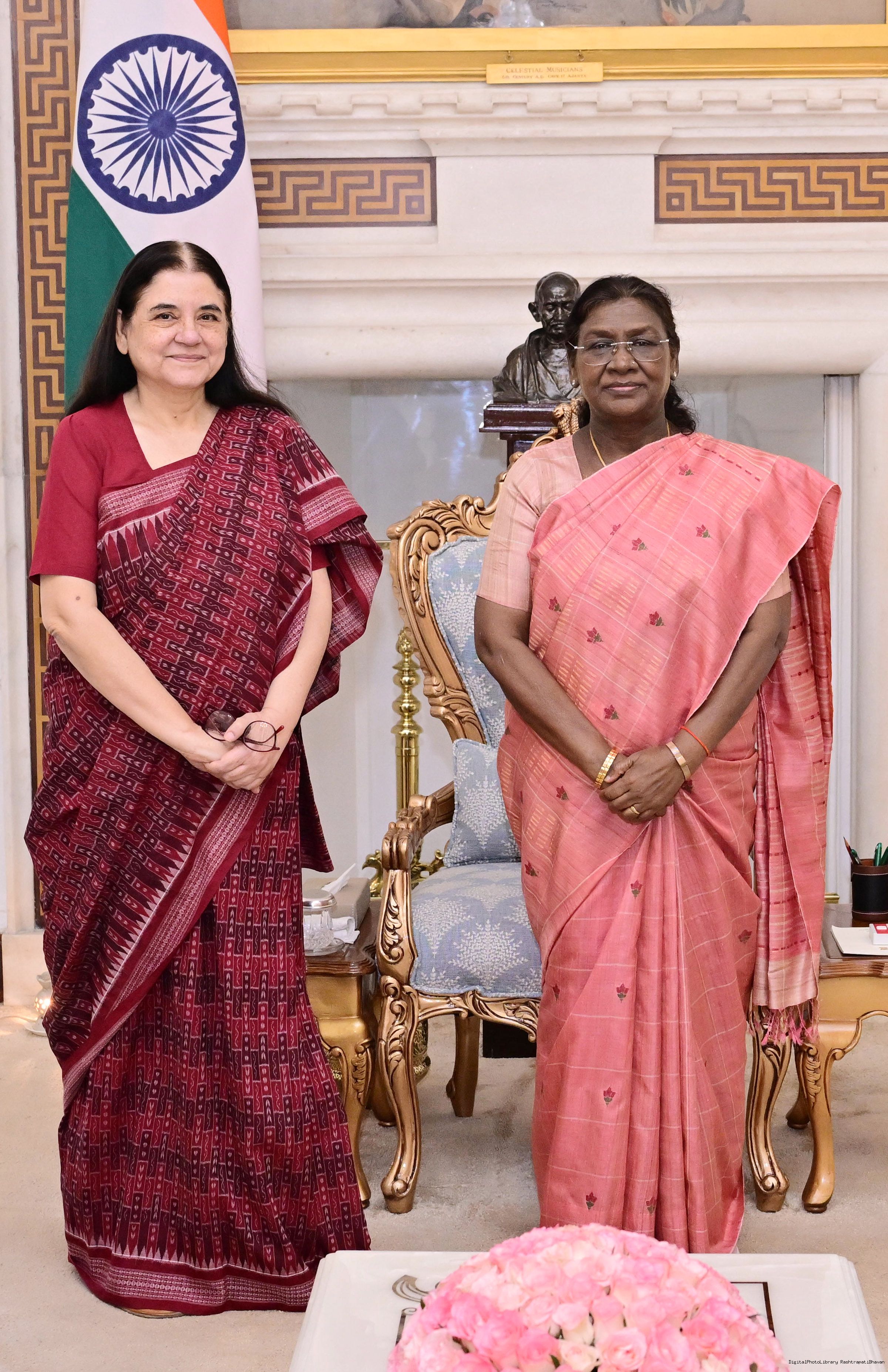 | Caption: | Smt. Maneka Sanjay Gandhi, former Union Minister meeting with the President of India, Smt Droupadi Murmu at Rashtrapati Bhavan on September 24, 2025. |